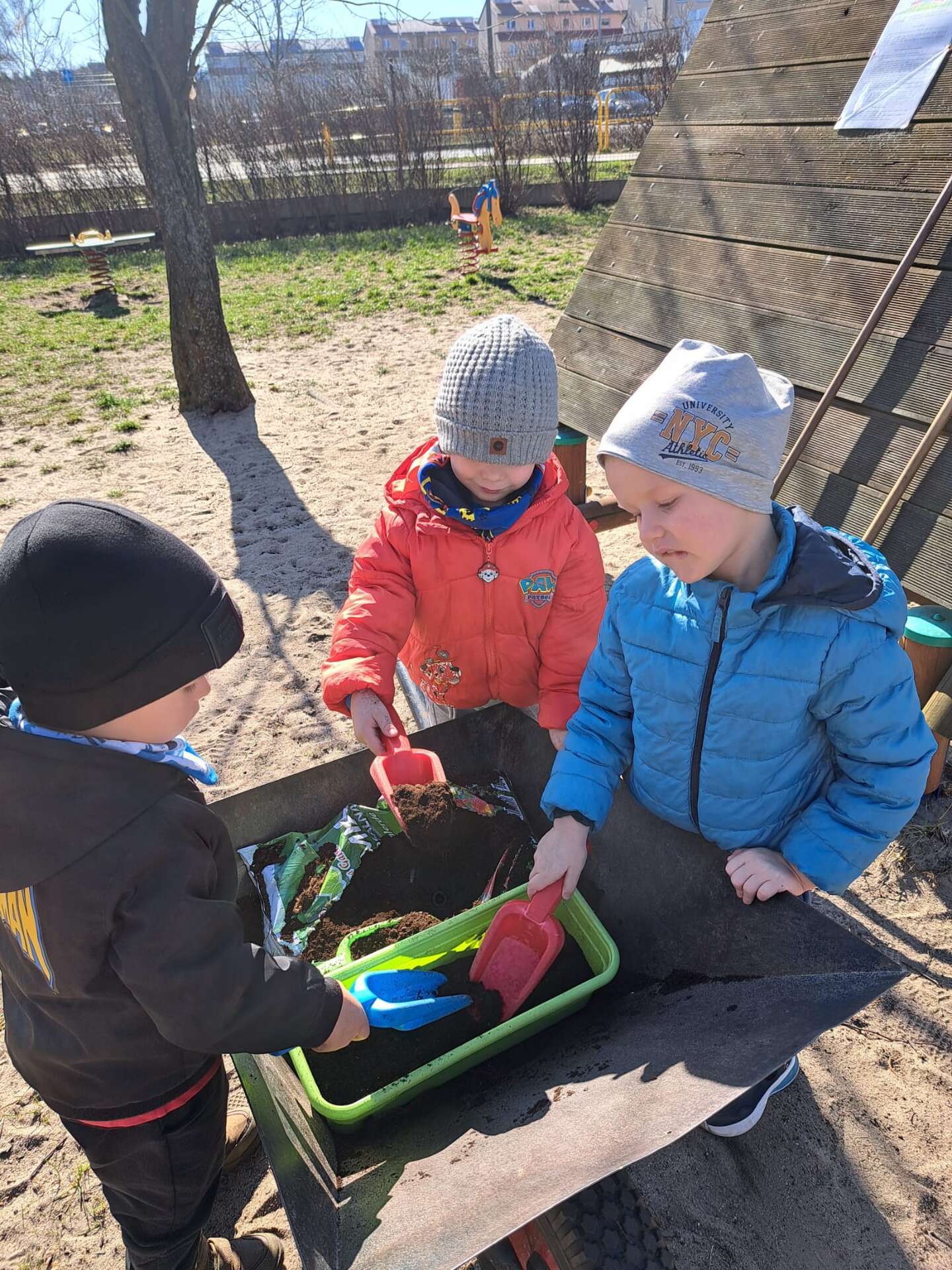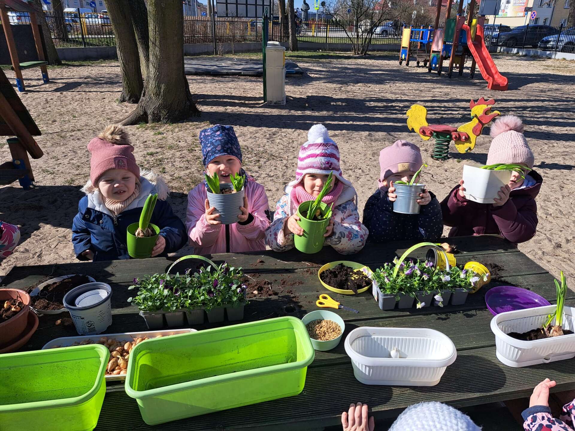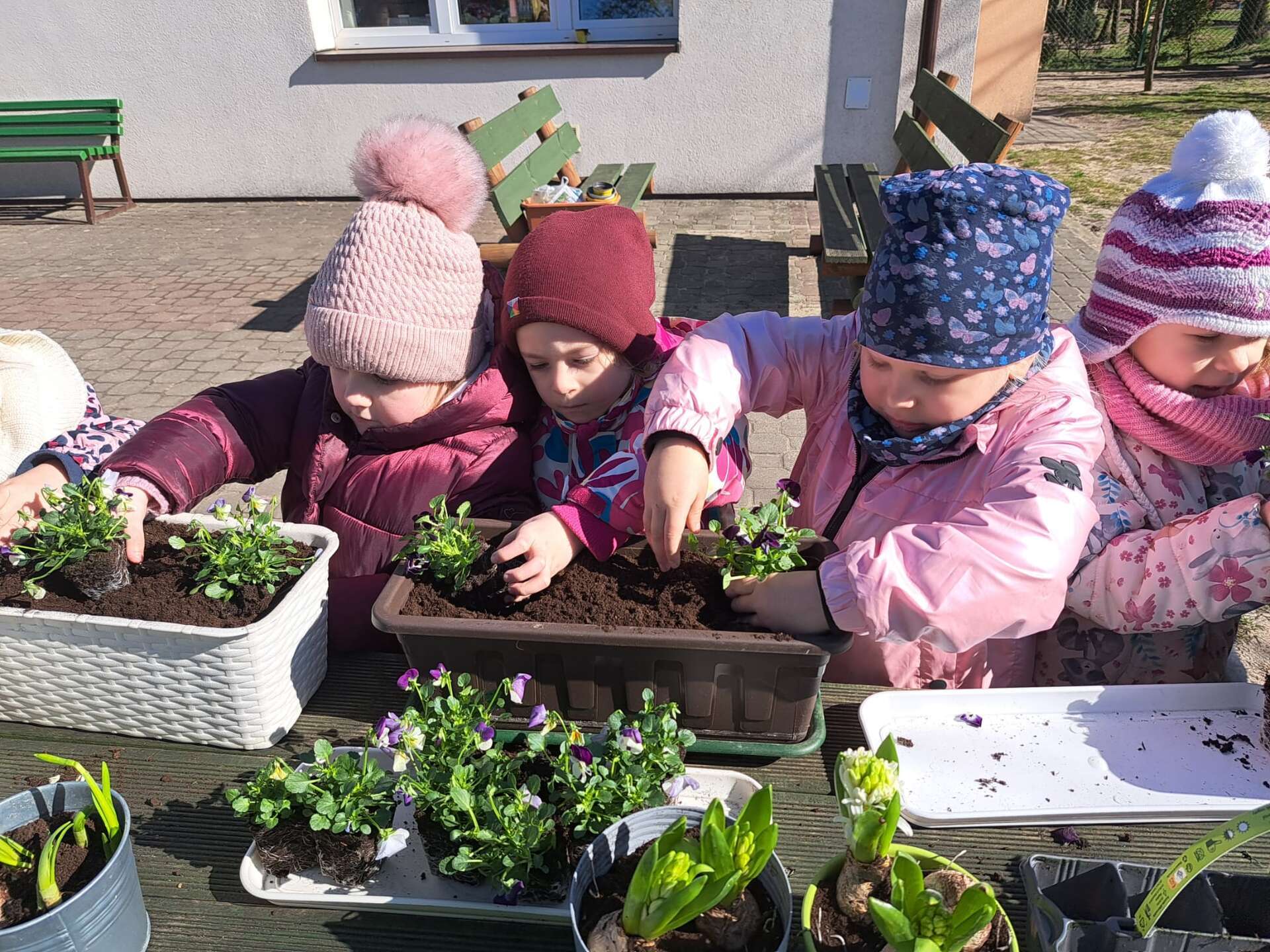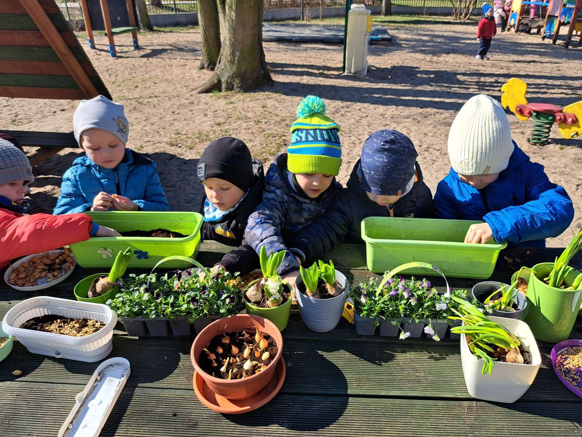 Gr.II Sadzenie kwiatków i porządki w ogrodzie-wiosenne prace przedszkolaków