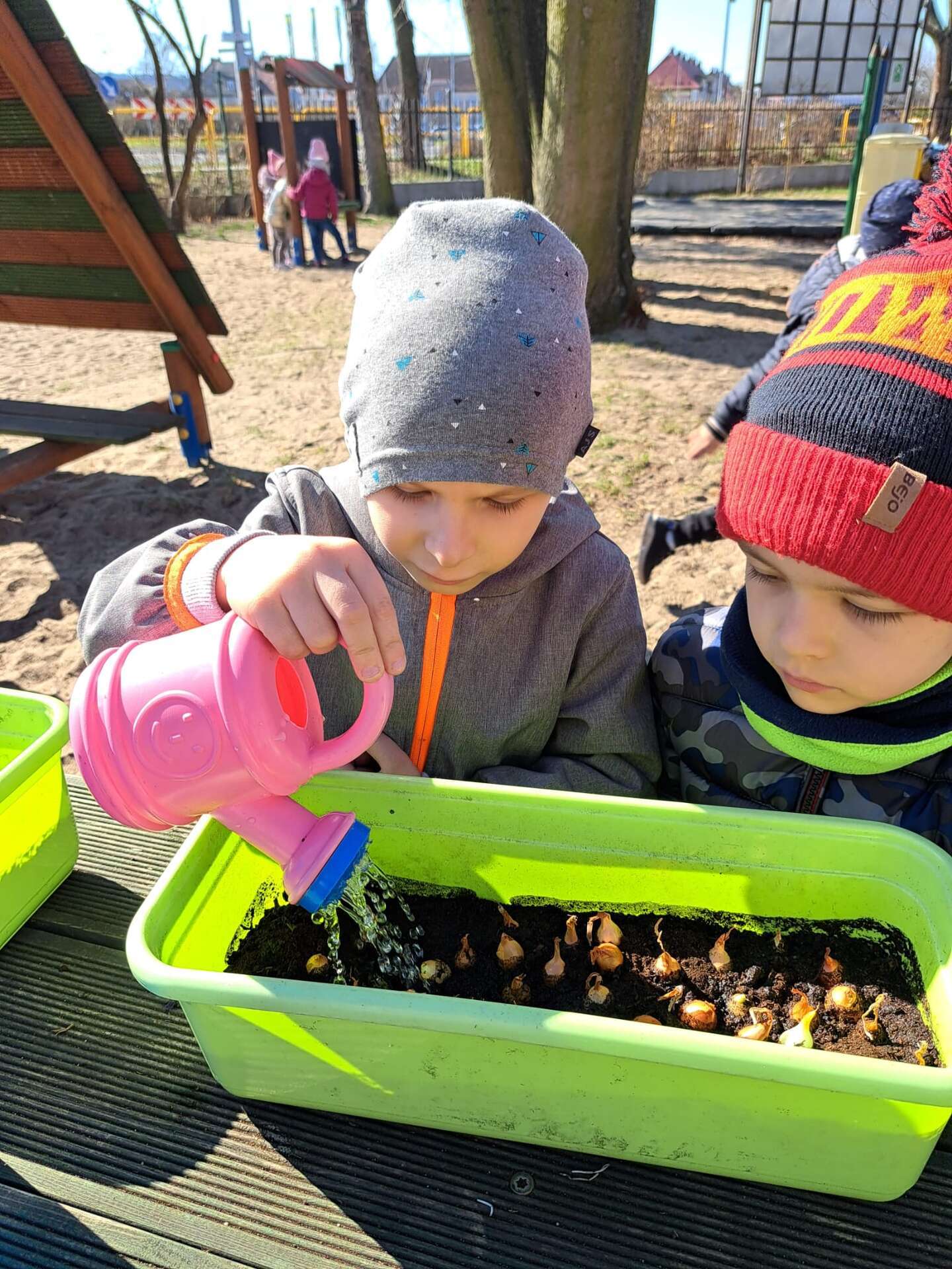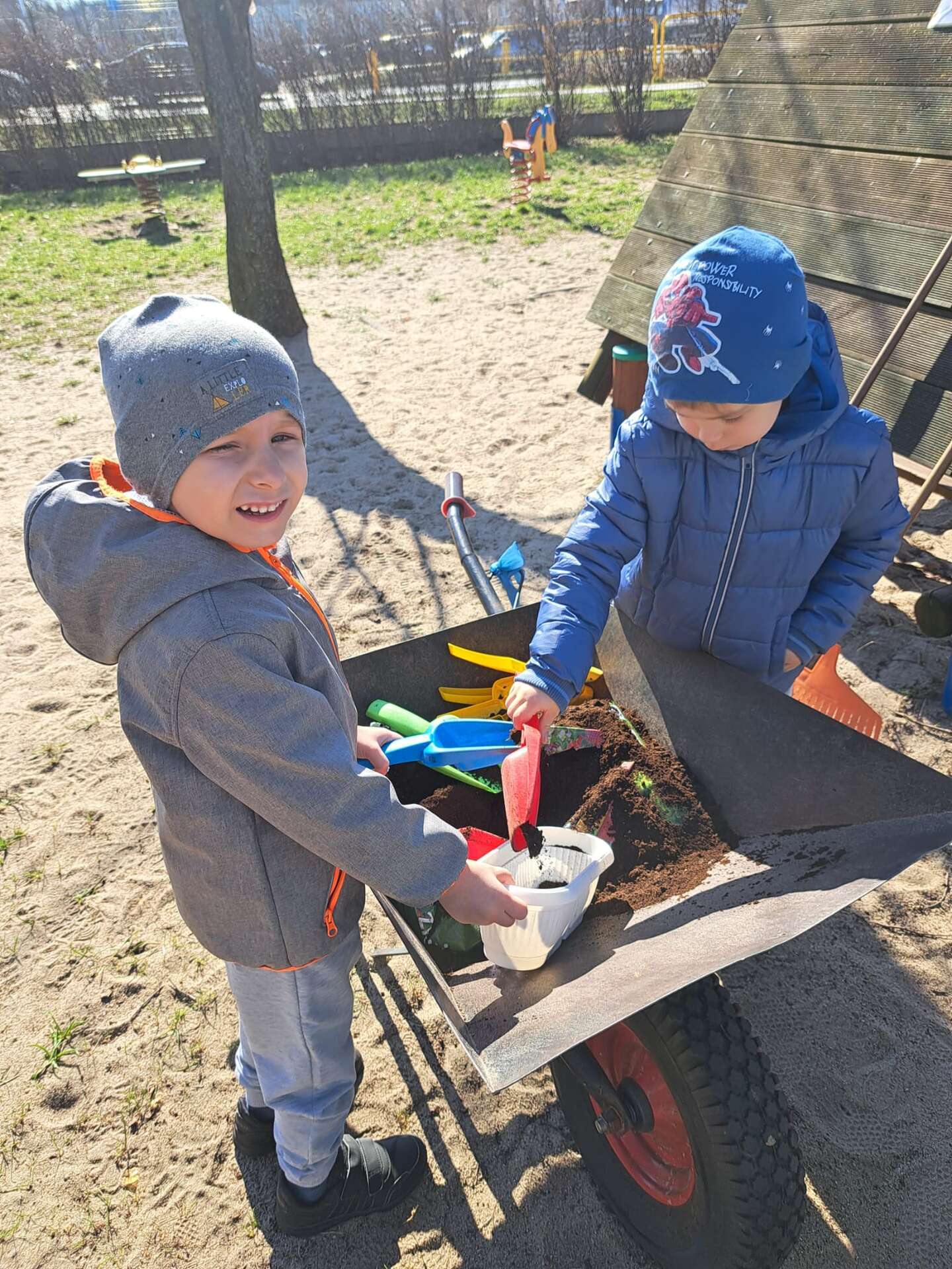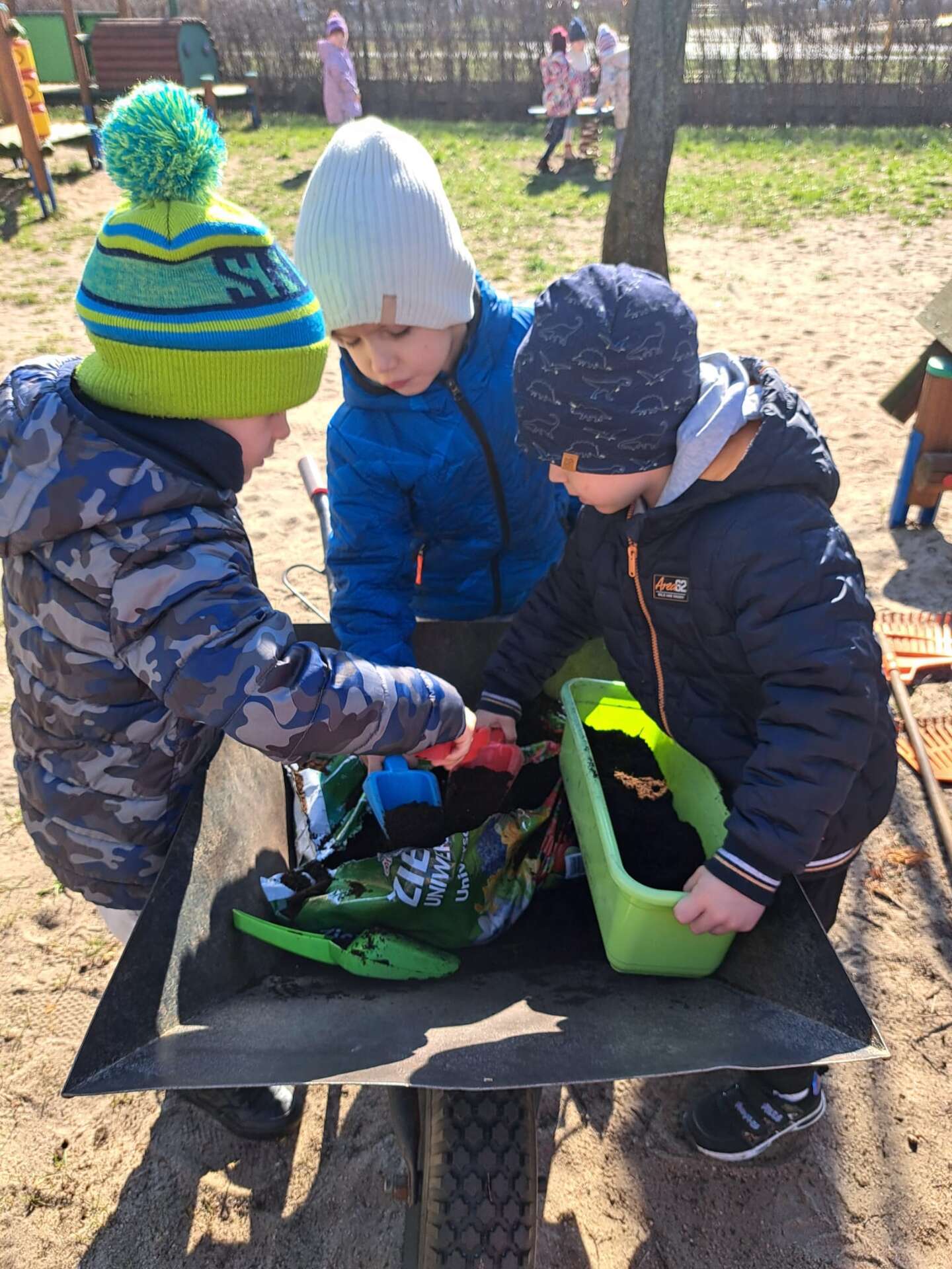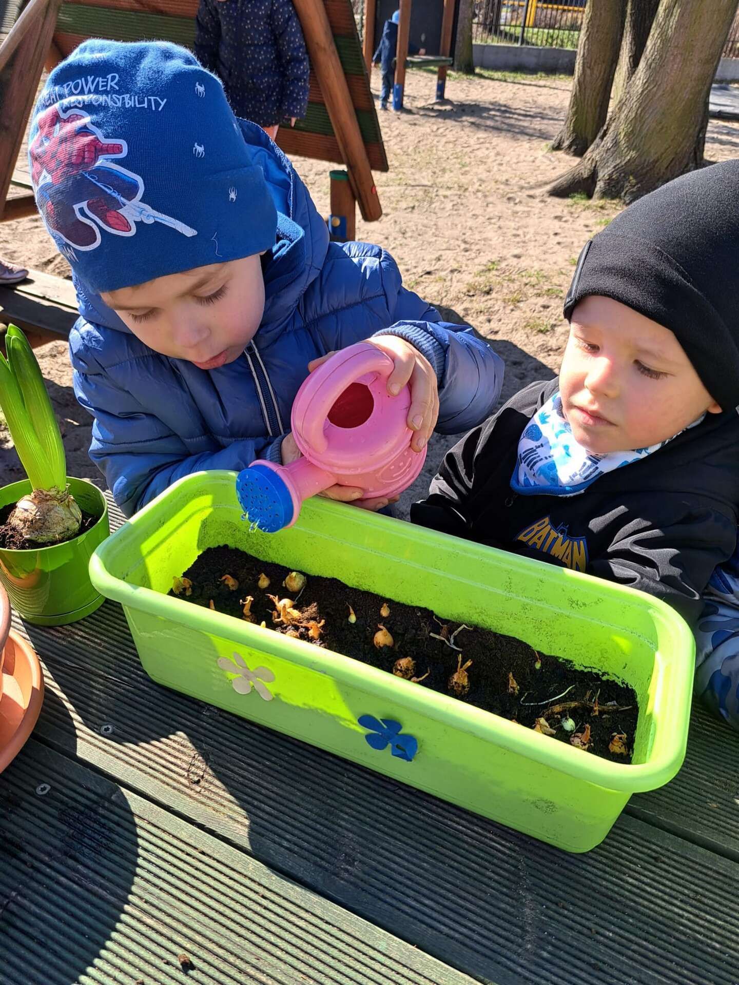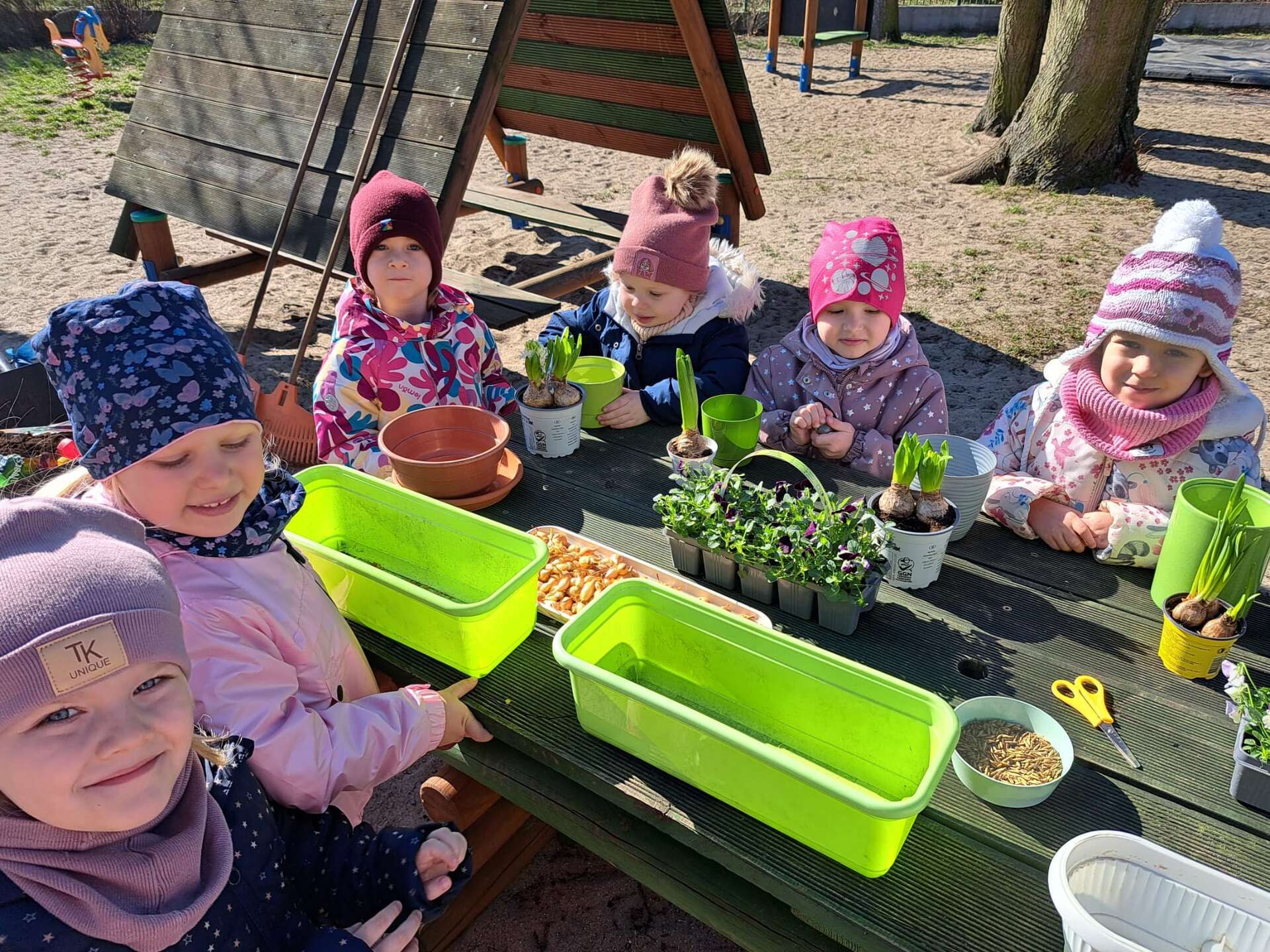 Gr.II Sadzenie kwiatków i porządki w ogrodzie-wiosenne prace przedszkolaków