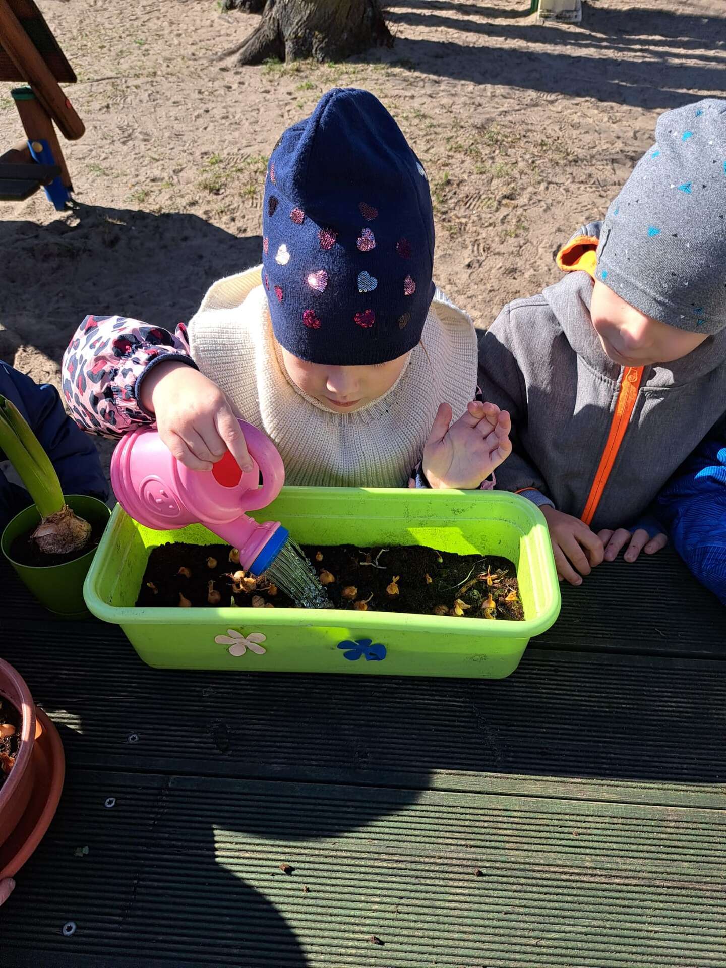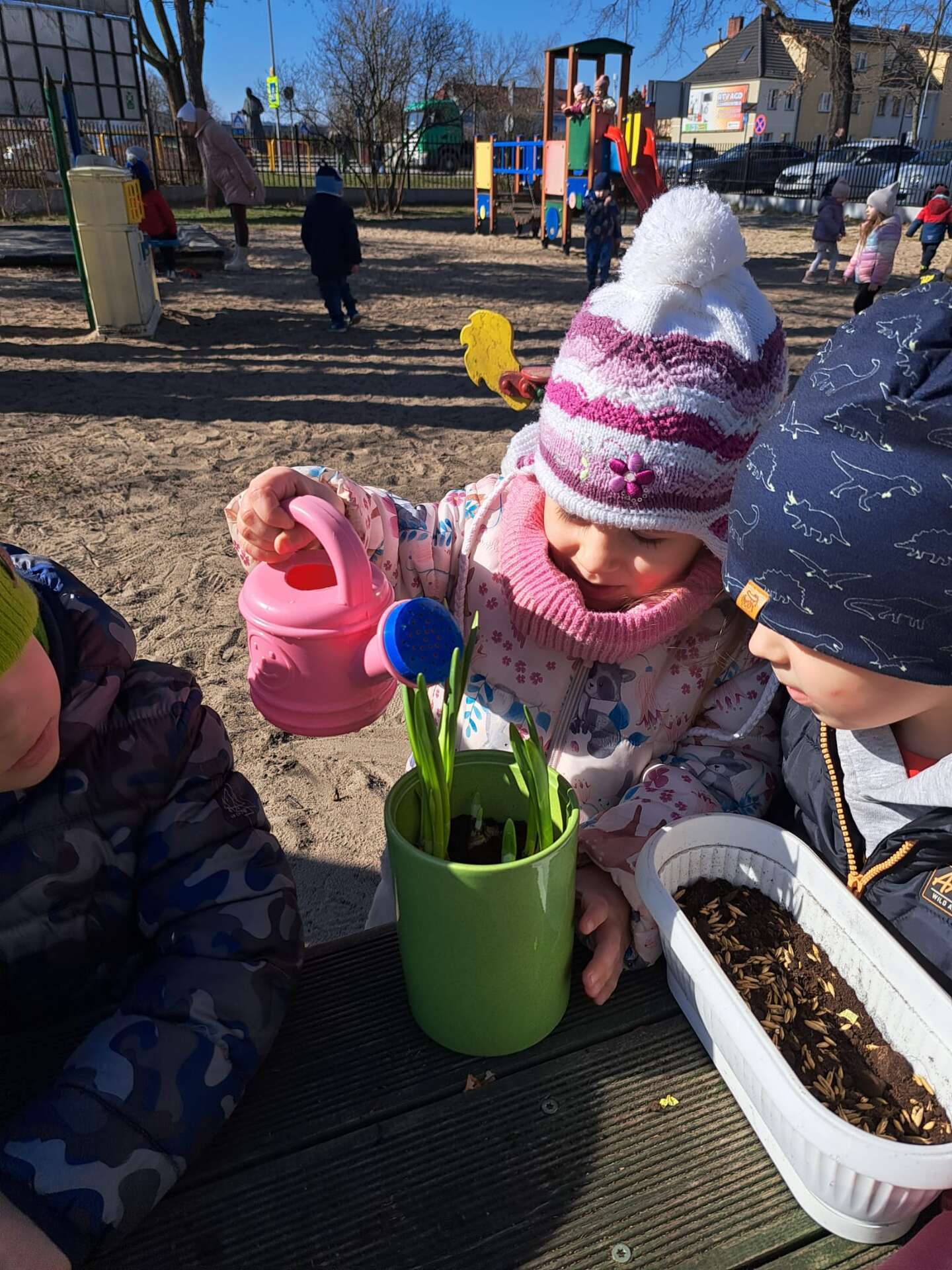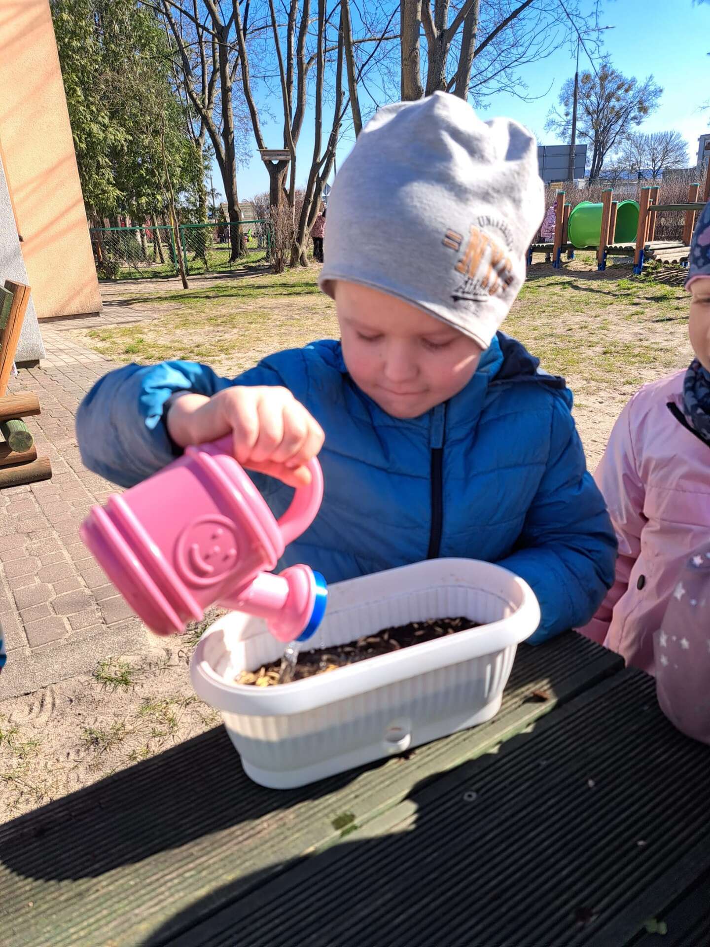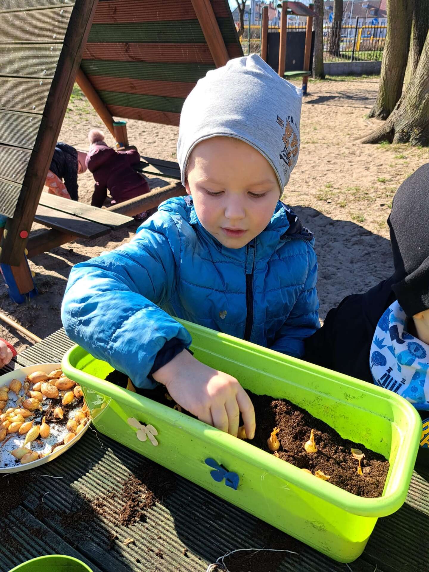 Gr.II Sadzenie kwiatków i porządki w ogrodzie-wiosenne prace przedszkolaków