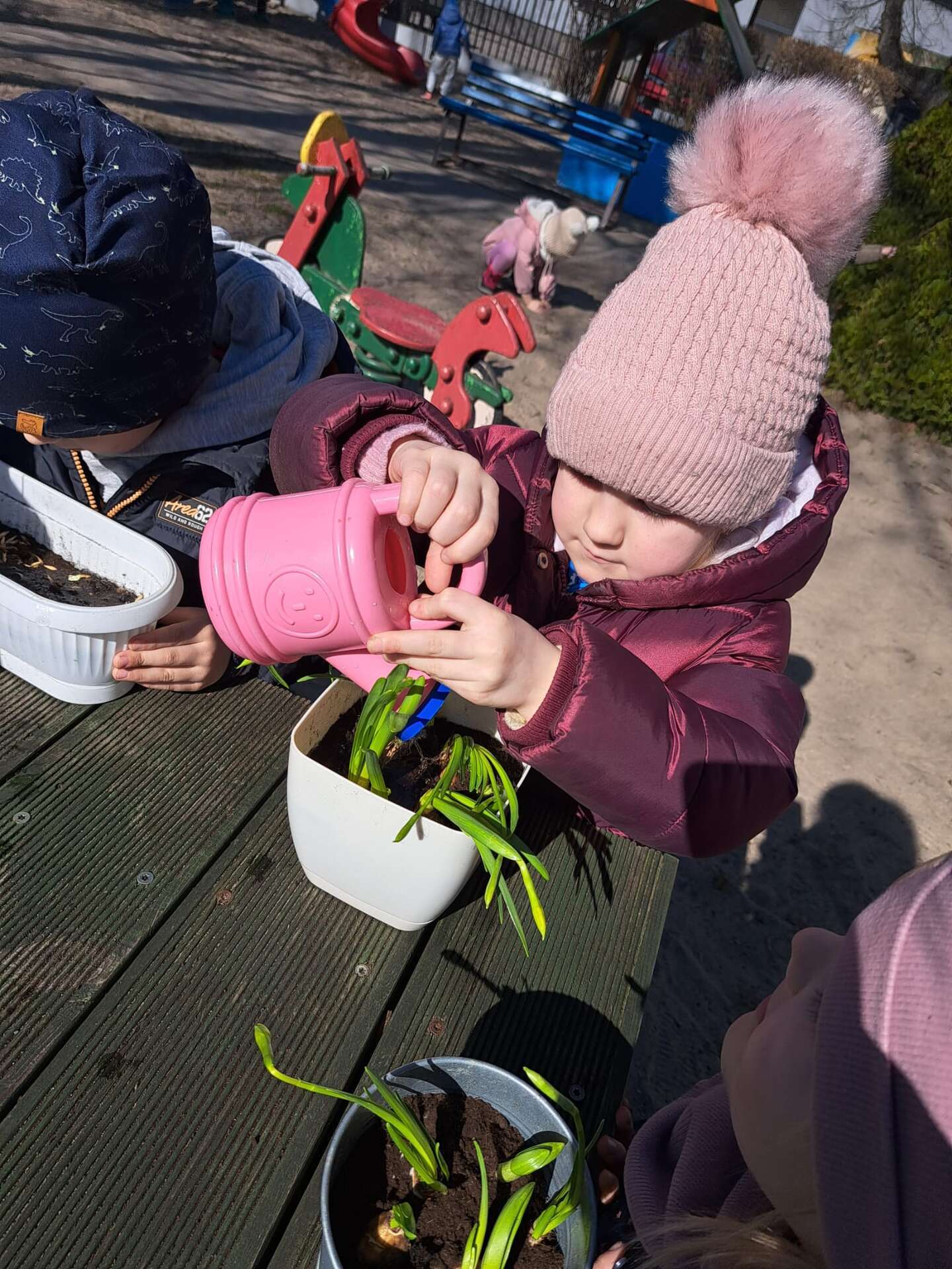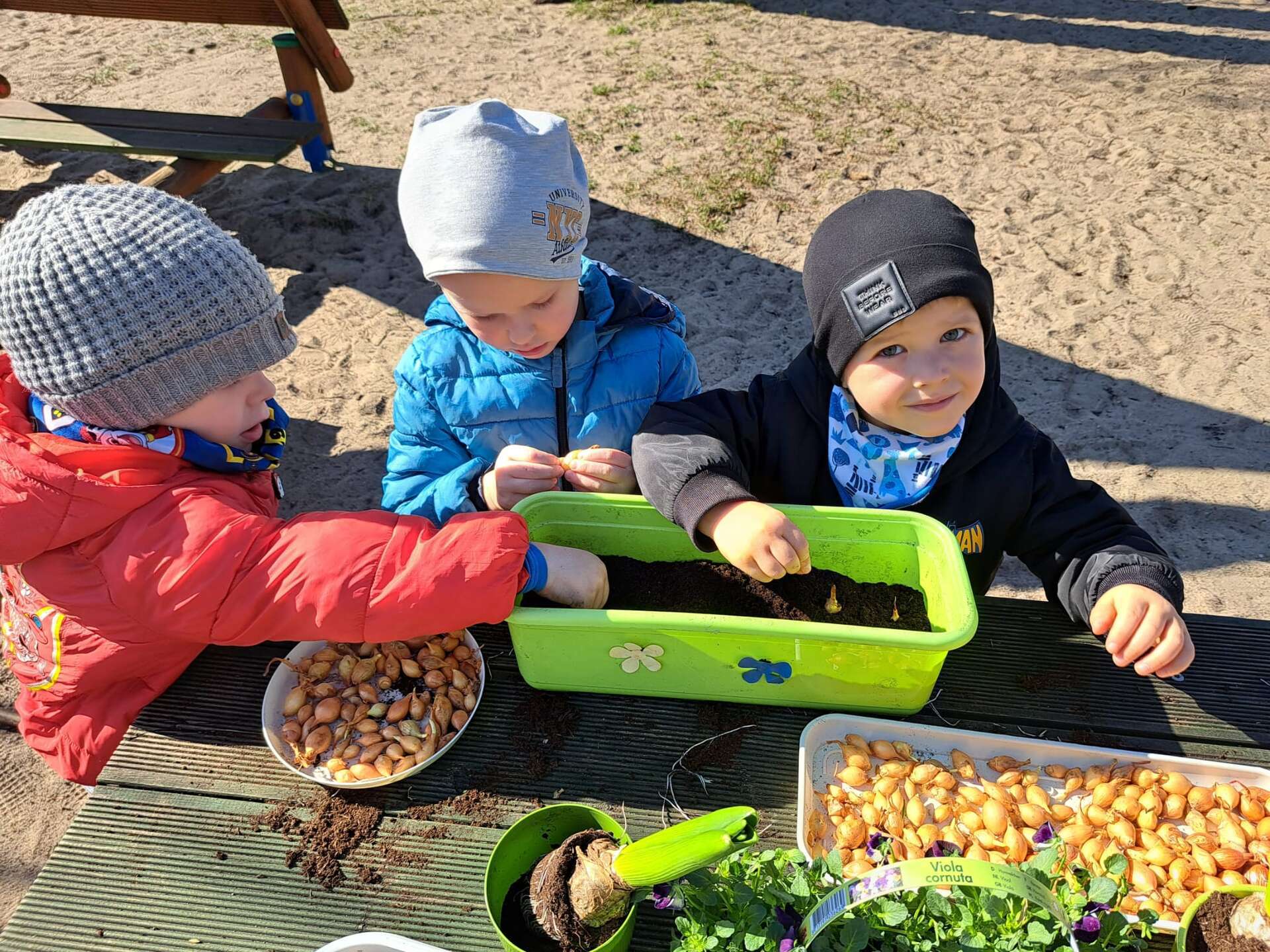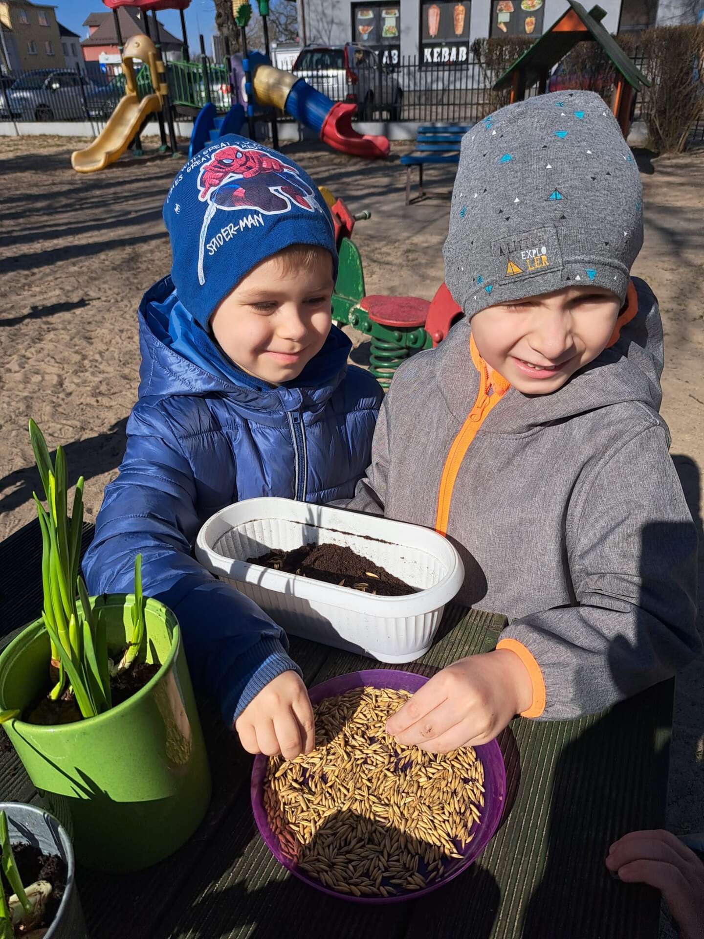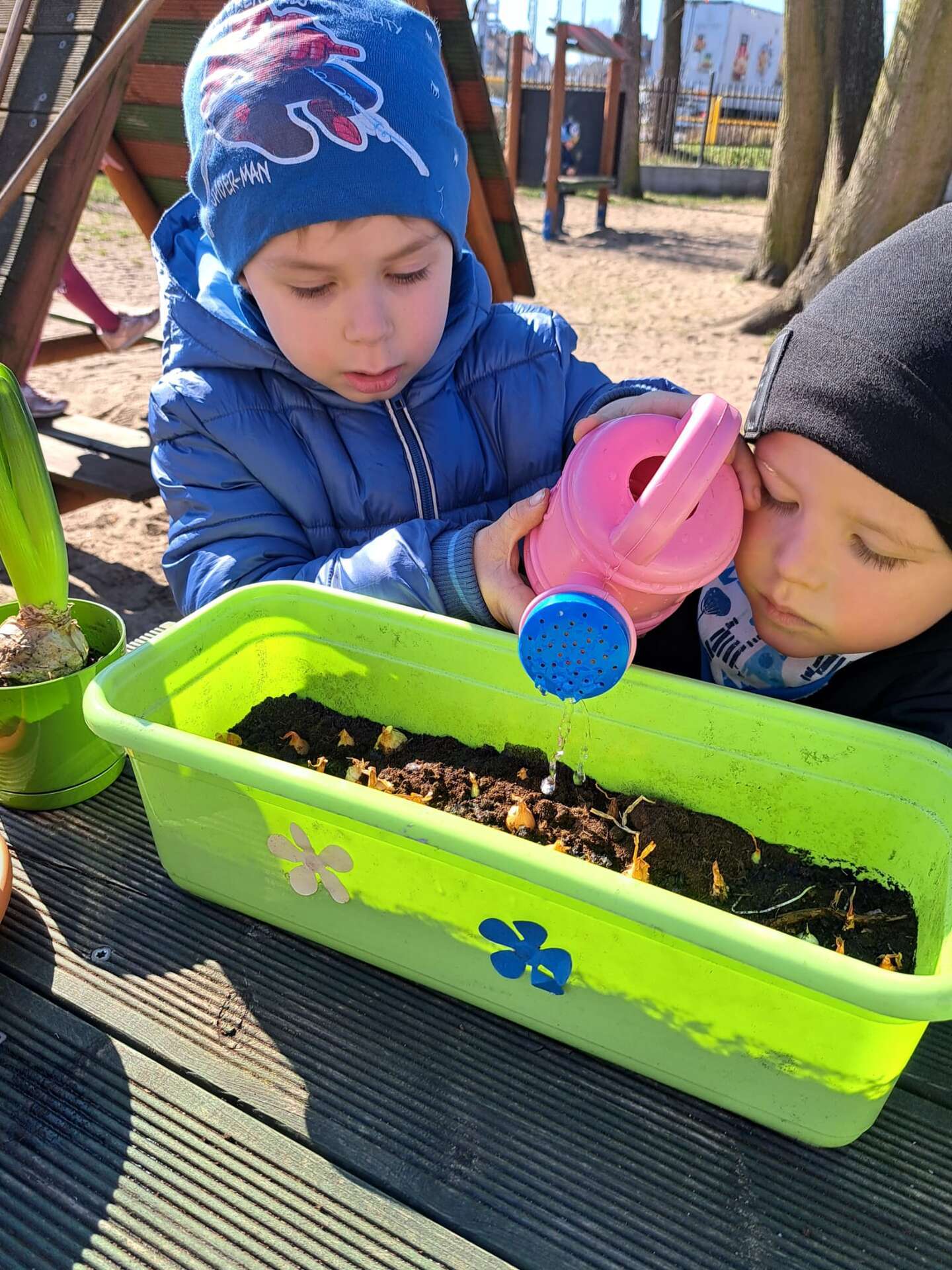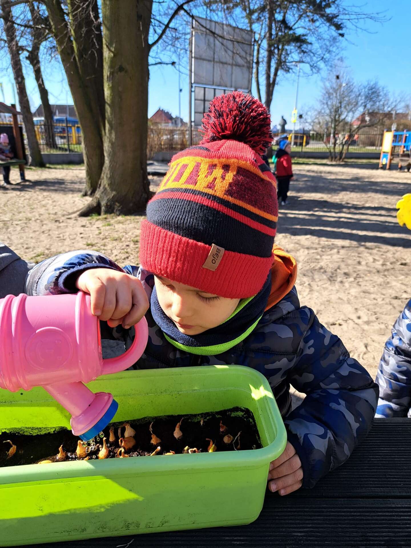 Gr.II Sadzenie kwiatków i porządki w ogrodzie-wiosenne prace przedszkolaków