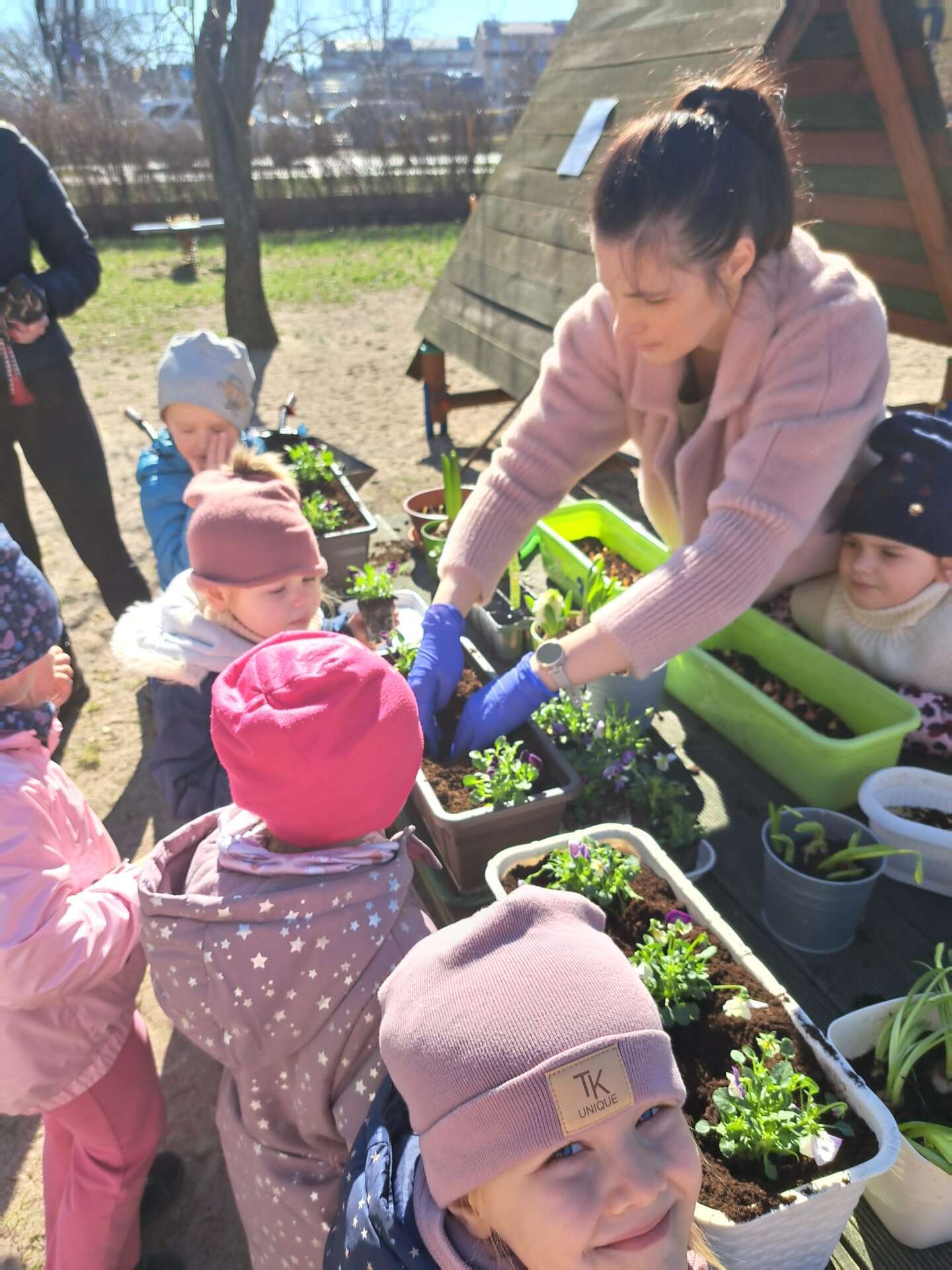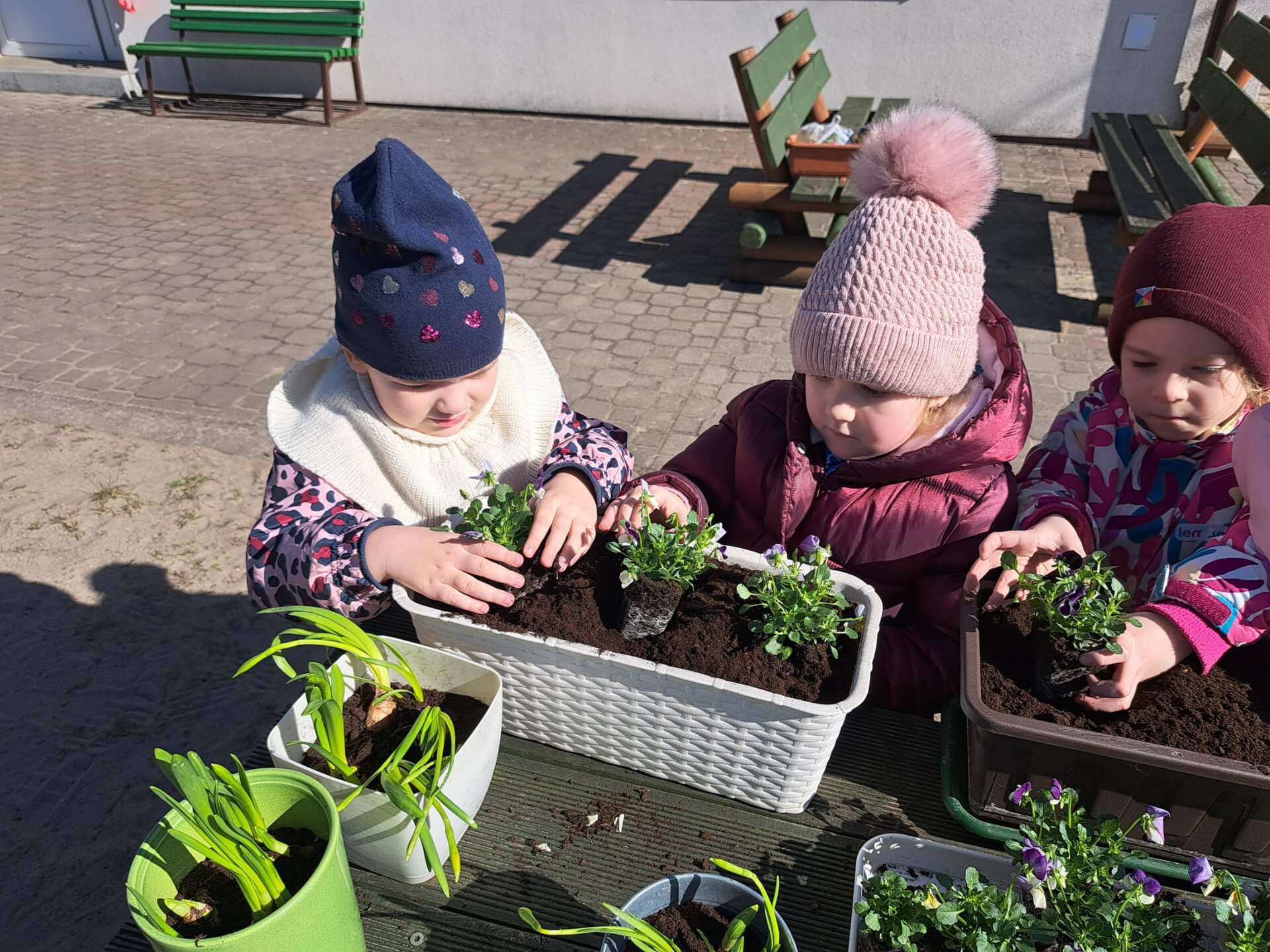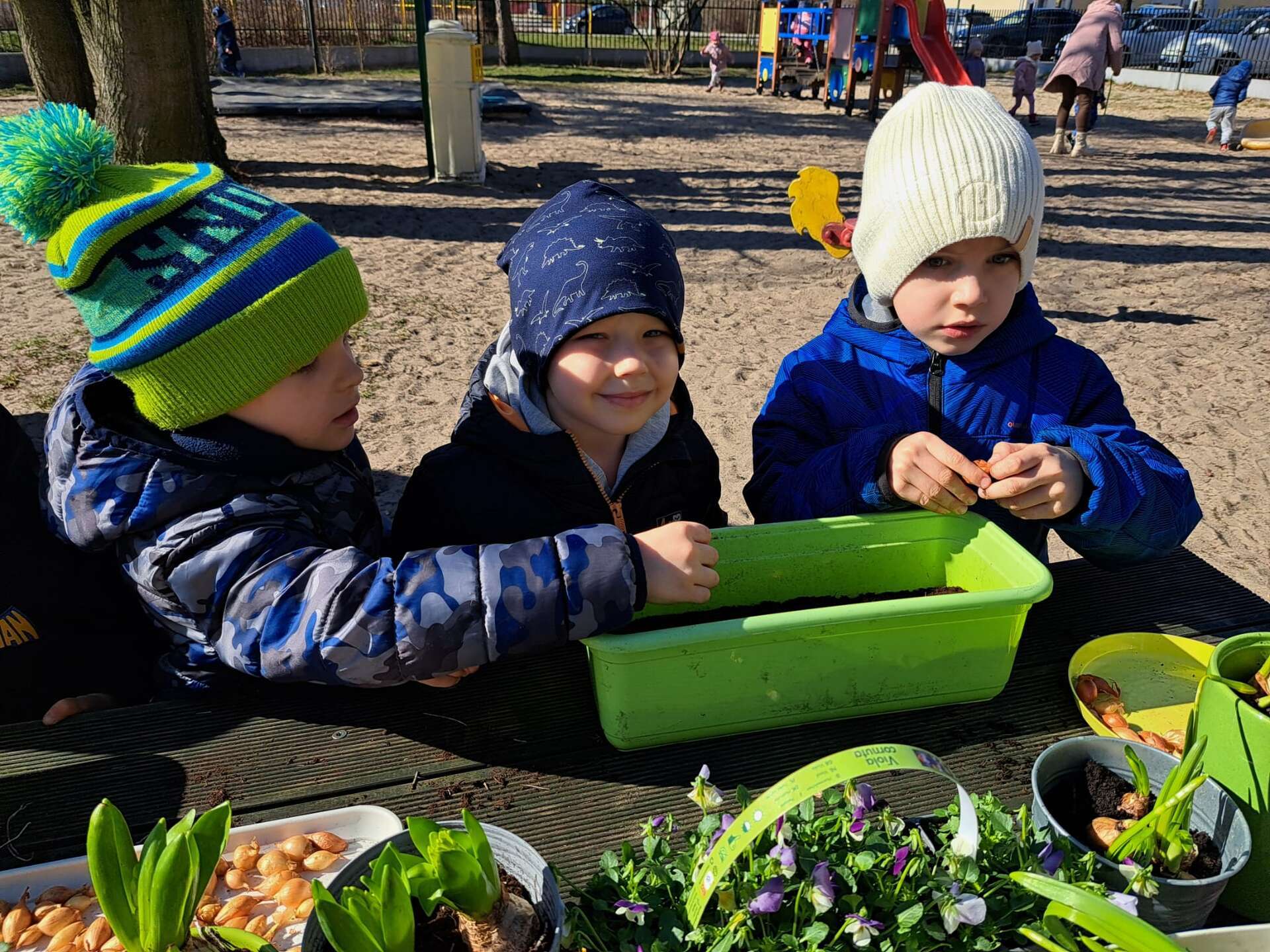 Dziś nasze przedszkolaki miały okazję do aktywności na świeżym powietrzu! Z radością przystąpiliśmy do wspólnego sadzenia kolorowych kwiatków. Każde dziecko miało swoją rolę – niektóre sadziły roślinki, inne zadbały o to, by ziemia była odpowiednio przygotowana. Dzięki temu nasza sala i ogród zapełnią się pięknymi, wiosennymi kwiatami!