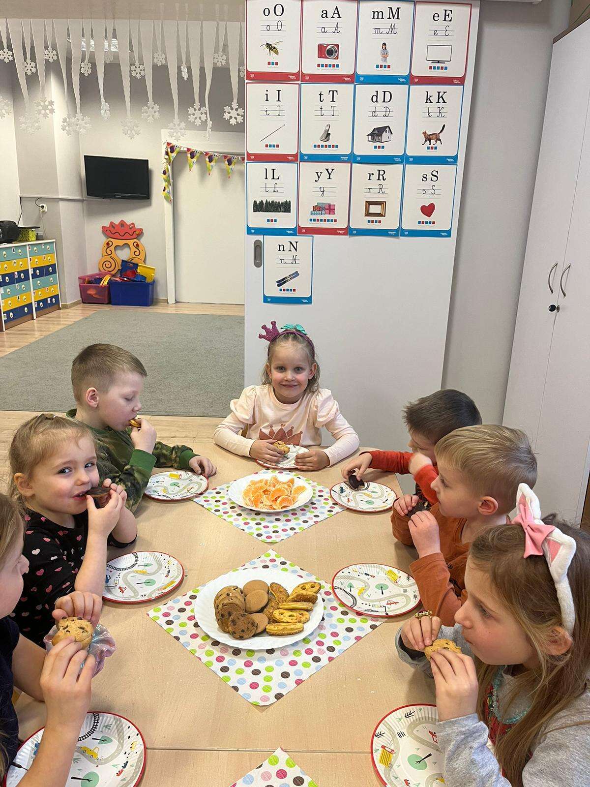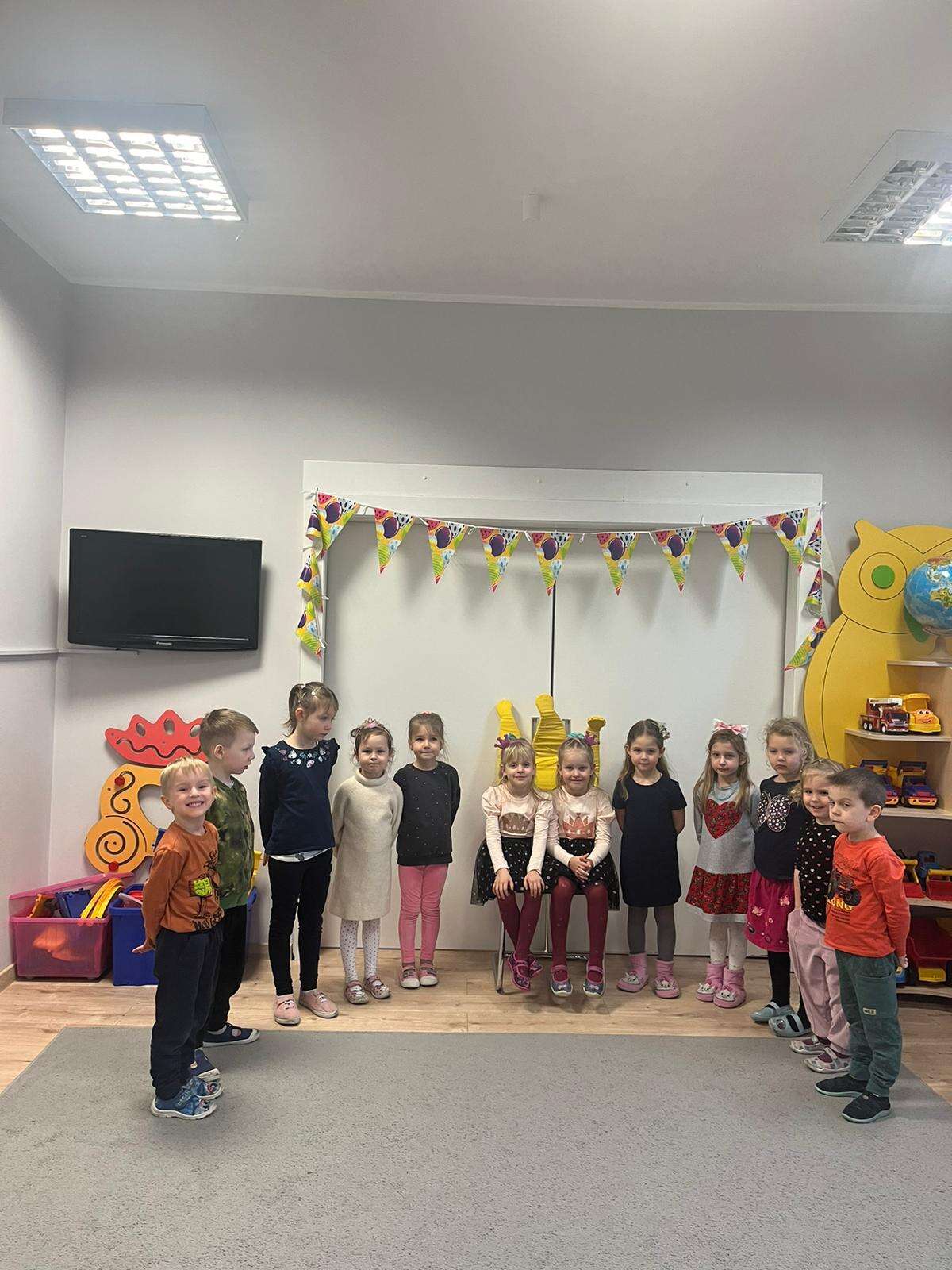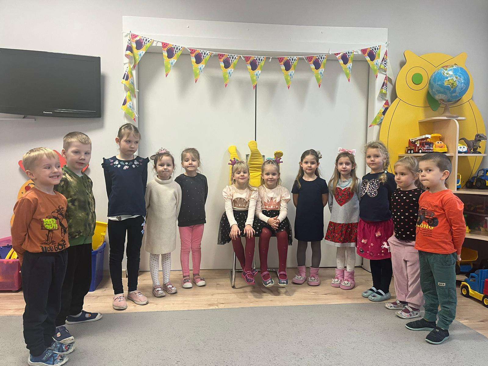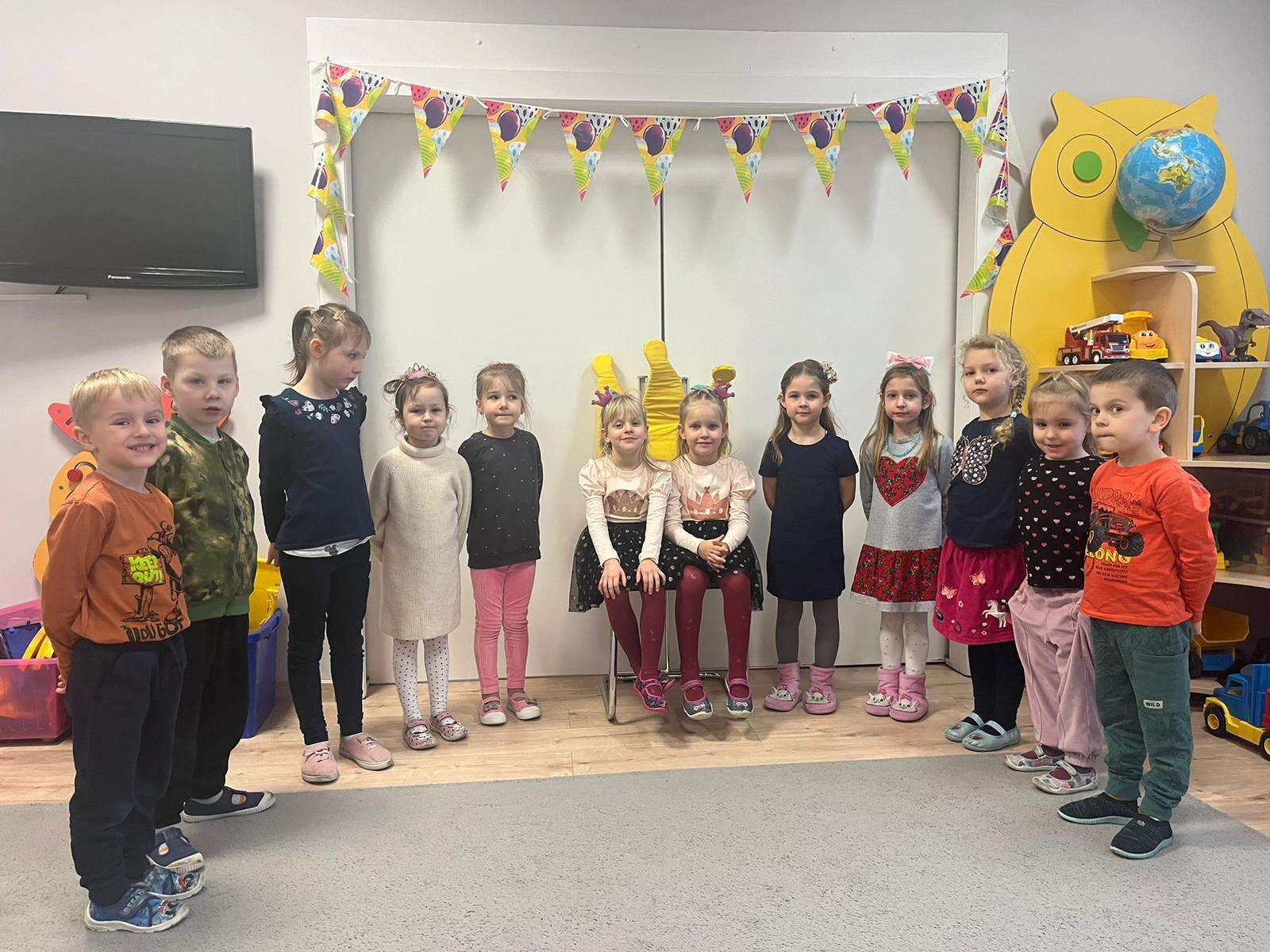Grupa dzieci z solenizantkami