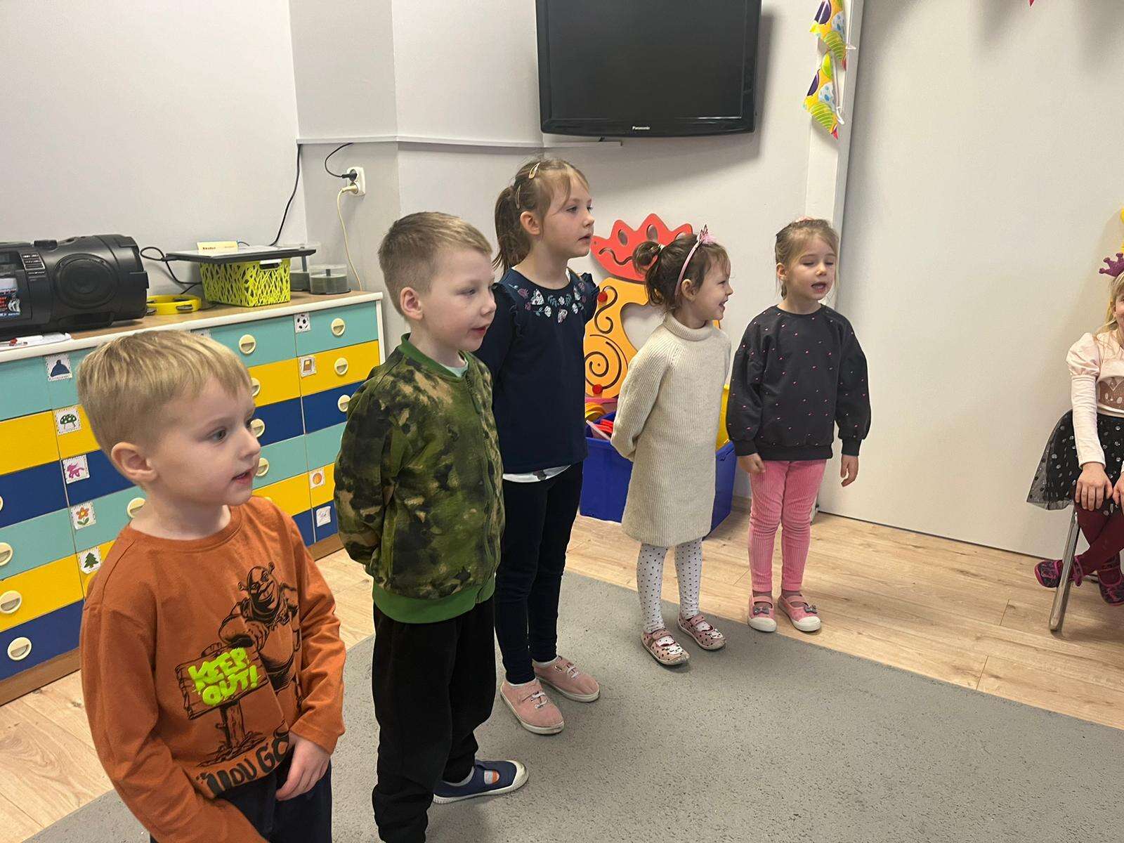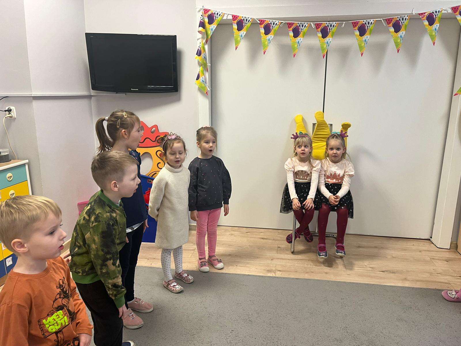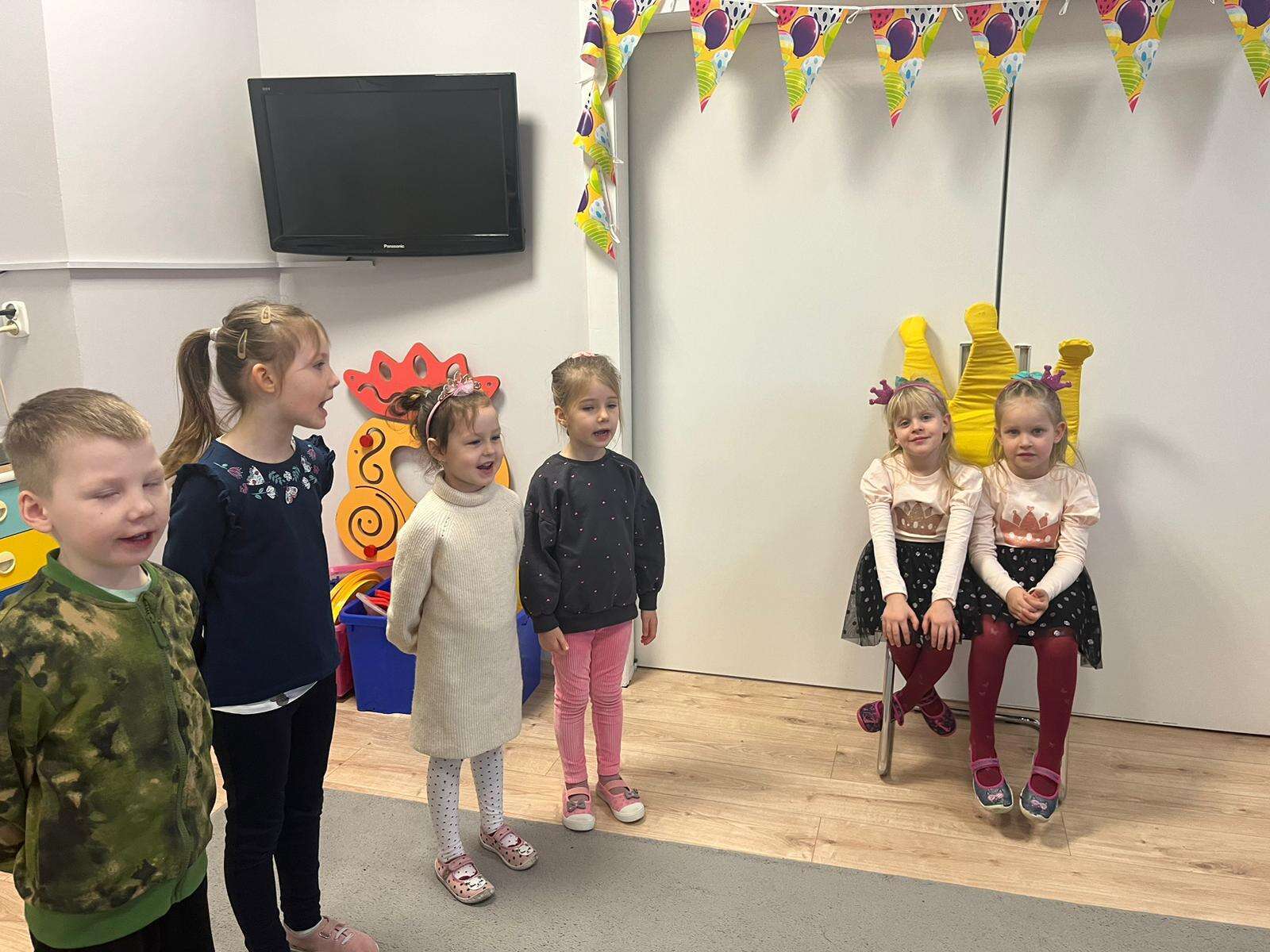 Dzieci śpiewają "sto lat "solenizantkom