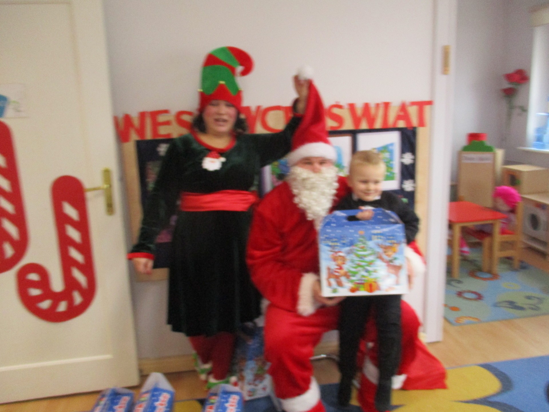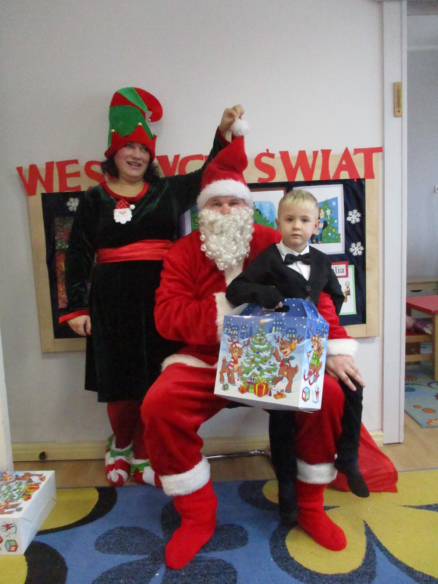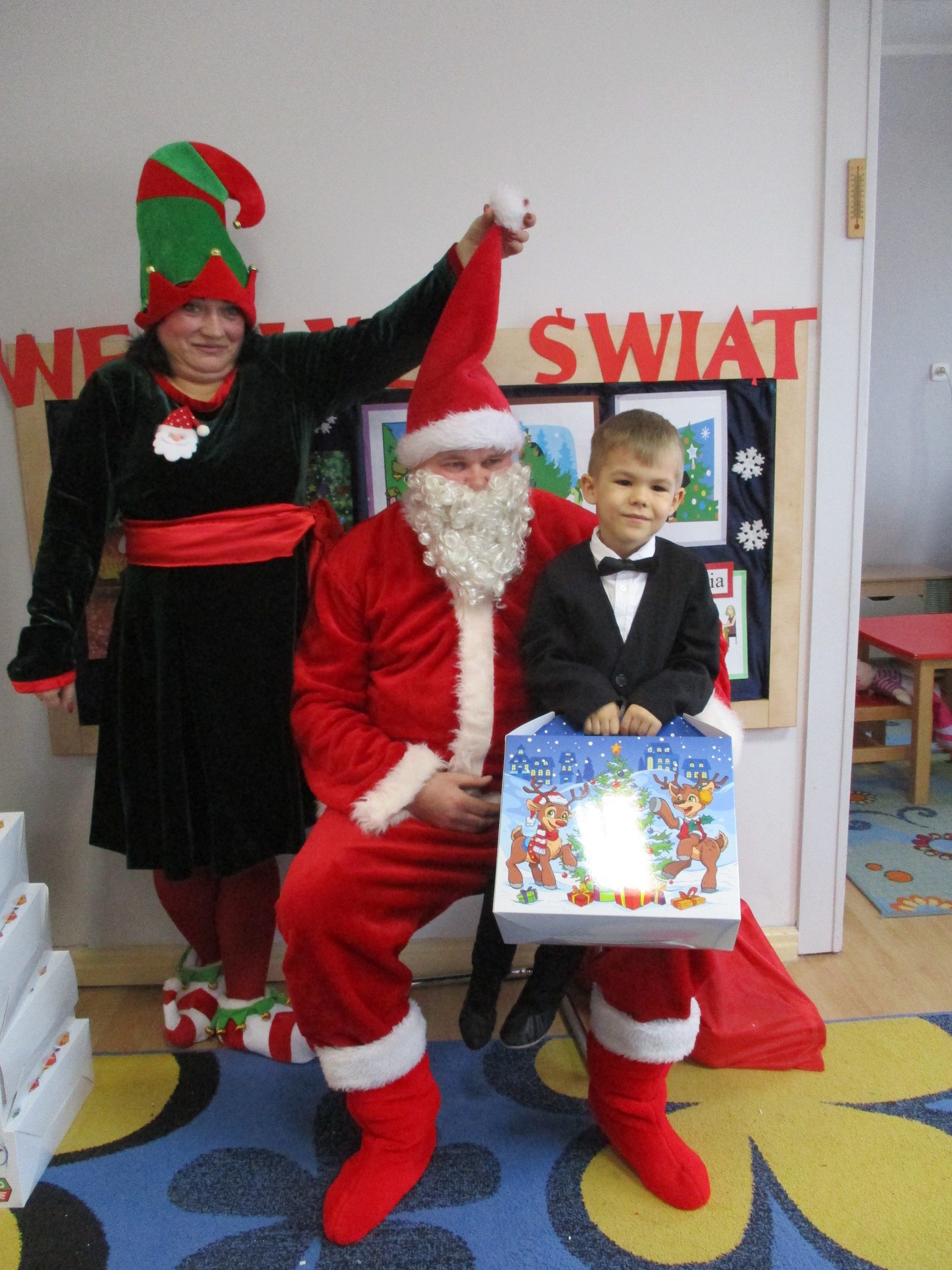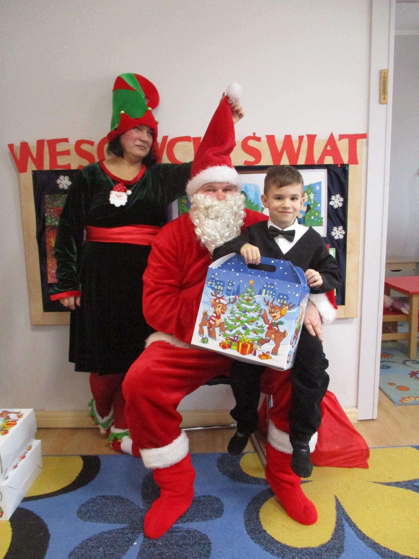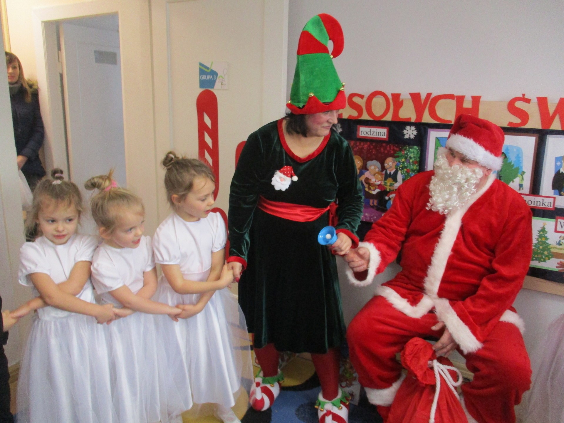 Wigilia Bożego Narodzenia to jeden z najpiękniejszych dni w roku, dlatego w naszej przedszkolnej rodzinie przeżywamy go bardzo uroczyście. Nasza przedszkolna wigilia odbyła się w piątek. Na początku dzieci zjadły wspólny posiłek. W dalszej części uroczystości dzieci odwiedził Mikołaj wraz z Elfem.Dzieliliśmy się również opłatkiem życząc sobie nawzajem wszelkiej pomyślności i Wesołych Świąt. Nasze spotkanie zakończyło się wspólnym kolędowaniem przy wigilijnym stole.