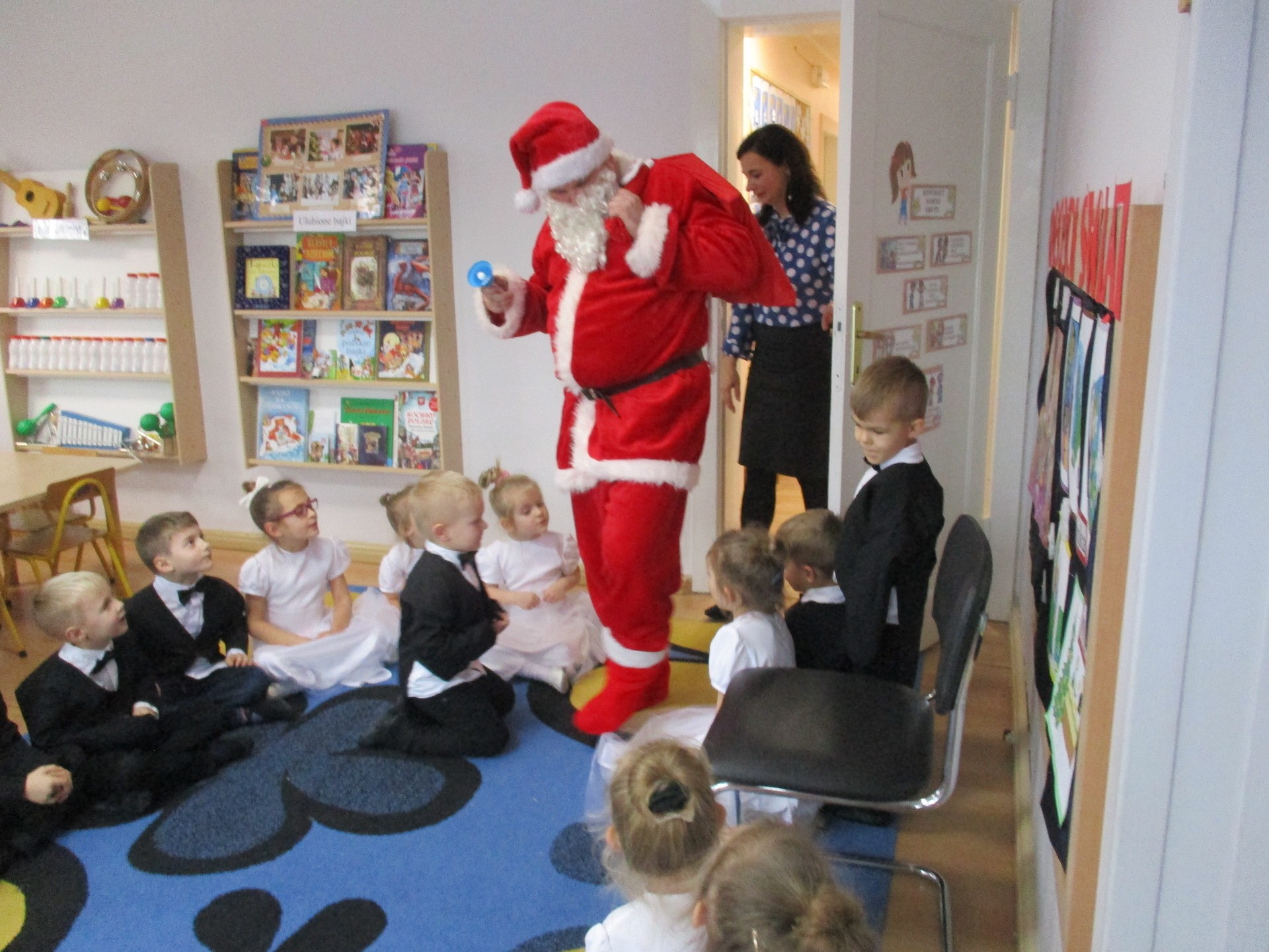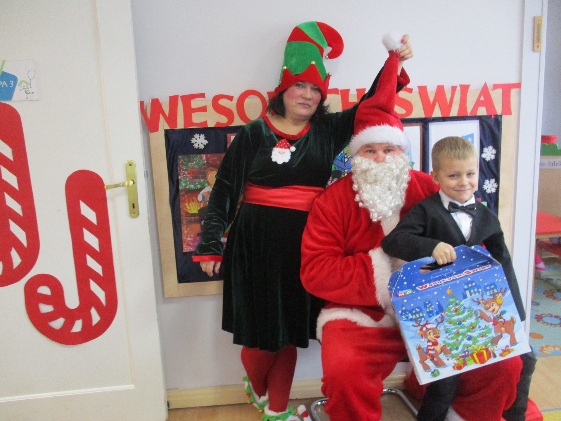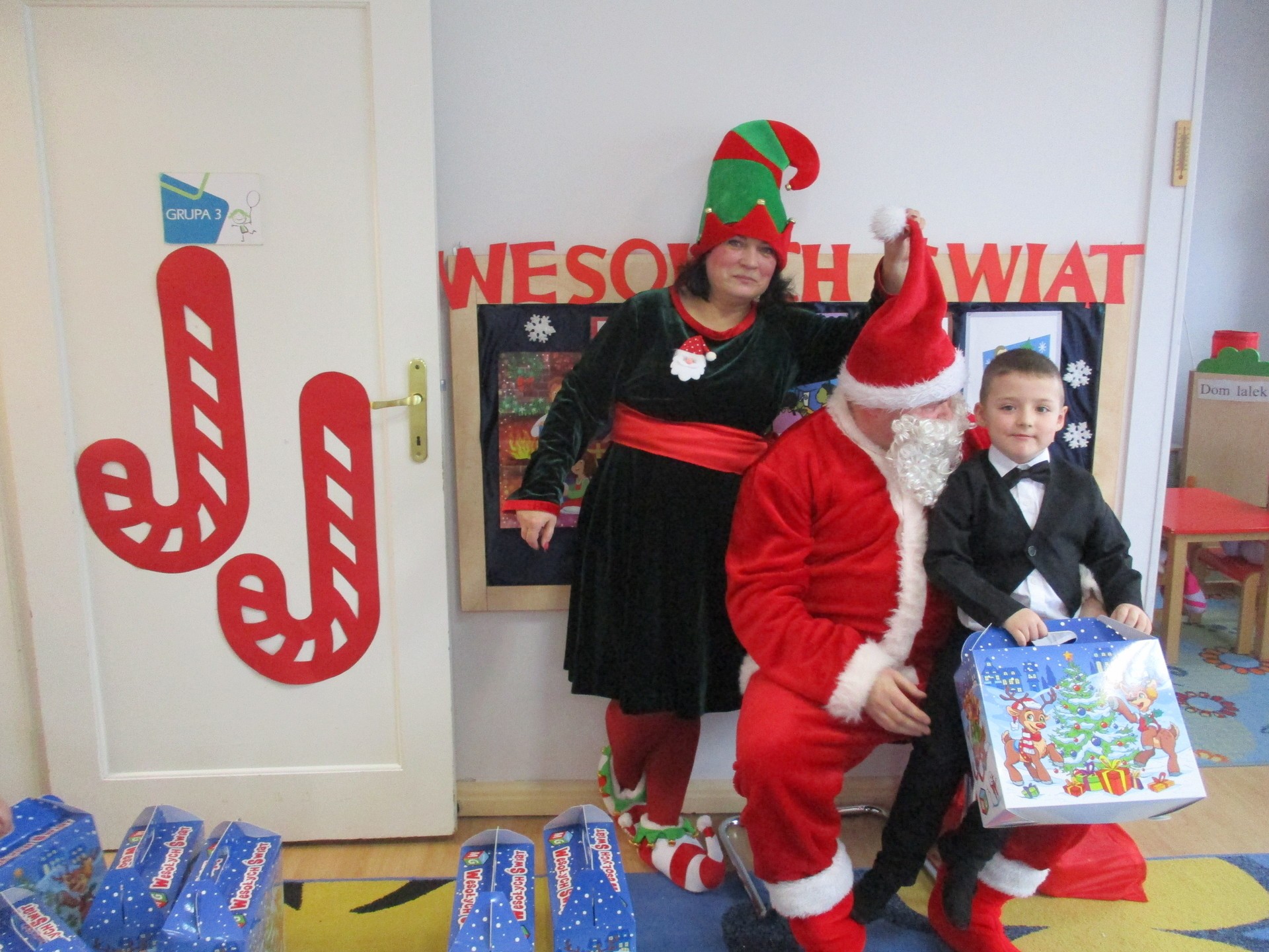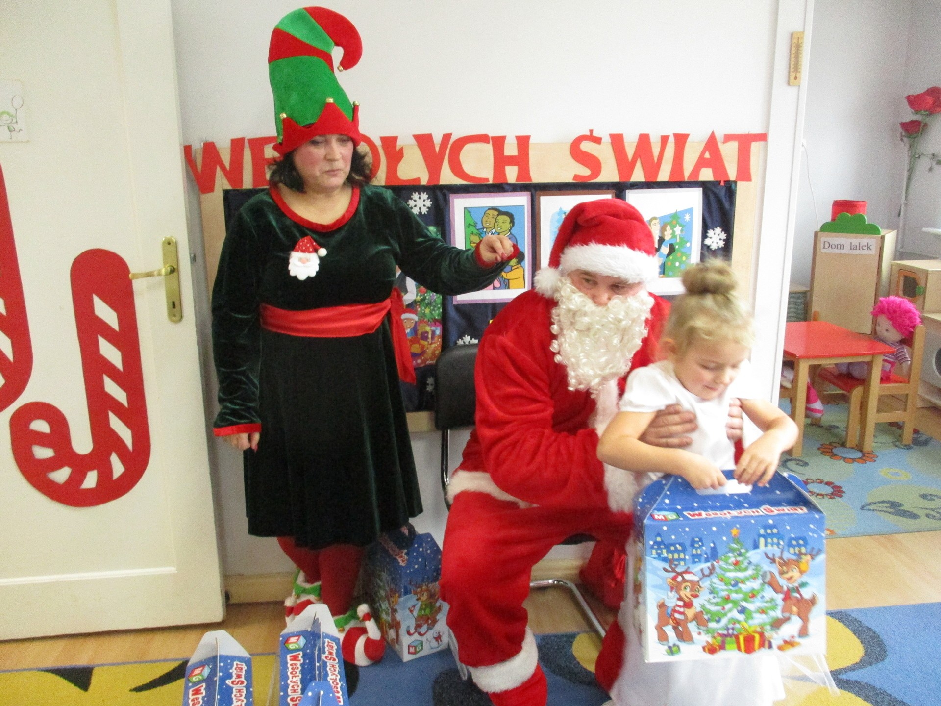 Wigilia Bożego Narodzenia to jeden z najpiękniejszych dni w roku, dlatego w naszej przedszkolnej rodzinie przeżywamy go bardzo uroczyście. Nasza przedszkolna wigilia odbyła się w piątek. Na początku dzieci zjadły wspólny posiłek. W dalszej części uroczystości dzieci odwiedził Mikołaj wraz z Elfem.Dzieliliśmy się również opłatkiem życząc sobie nawzajem wszelkiej pomyślności i Wesołych Świąt. Nasze spotkanie zakończyło się wspólnym kolędowaniem przy wigilijnym stole.