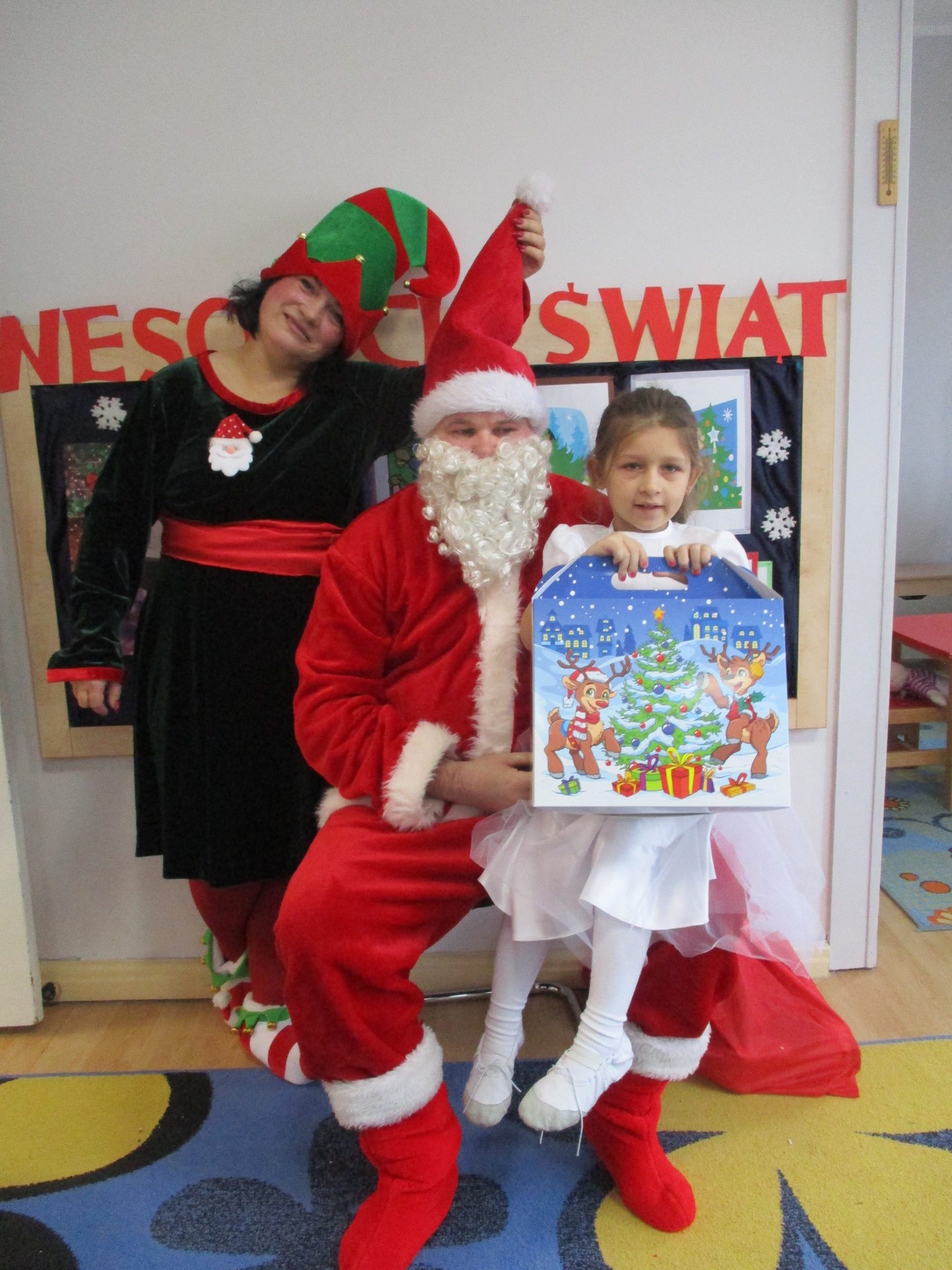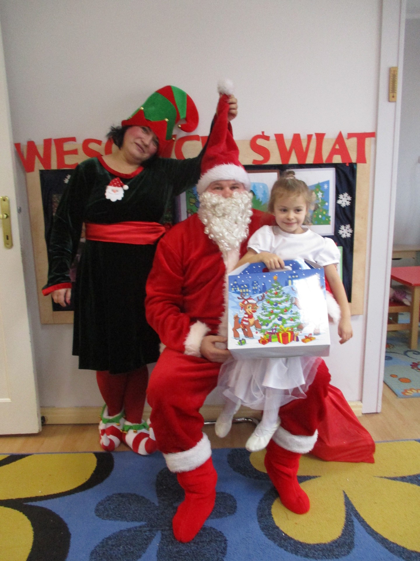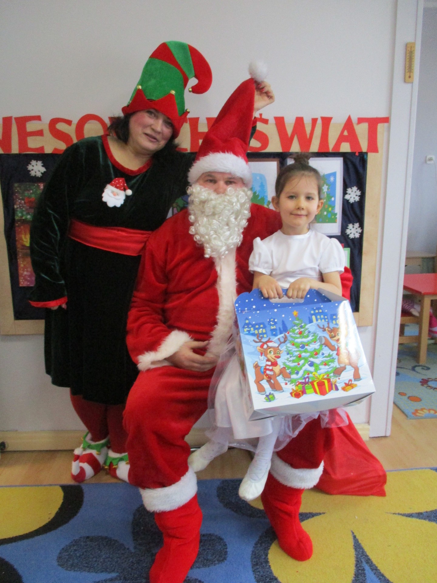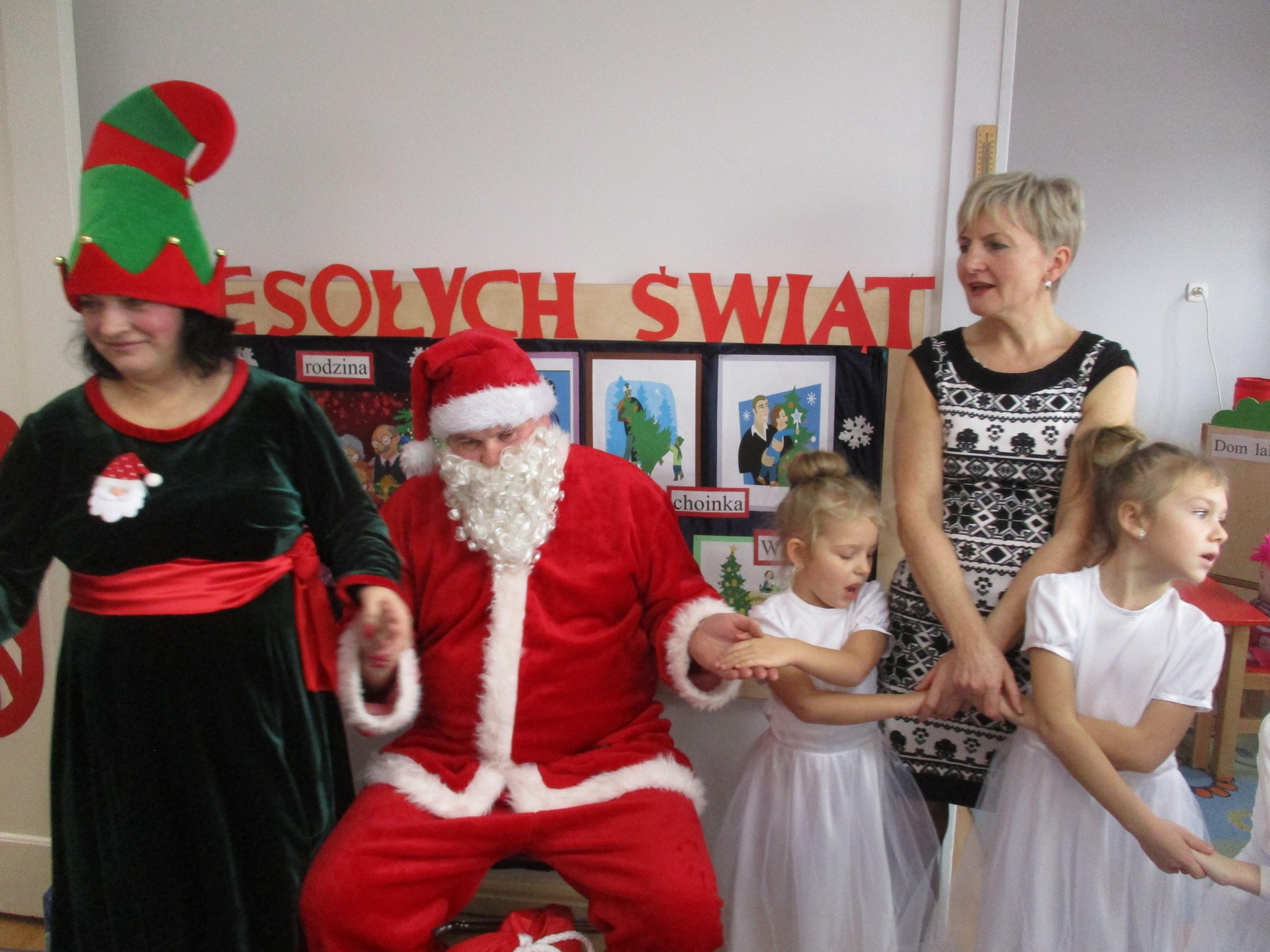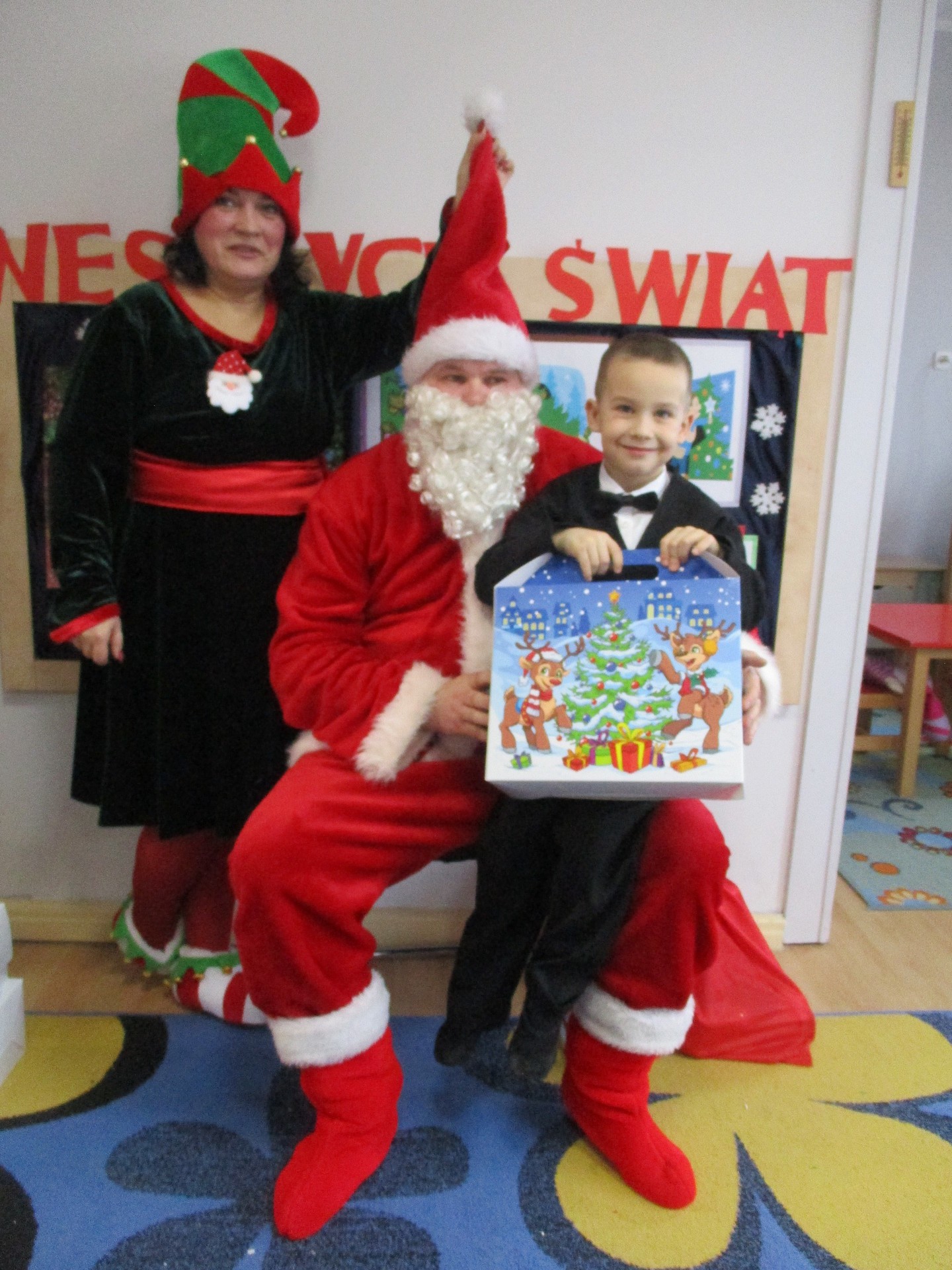 Wigilia Bożego Narodzenia to jeden z najpiękniejszych dni w roku, dlatego w naszej przedszkolnej rodzinie przeżywamy go bardzo uroczyście. Nasza przedszkolna wigilia odbyła się w piątek. Na początku dzieci zjadły wspólny posiłek. W dalszej części uroczystości dzieci odwiedził Mikołaj wraz z Elfem.Dzieliliśmy się również opłatkiem życząc sobie nawzajem wszelkiej pomyślności i Wesołych Świąt. Nasze spotkanie zakończyło się wspólnym kolędowaniem przy wigilijnym stole.
