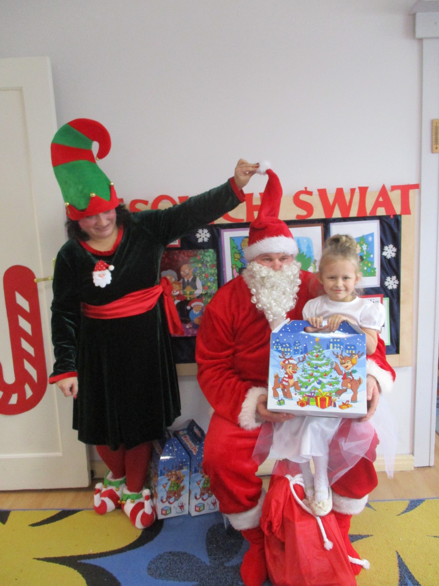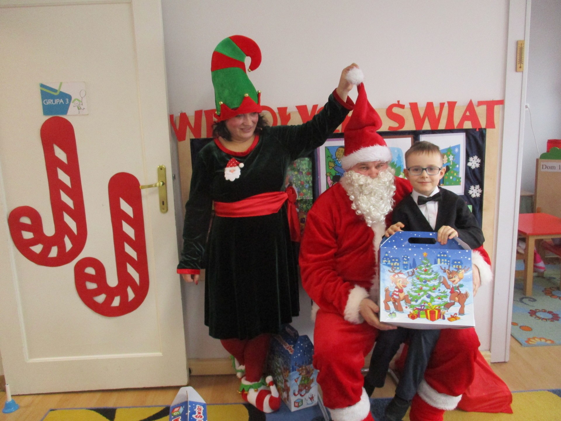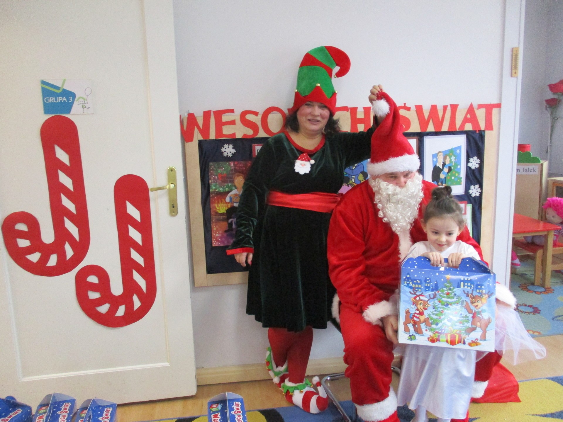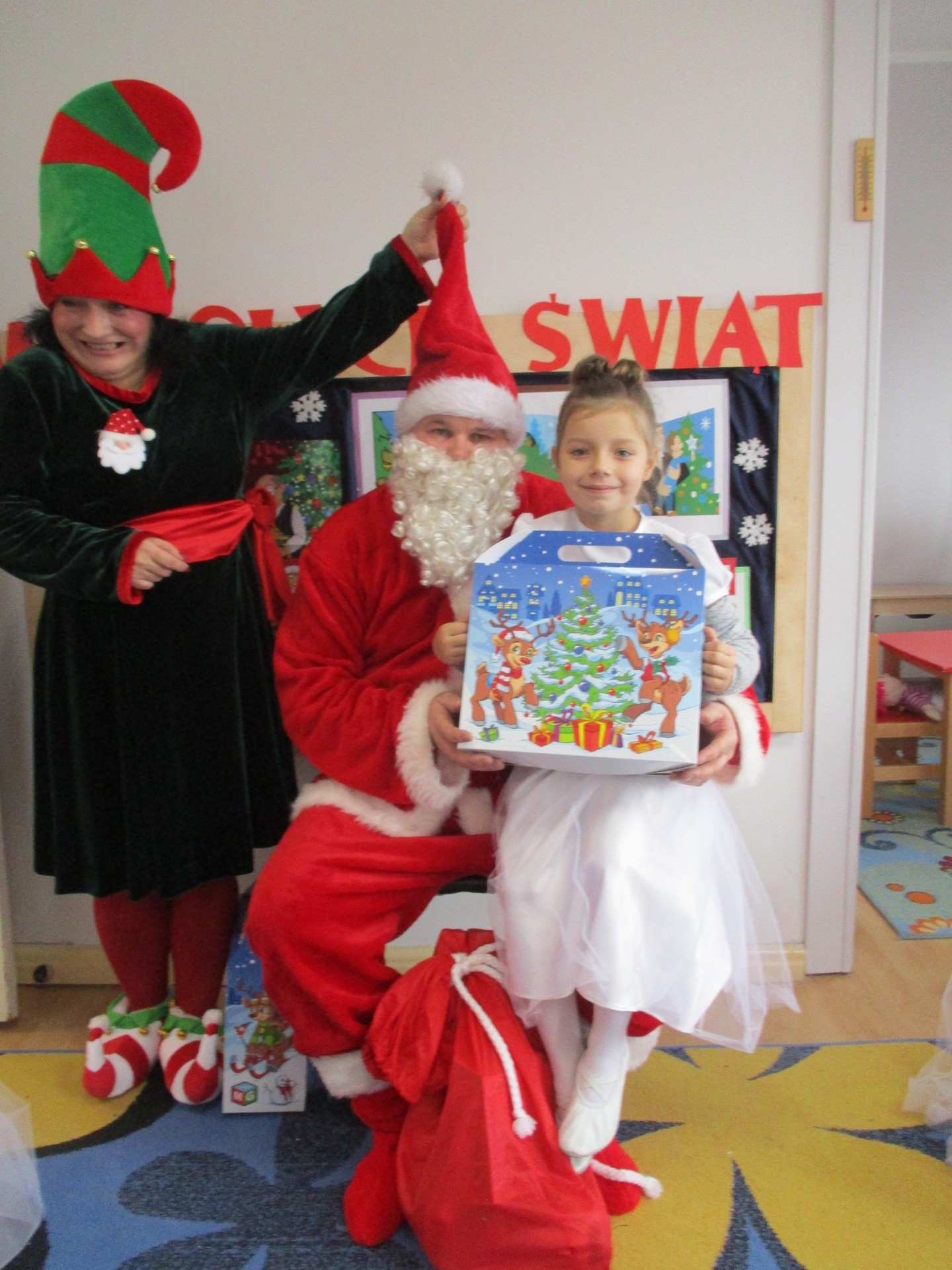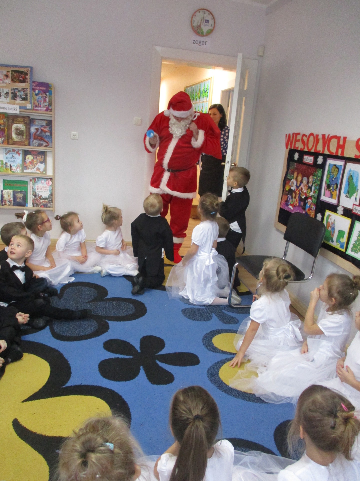 Wigilia Bożego Narodzenia to jeden z najpiękniejszych dni w roku, dlatego w naszej przedszkolnej rodzinie przeżywamy go bardzo uroczyście. Nasza przedszkolna wigilia odbyła się w piątek. Na początku dzieci zjadły wspólny posiłek. W dalszej części uroczystości dzieci odwiedził Mikołaj wraz z Elfem.Dzieliliśmy się również opłatkiem życząc sobie nawzajem wszelkiej pomyślności i Wesołych Świąt. Nasze spotkanie zakończyło się wspólnym kolędowaniem przy wigilijnym stole.