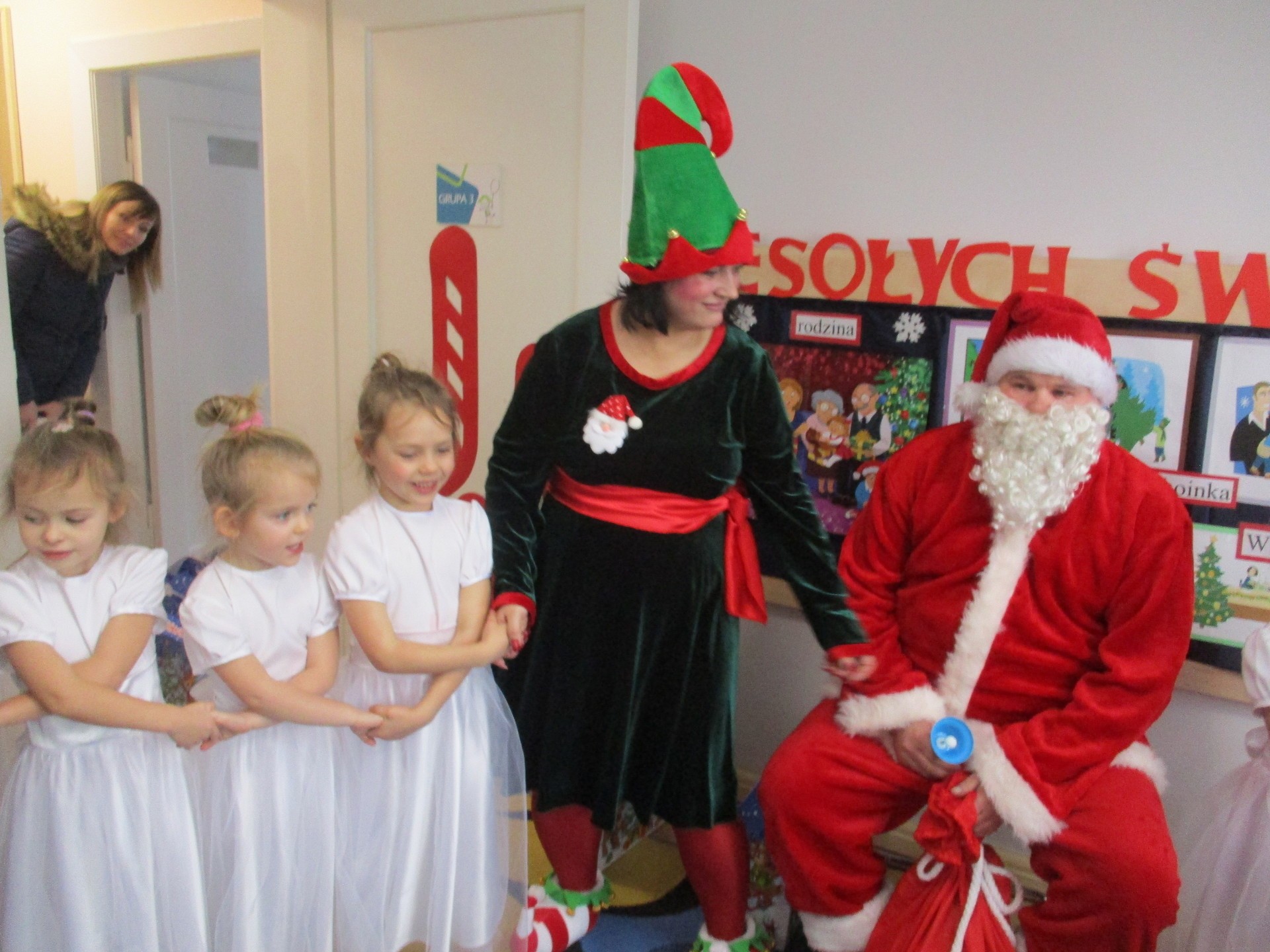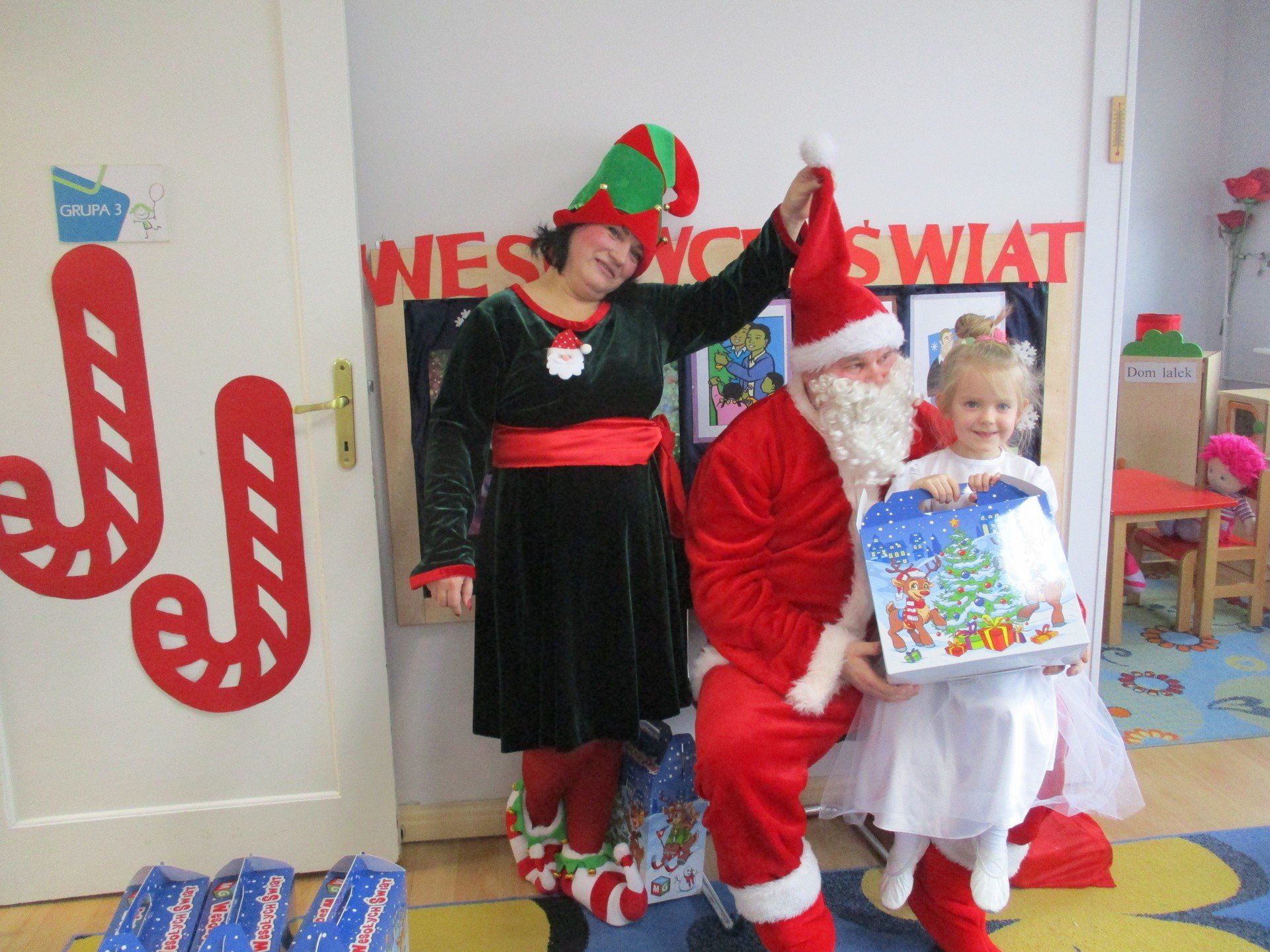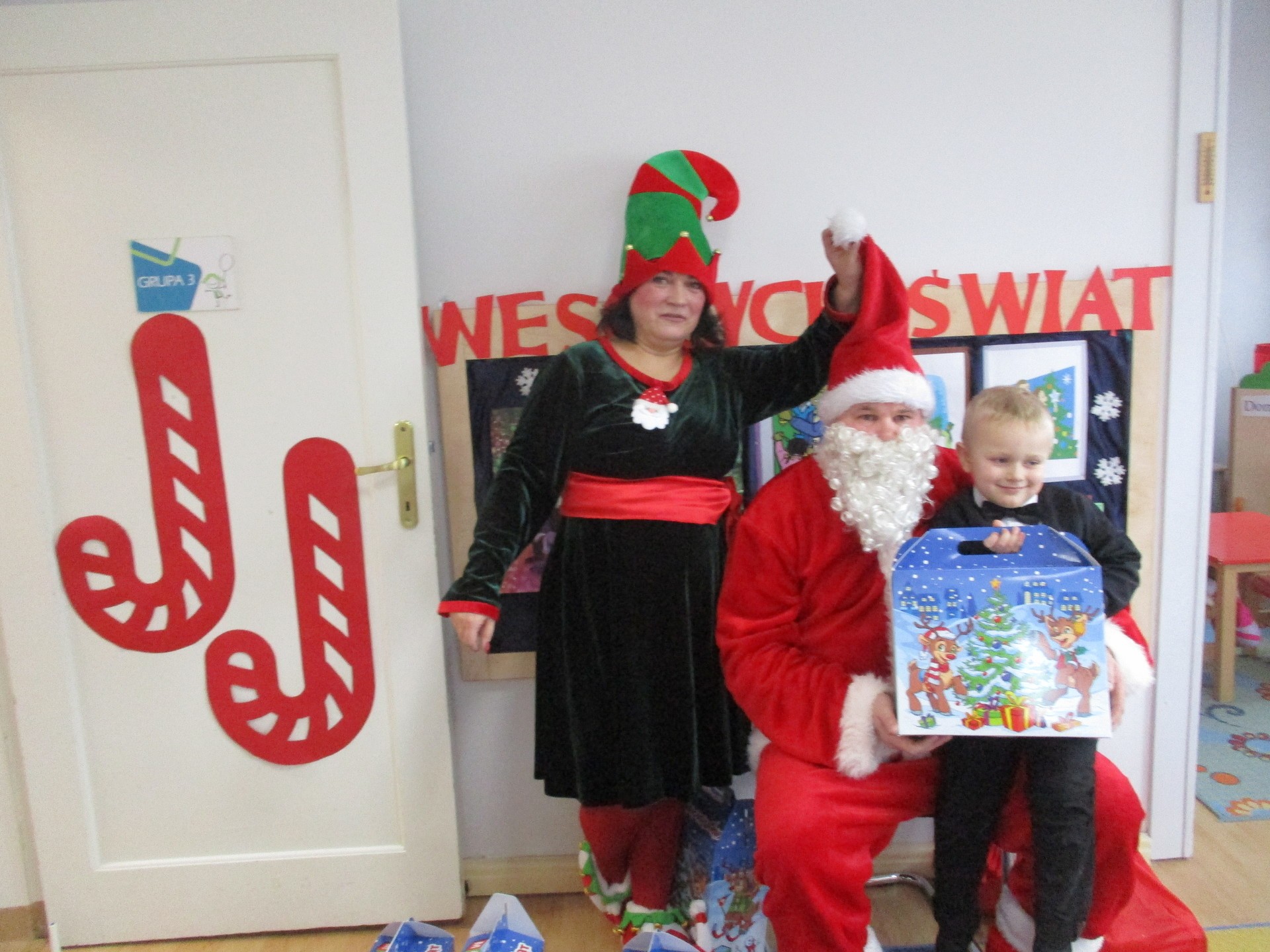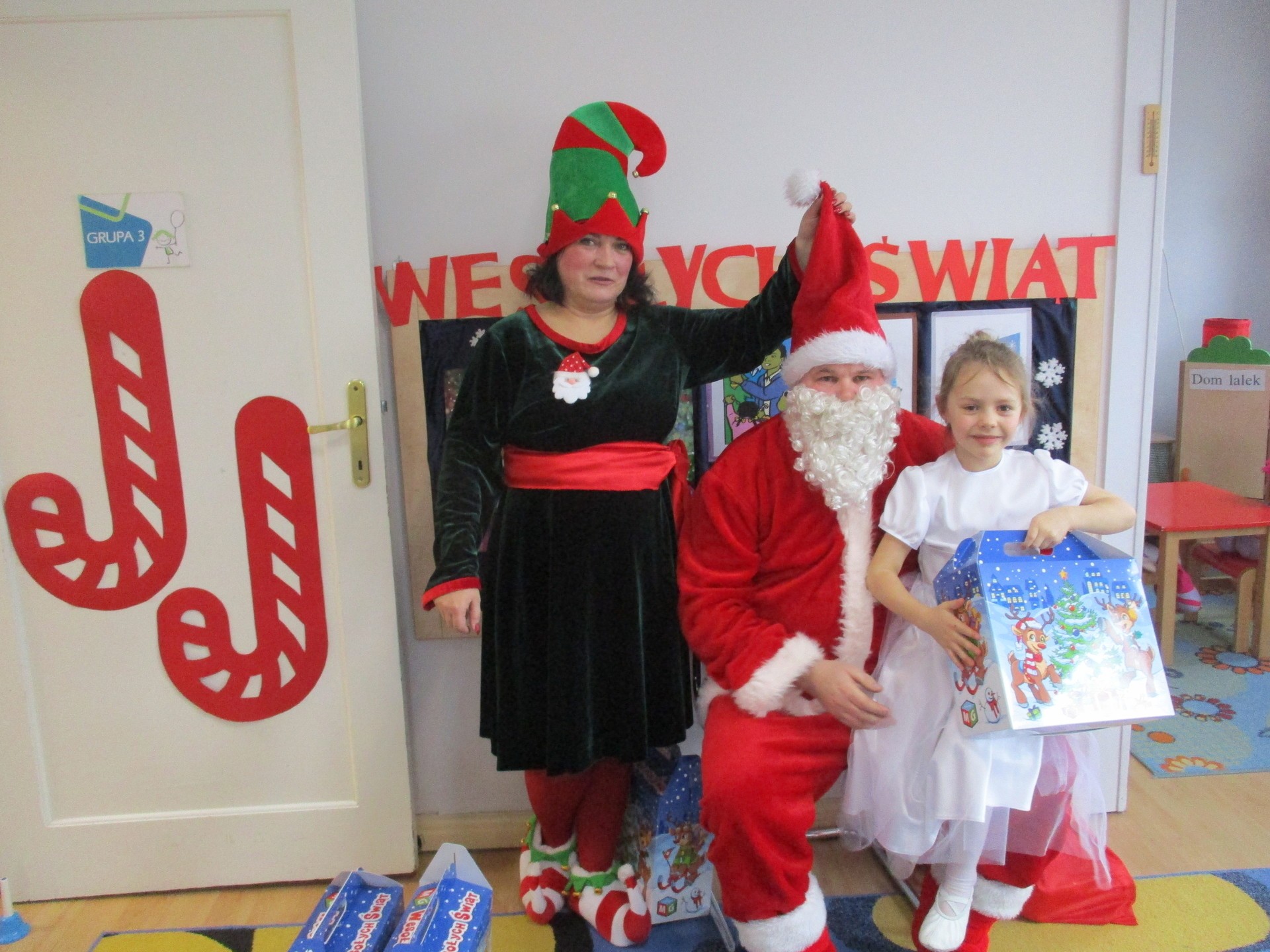 Wigilia Bożego Narodzenia to jeden z najpiękniejszych dni w roku, dlatego w naszej przedszkolnej rodzinie przeżywamy go bardzo uroczyście. Nasza przedszkolna wigilia odbyła się w piątek. Na początku dzieci zjadły wspólny posiłek. W dalszej części uroczystości dzieci odwiedził Mikołaj wraz z Elfem.Dzieliliśmy się również opłatkiem życząc sobie nawzajem wszelkiej pomyślności i Wesołych Świąt. Nasze spotkanie zakończyło się wspólnym kolędowaniem przy wigilijnym stole.