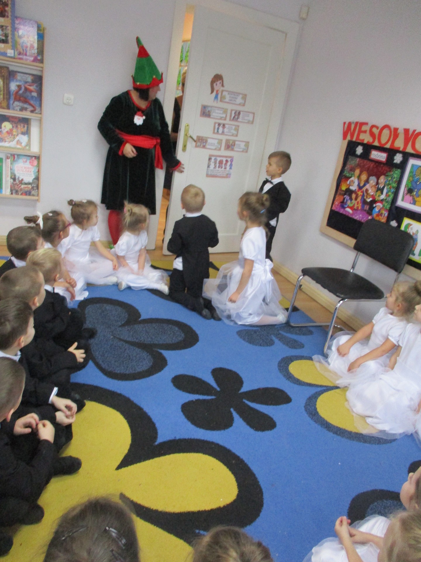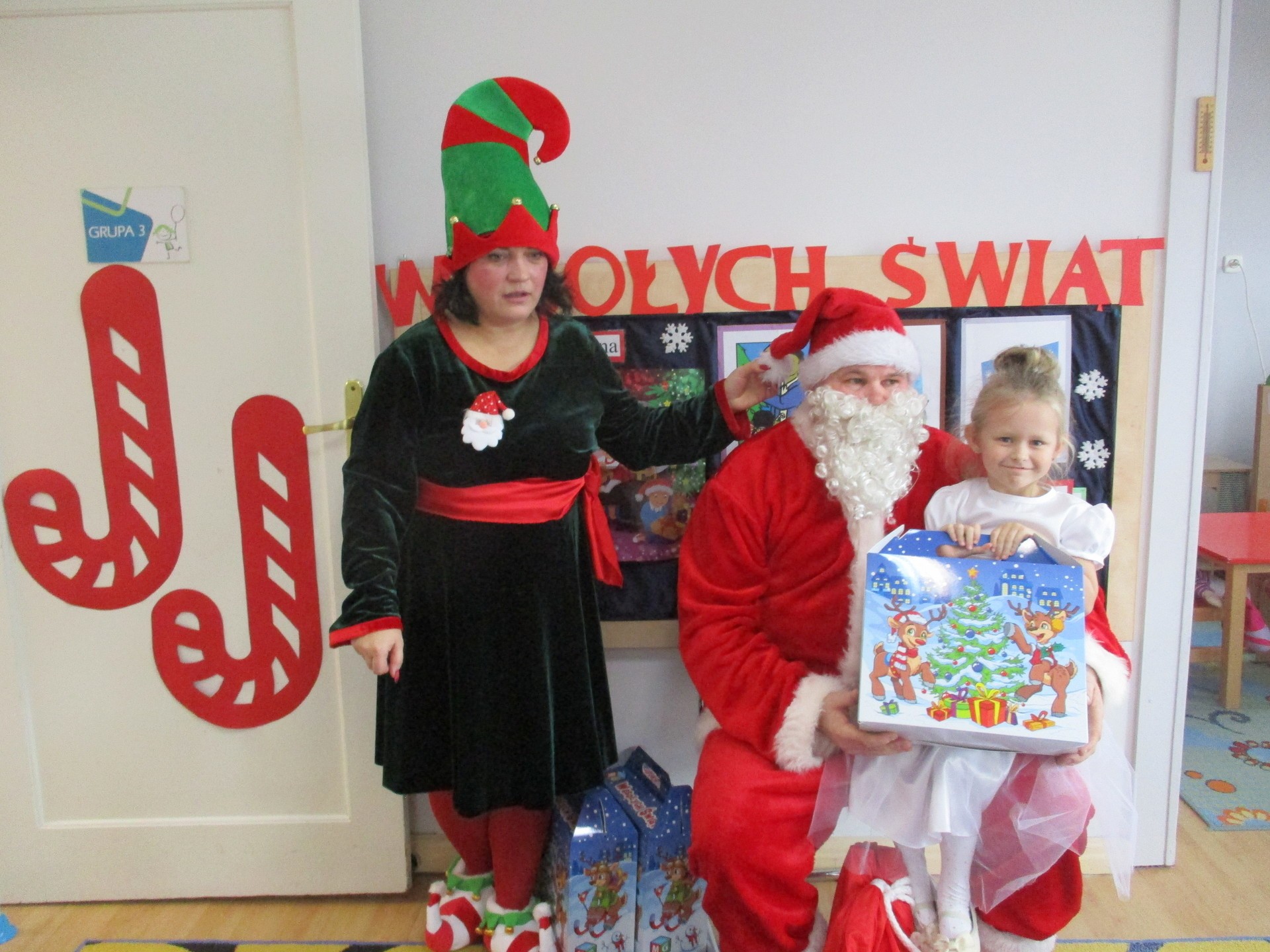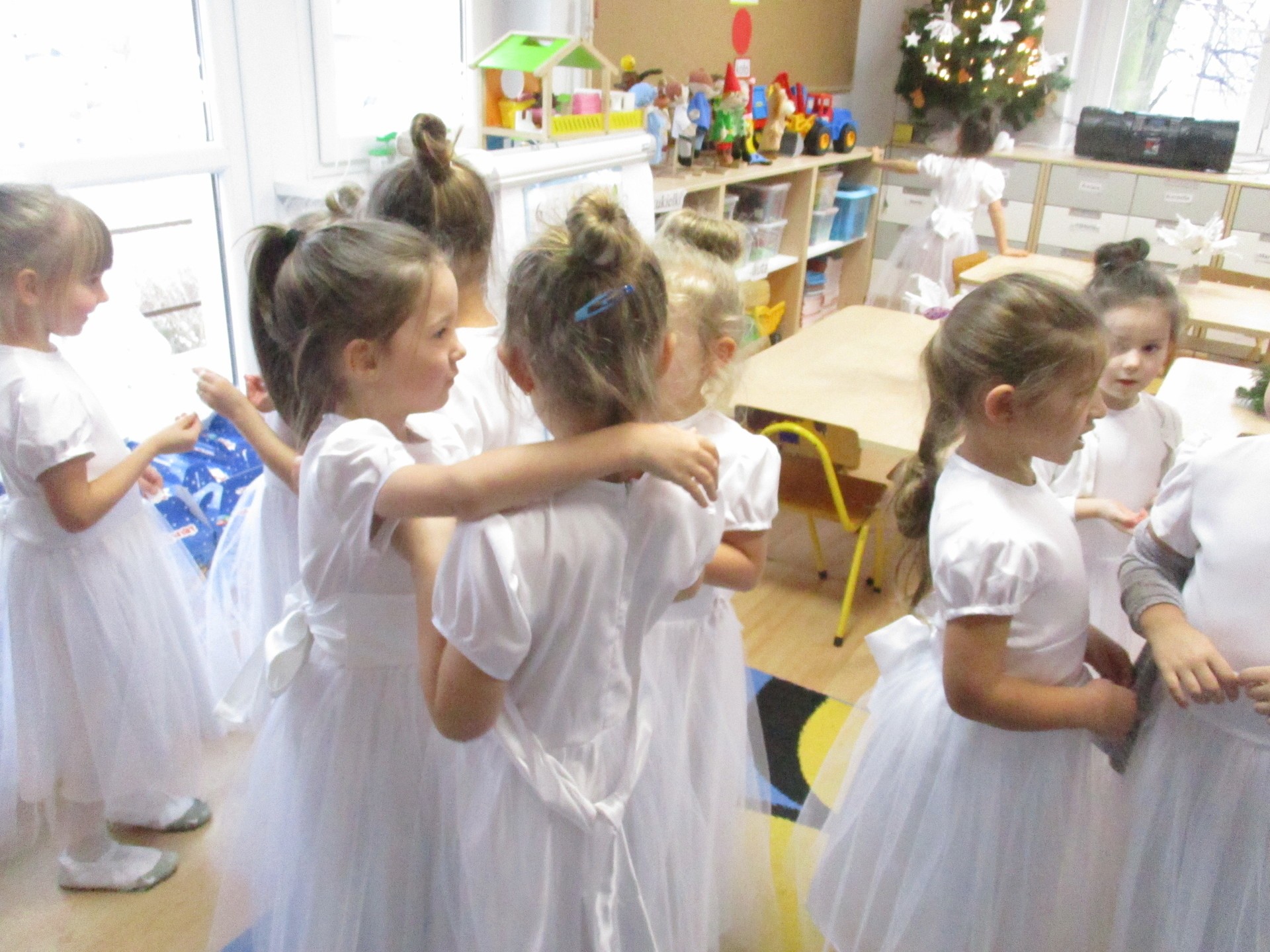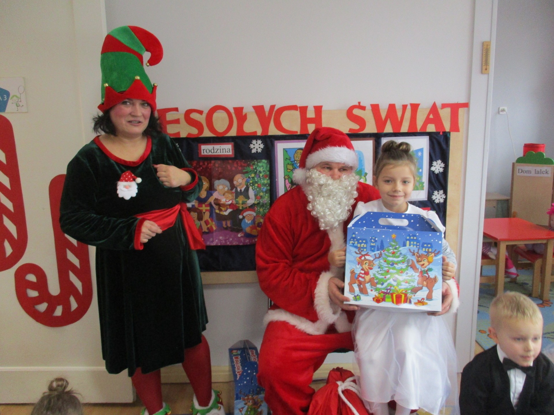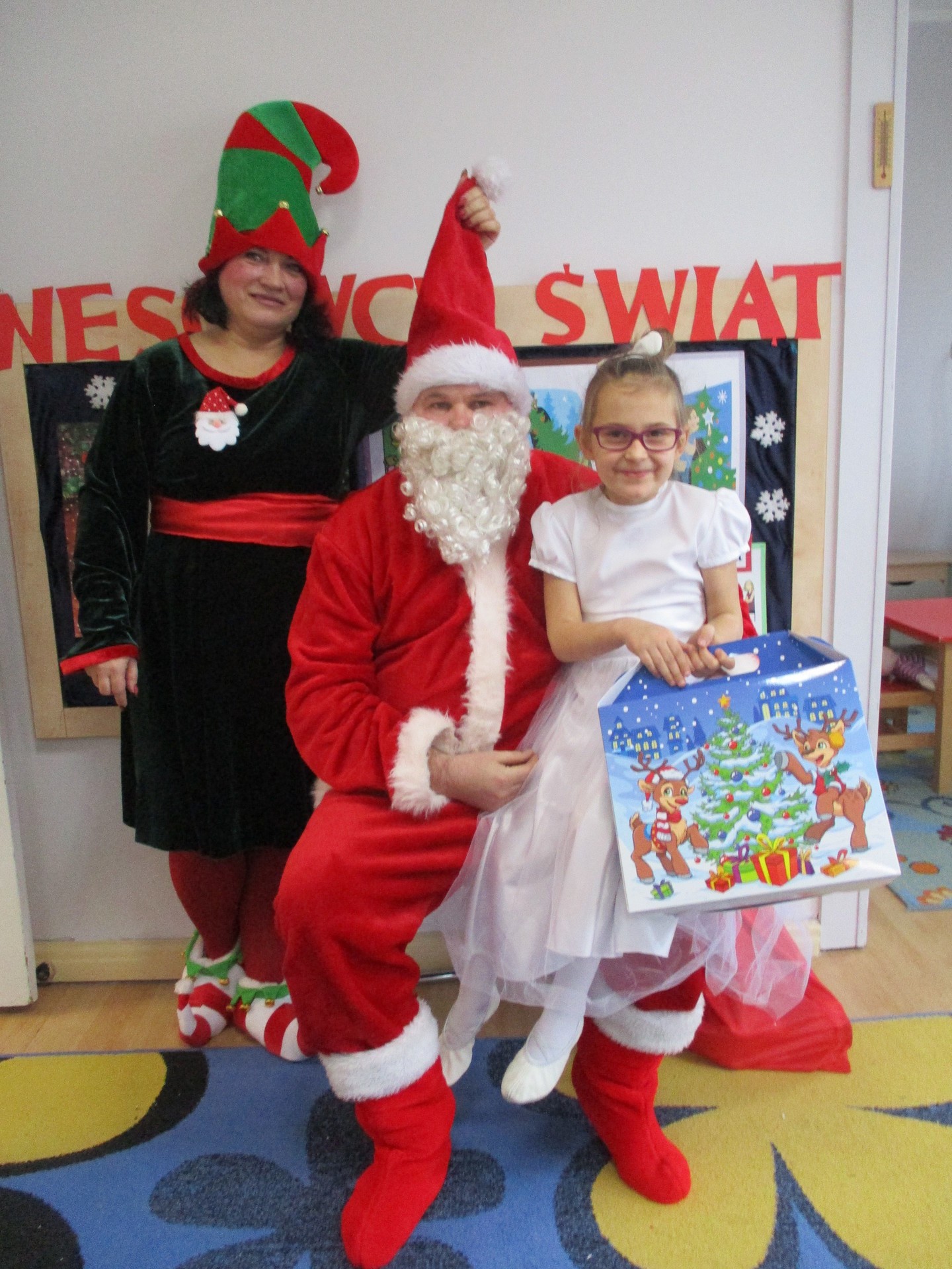 Wigilia Bożego Narodzenia to jeden z najpiękniejszych dni w roku, dlatego w naszej przedszkolnej rodzinie przeżywamy go bardzo uroczyście. Nasza przedszkolna wigilia odbyła się w piątek. Na początku dzieci zjadły wspólny posiłek. W dalszej części uroczystości dzieci odwiedził Mikołaj wraz z Elfem.Dzieliliśmy się również opłatkiem życząc sobie nawzajem wszelkiej pomyślności i Wesołych Świąt. Nasze spotkanie zakończyło się wspólnym kolędowaniem przy wigilijnym stole.