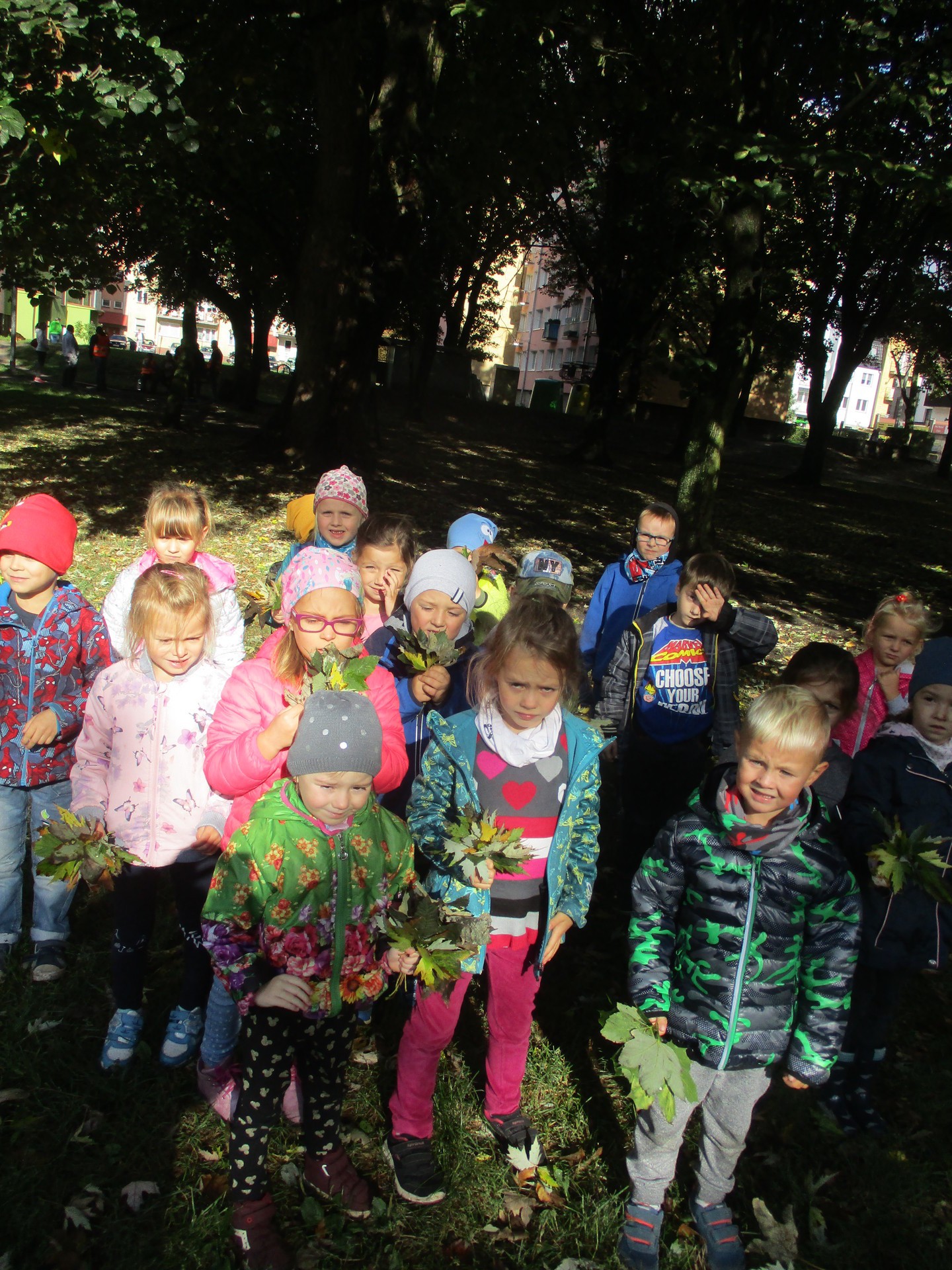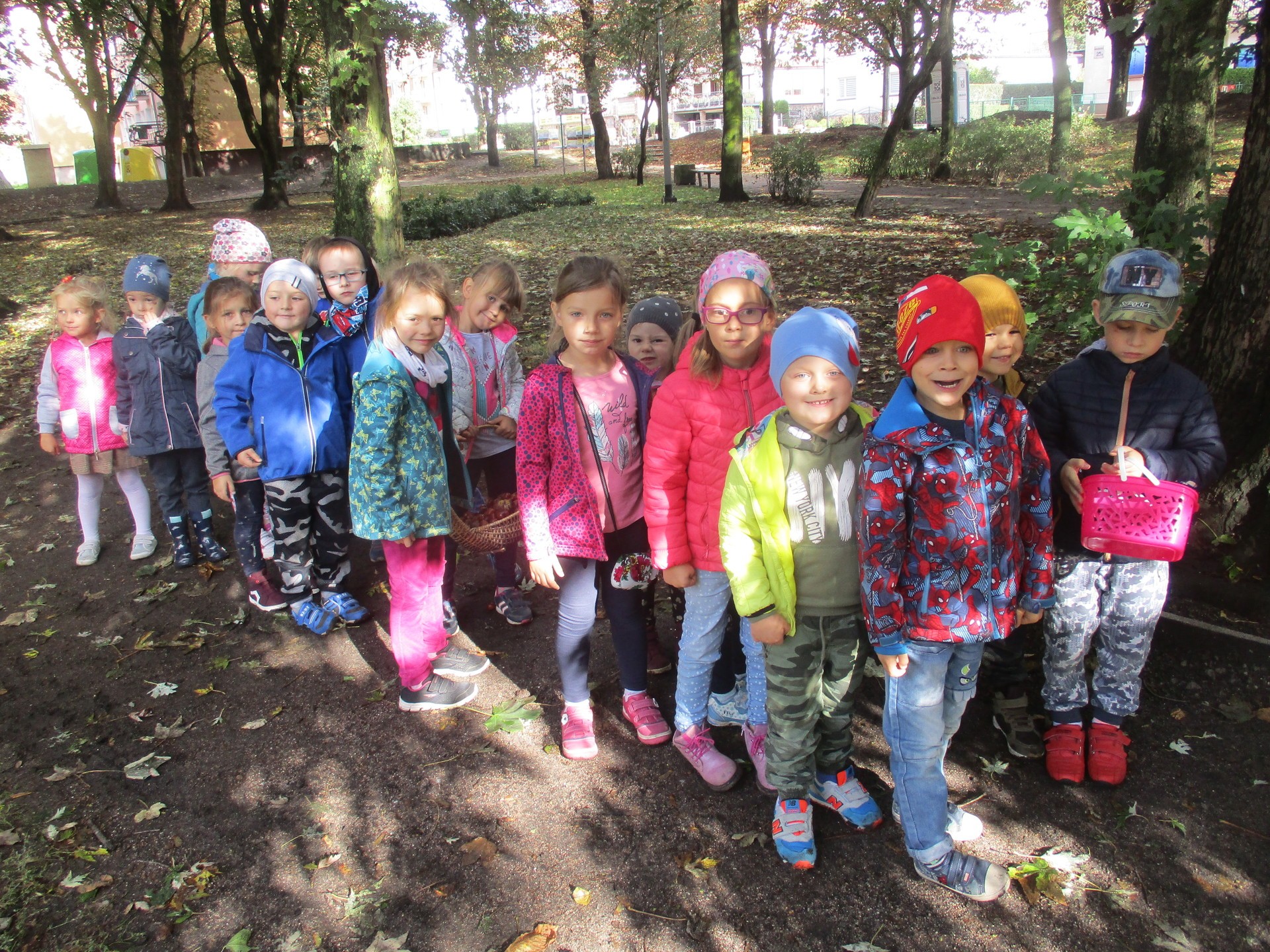 Jesień to piękna pora roku, pełna kolorów i cudownych widoków. Tegoroczna jesień jest wyjątkowo ciepła, dlatego też zachęciła ona przedszkolaków z gr. III do spaceru po parku. Dzieci podziwiały park w jesiennej szacie, otaczającą przyrodę, rozpoznawały gatunki drzew, owoce i liście, które zbierały w celu wzbogacenia kącika przyrody.