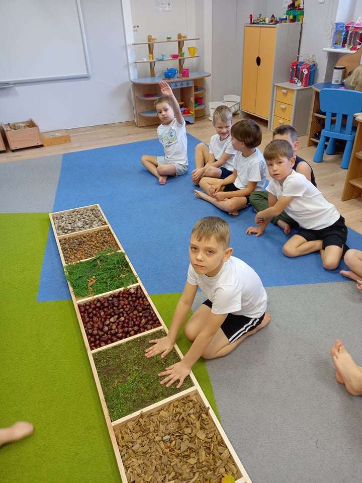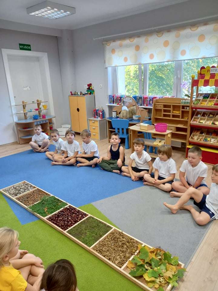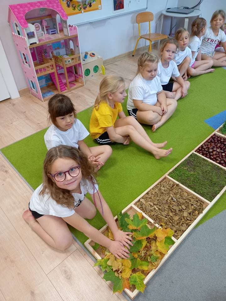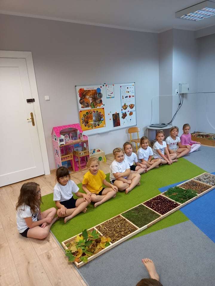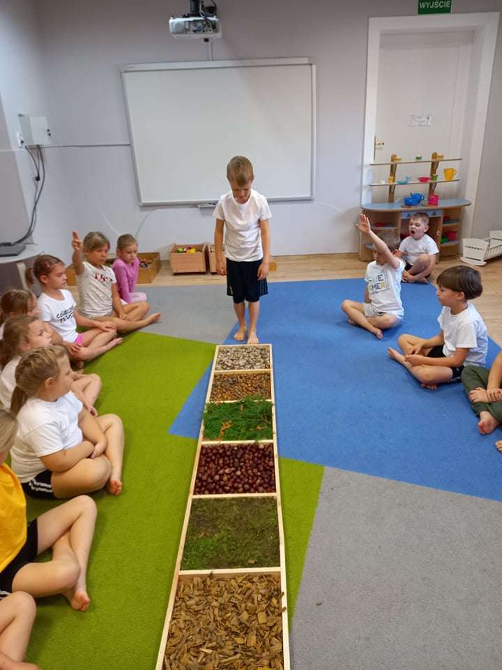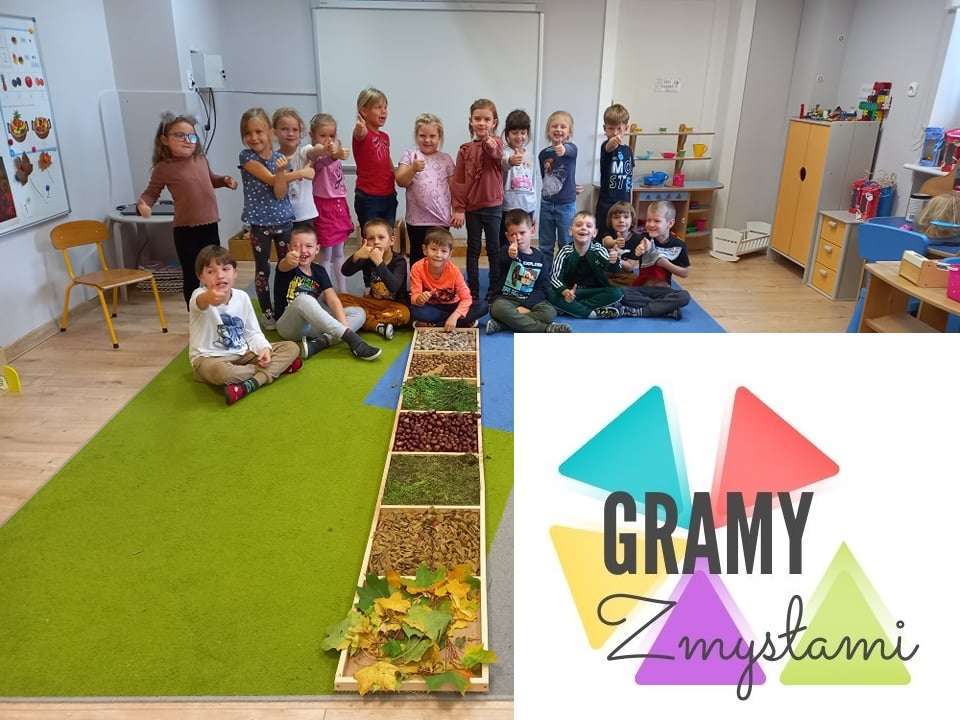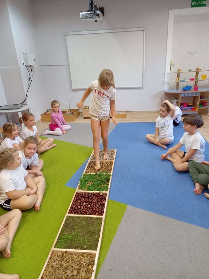 W ramach realizacji pierwszego zadania z Ogólnopolskiego Projektu Edukacyjnego "Gramy zmysłami" grupa IV stworzyła ścieżkę sensoryczną z wykorzystaniem materiału naturalnego- jesiennych darów przyrody.