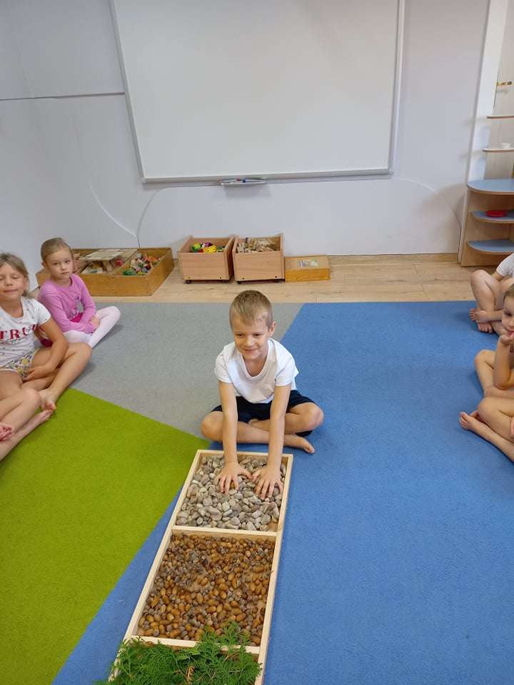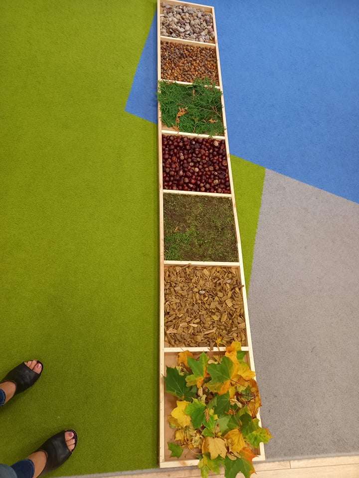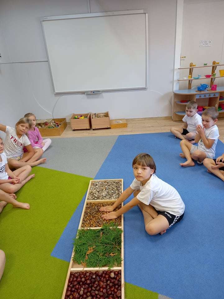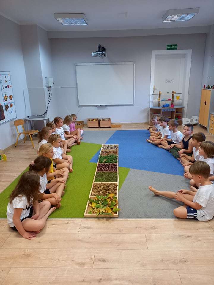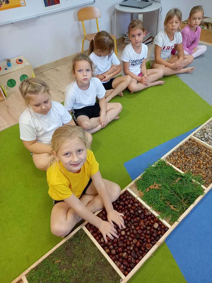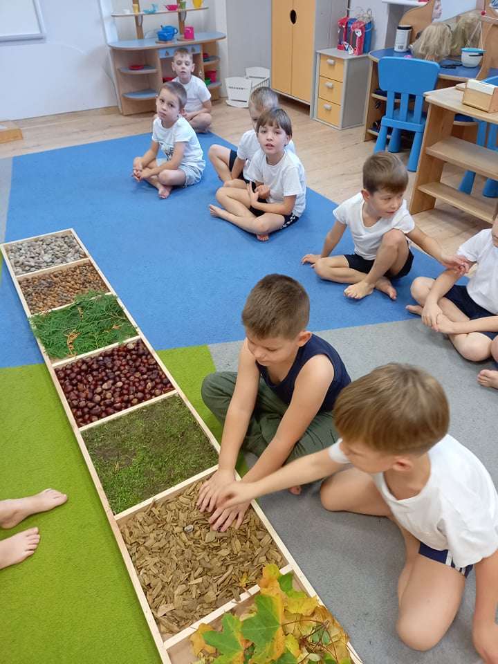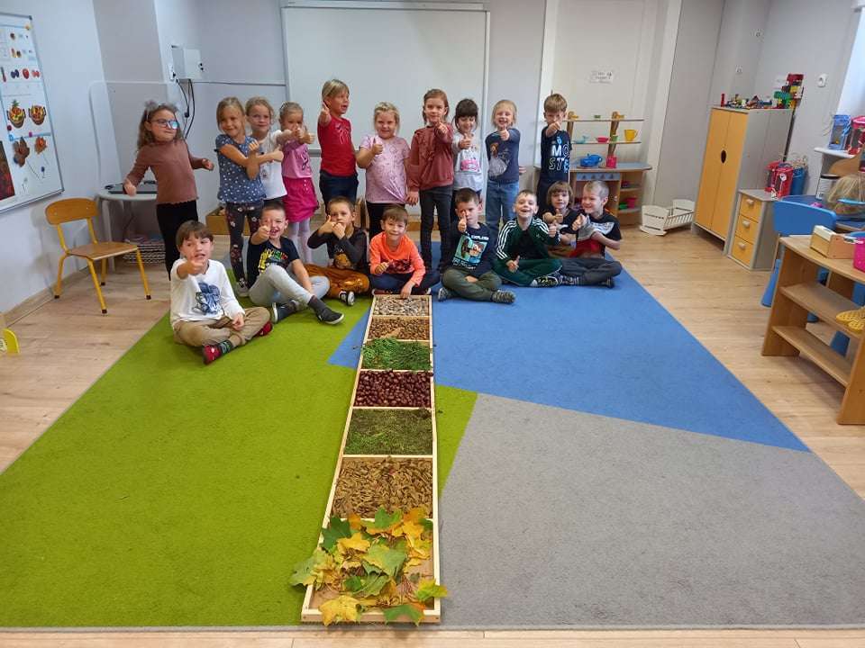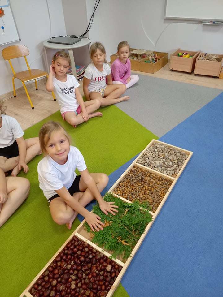W ramach realizacji pierwszego zadania z Ogólnopolskiego Projektu Edukacyjnego "Gramy zmysłami" grupa IV stworzyła ścieżkę sensoryczną z wykorzystaniem materiału naturalnego- jesiennych darów przyrody.