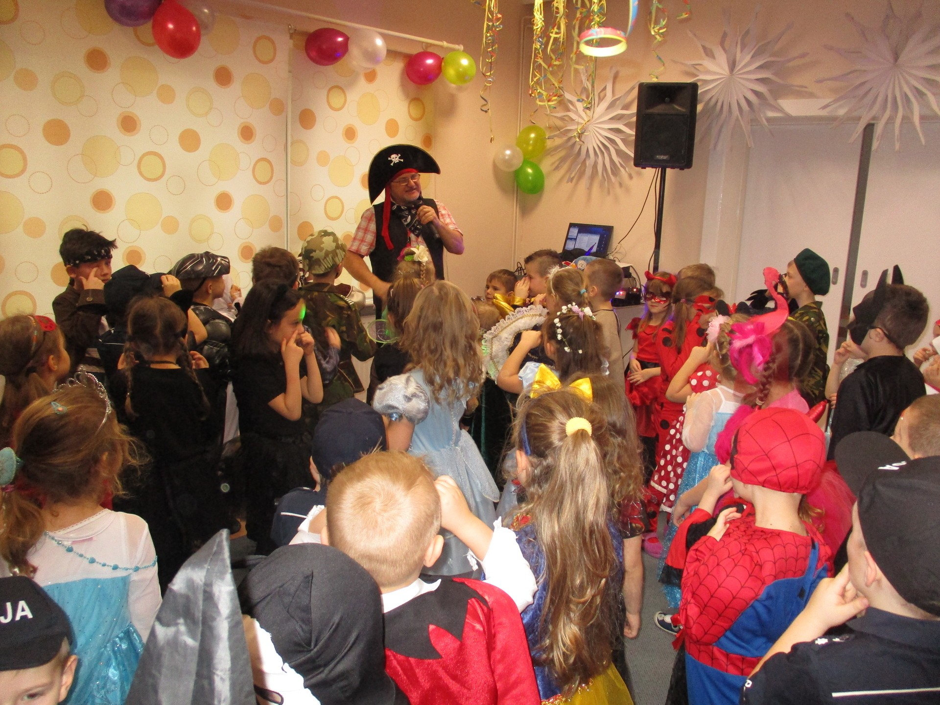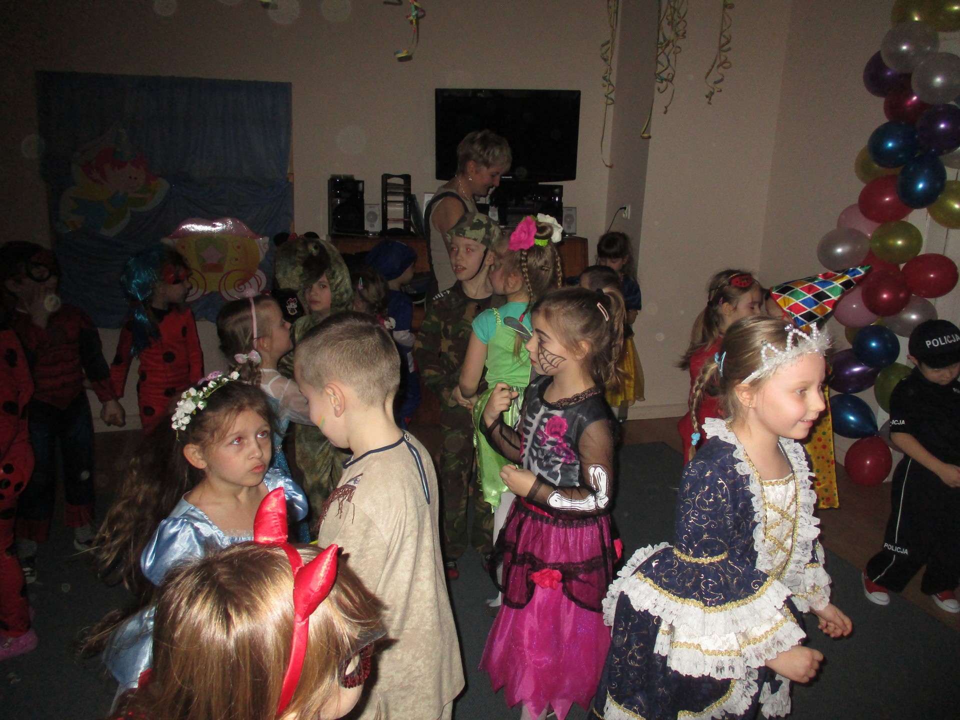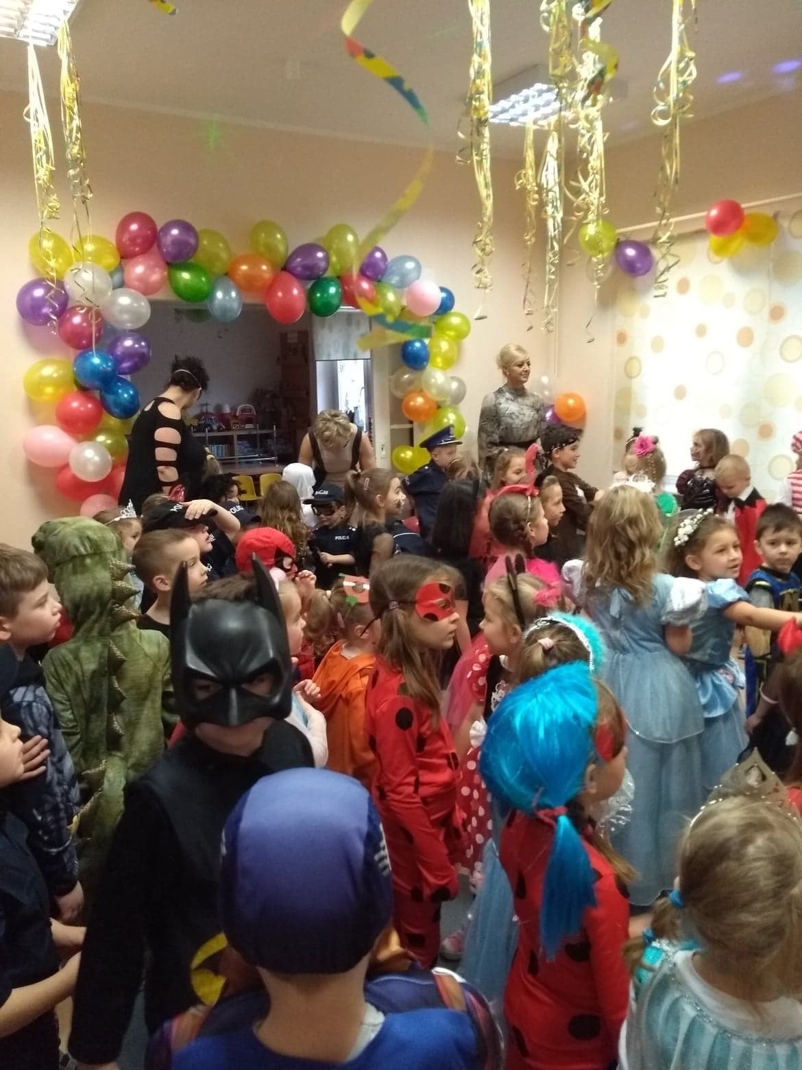 Karnawał to miła tradycja przepełniona muzyką i zabawą, gdzie ważnym elementem tego okresu są bale karnawałowe. Bal karnawałowy dla przedszkolaków to dzień niezwykły, często wyczekiwany przez wiele tygodni. Jest atrakcją bardzo lubianą przez dzieci, dostarczającą im wielu przeżyć i radości. Tak też było u nas. W dniu 05.02.2019r. w naszym Przedszkolu odbył się Bal Karnawałowy. Tego dnia już od rana w Przedszkolu pojawiały się kolorowe postacie. Dzieci przebrane były za bohaterów znanych bajek, w salach przedszkolnych można było spotkać wróżki, królewny, delikatne motylki, rycerzy, piratów, policjantów, Spider-Mana, Batmana, ...nie sposób zliczyć i wymienić tych wszystkich postaci.Rozpoznać dzieci było bardzo trudno. W pierwszej kolejności dzieci miały możliwość pozowania do zdjęcia grupowego oraz zdjęć indywidualnych. Następnie wszyscy uczestnicy balu przeszli do sali balowej. Wystrój sali wprowadził w radosny nastrój oraz zachęcał wszystkich do wesołej zabawy. Na tą wyjątkową okazję zaprosiliśmy do prowadzenia balu wodzireja, który zachęcał wszystkich do tańca przygotowaną muzyką. Dzieci świetnie się bawiły uczestnicząc wspólnie ze swoimi paniami w zabawach. Na sali podczas pląsów robiło się kolorowo, wszyscy bawili się wesoło, uśmiech nie znikał z twarzy mimo chwilowego zmęczenia. Po kilku chwilach wypoczynku muzyka znowu porwała wszystkich do tańca w rytm samby, walczyka, Kaczuch. Kiedy czas zabawy dobiegł końca dzieci z żalem opuszczały salę balową. Bal umożliwił dzieciom i wychowawcom spędzenie czasu w miłej atmosferze. Wspólna zabawa przyniosła wiele radości naszym wychowankom.
