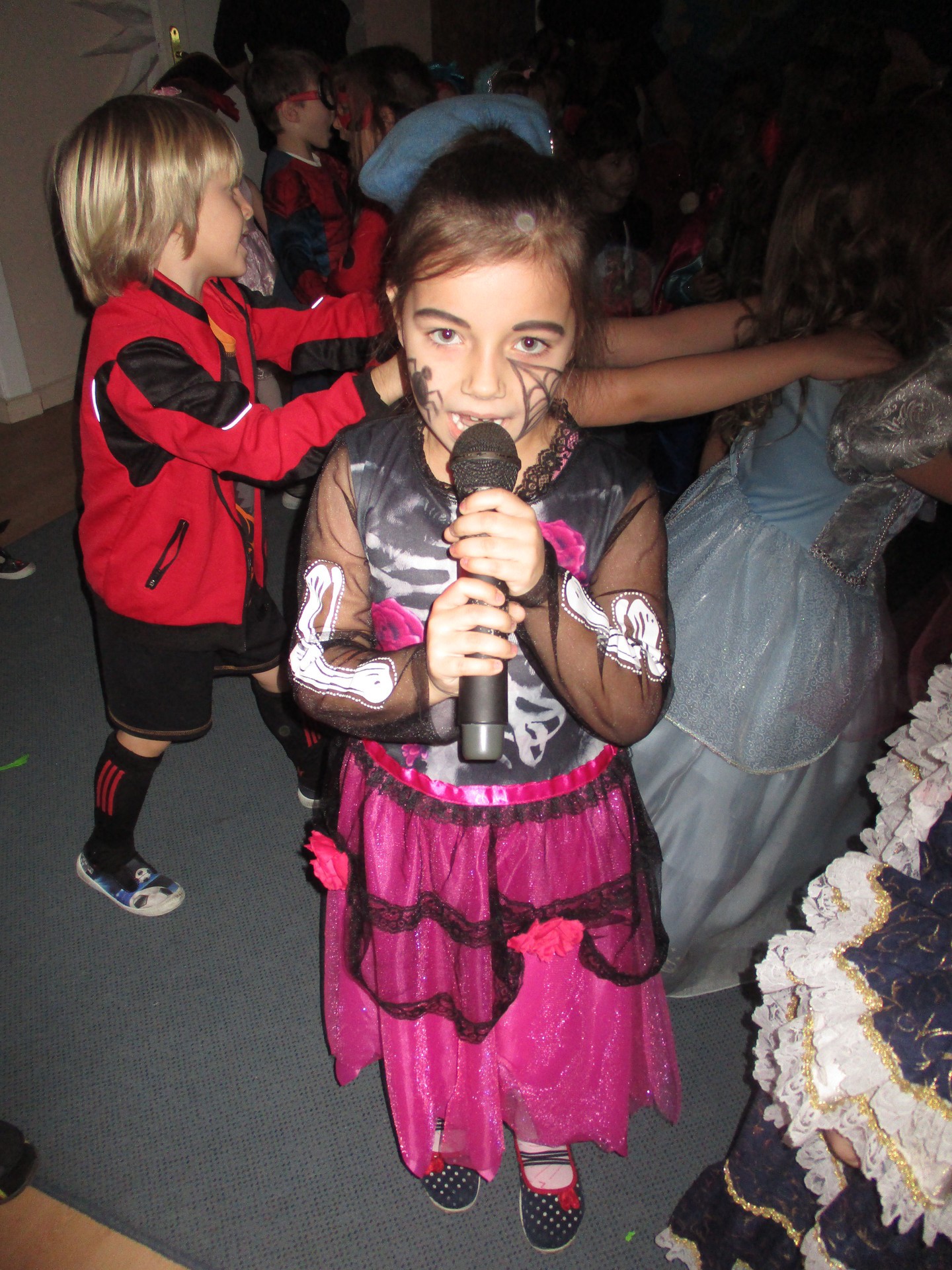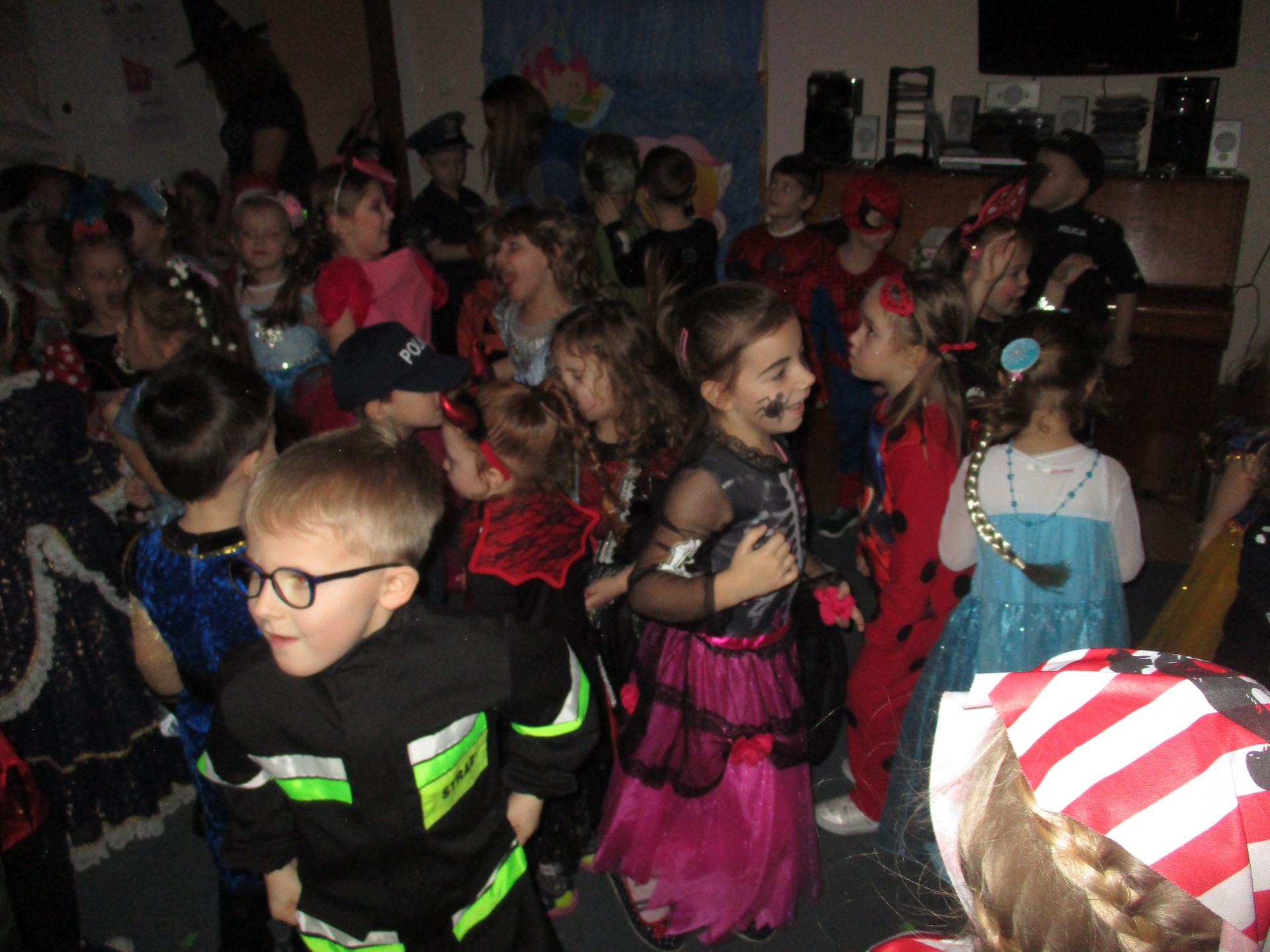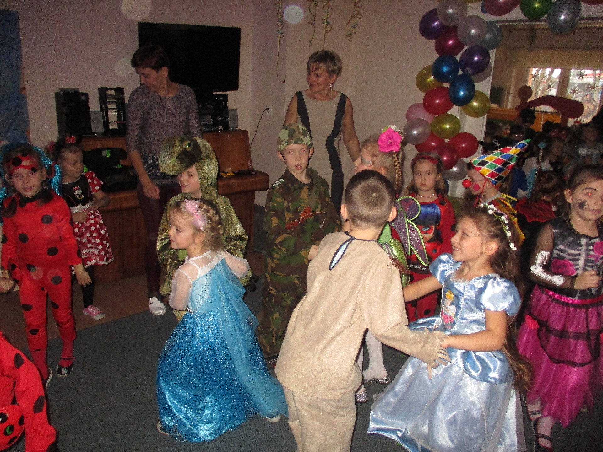 Karnawał to miła tradycja przepełniona muzyką i zabawą, gdzie ważnym elementem tego okresu są bale karnawałowe. Bal karnawałowy dla przedszkolaków to dzień niezwykły, często wyczekiwany przez wiele tygodni. Jest atrakcją bardzo lubianą przez dzieci, dostarczającą im wielu przeżyć i radości. Tak też było u nas. W dniu 05.02.2019r. w naszym Przedszkolu odbył się Bal Karnawałowy. Tego dnia już od rana w Przedszkolu pojawiały się kolorowe postacie. Dzieci przebrane były za bohaterów znanych bajek, w salach przedszkolnych można było spotkać wróżki, królewny, delikatne motylki, rycerzy, piratów, policjantów, Spider-Mana, Batmana, ...nie sposób zliczyć i wymienić tych wszystkich postaci.Rozpoznać dzieci było bardzo trudno. W pierwszej kolejności dzieci miały możliwość pozowania do zdjęcia grupowego oraz zdjęć indywidualnych. Następnie wszyscy uczestnicy balu przeszli do sali balowej. Wystrój sali wprowadził w radosny nastrój oraz zachęcał wszystkich do wesołej zabawy. Na tą wyjątkową okazję zaprosiliśmy do prowadzenia balu wodzireja, który zachęcał wszystkich do tańca przygotowaną muzyką. Dzieci świetnie się bawiły uczestnicząc wspólnie ze swoimi paniami w zabawach. Na sali podczas pląsów robiło się kolorowo, wszyscy bawili się wesoło, uśmiech nie znikał z twarzy mimo chwilowego zmęczenia. Po kilku chwilach wypoczynku muzyka znowu porwała wszystkich do tańca w rytm samby, walczyka, Kaczuch. Kiedy czas zabawy dobiegł końca dzieci z żalem opuszczały salę balową. Bal umożliwił dzieciom i wychowawcom spędzenie czasu w miłej atmosferze. Wspólna zabawa przyniosła wiele radości naszym wychowankom.