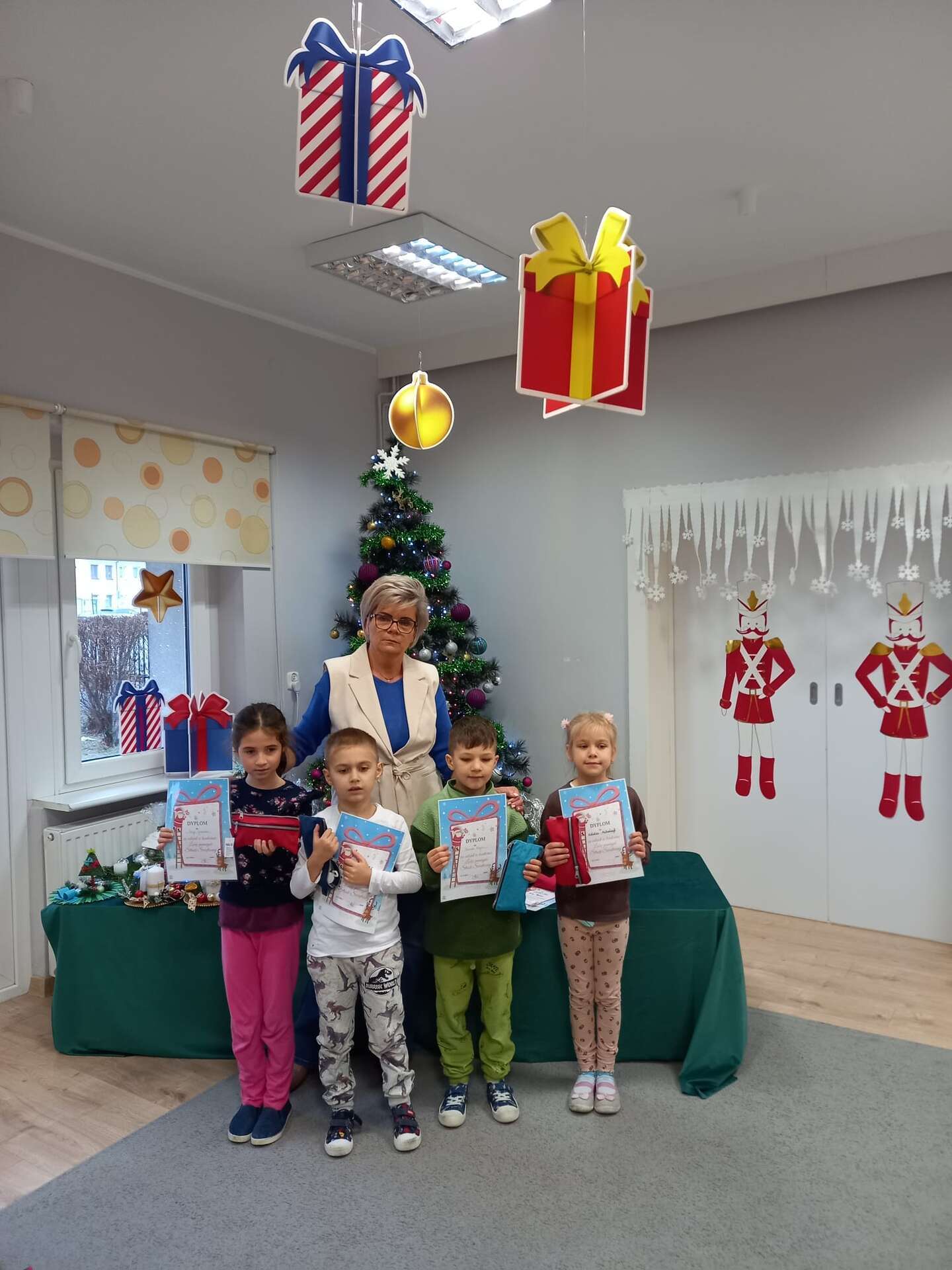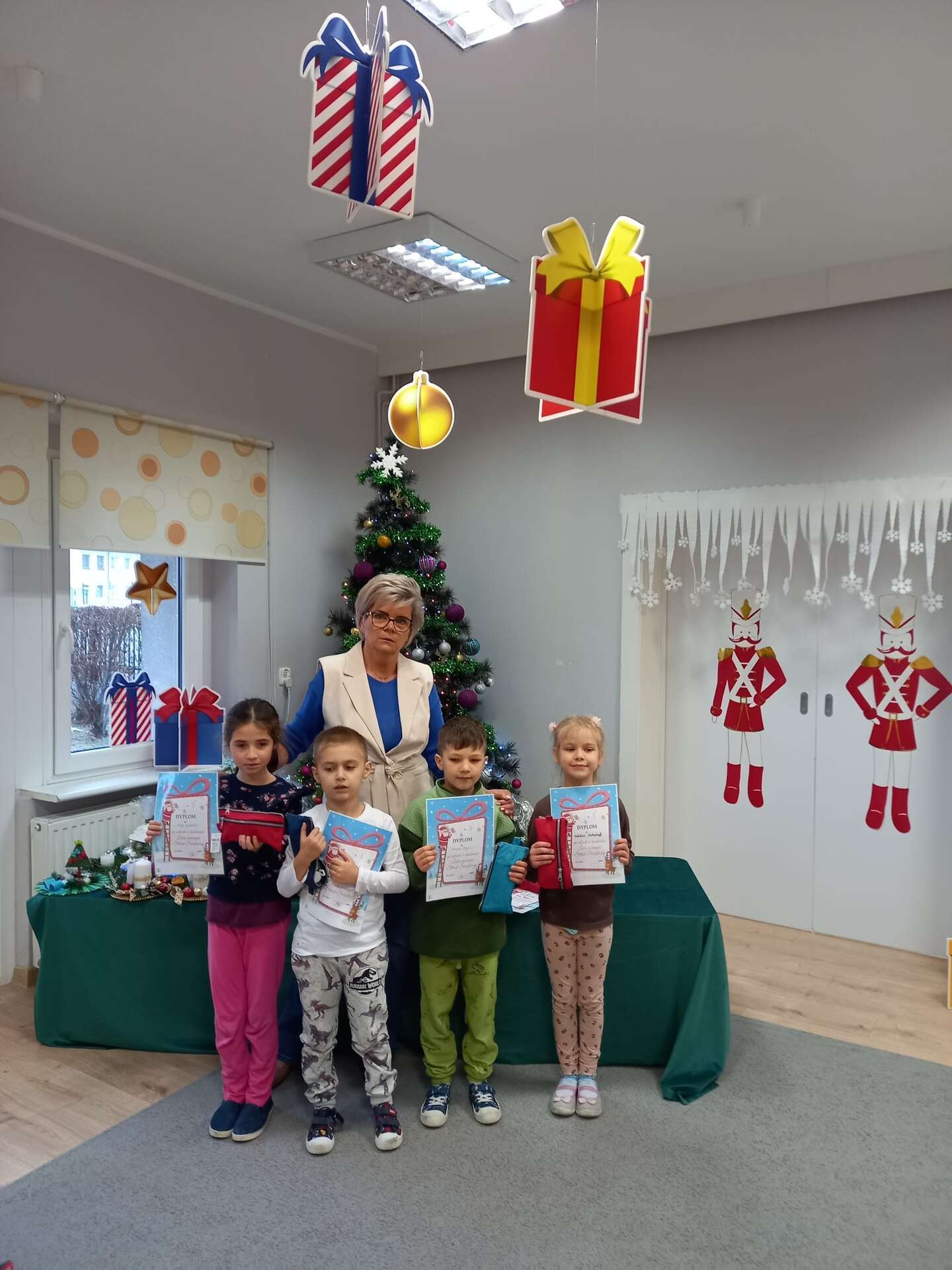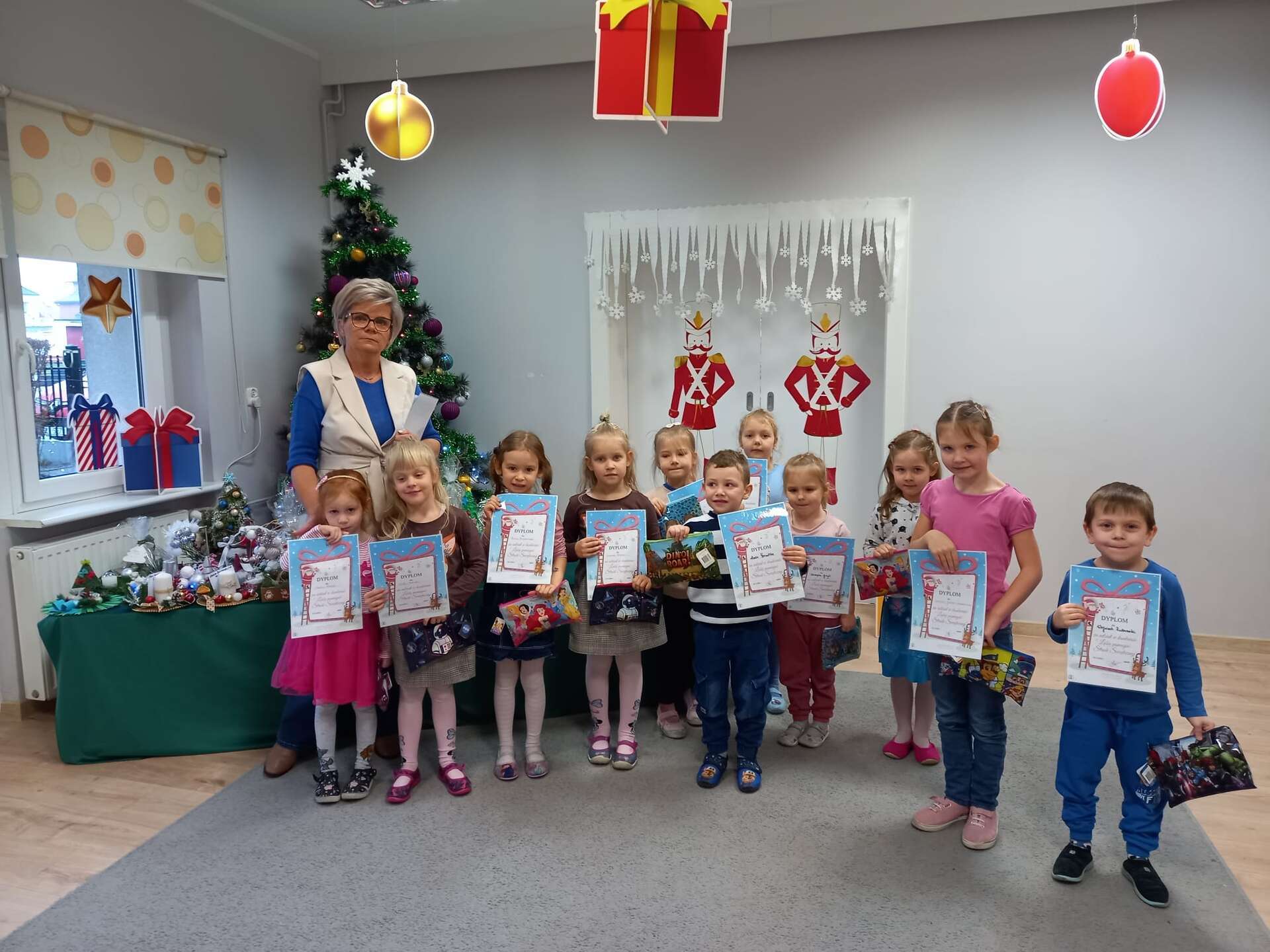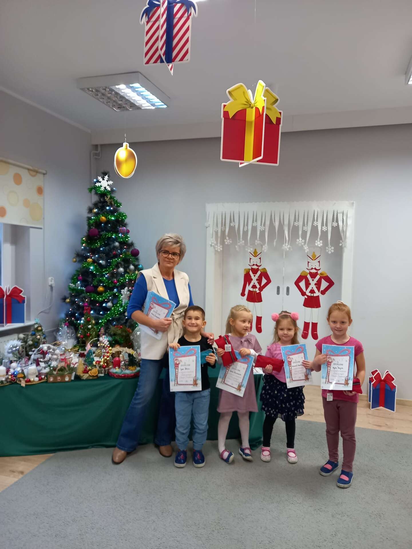 19 grudnia podsumowaliśmy konkurs " Lubię pomagać - stroik świąteczny". Dzieci wraz z rodzicami wykonywały stroiki świąteczne. Łącznie wpłynęło 30 stroików. Komisja konkursowa uznała, że nie będzie przydzielać miejsc, gdyż wszystkie stroiki były piękne i wyjątkowe. Nagrody otrzymały następujące dzieci :