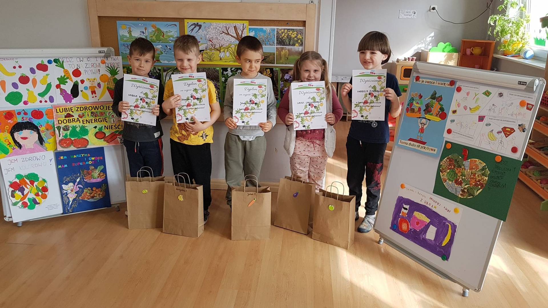 10 marca rozstrzygnięto konkurs plastyczny. Ideą konkursu było stworzenie pracy plastycznej popularyzującej wiedzę dotyczącą żywności i zasad prawidłowego żywienia. Dzieci wykonywały prace w domach. Technika prac była dowolna. Do przedszkola wpłynęło aż 35 prac. Za co bardzo dziękujemy Rodzicom. Wszystkie prace wzbudziły zachwyt komisji konkursowej. Dzieci zasługują na uznanie i pochwałę.