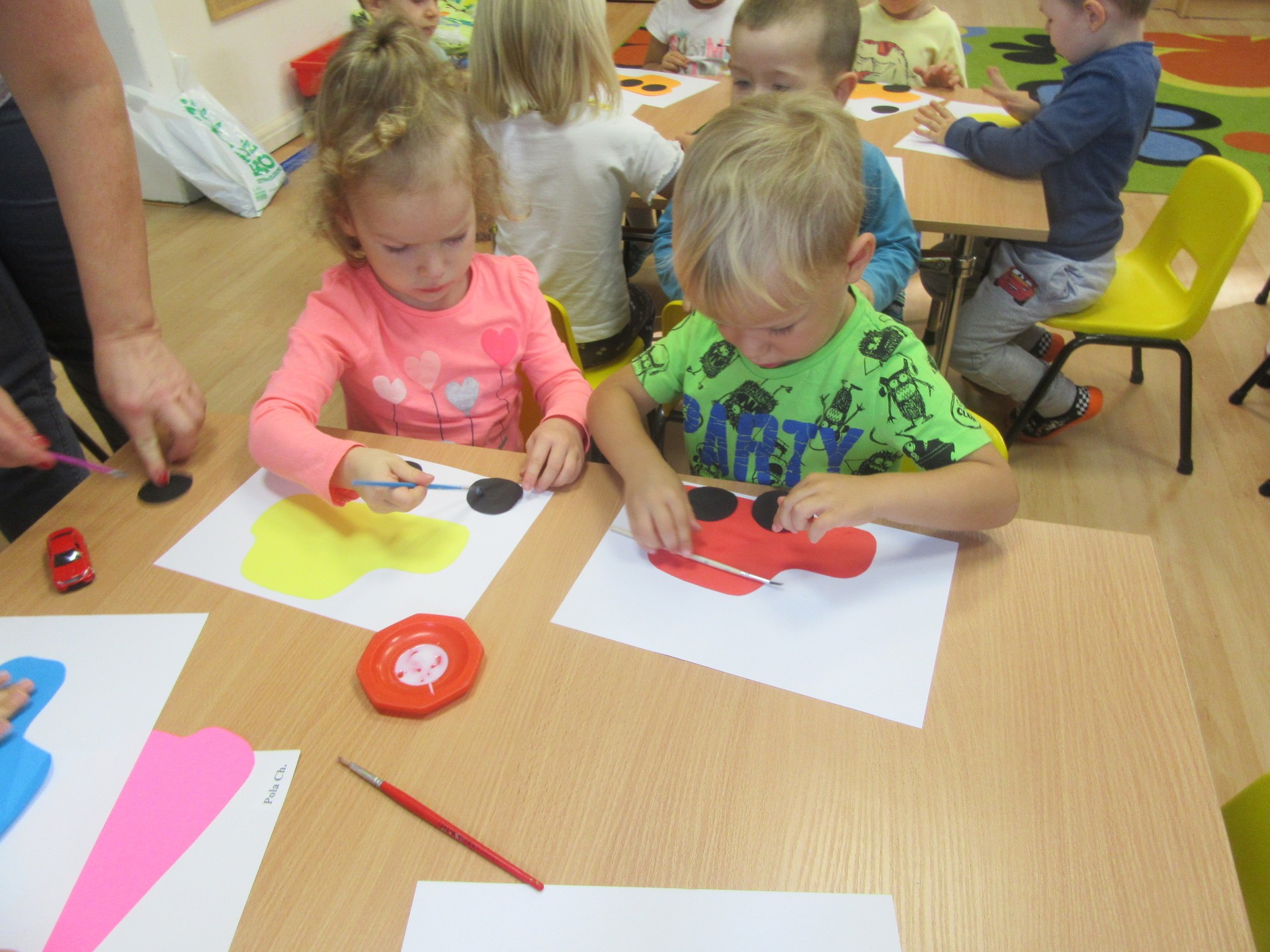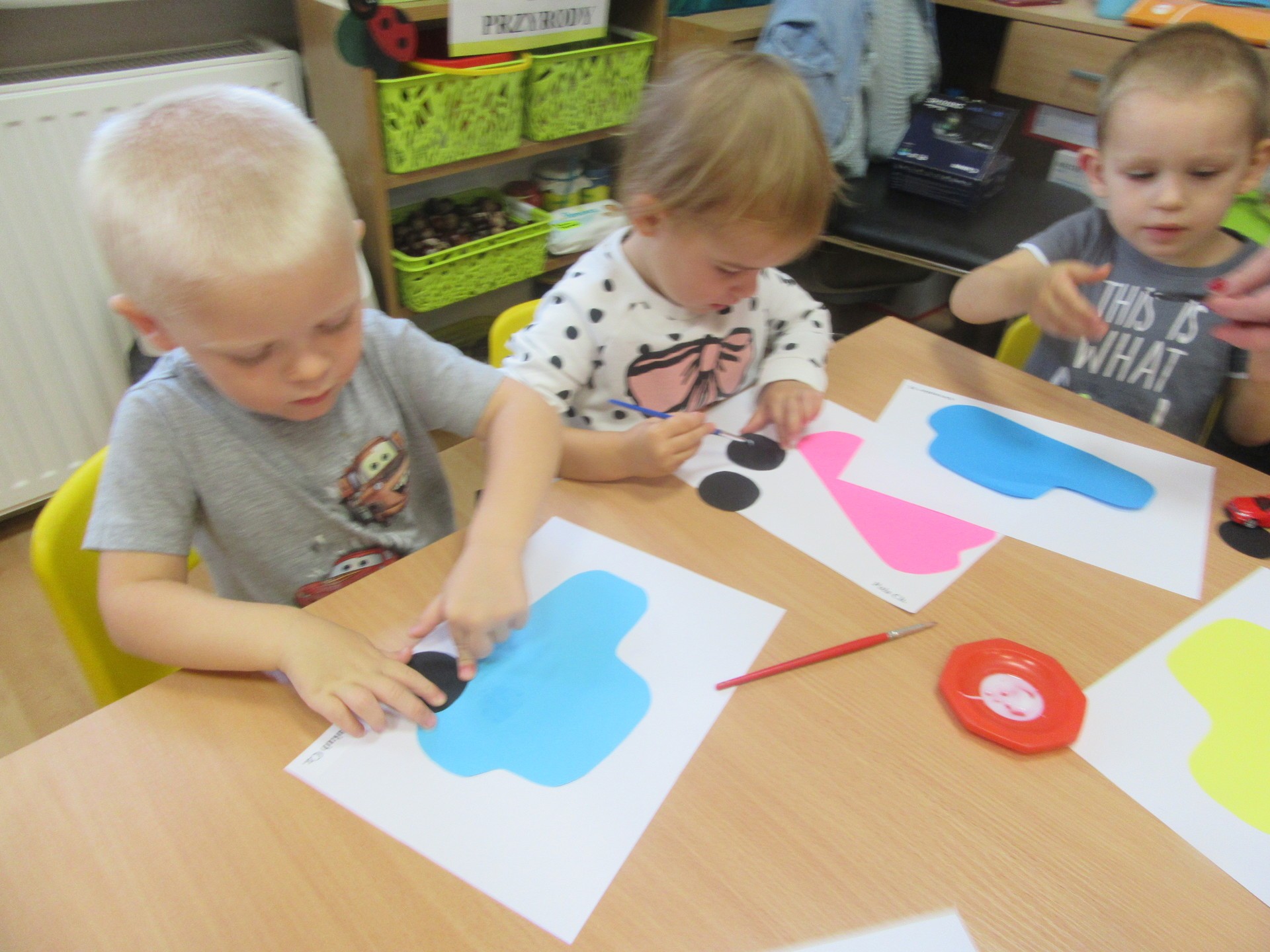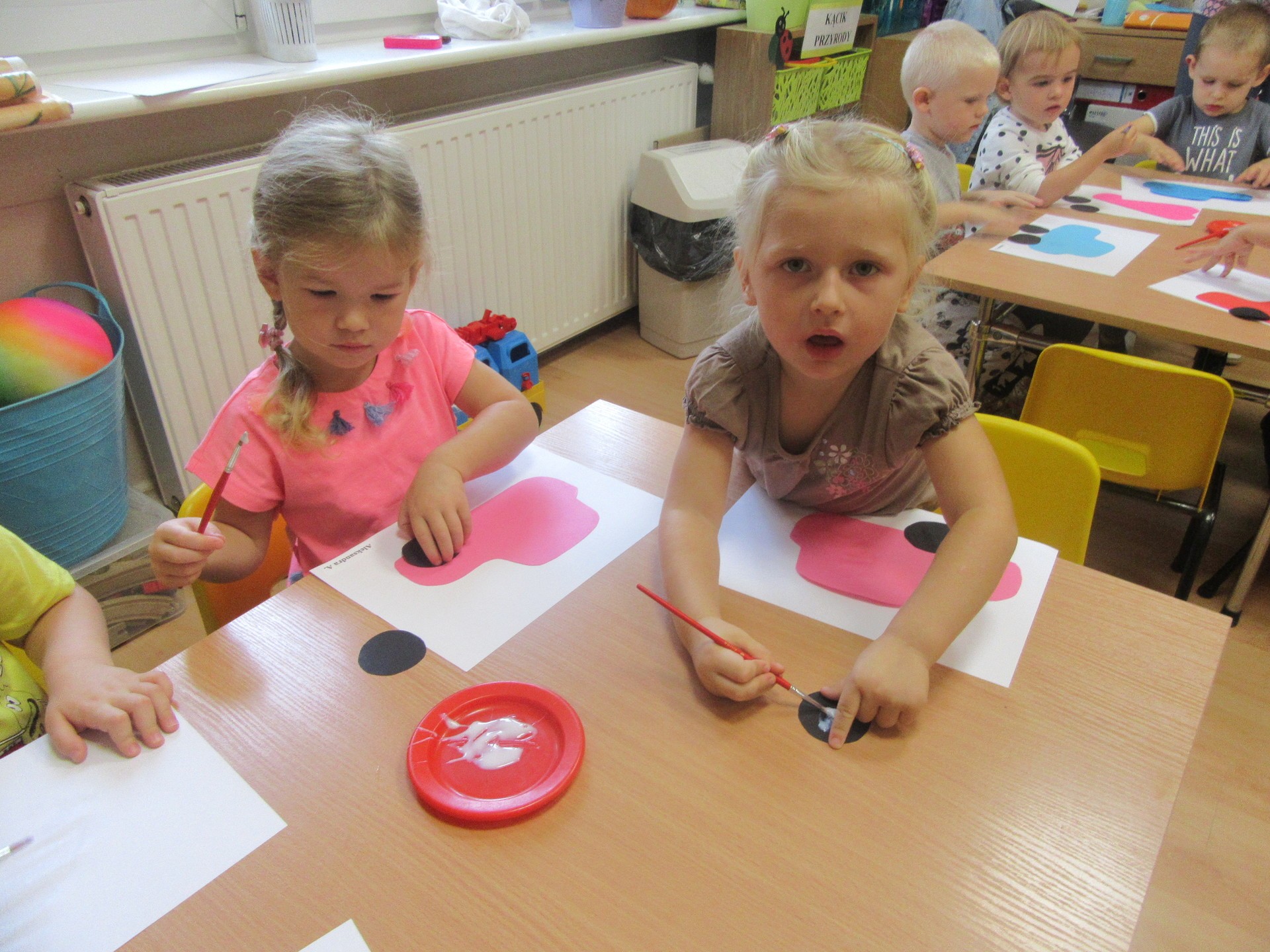 Maluszki już zaczynają przygodę przy stolikach, robiąc swoje pierwsze prace plastyczne. Życzymy Wam powodzenia słodziaki.