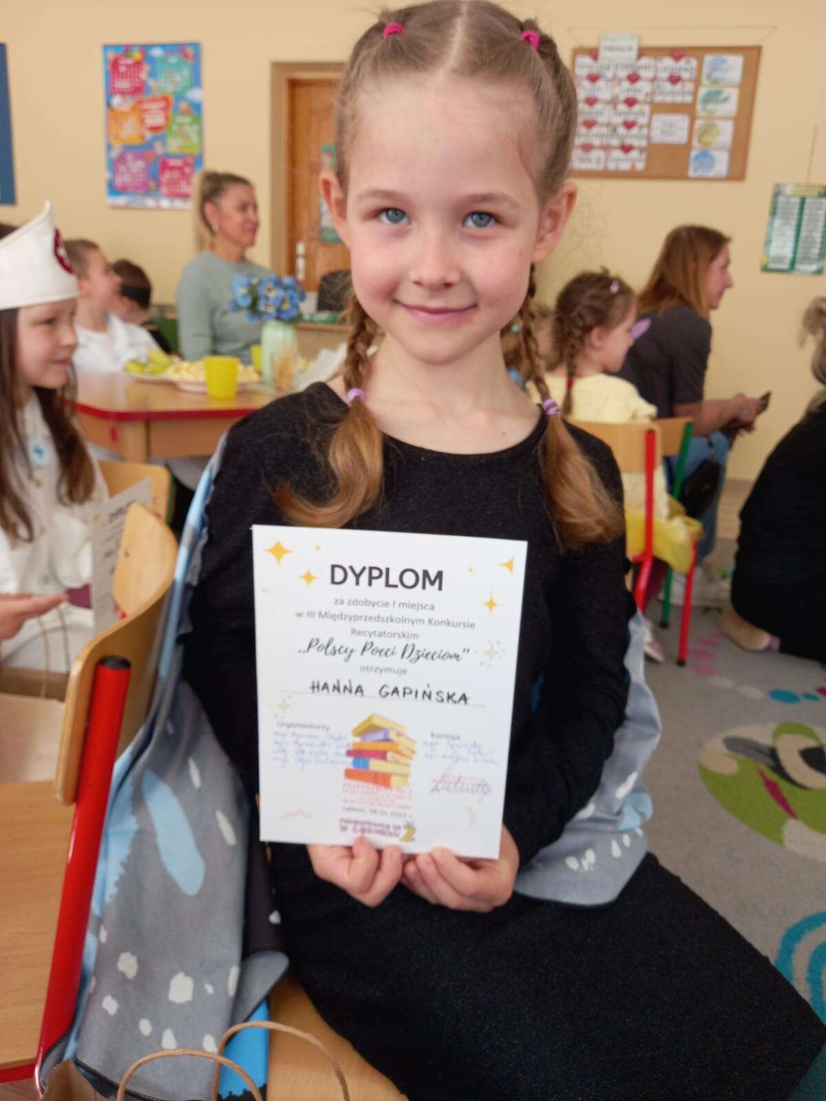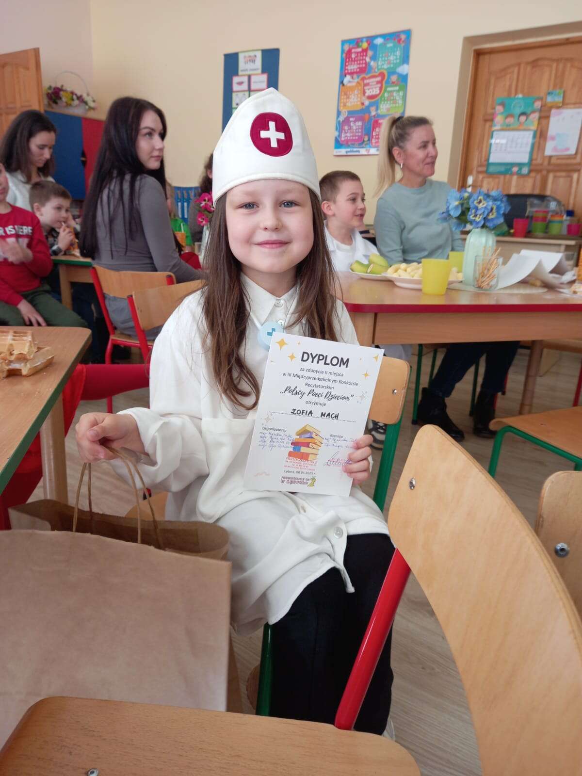 8 kwietnia 2025 r. troje dzieci z naszego przedszkola wzięło udział w Międzyprzedszkolnym Konkursie Recytatorskim "Polscy Poeci Dzieciom". Konkurs odbył się w Przedszkolu nr 2. Celem konkursu było promowanie polskiej literatury dziecięcej oraz rozwijanie umiejętności recytatorskich. W konkursie uczestniczyły dzieci z lęborskich przedszkoli publicznych i niepublicznych. Dzieci z naszego przedszkola zaprezentowały piękne wiersze polskich poetów, wykazując się nie tylko talentem, ale także dużą odwagą i zaangażowaniem. Z radością obserwowaliśmy, jak wspaniale poradziły sobie z wystąpieniem na scenie, prezentując swoje utwory. Wszystkie dzieci zasługują na ogromne brawa za udział w konkursie i włożony wysiłek. Jesteśmy dumni z naszych małych recytatorów i cieszymy się, że mogliśmy reprezentować nasze przedszkole w tak wyjątkowym wydarzeniu.