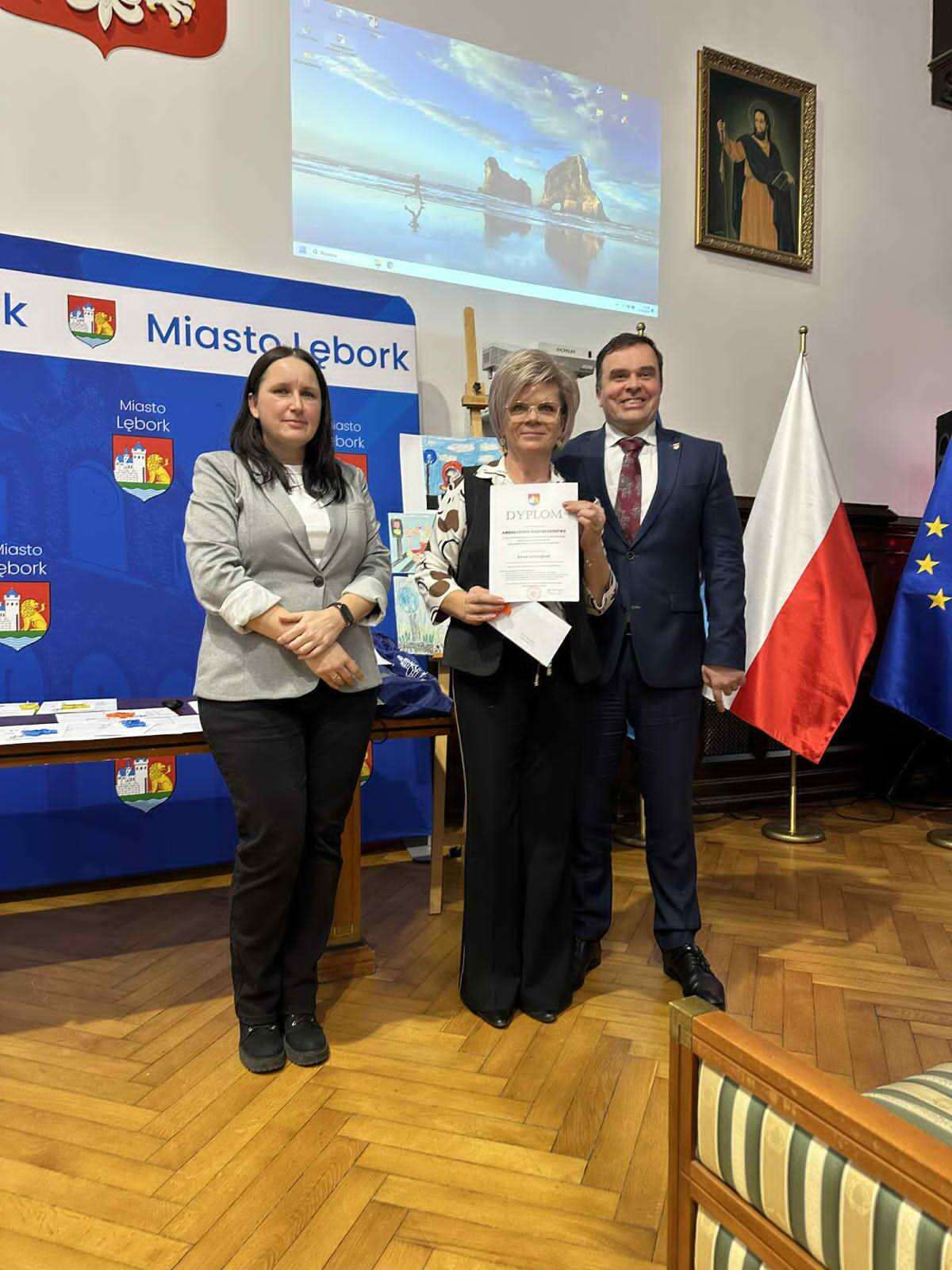 Miło nam poinformować, że Ania Jastrząbek zdobyła nagrodę i tytuł AMBASADORA BEZPIECZEŃSTWA. W imieniu Ani nagrodę odebrała p. dyrektor.