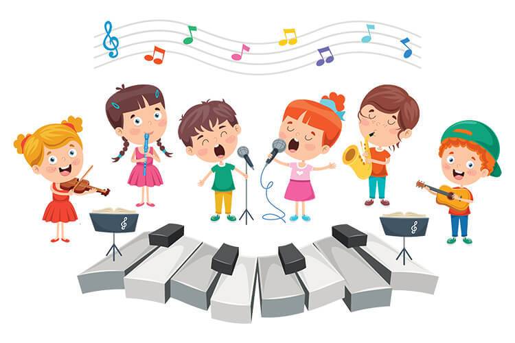 By ładnie śpiewać, by ładnie grać (nuty) w takt jego pałeczki instrumenty grają(dyrygent)