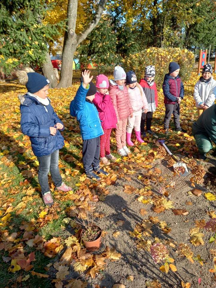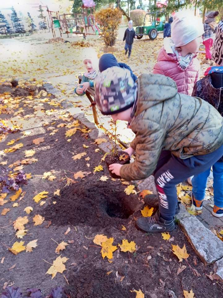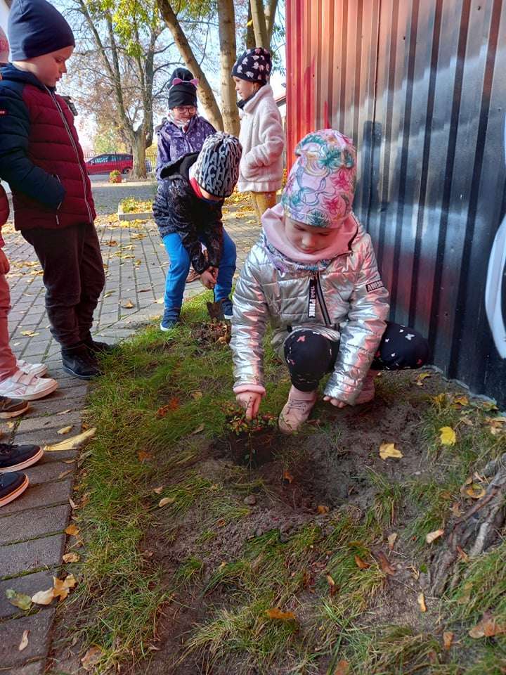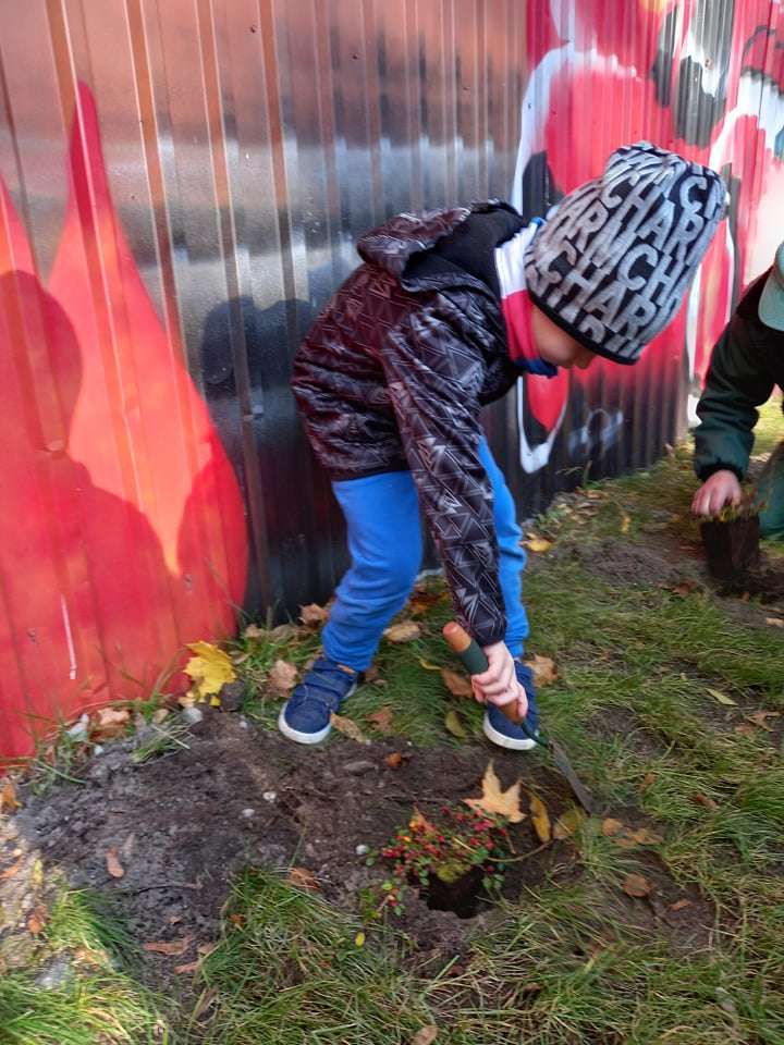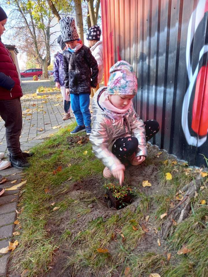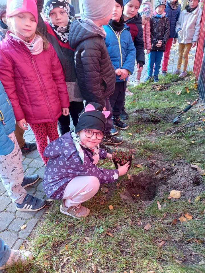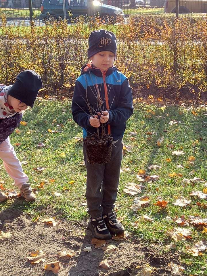 Dzisiaj dzieci z grupy IV wraz z p. Mariuszem sadziły rośliny, które otrzymaliśmy od Nadleśnictwa Lębork. Rokitniki będą doskonałym żywopłotem przy placu zabaw maluszków, a berberysy będą tworzyć barwną ścianę przy placu zabaw starszaków. Irgi, miętki i lilaki będą zdobić nasze klomby. Czekamy na wiosenne efekty.