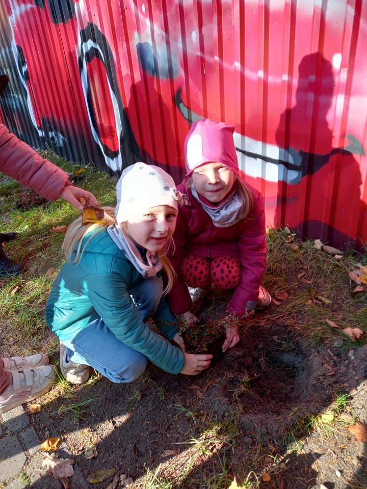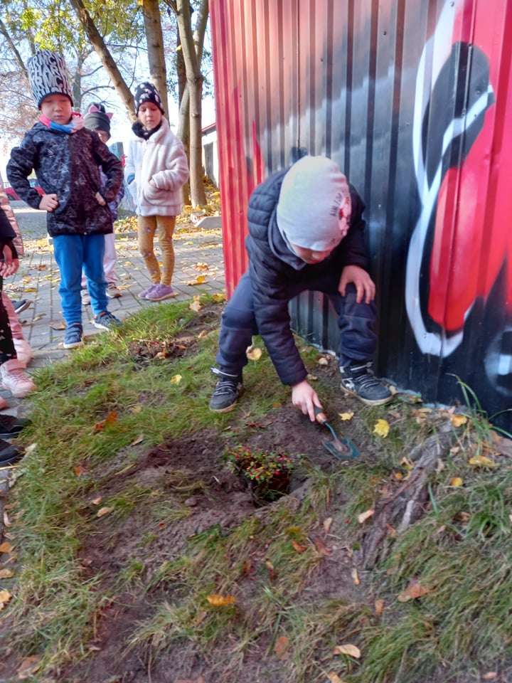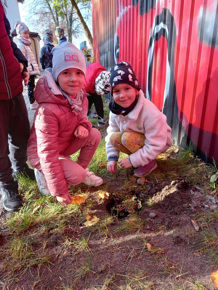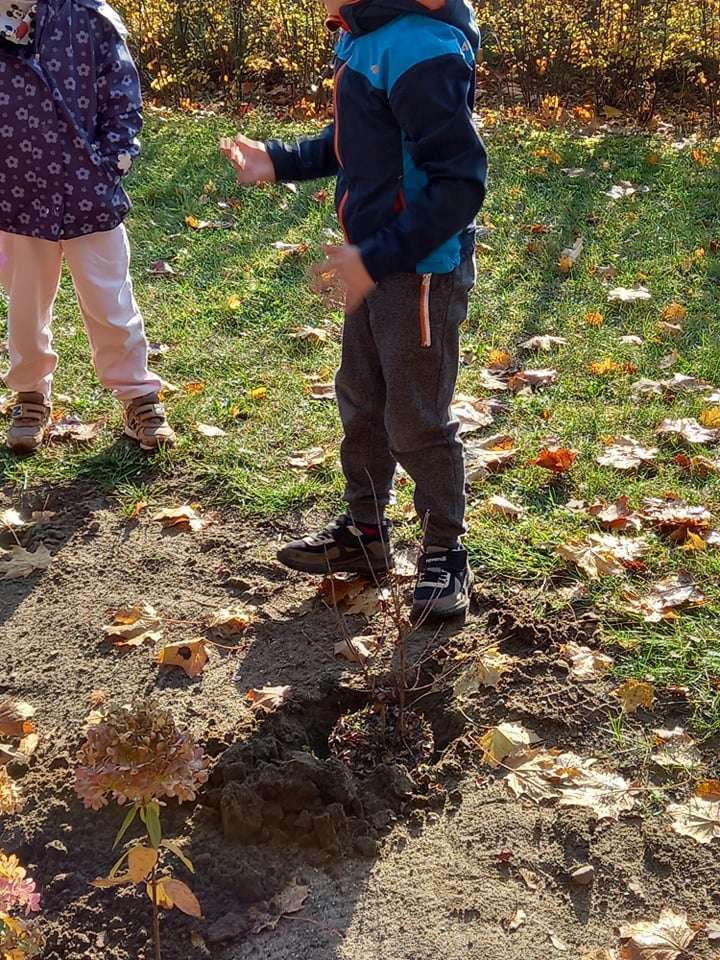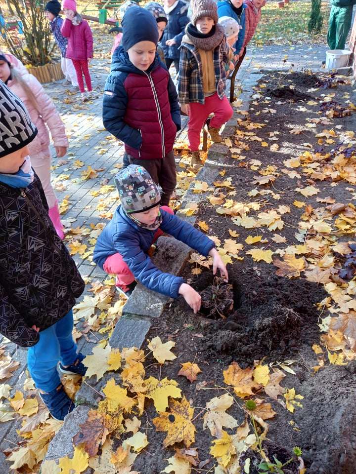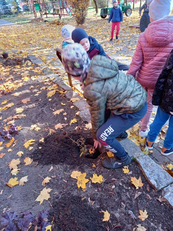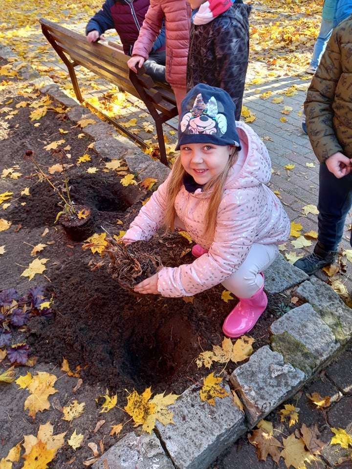 Dzisiaj dzieci z grupy IV wraz z p. Mariuszem sadziły rośliny, które otrzymaliśmy od Nadleśnictwa Lębork. Rokitniki będą doskonałym żywopłotem przy placu zabaw maluszków, a berberysy będą tworzyć barwną ścianę przy placu zabaw starszaków. Irgi, miętki i lilaki będą zdobić nasze klomby. Czekamy na wiosenne efekty.
