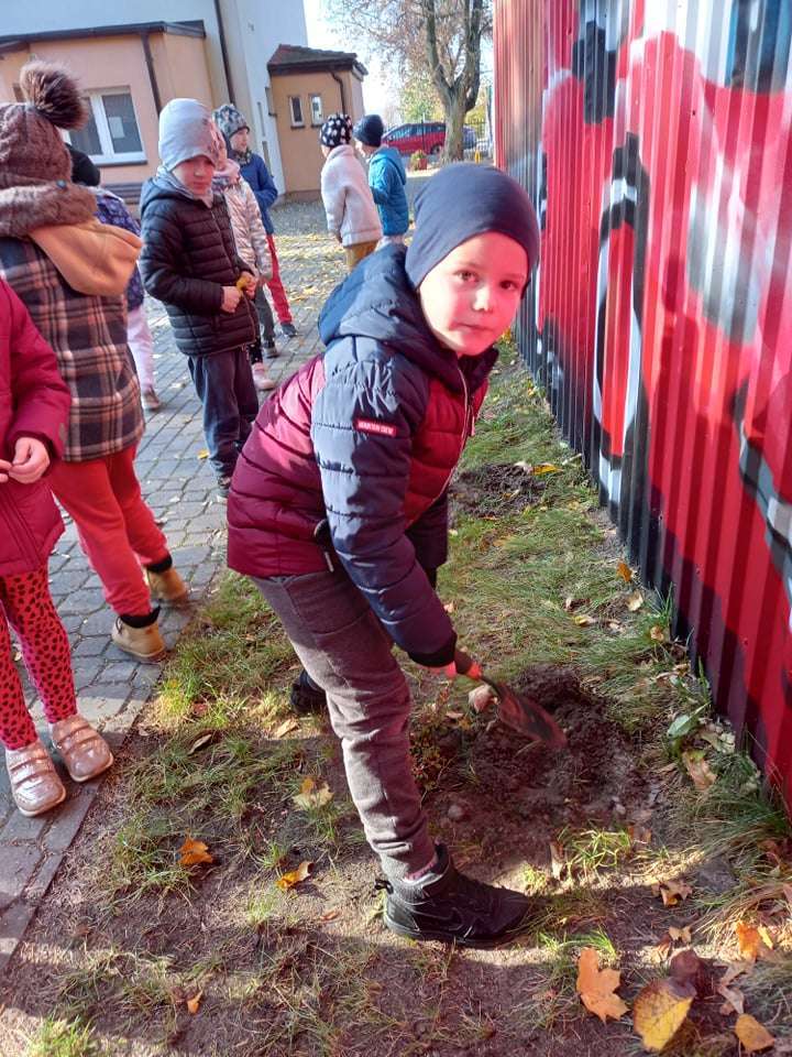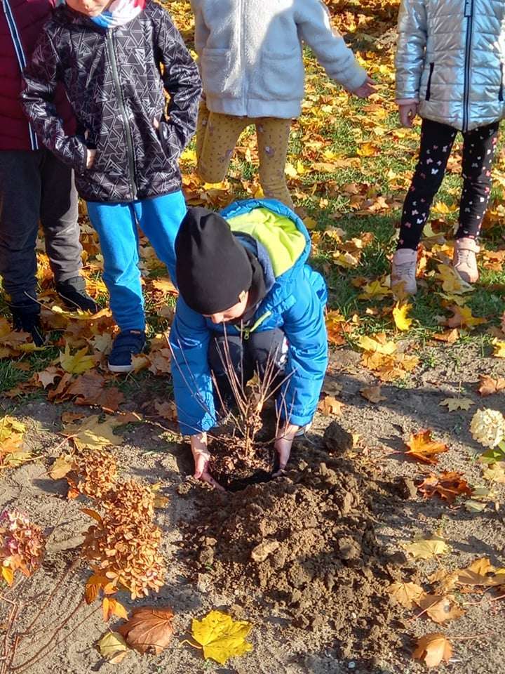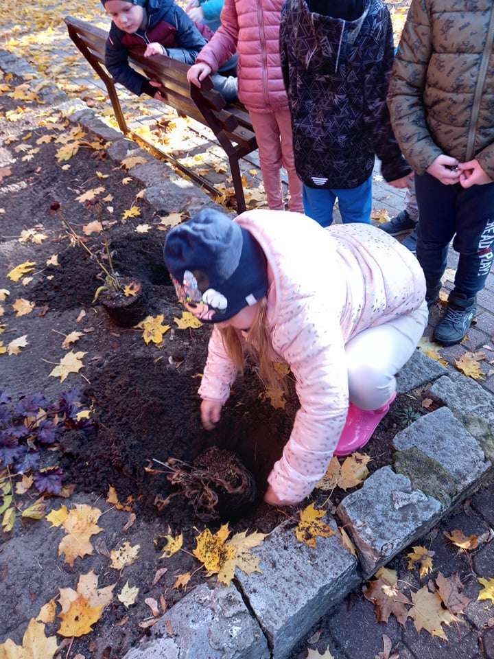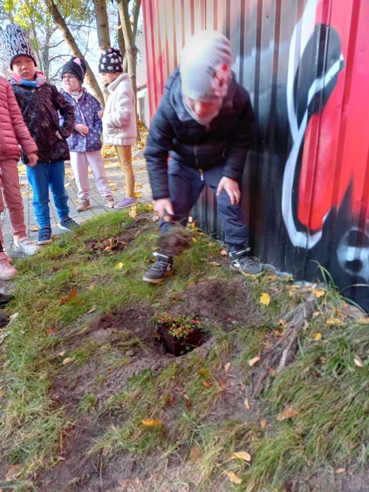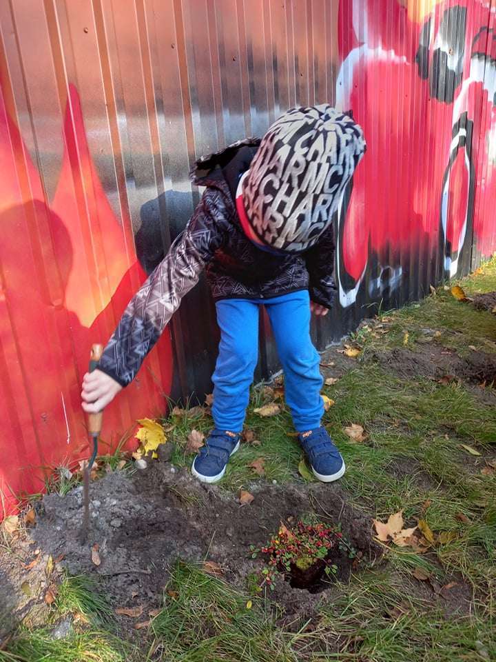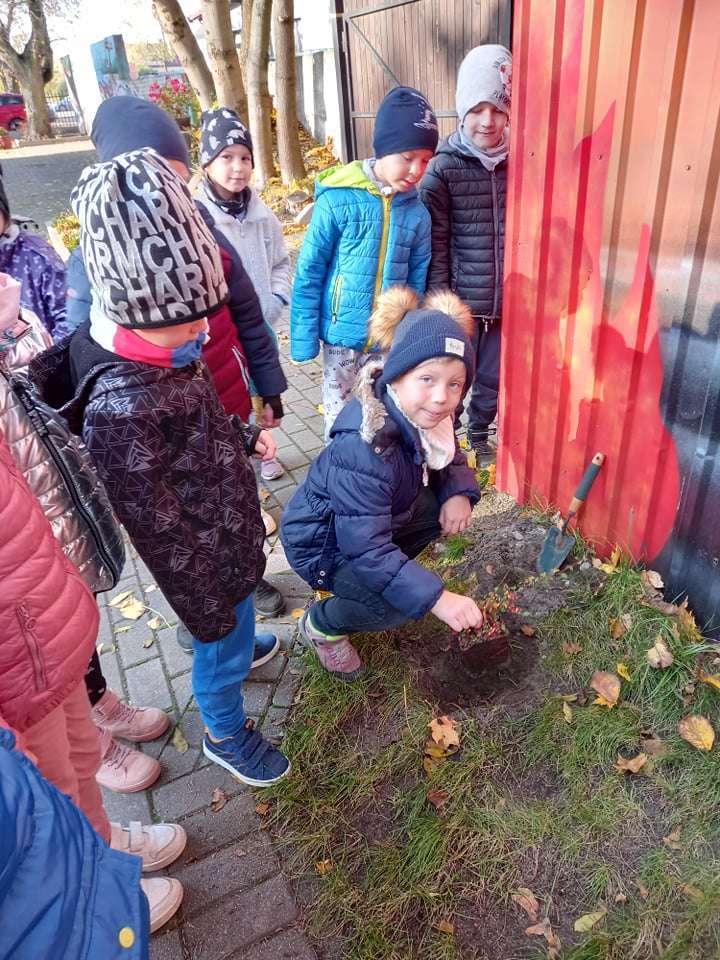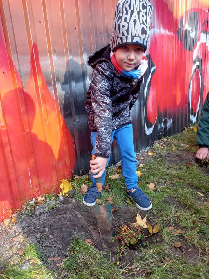 Dzisiaj dzieci z grupy IV wraz z p. Mariuszem sadziły rośliny, które otrzymaliśmy od Nadleśnictwa Lębork. Rokitniki będą doskonałym żywopłotem przy placu zabaw maluszków, a berberysy będą tworzyć barwną ścianę przy placu zabaw starszaków. Irgi, miętki i lilaki będą zdobić nasze klomby. Czekamy na wiosenne efekty.