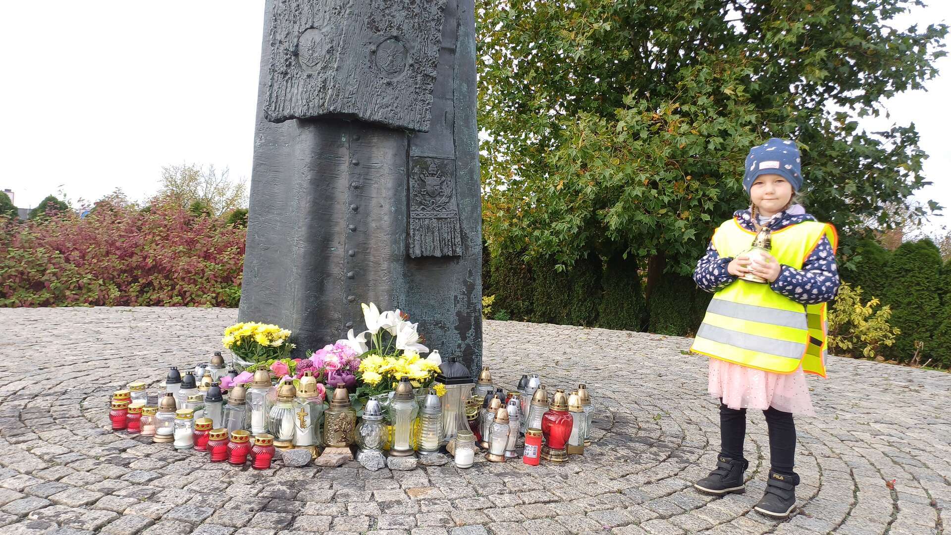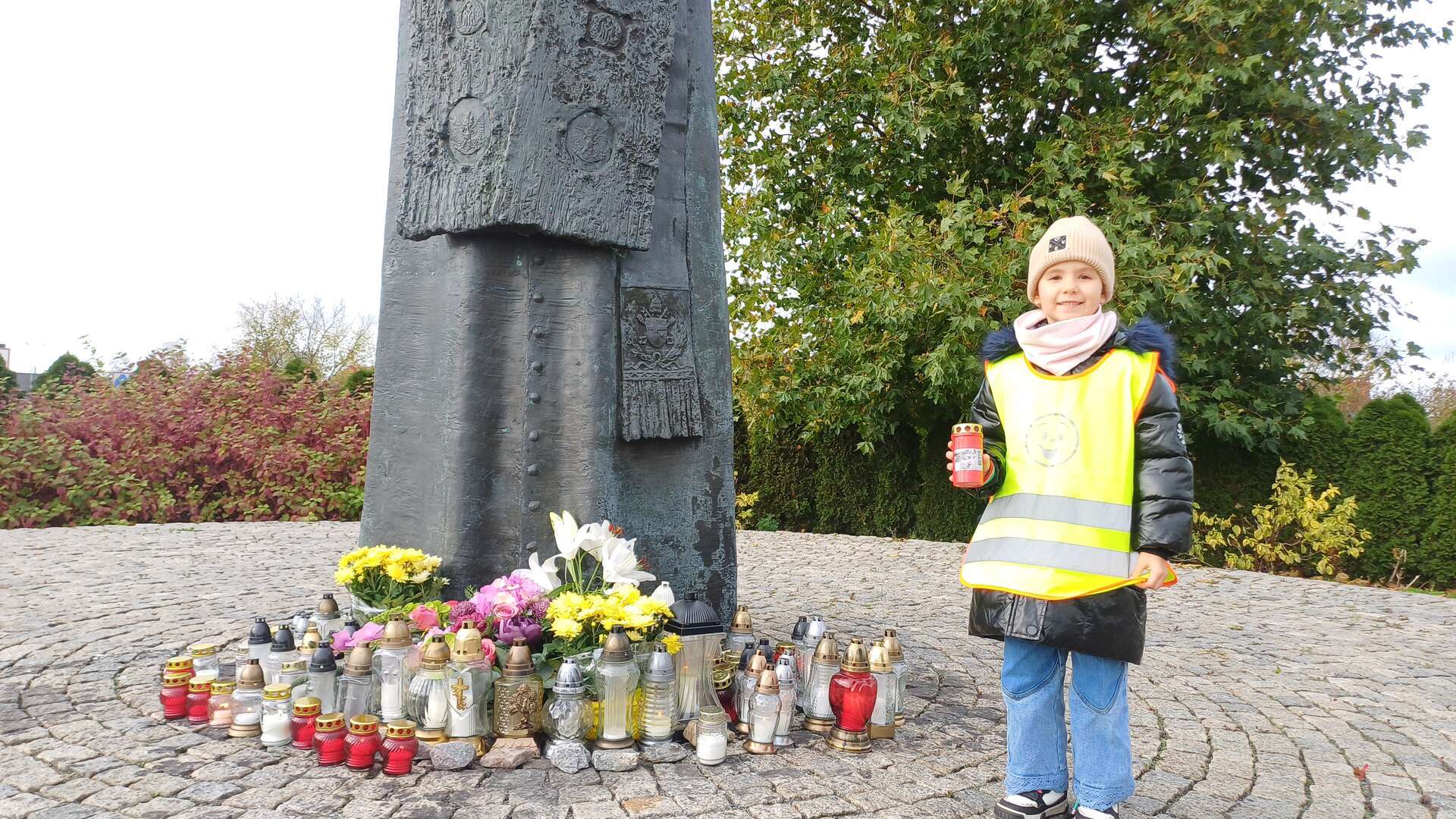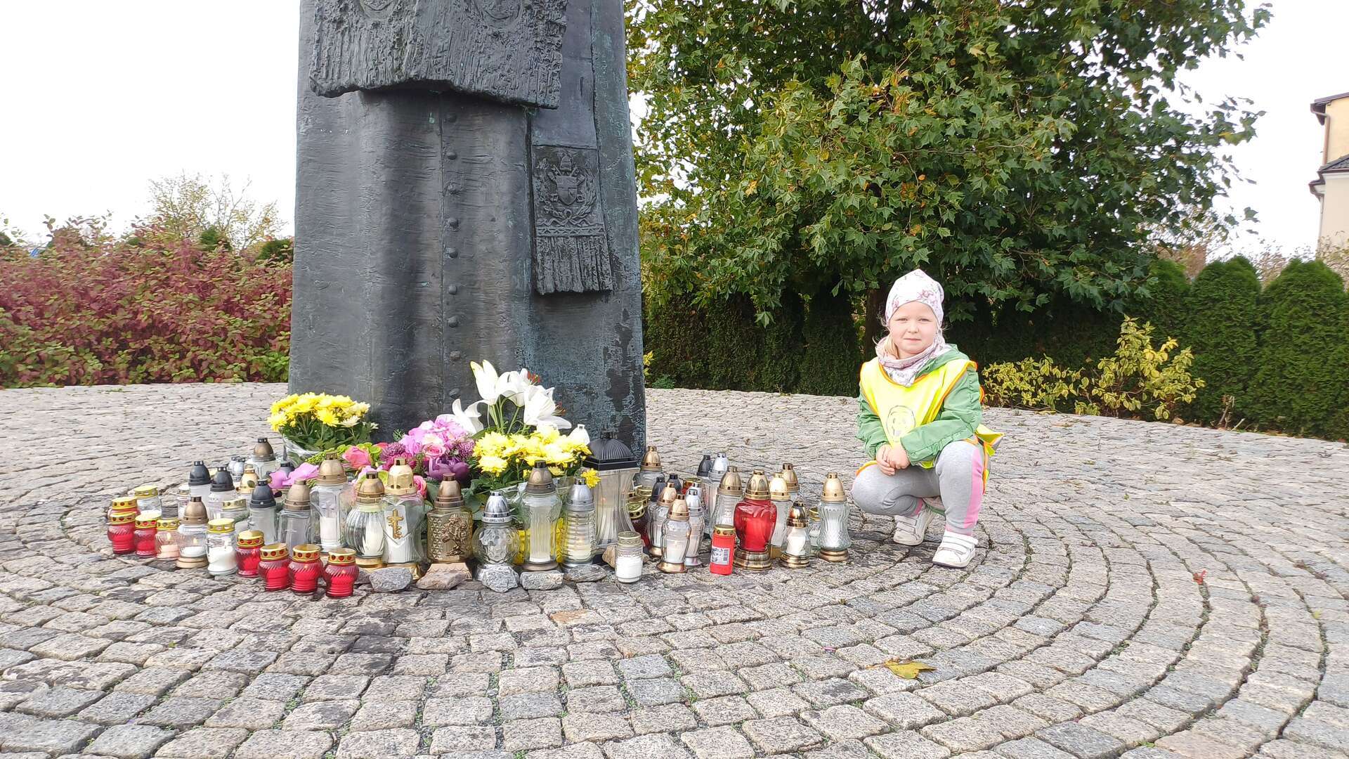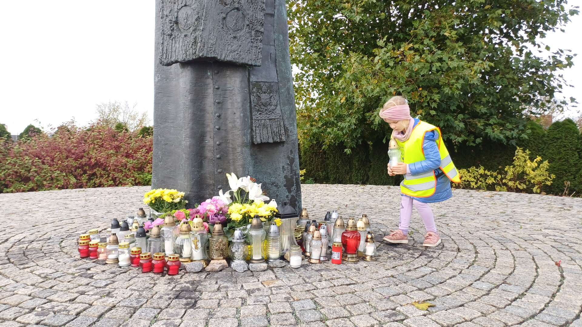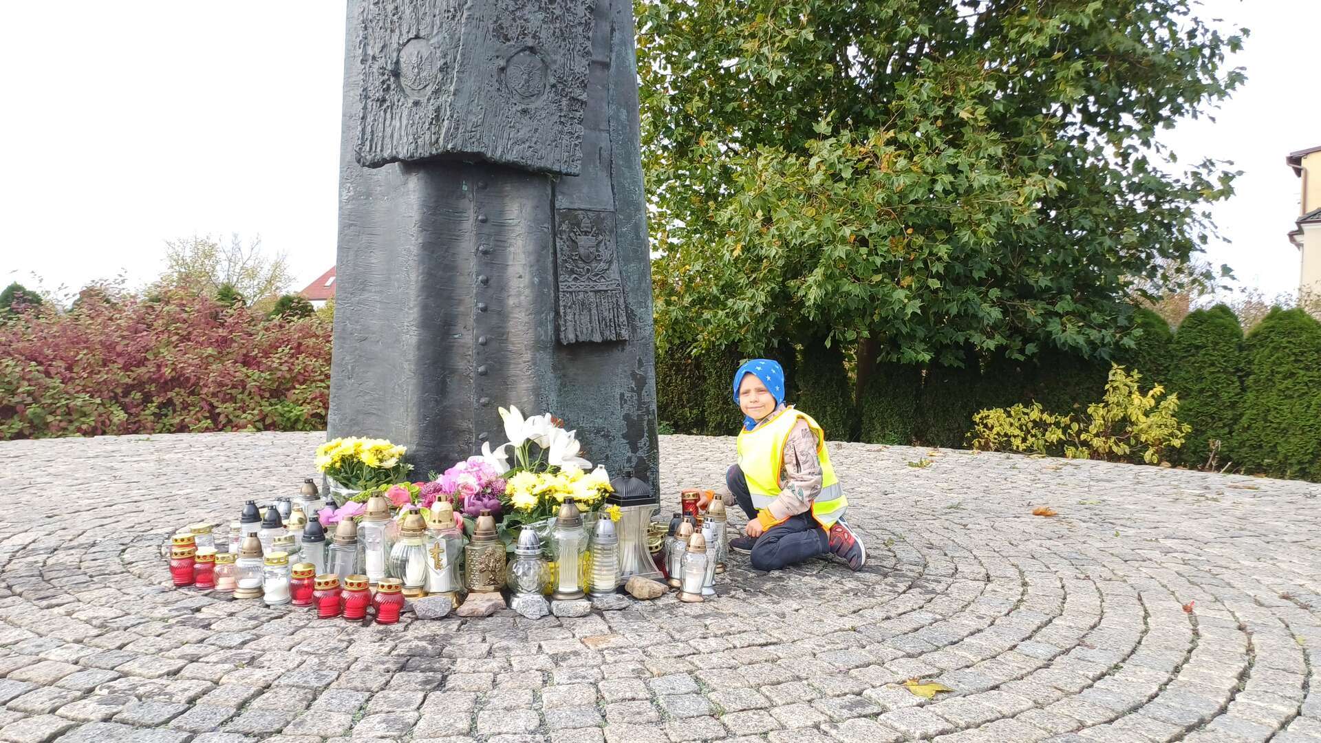 W przeddzień Wszystkich Świętych dzieci zapaliły znicze pod pomnikiem Świętego Jana Pawła II.