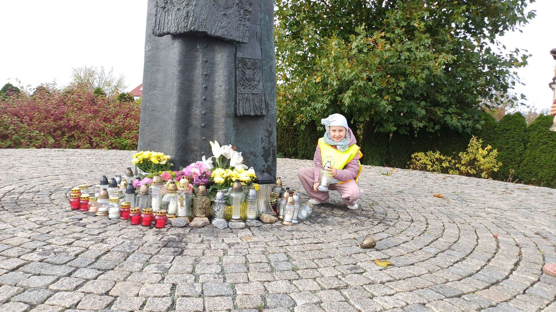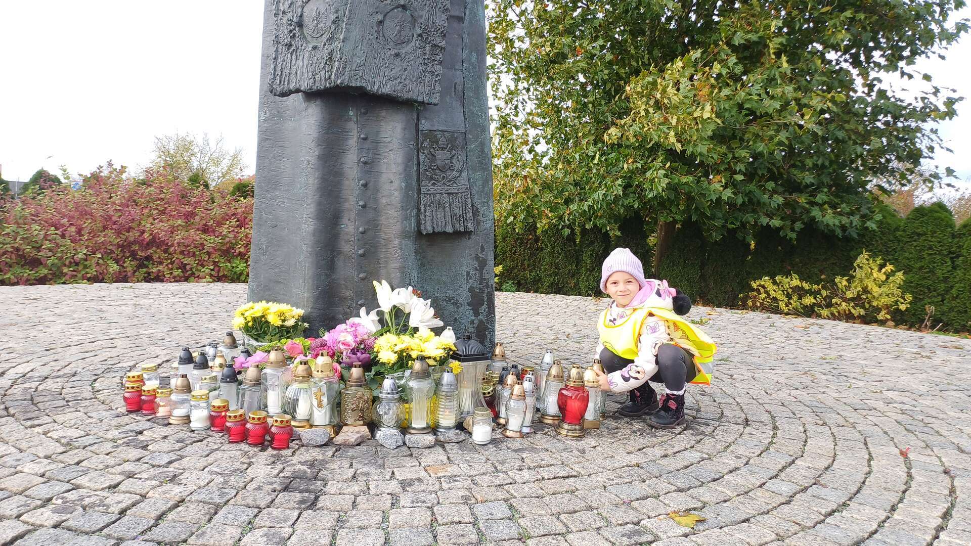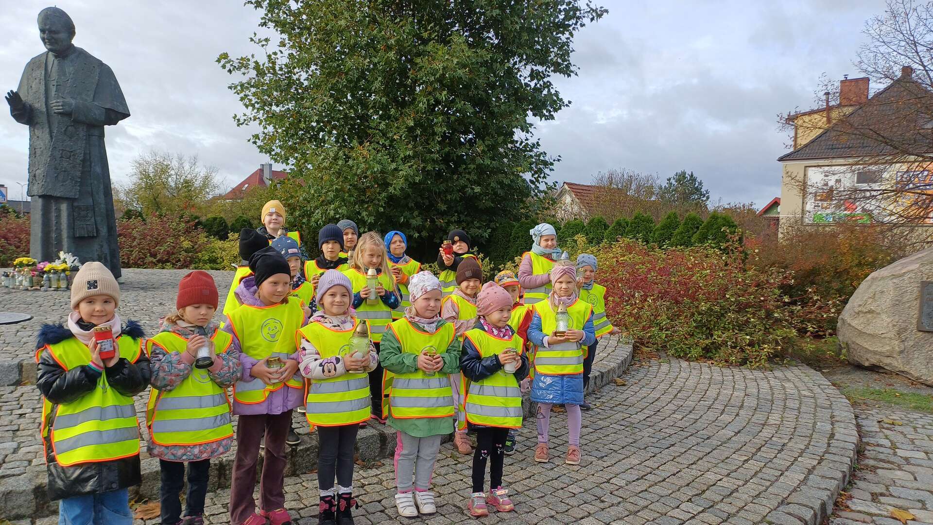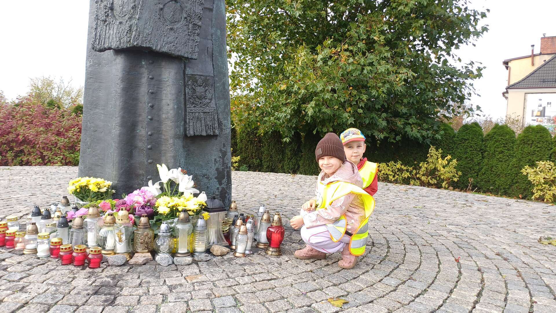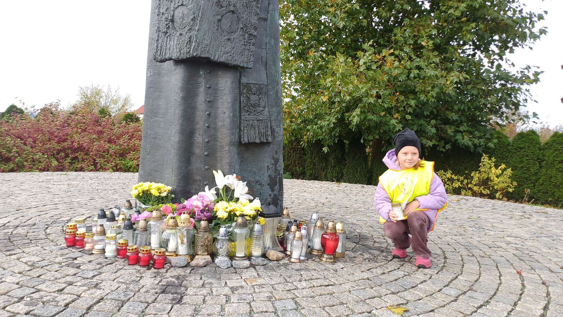 W przeddzień Wszystkich Świętych dzieci zapaliły znicze pod pomnikiem Świętego Jana Pawła II.