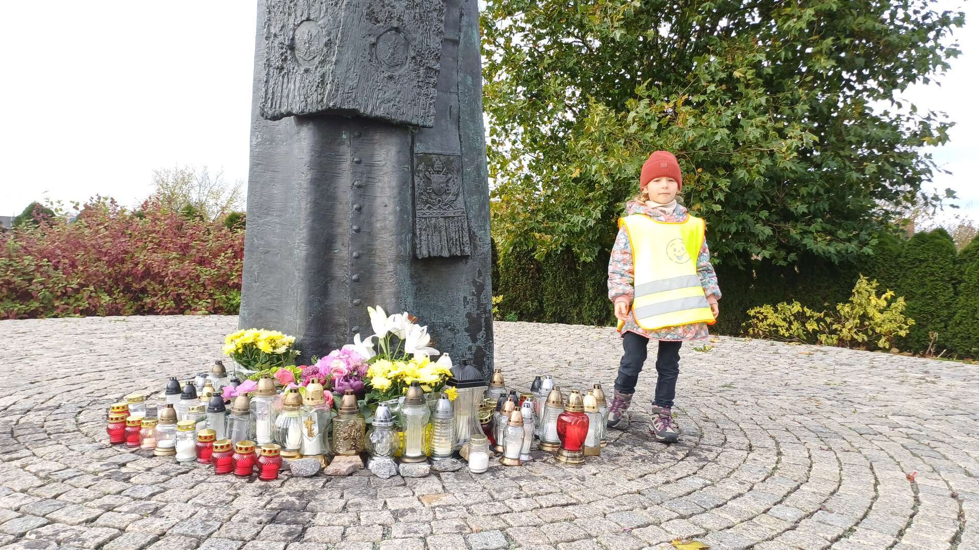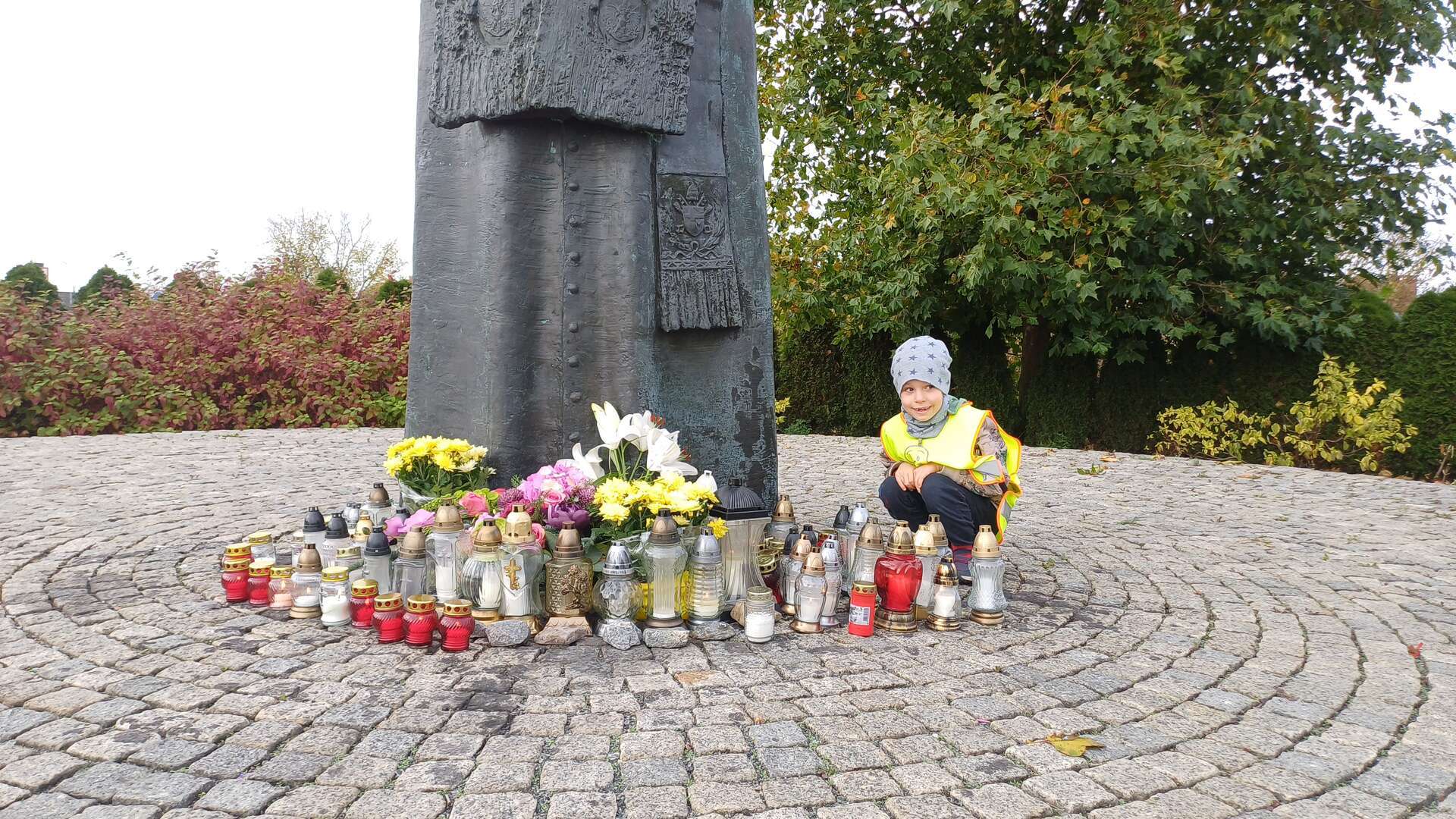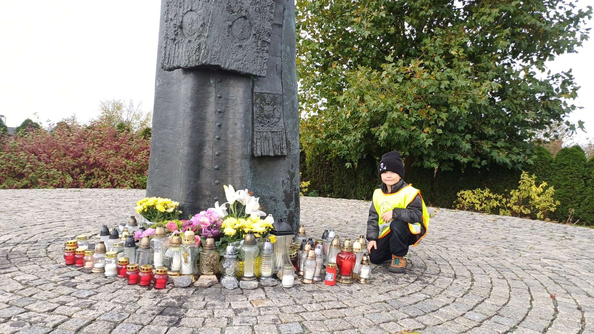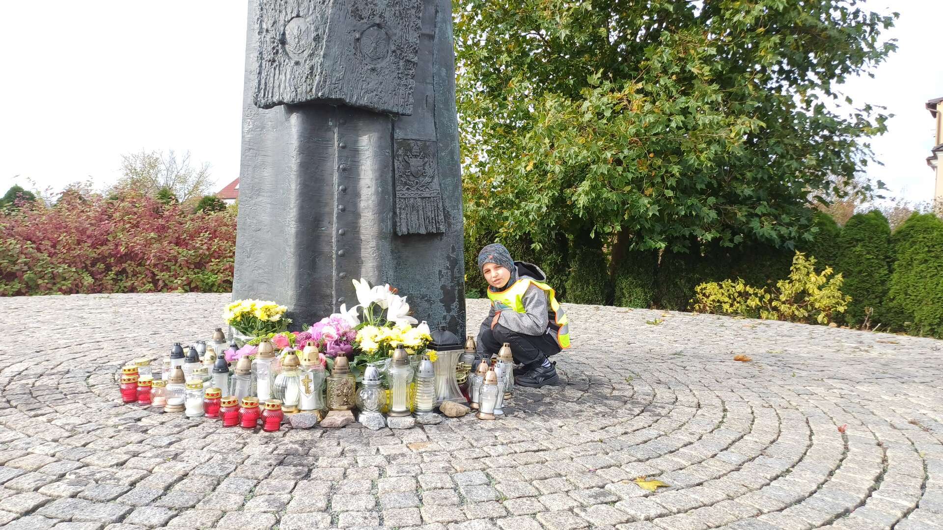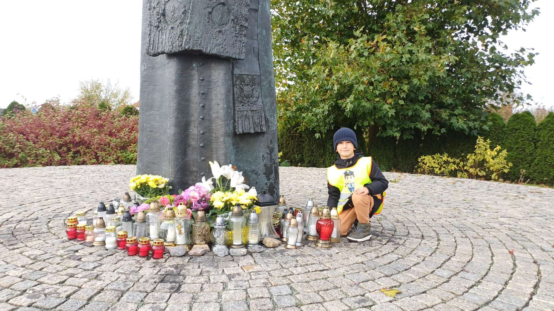 W przeddzień Wszystkich Świętych dzieci zapaliły znicze pod pomnikiem Świętego Jana Pawła II.