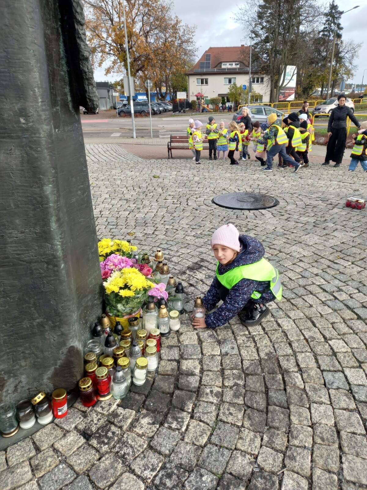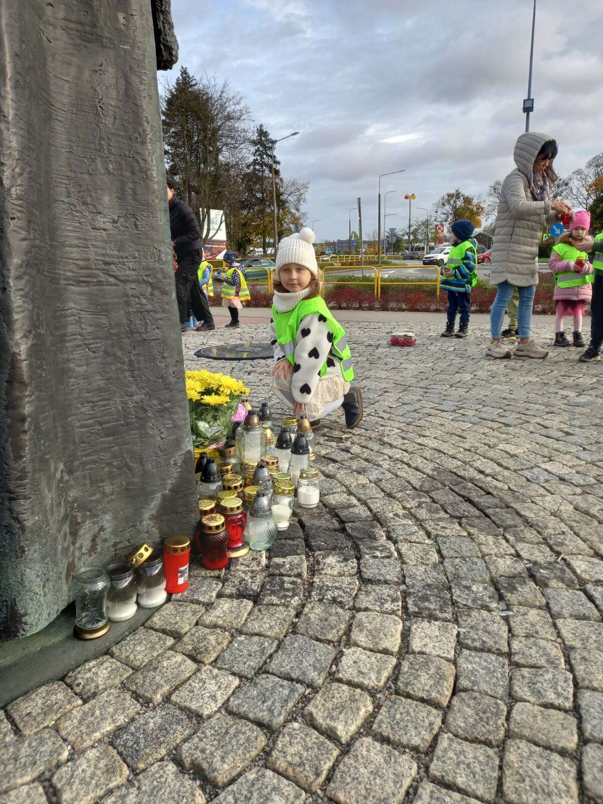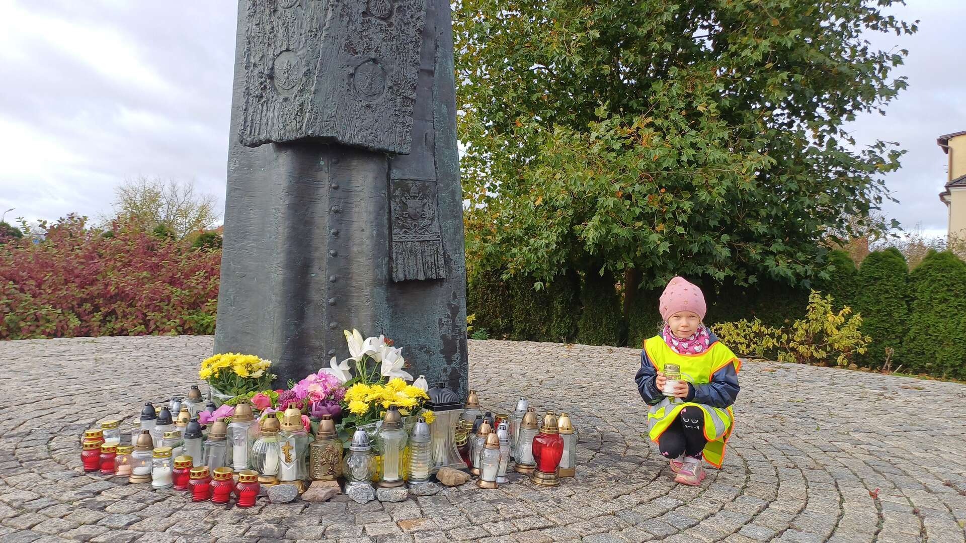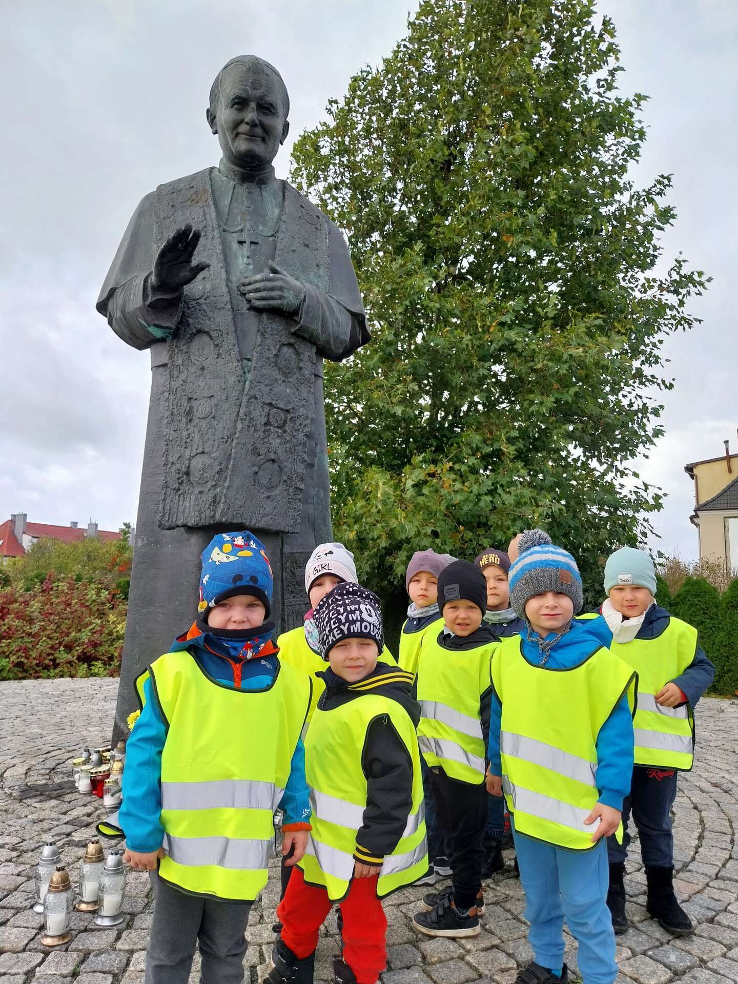 W przeddzień Wszystkich Świętych dzieci zapaliły znicze pod pomnikiem Świętego Jana Pawła II.