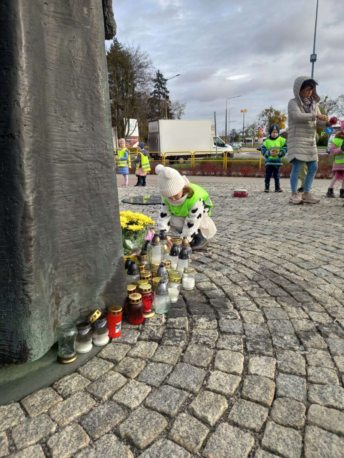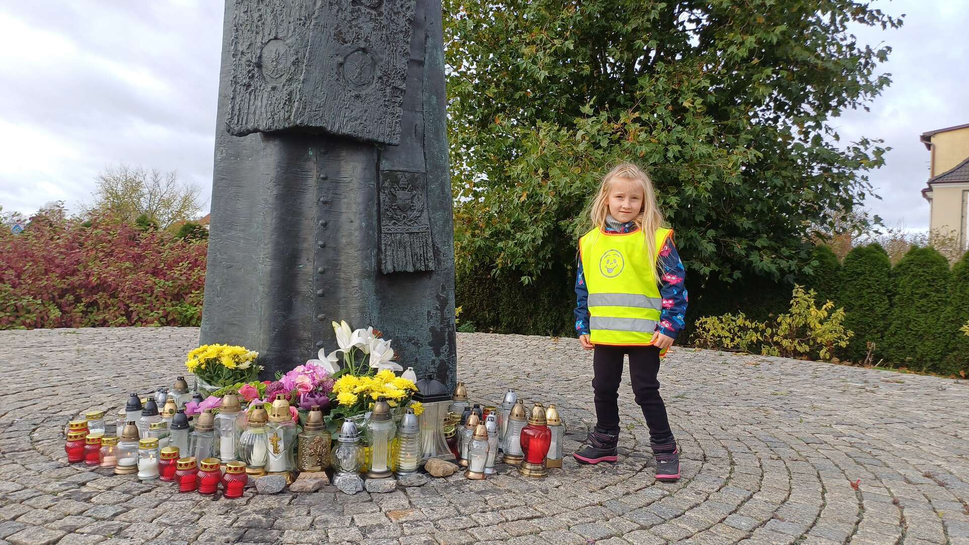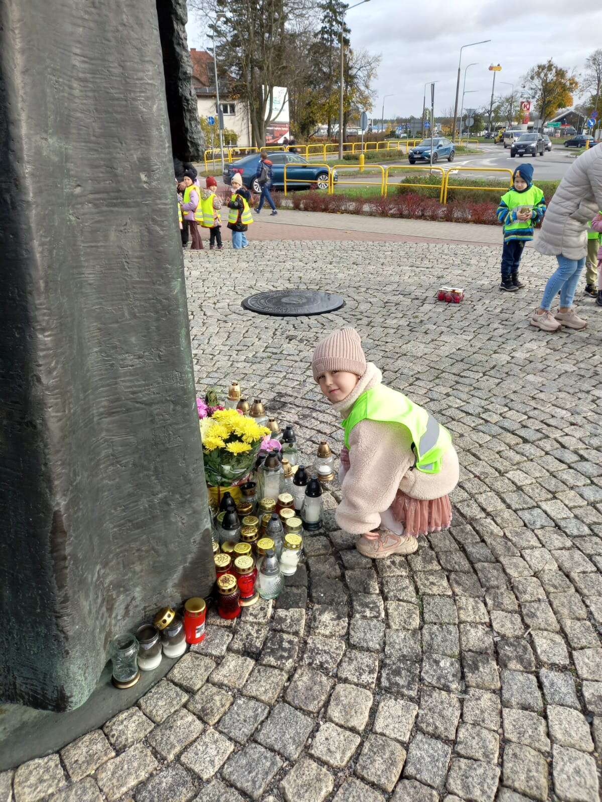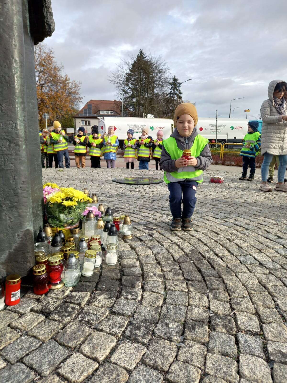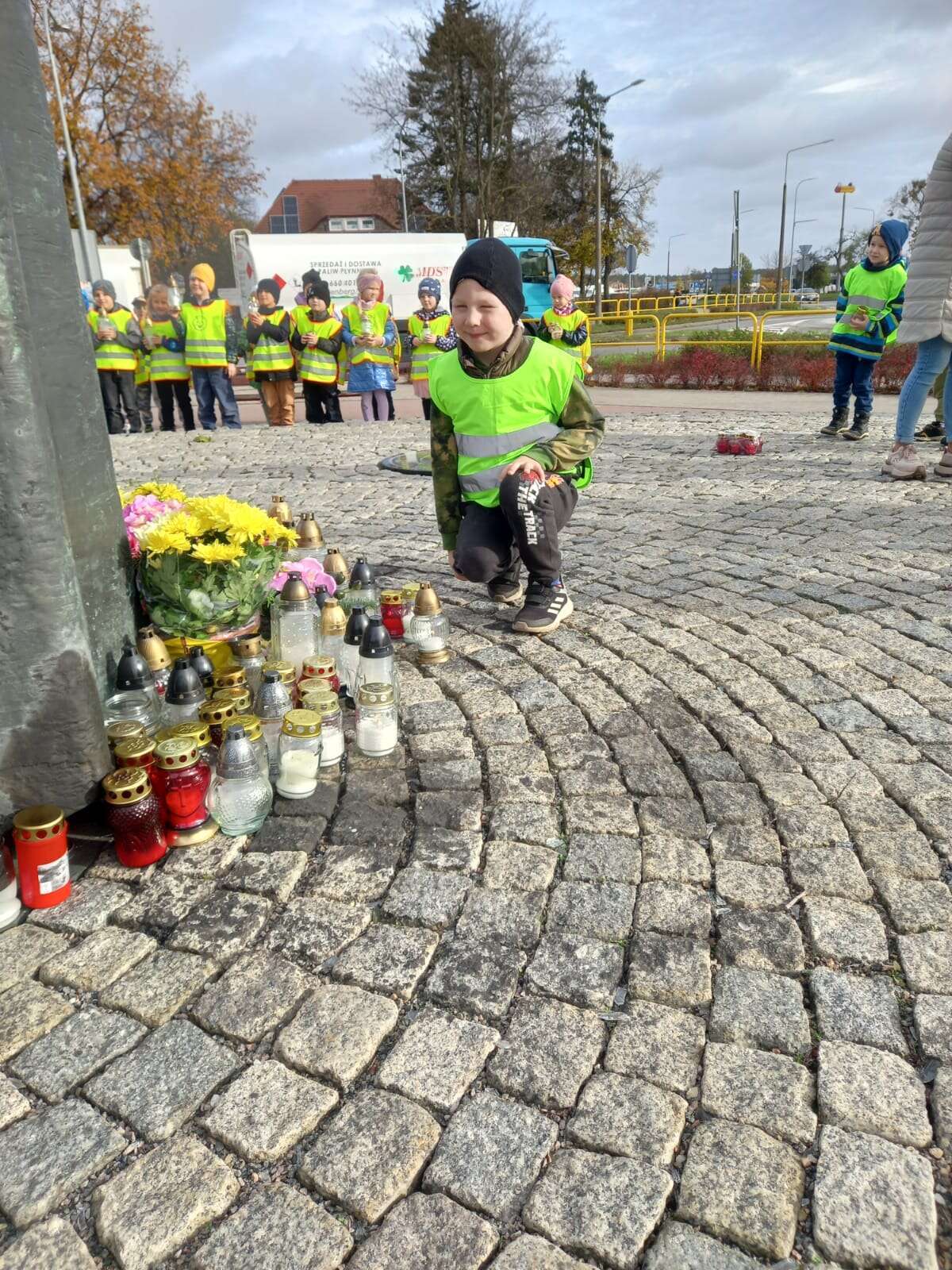 W przeddzień Wszystkich Świętych dzieci zapaliły znicze pod pomnikiem Świętego Jana Pawła II.