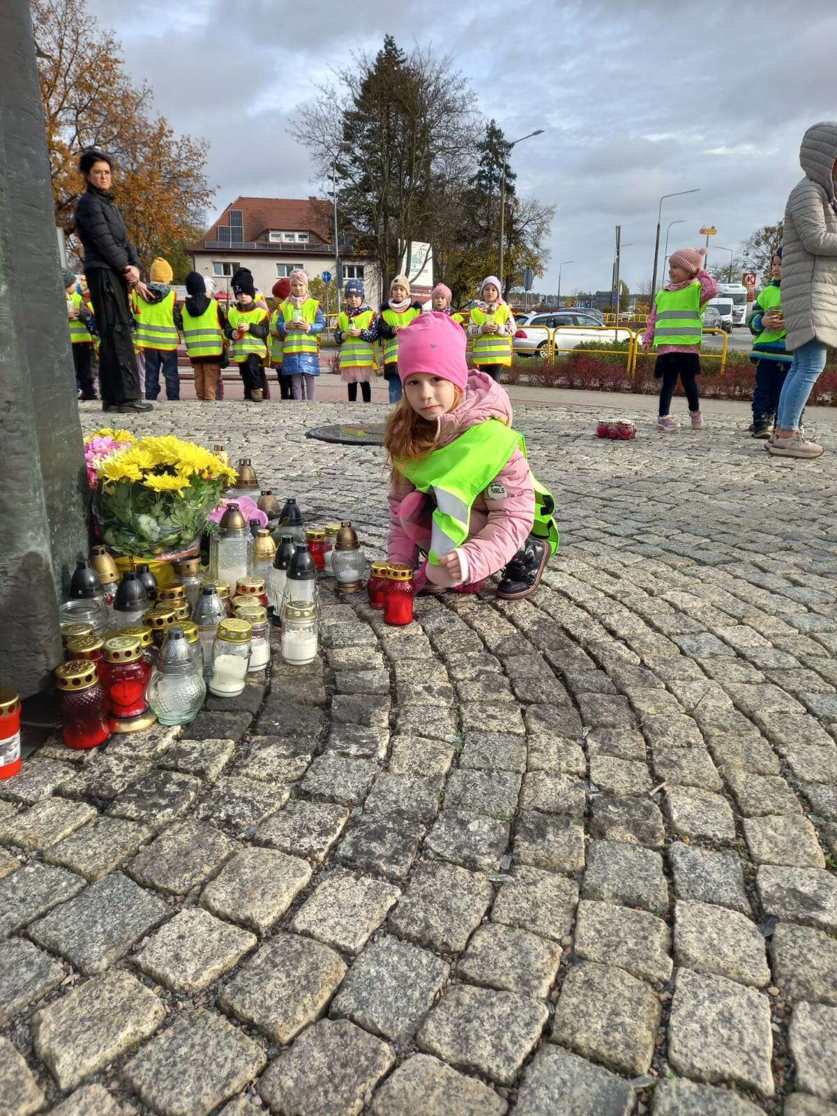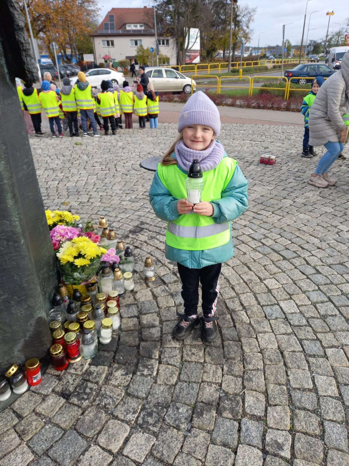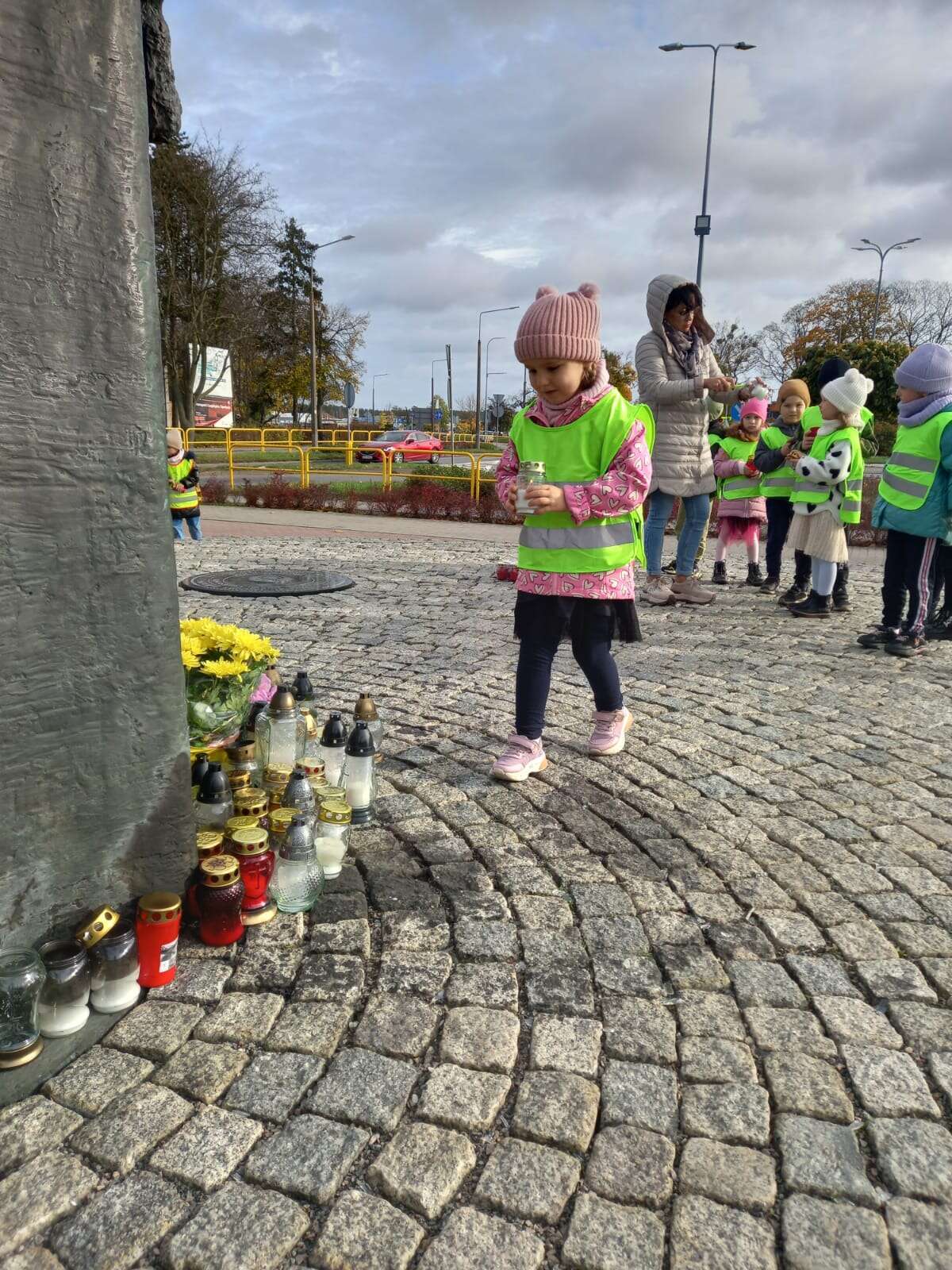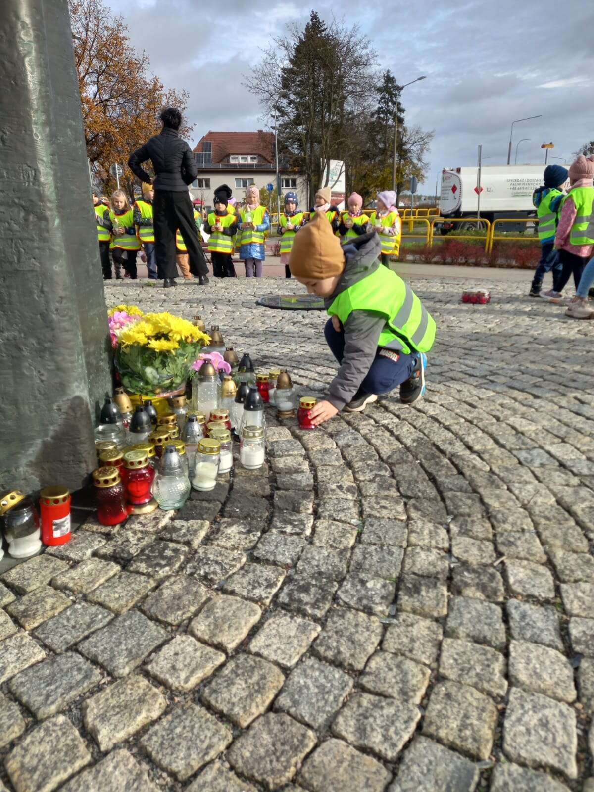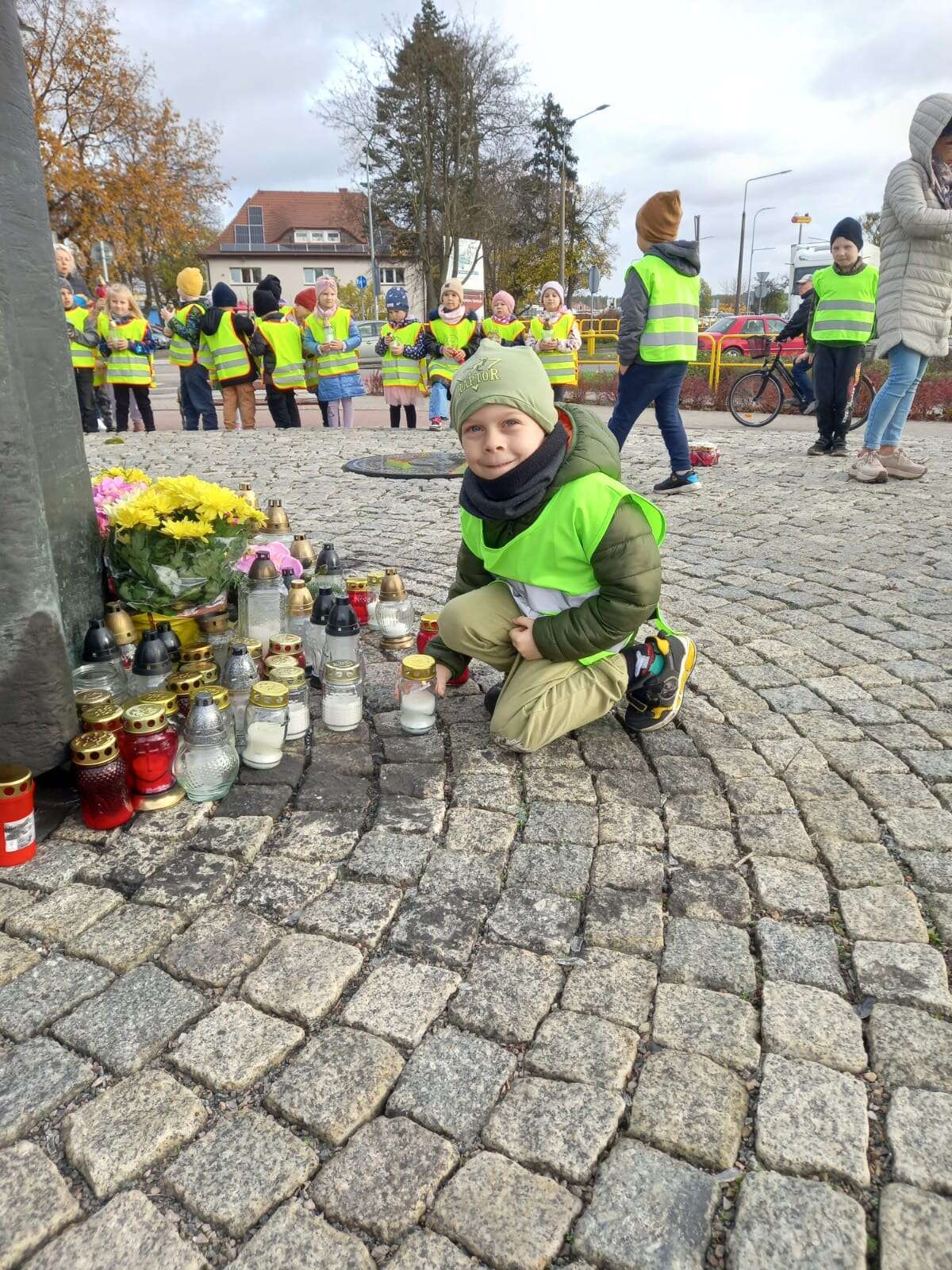 W przeddzień Wszystkich Świętych dzieci zapaliły znicze pod pomnikiem Świętego Jana Pawła II.