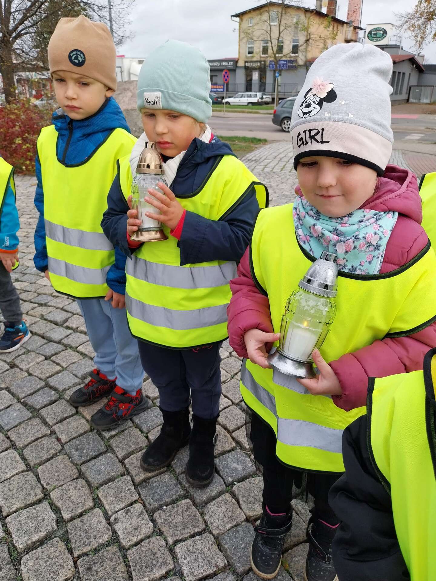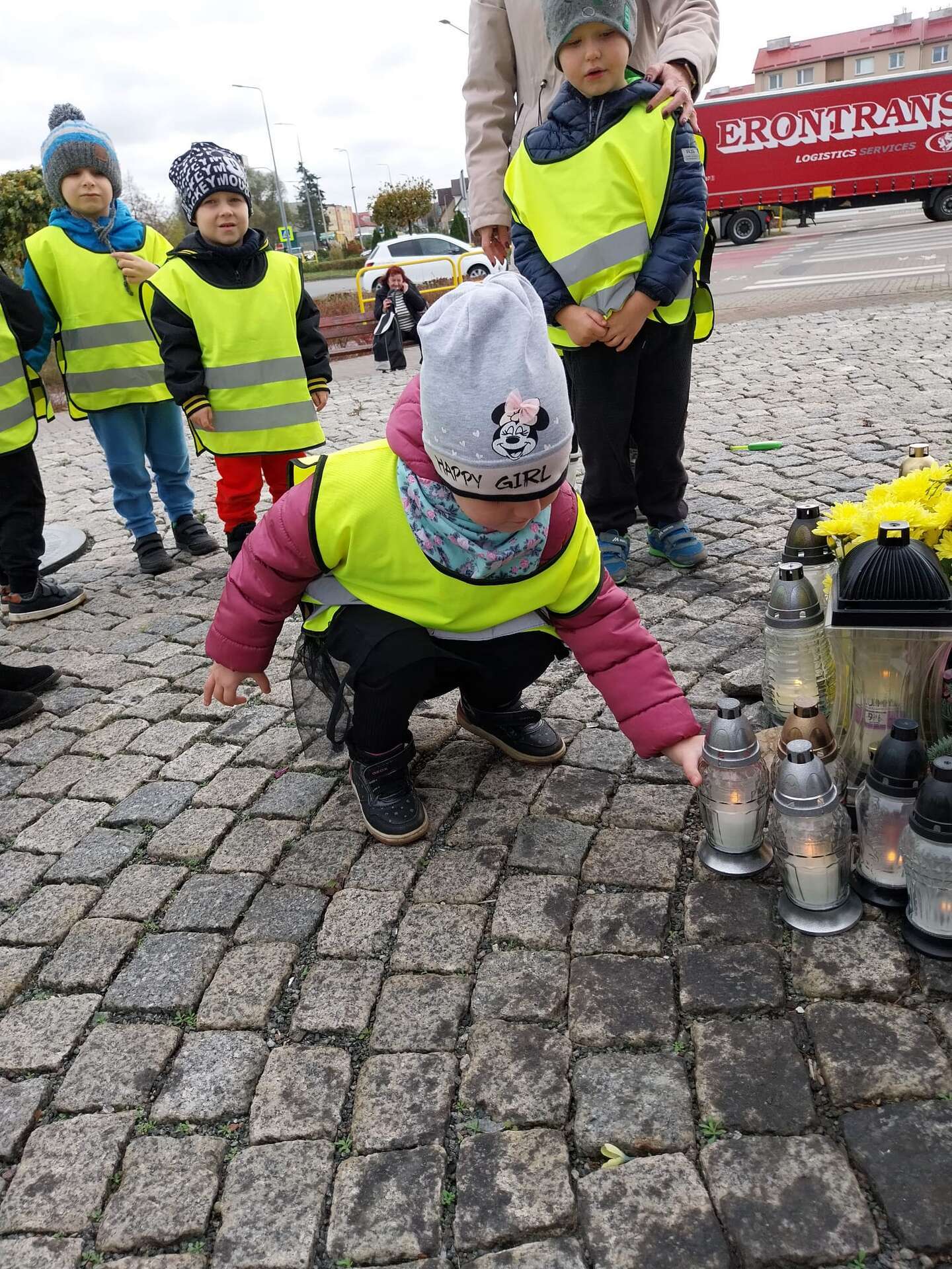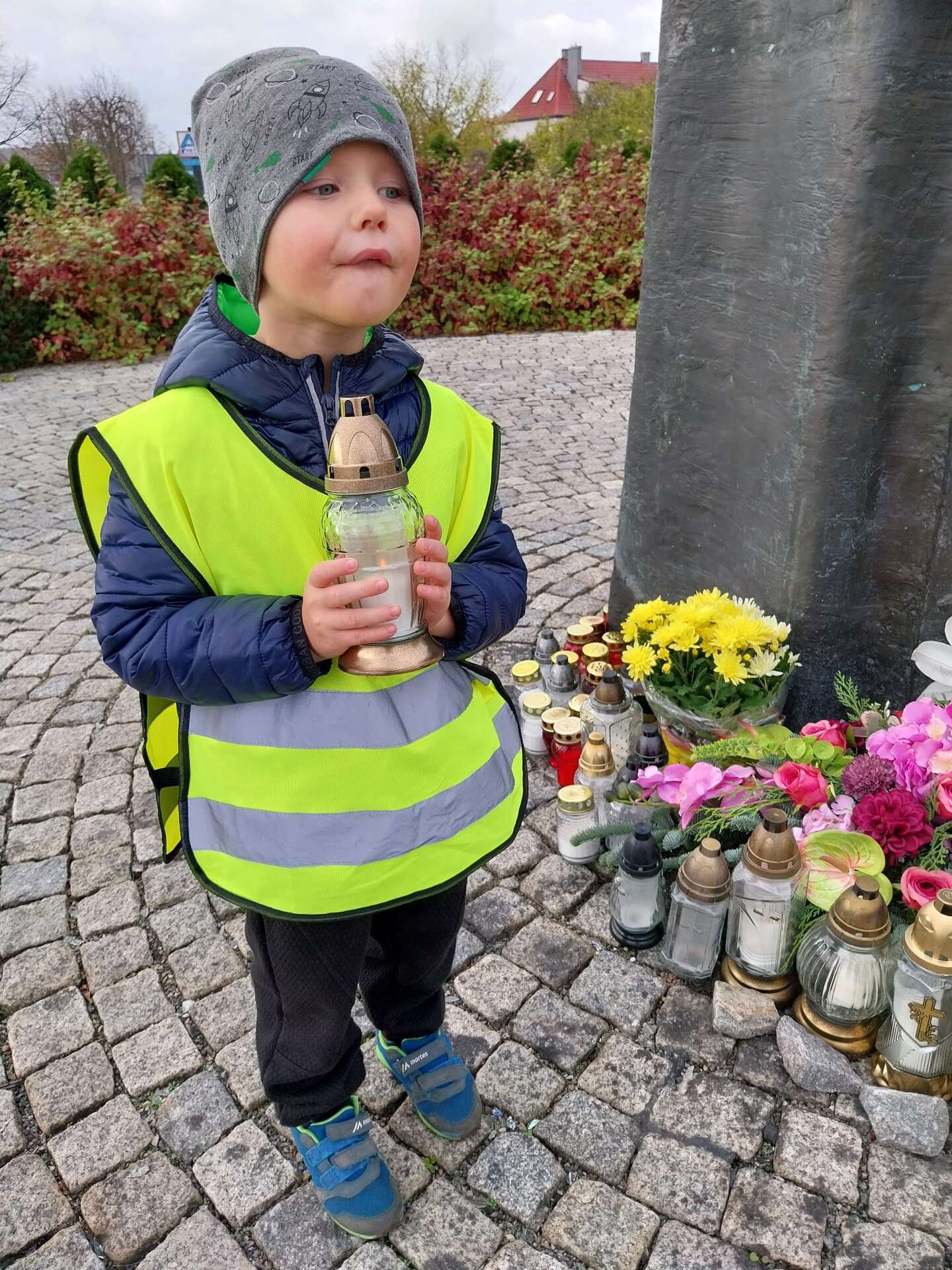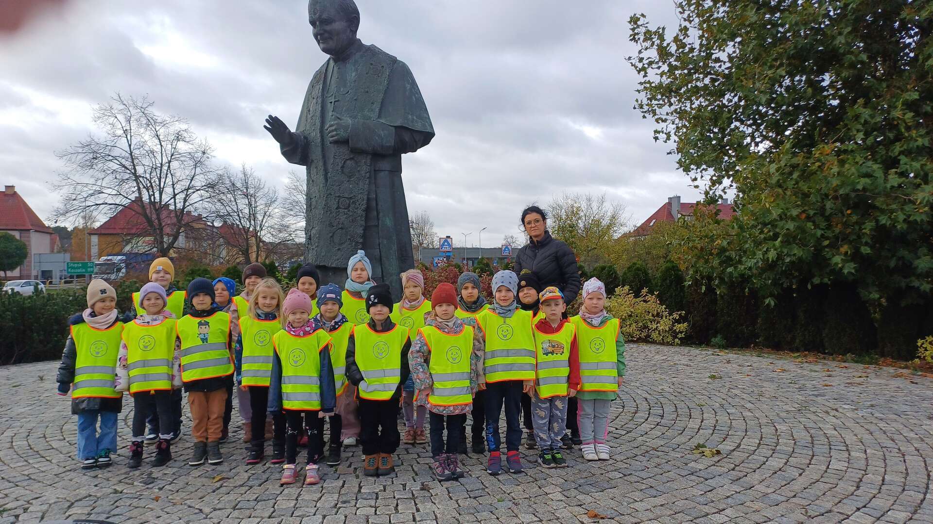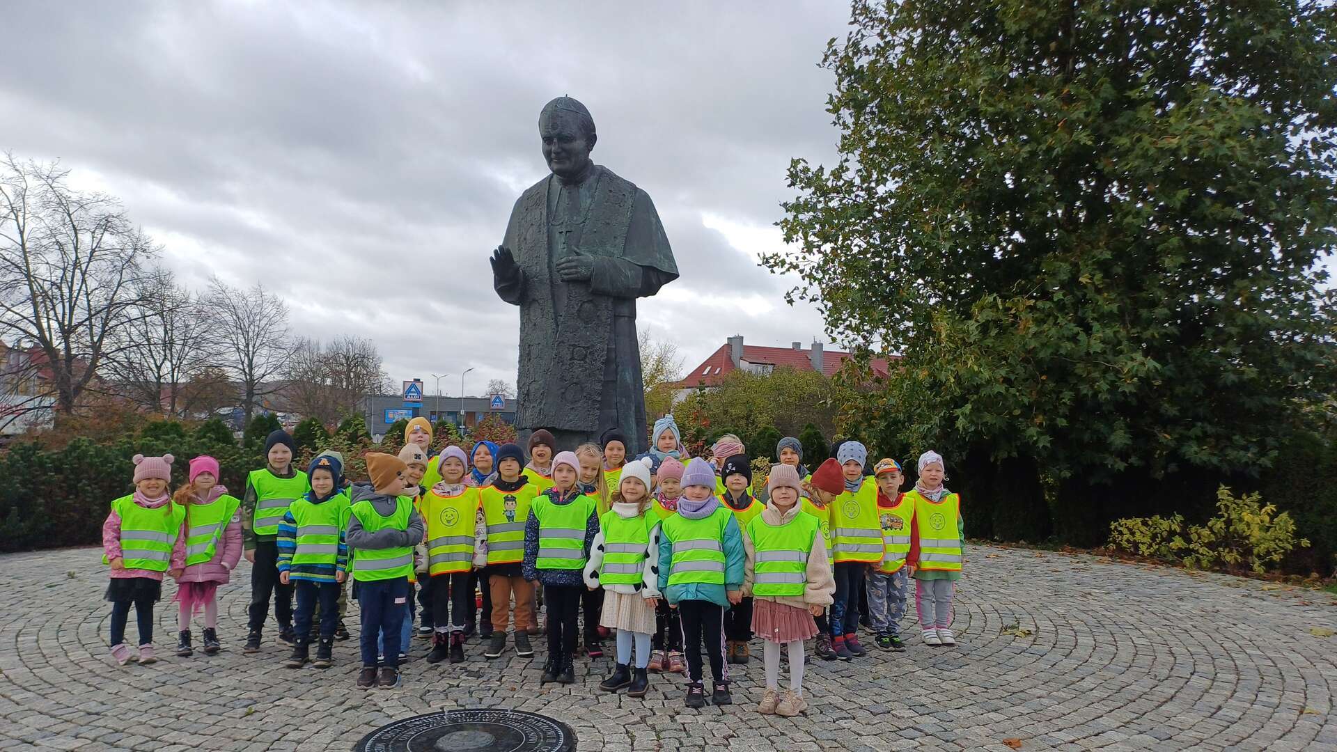 W przeddzień Wszystkich Świętych dzieci zapaliły znicze pod pomnikiem Świętego Jana Pawła II.