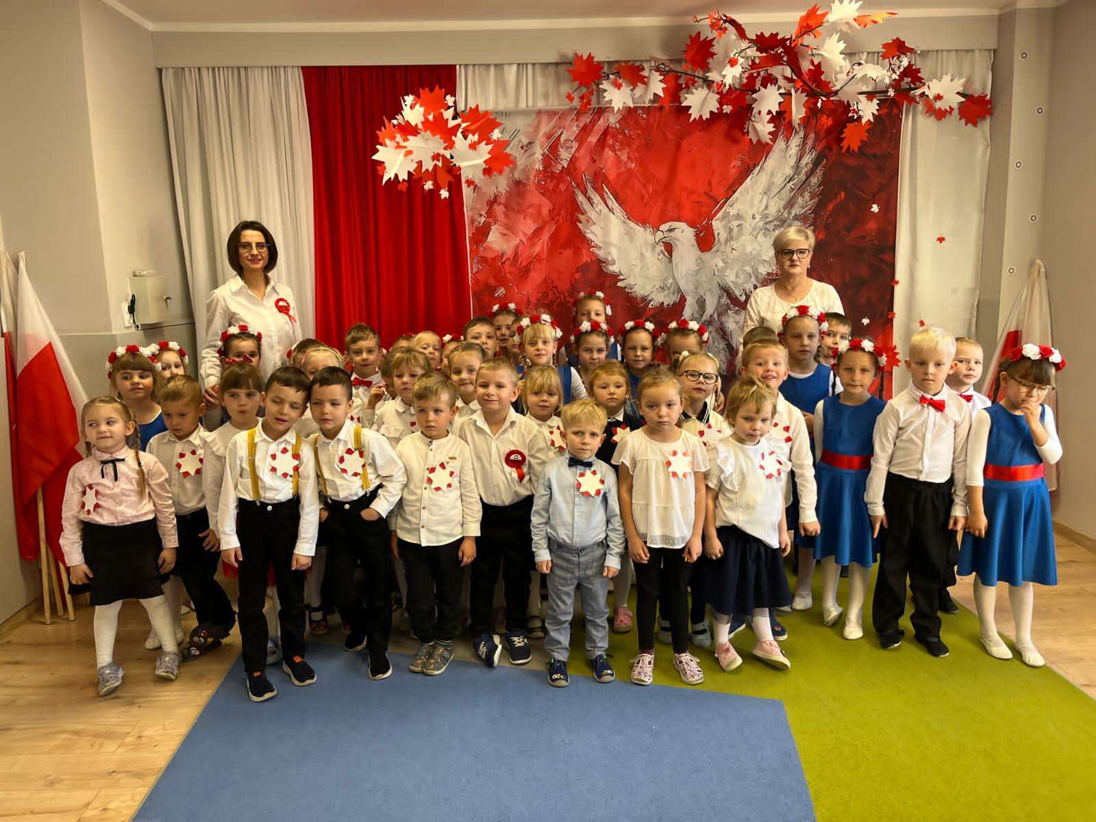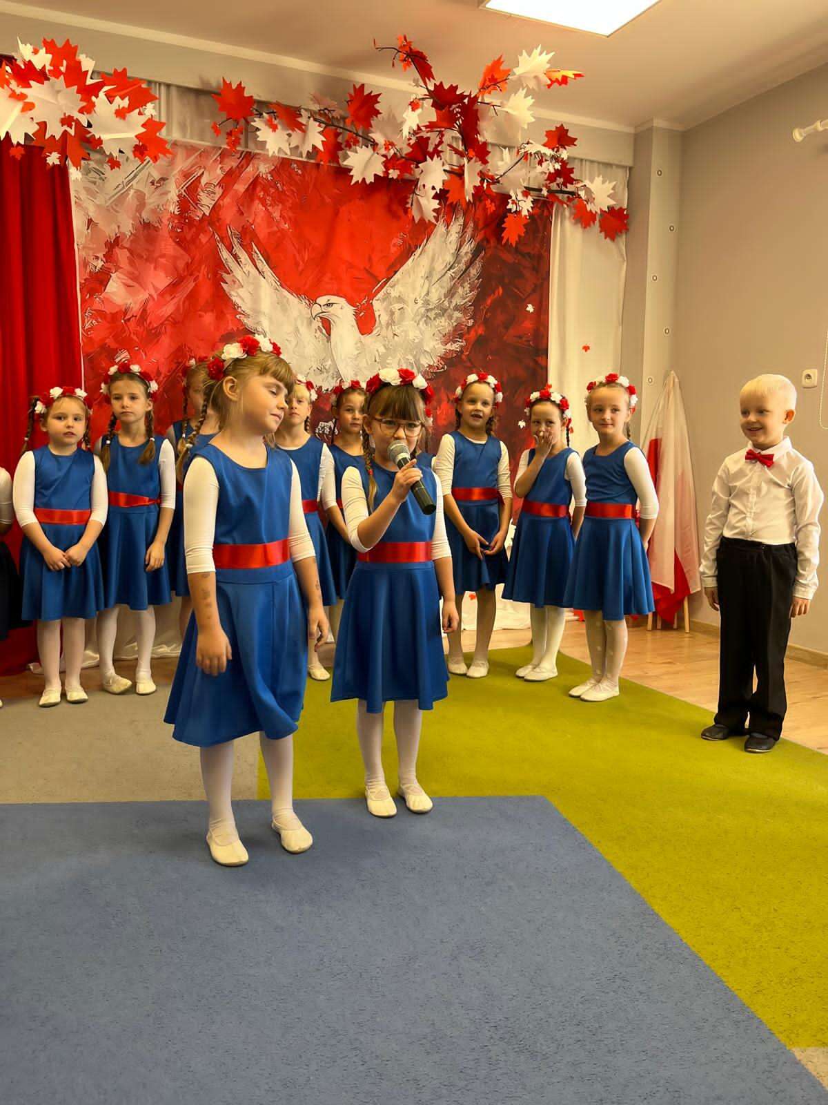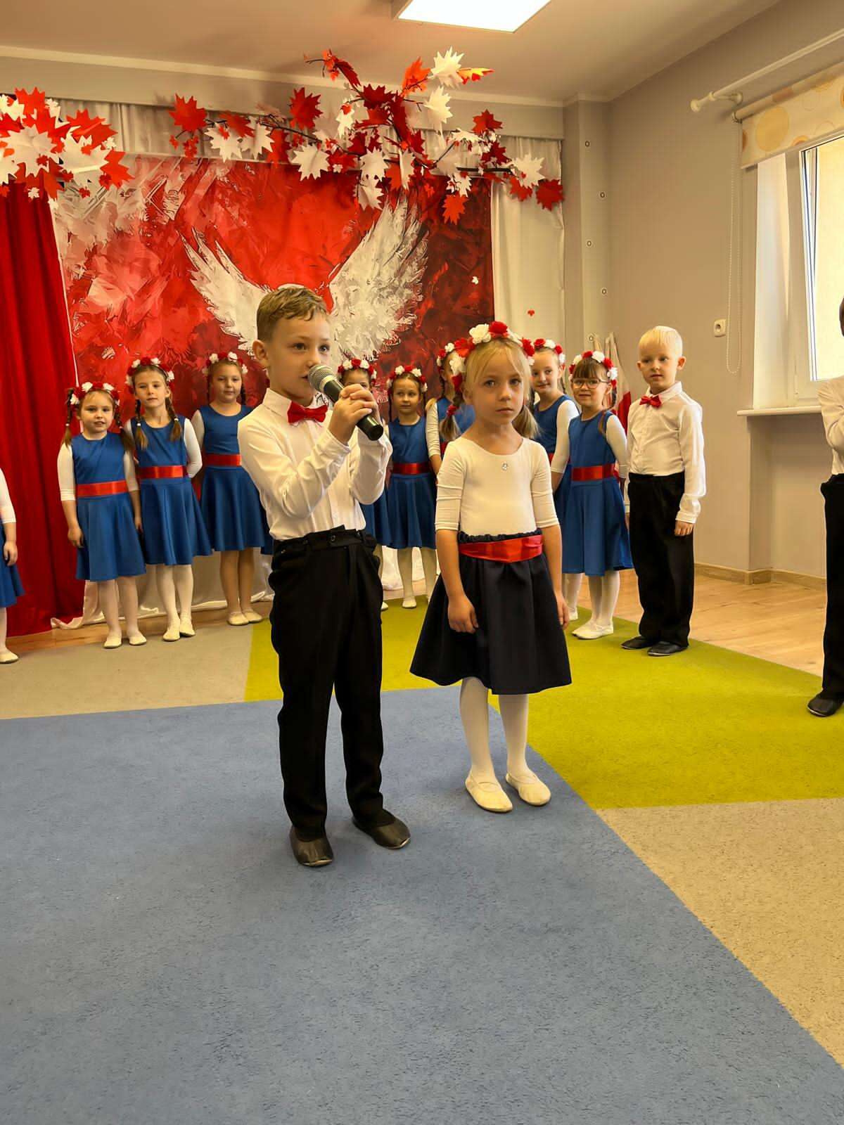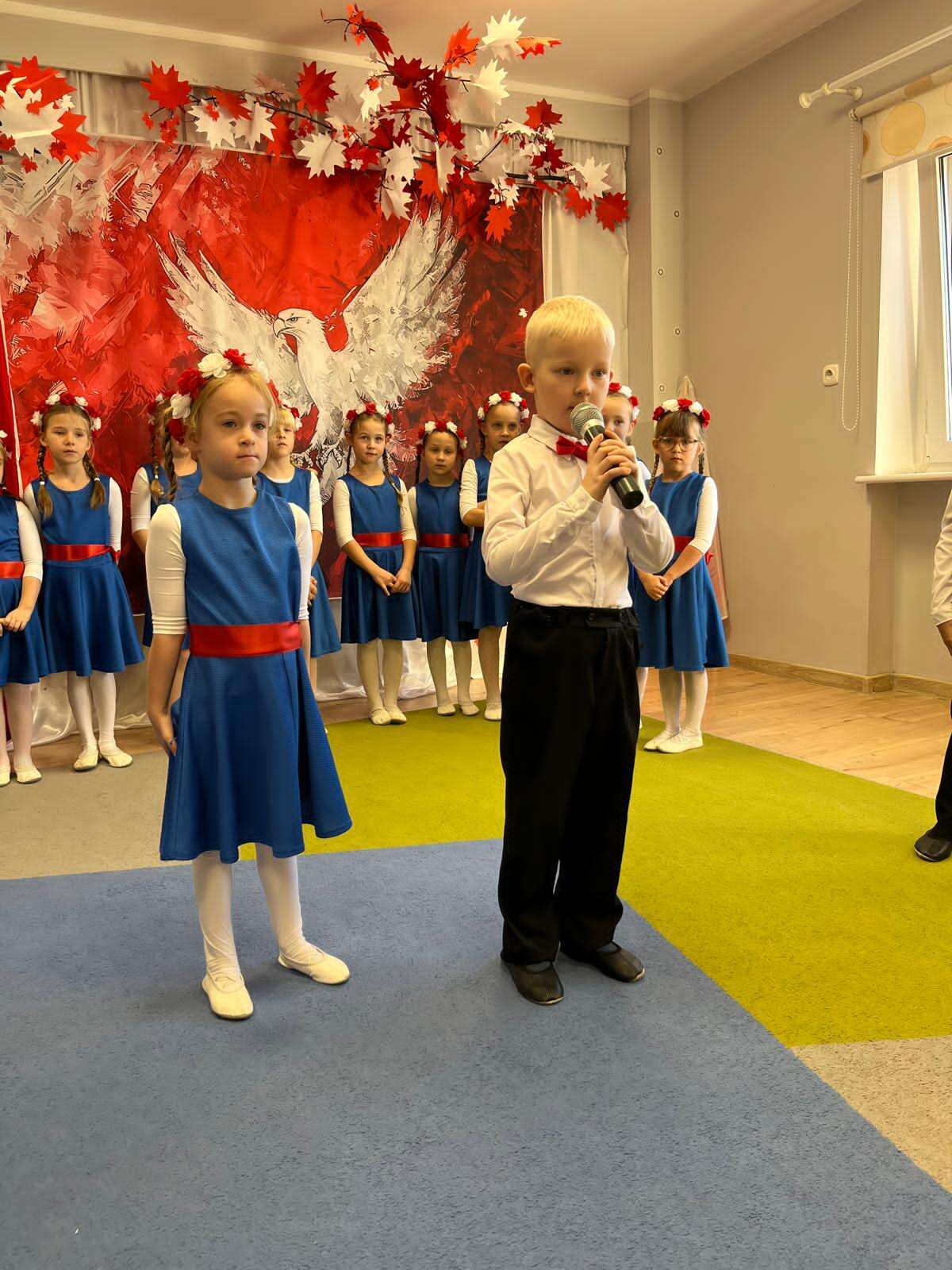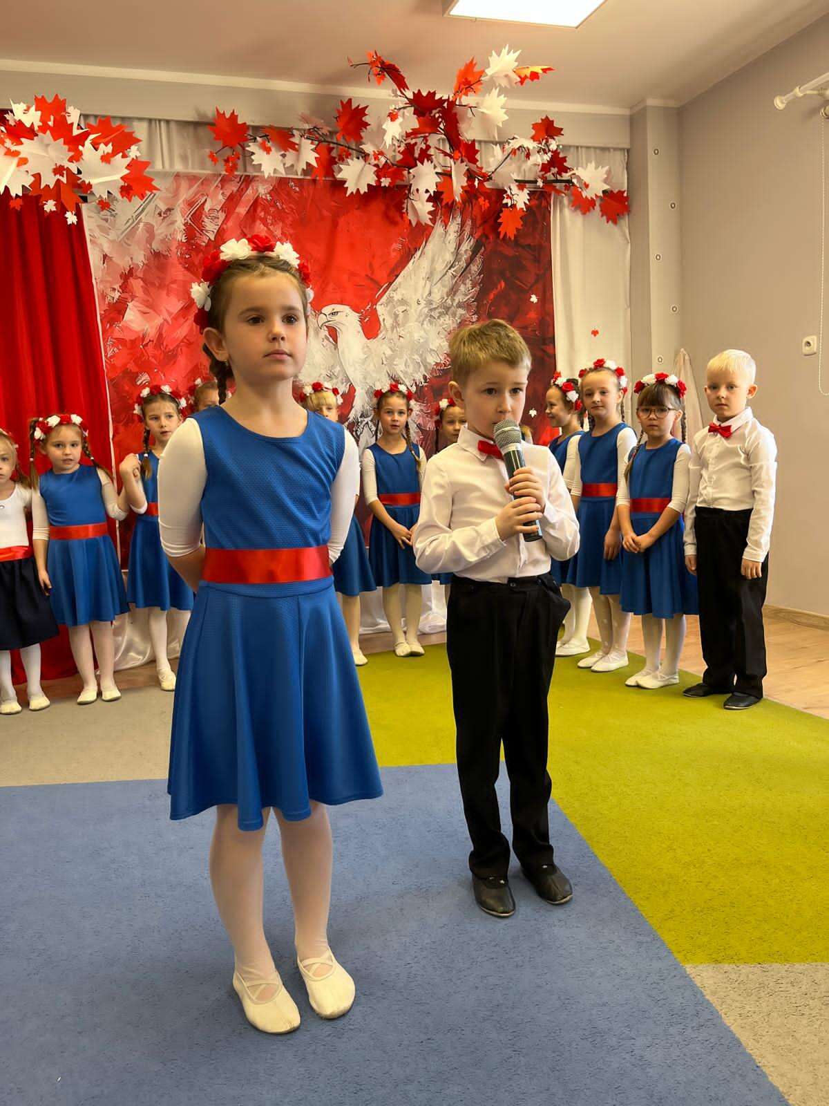7 października grupa IV naszego przedszkola przeniosła nas w świat pełen barw, muzyki i radości. Dzieci w tańcu, piosence i wierszach opowiedziały o miłości do ojczyzny, o biało - czerwonych barwach i dumie, jaką daje nam Orzeł Biały - symbol wolnej Polski. Swoim występem przedszkolaki przypomniały, że każdy, nawet mały patriota może nosić Polskę w sercu. Dzieci w ciepły, wzruszający sposób upamiętniły 11 listopada - Narodowe Święto Niepodległości.