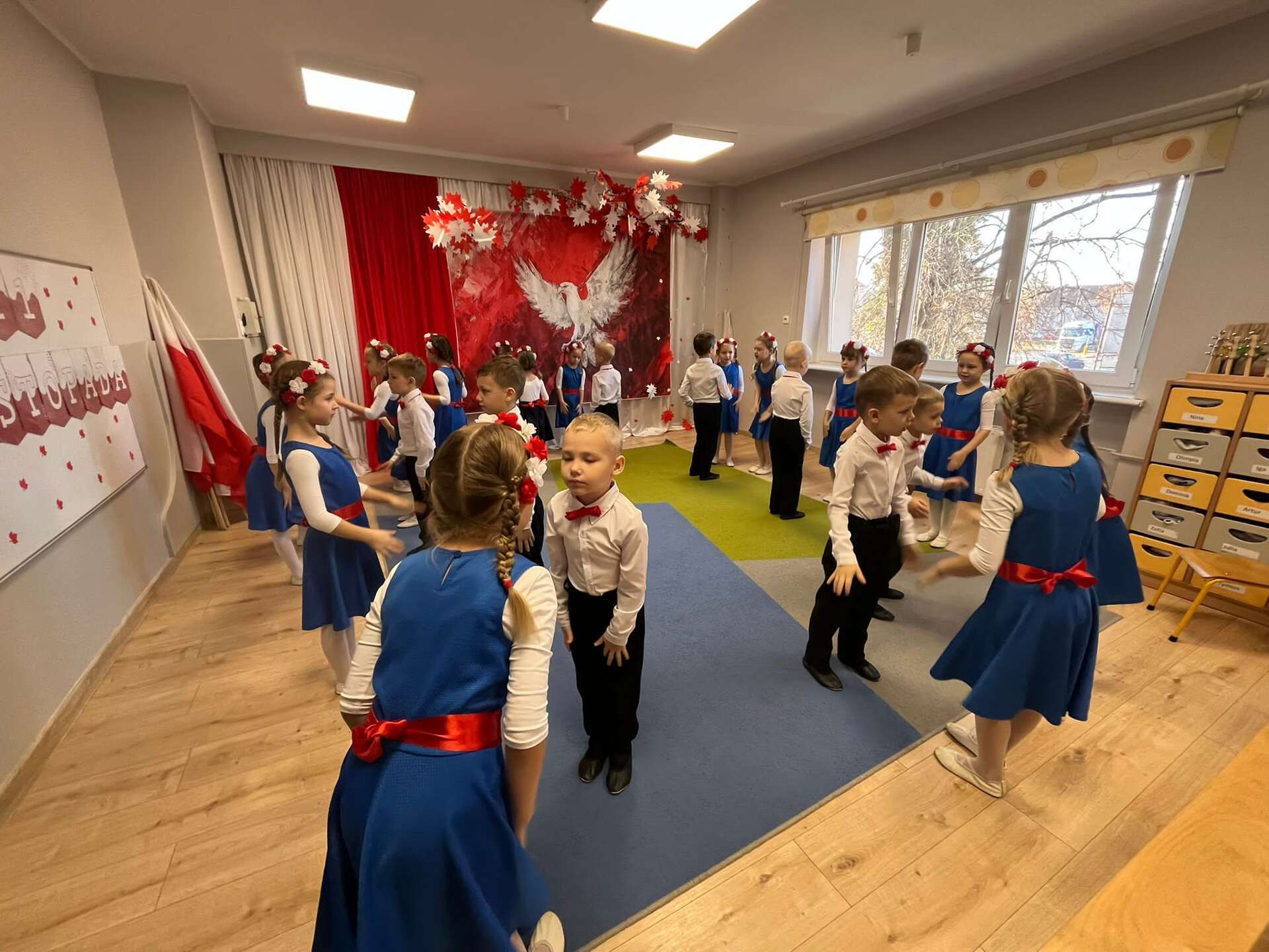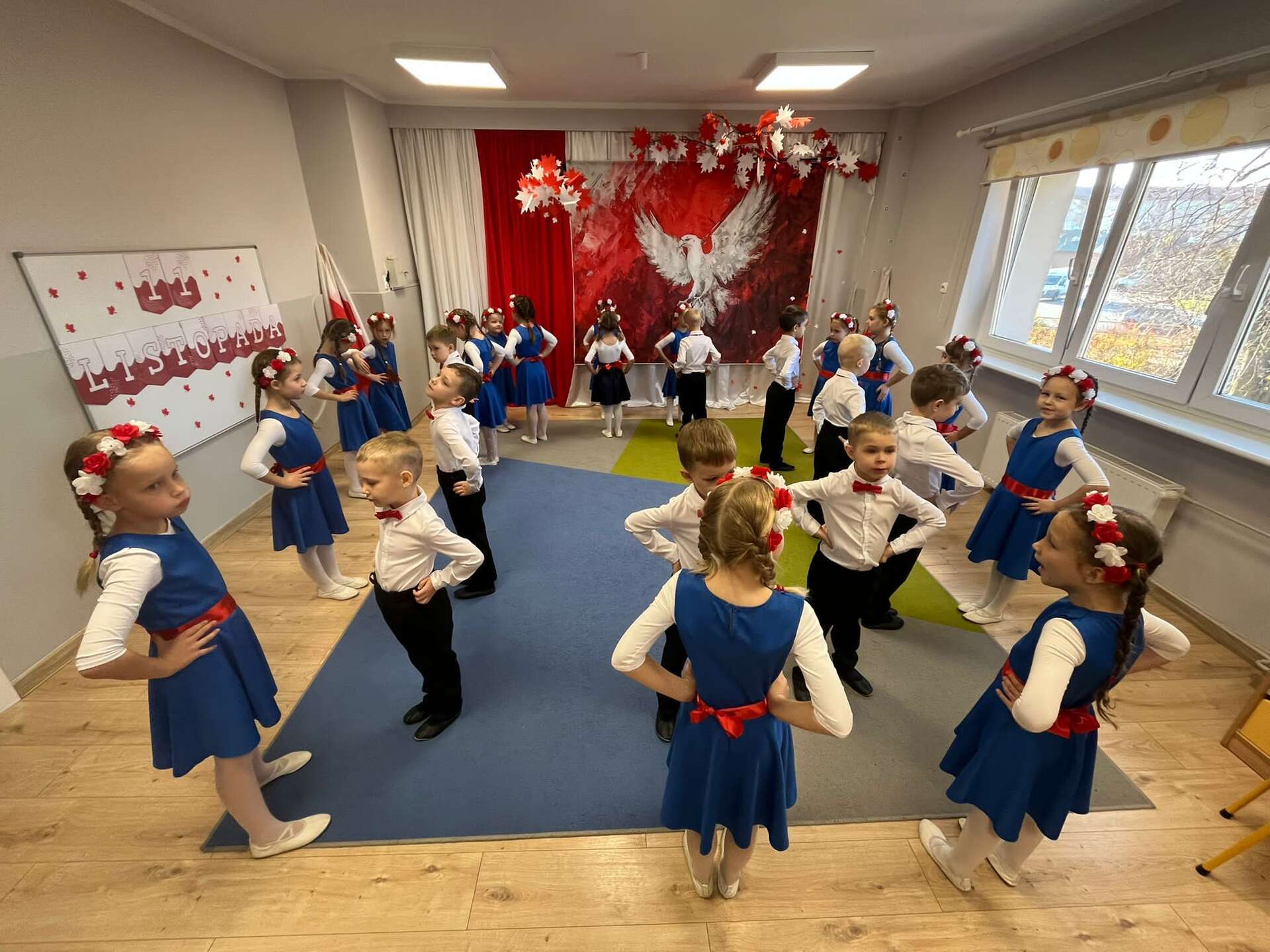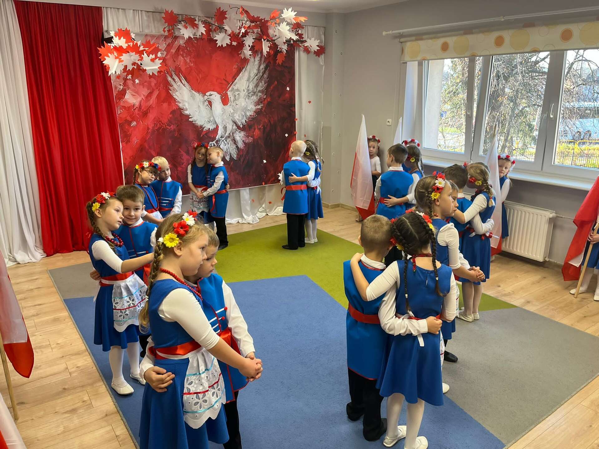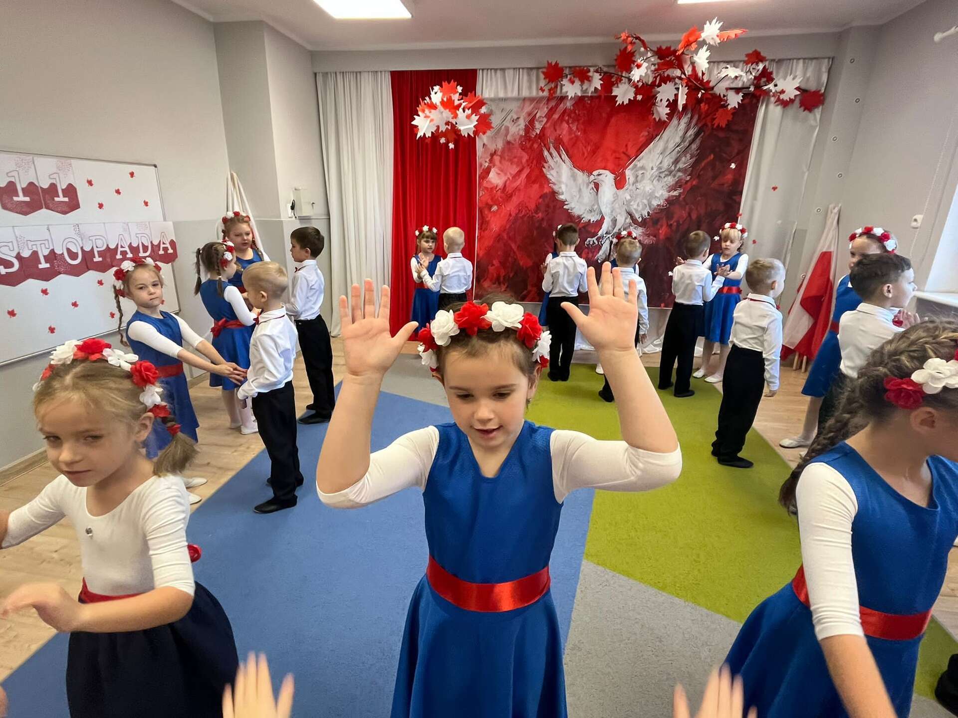7 października grupa IV naszego przedszkola przeniosła nas w świat pełen barw, muzyki i radości. Dzieci w tańcu, piosence i wierszach opowiedziały o miłości do ojczyzny, o biało - czerwonych barwach i dumie, jaką daje nam Orzeł Biały - symbol wolnej Polski. Swoim występem przedszkolaki przypomniały, że każdy, nawet mały patriota może nosić Polskę w sercu. Dzieci w ciepły, wzruszający sposób upamiętniły 11 listopada - Narodowe Święto Niepodległości.