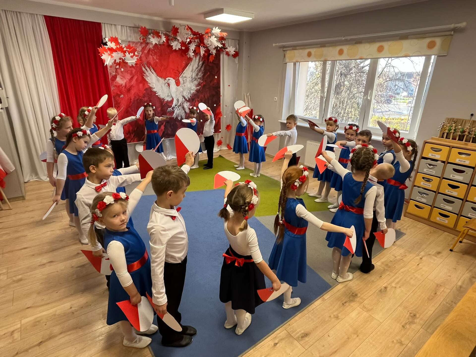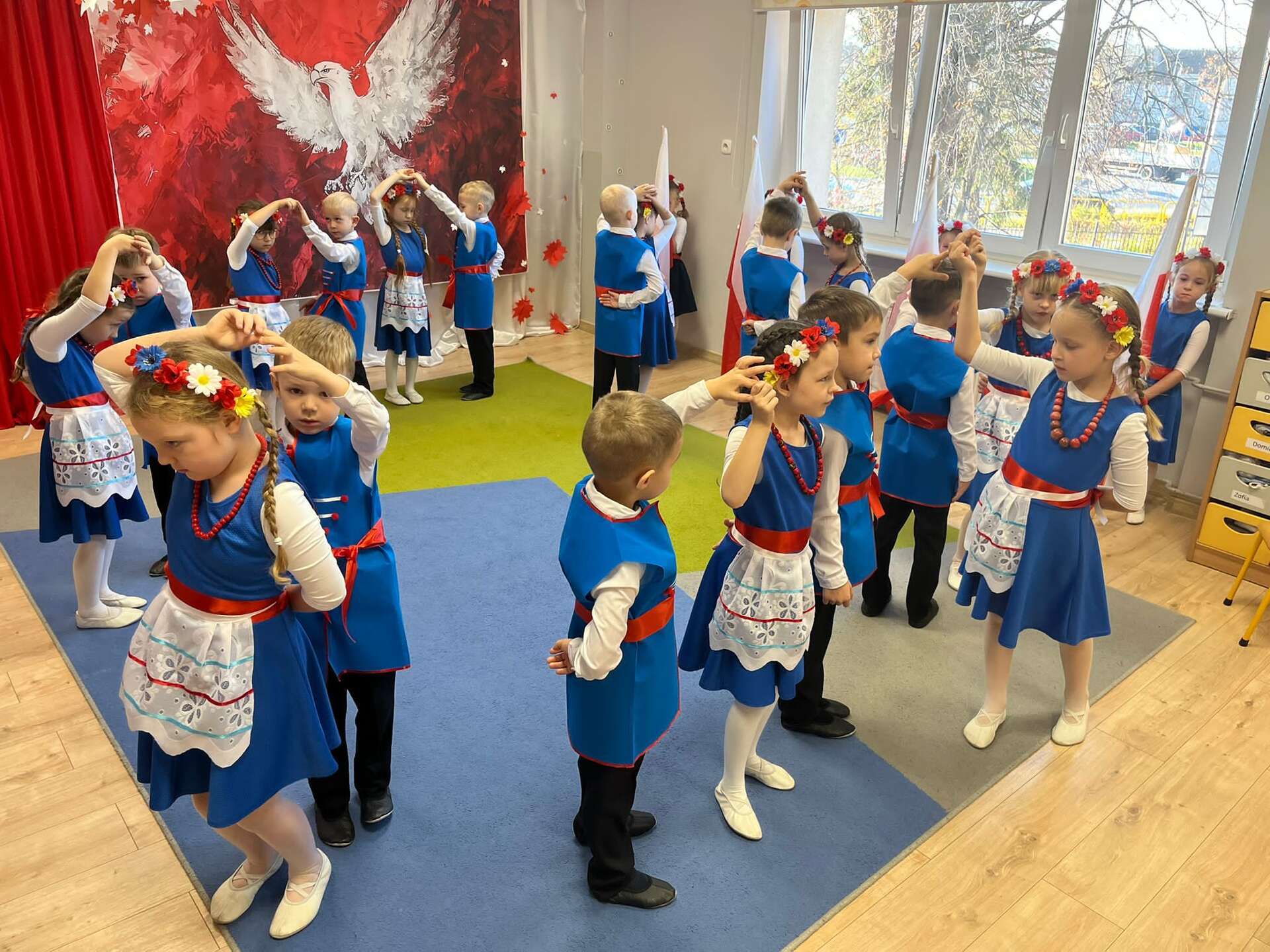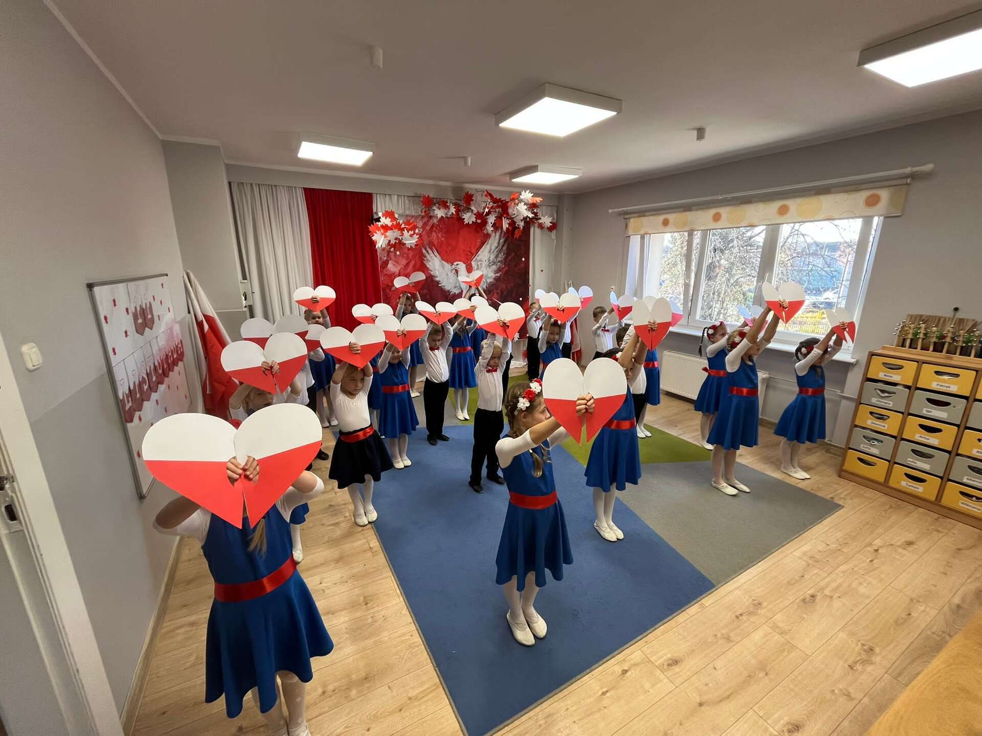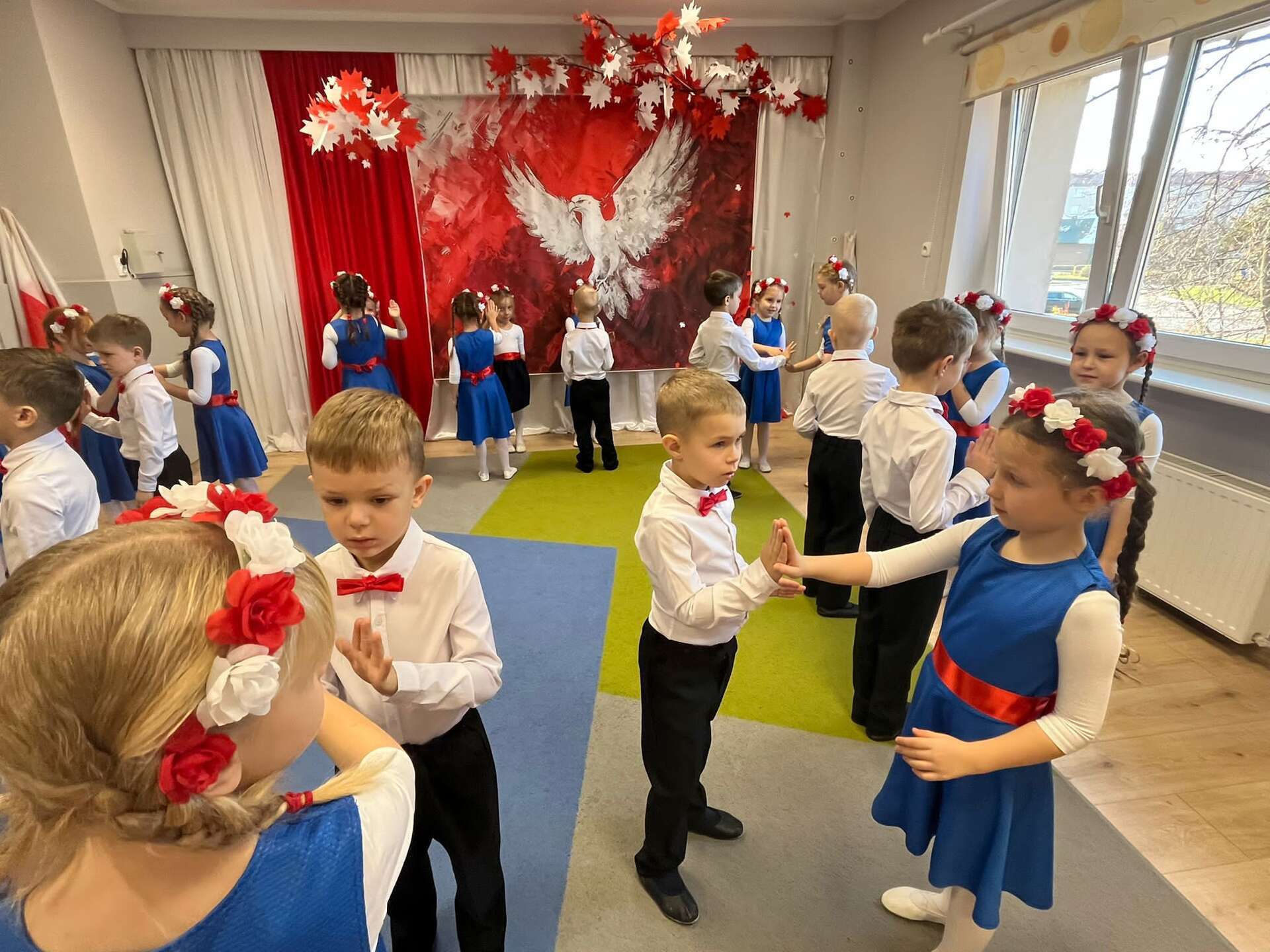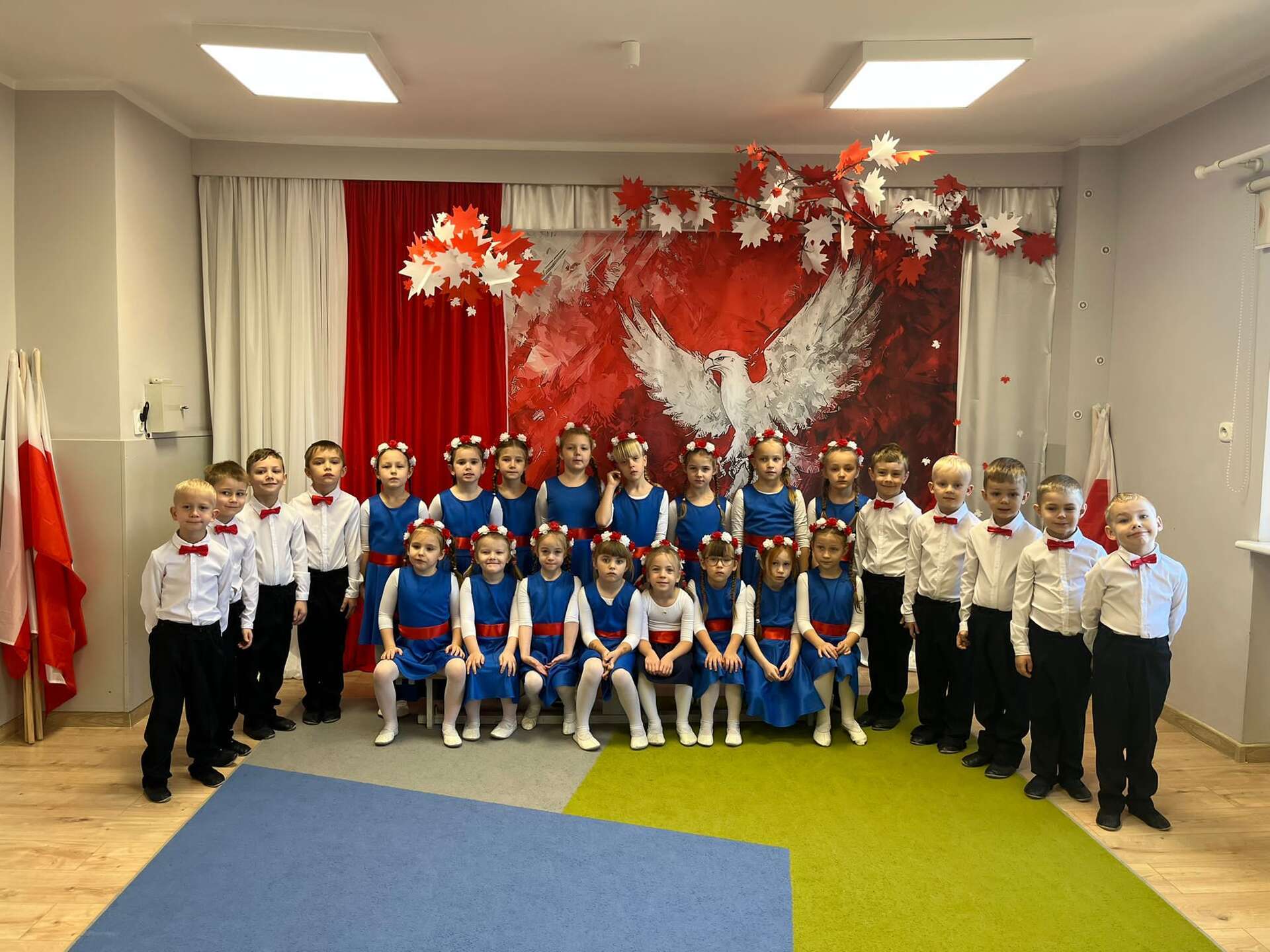7 października grupa IV naszego przedszkola przeniosła nas w świat pełen barw, muzyki i radości. Dzieci w tańcu, piosence i wierszach opowiedziały o miłości do ojczyzny, o biało - czerwonych barwach i dumie, jaką daje nam Orzeł Biały - symbol wolnej Polski. Swoim występem przedszkolaki przypomniały, że każdy, nawet mały patriota może nosić Polskę w sercu. Dzieci w ciepły, wzruszający sposób upamiętniły 11 listopada - Narodowe Święto Niepodległości.