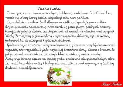 2.Polska jest naszym domem. Miejscem, w którym czujemy się dobrze i bezpiecznie. Tu rozpoznajemy miejsca, domy, ulice, ludzi. Tu są zapachy, smaki, które dobrze znamy i lubimy. W domu, w Polsce wszystko jest nam bliskie i znane. Znakami naszego domu – Polski jest biało-czerwona flaga i godło z białym orłem.