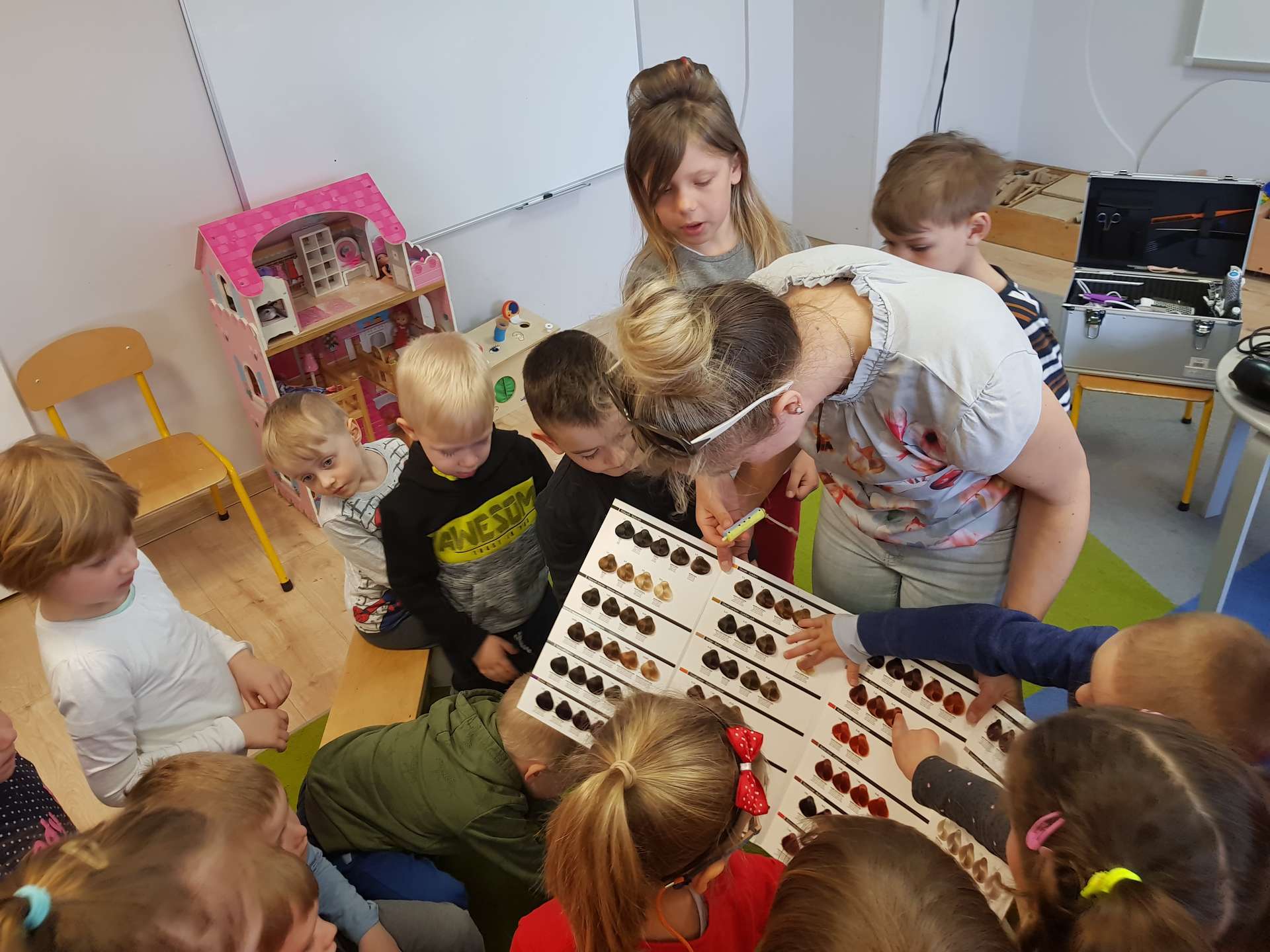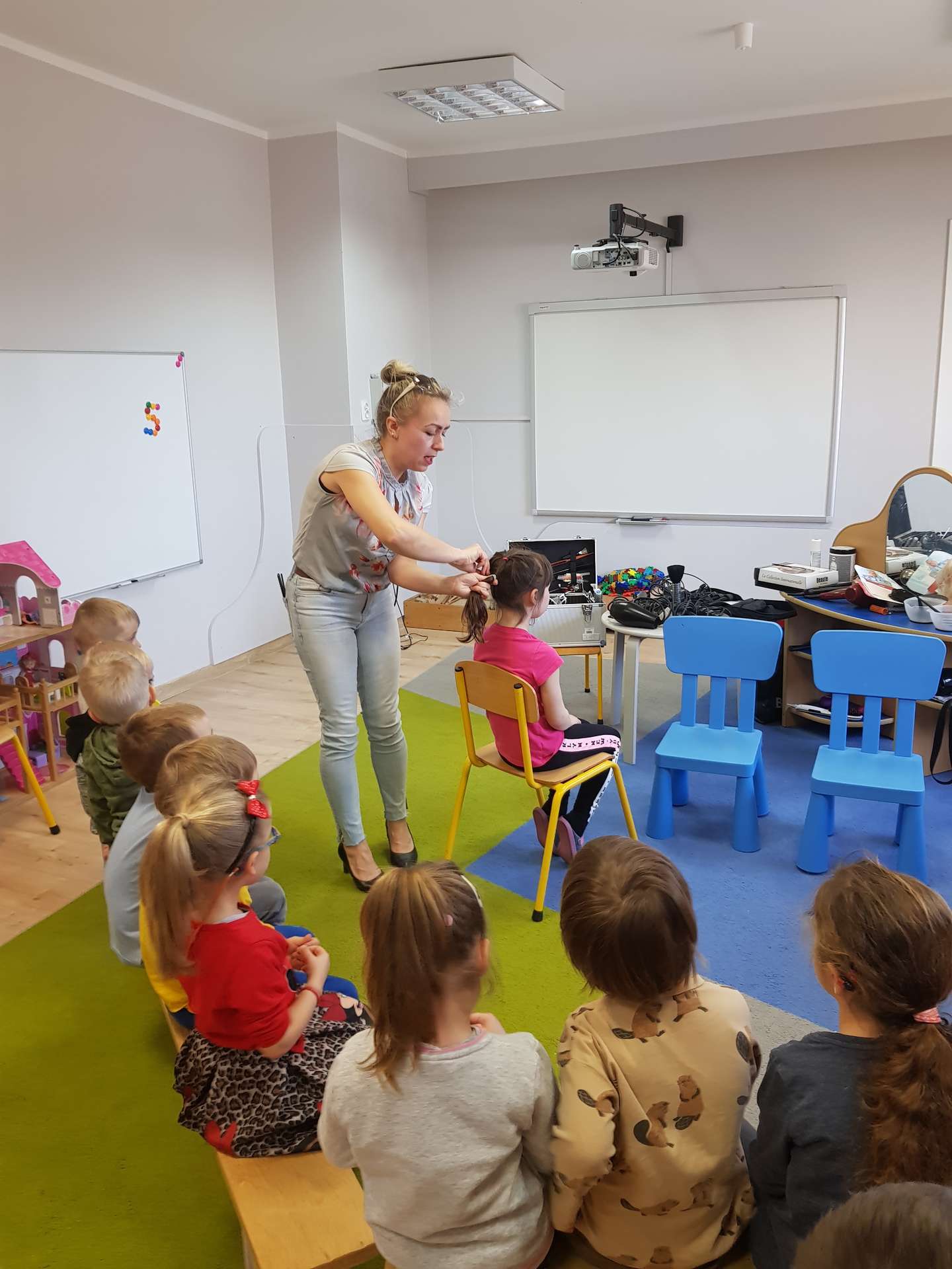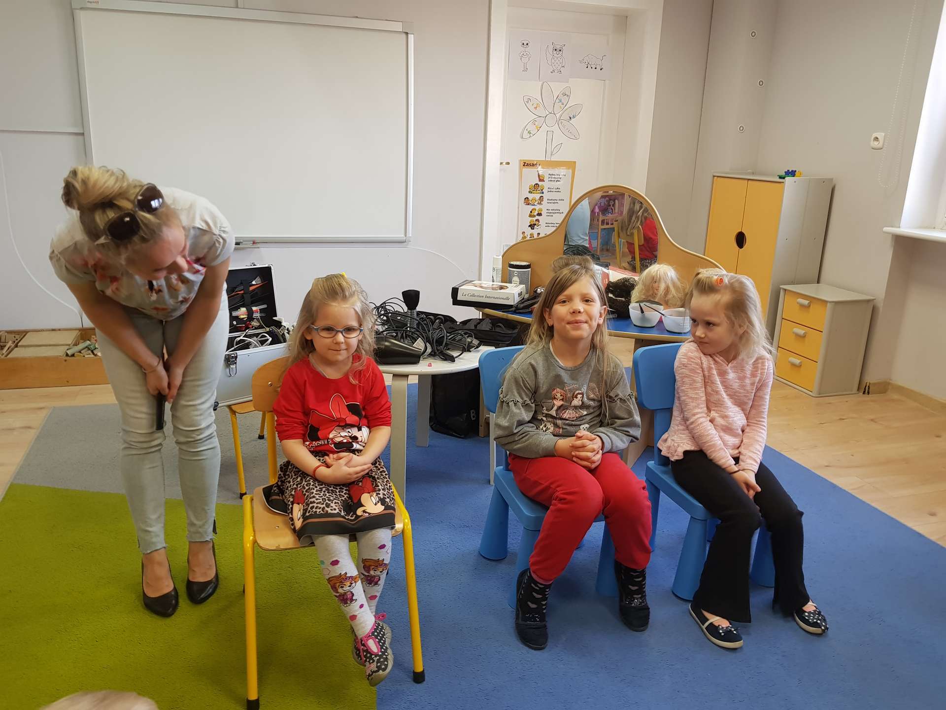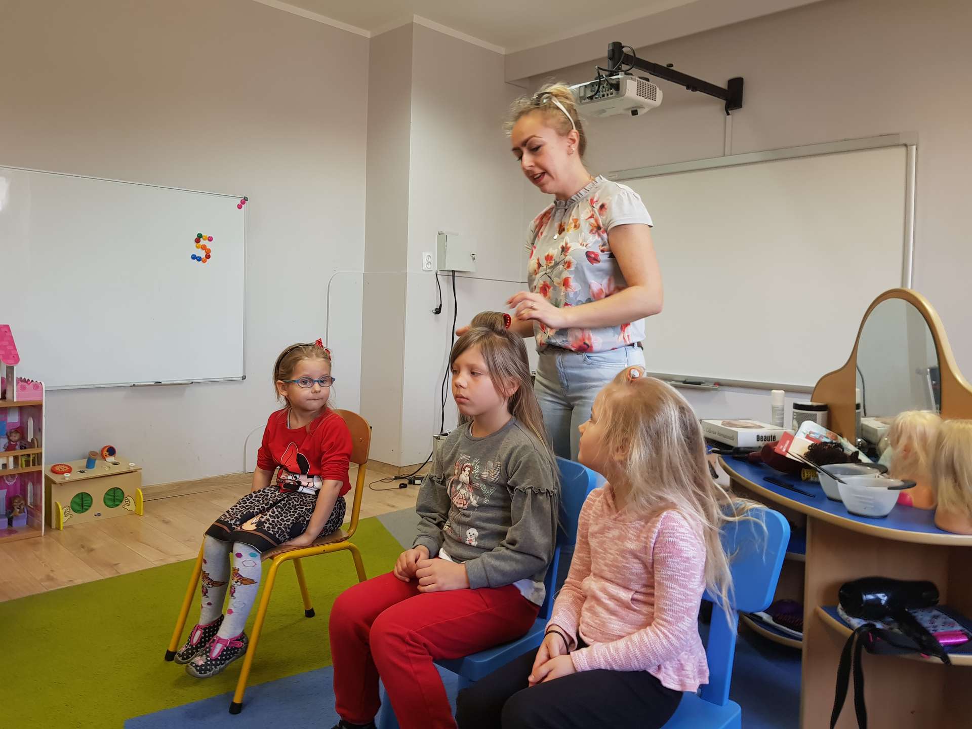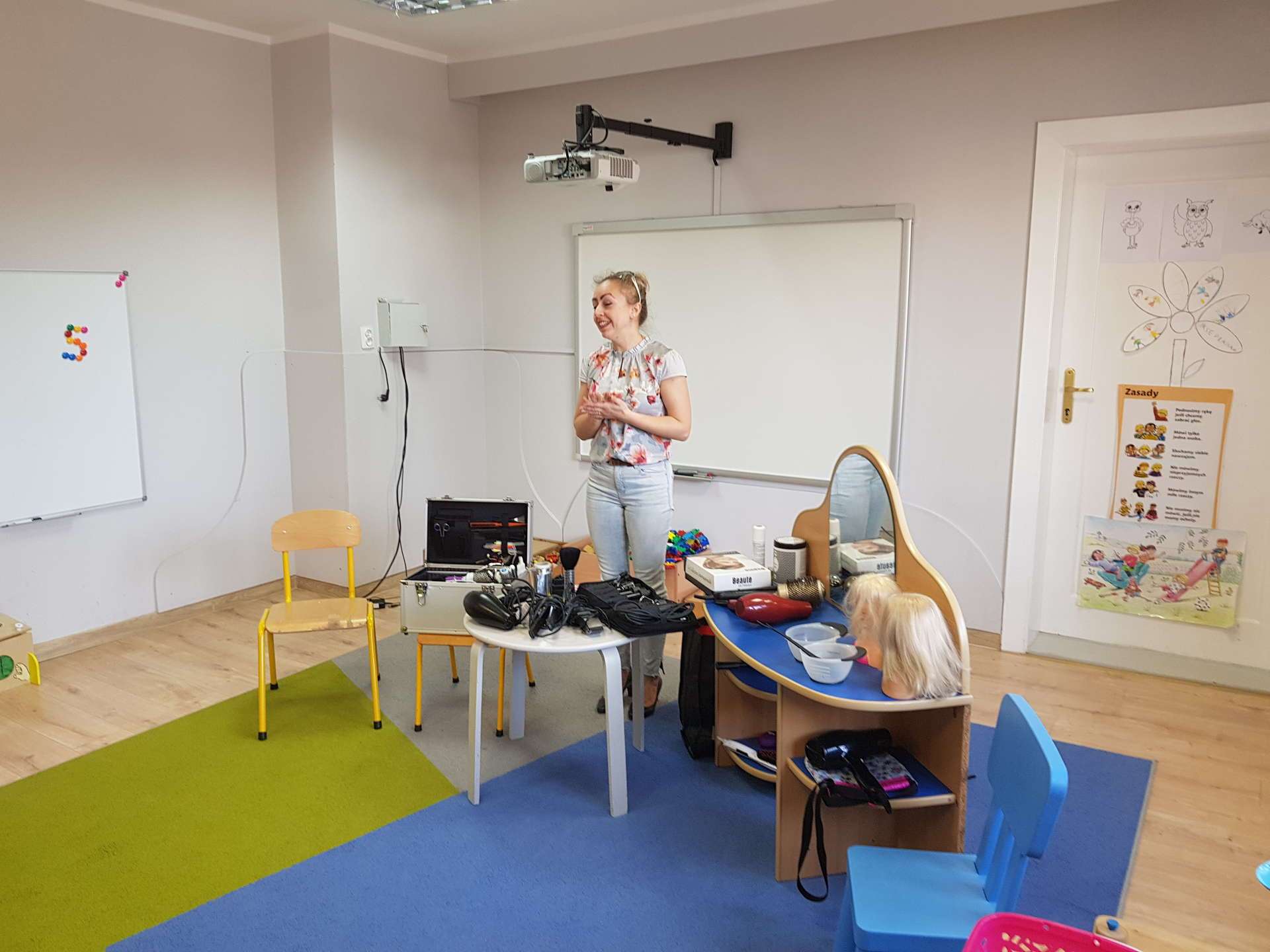 Pani Ania przedstawiła najważniejsze informacje dotyczące charakteru pracy fryzjerki. Dzieci dowiedziały się, jak należy dbać o włosy i skórę głowy.