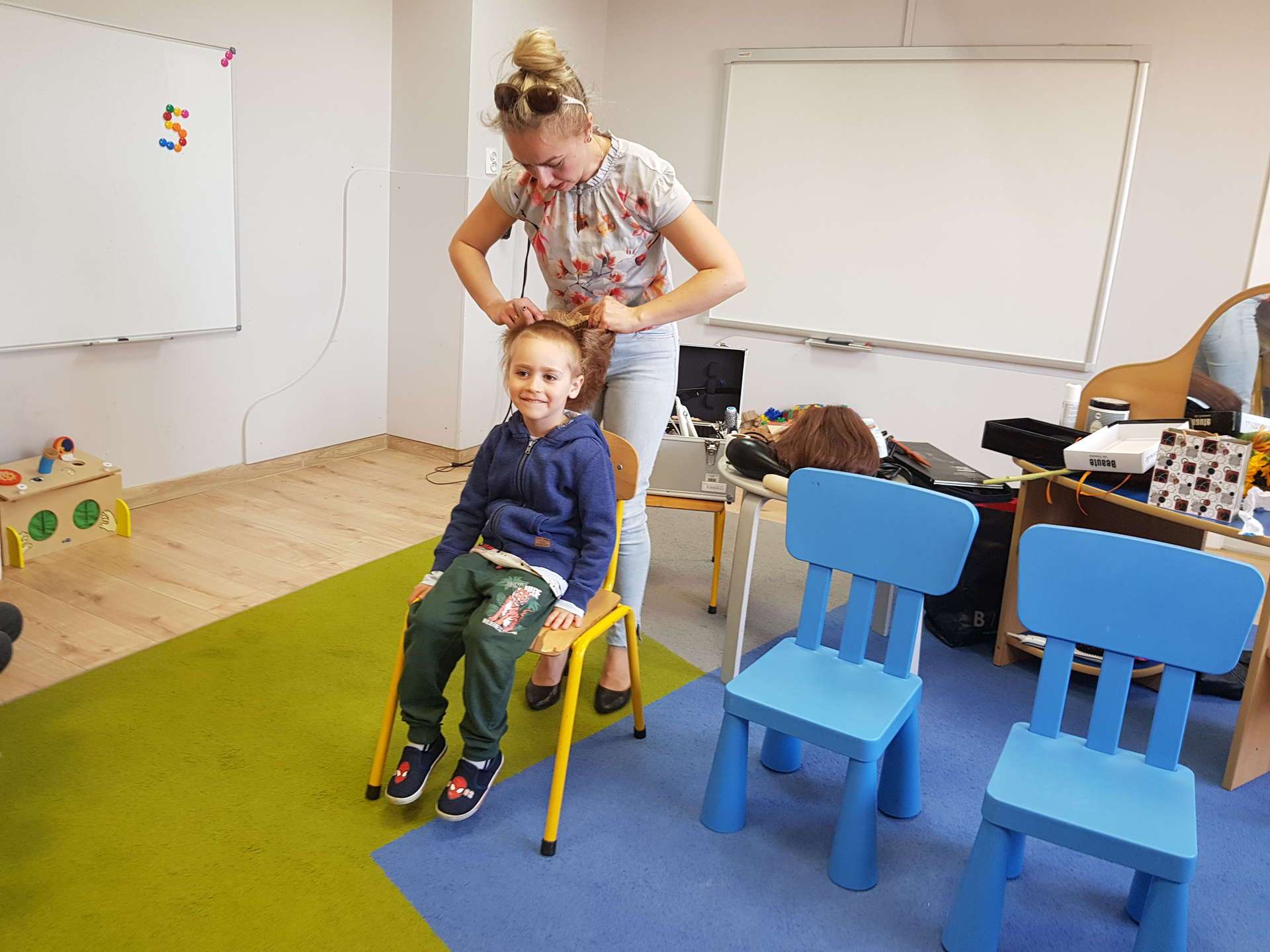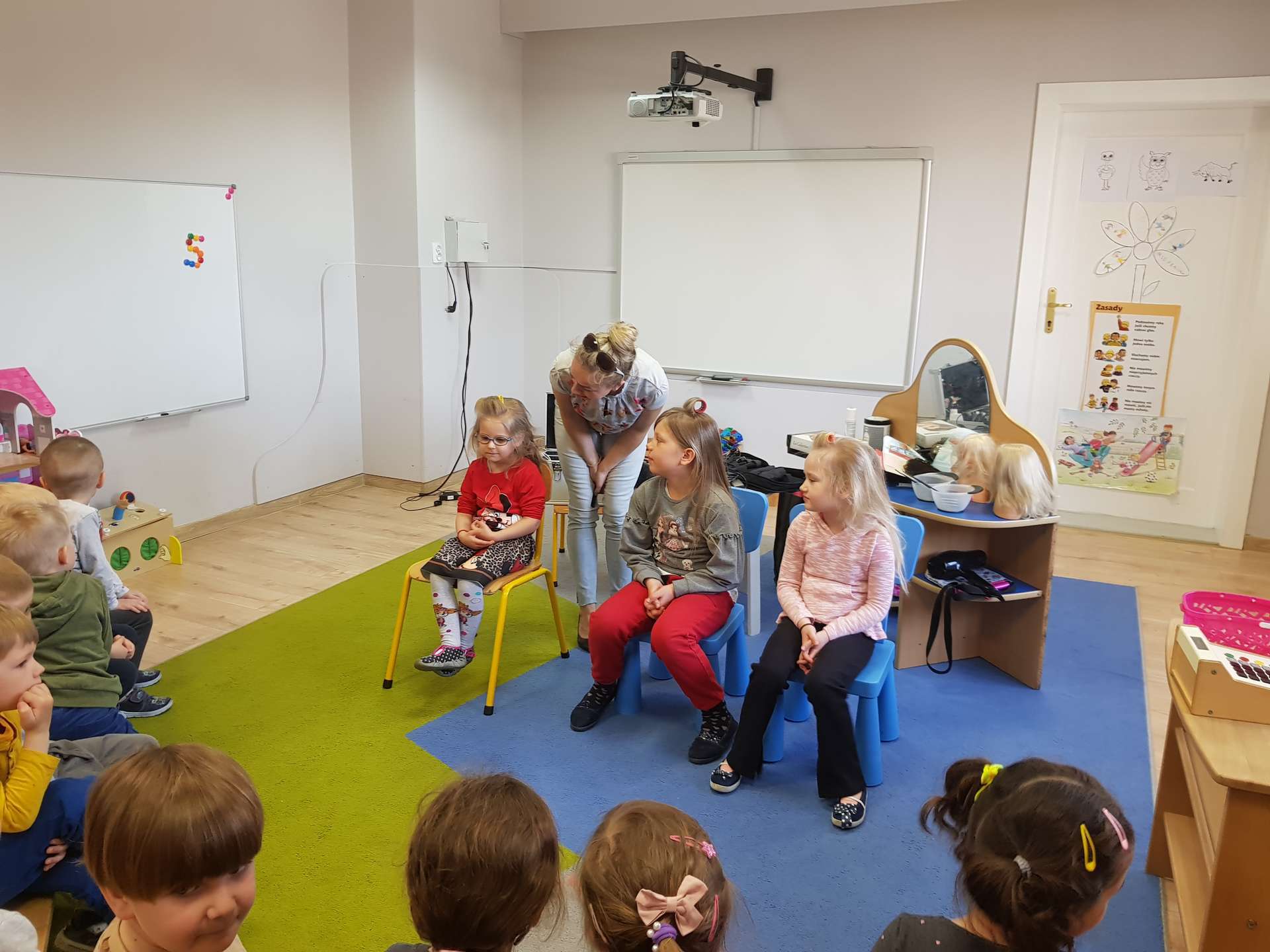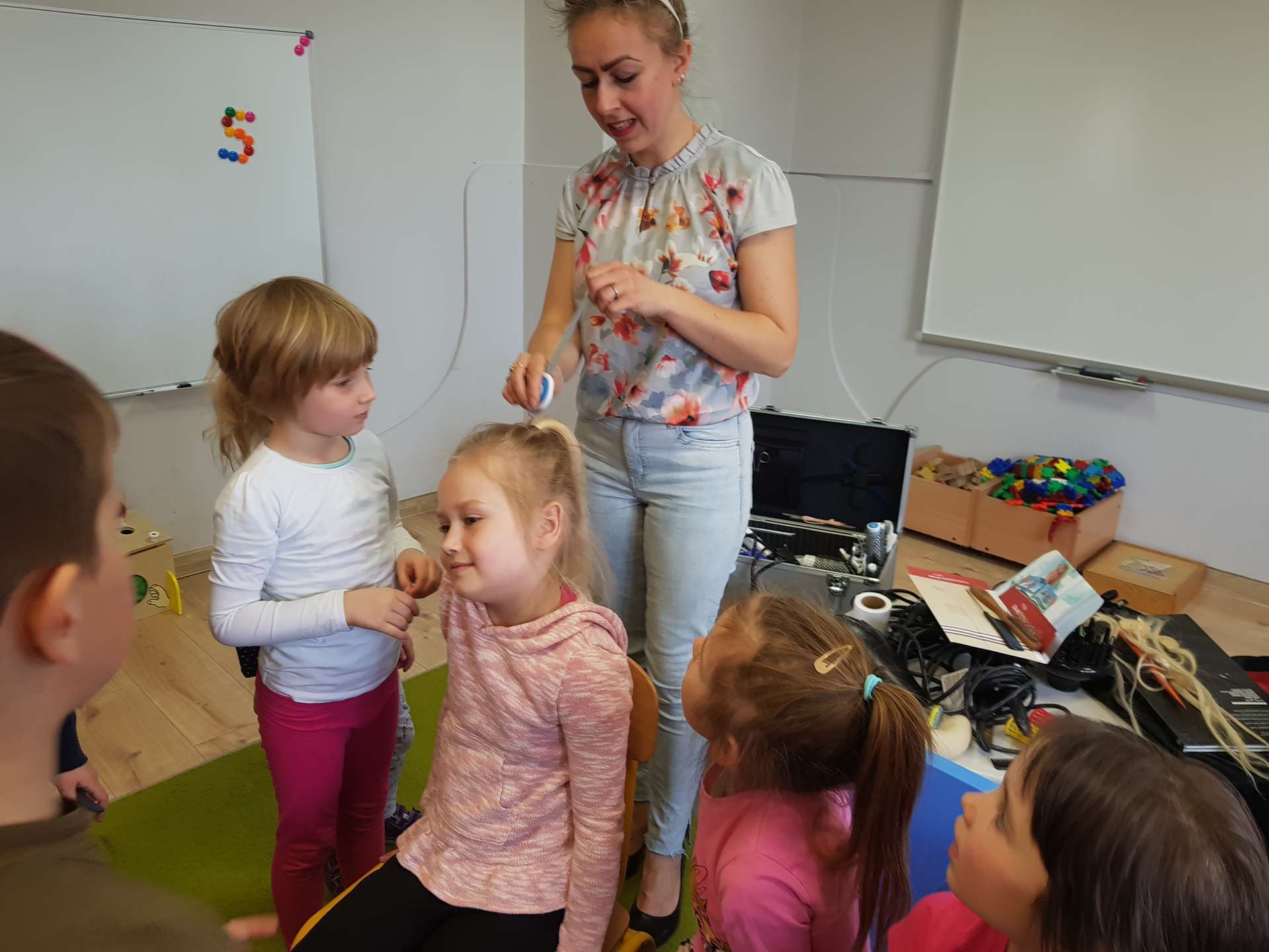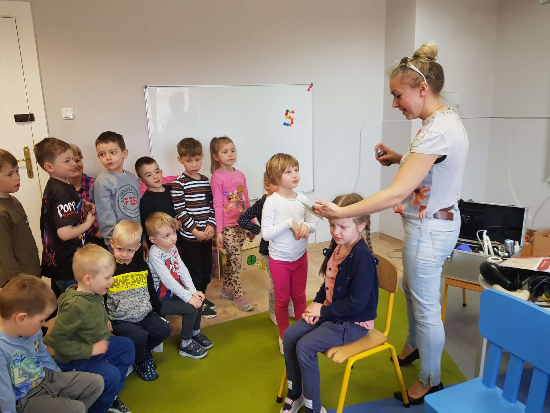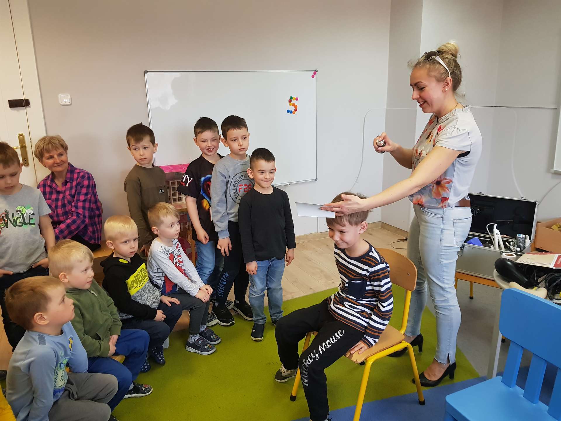 Pani Ania przedstawiła najważniejsze informacje dotyczące charakteru pracy fryzjerki. Dzieci dowiedziały się, jak należy dbać o włosy i skórę głowy.