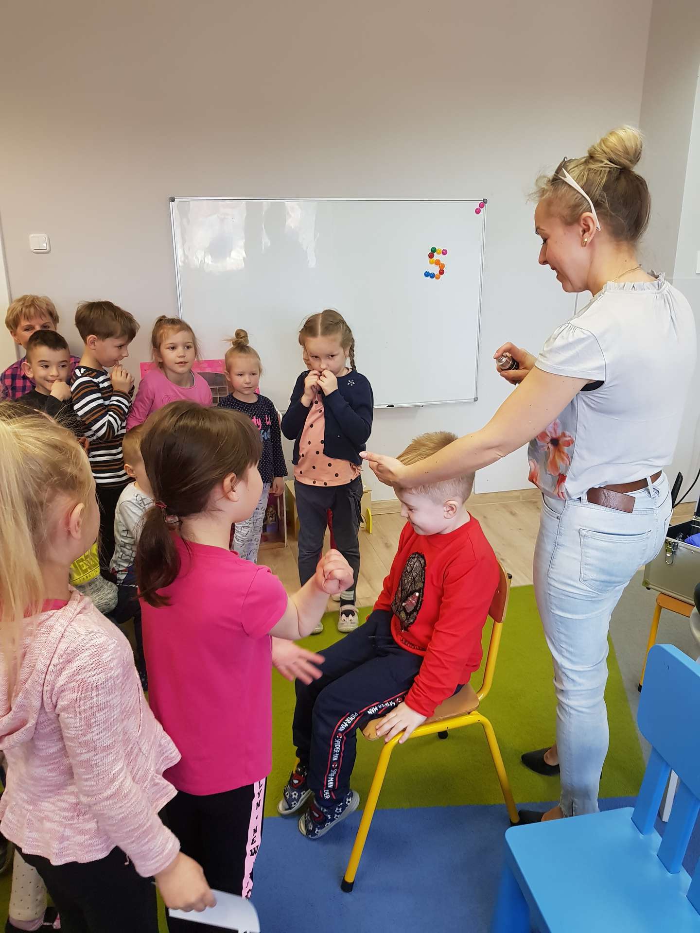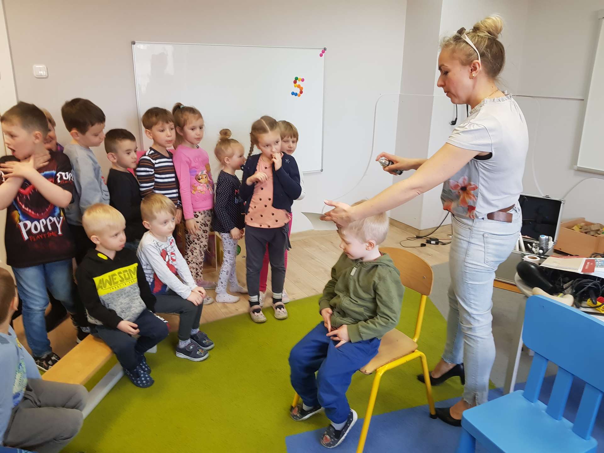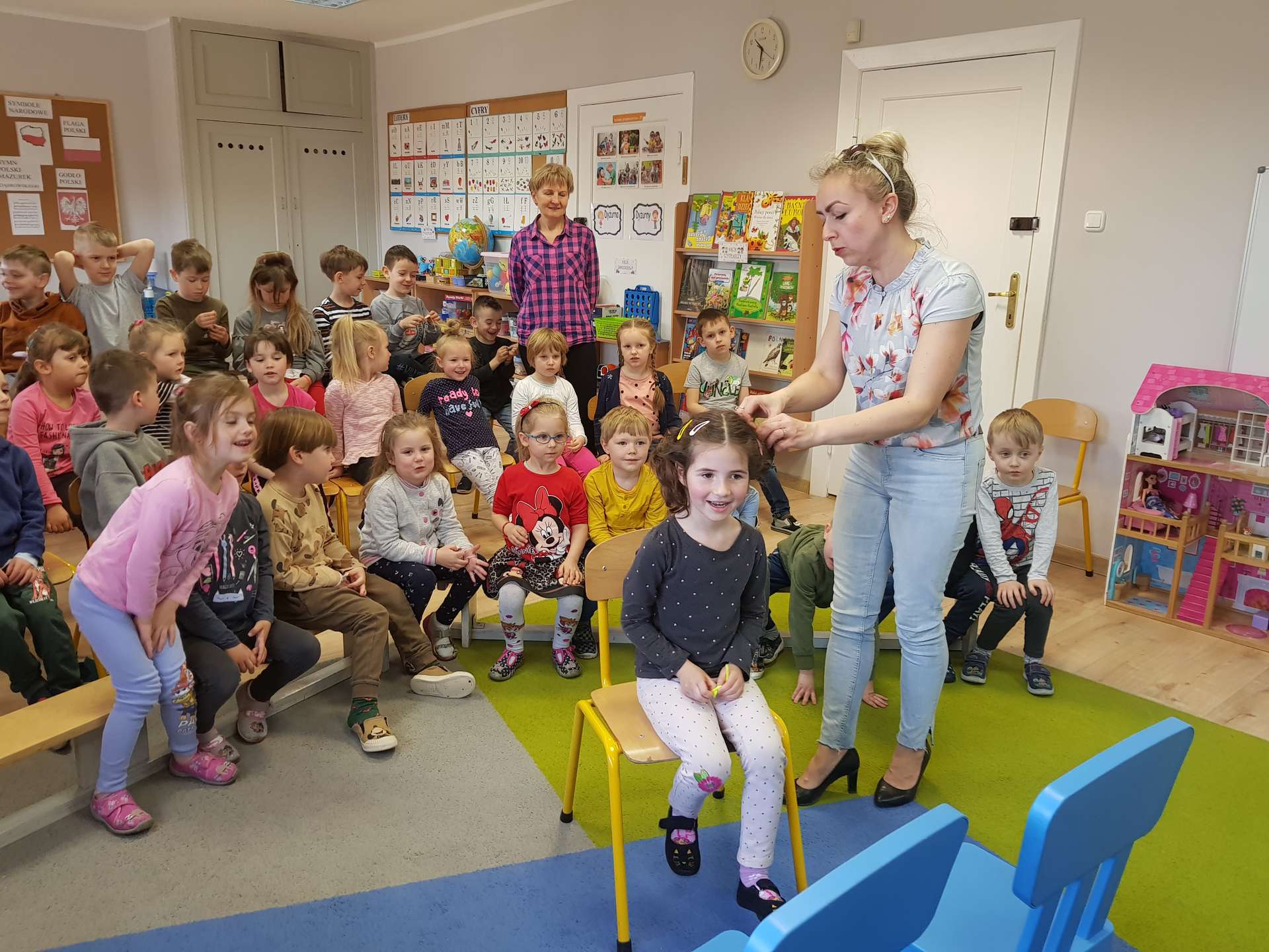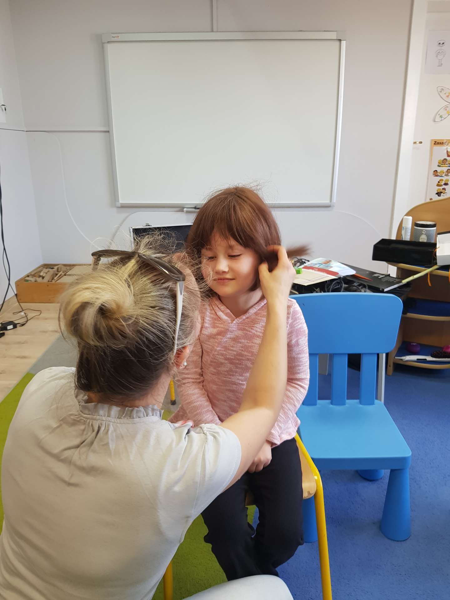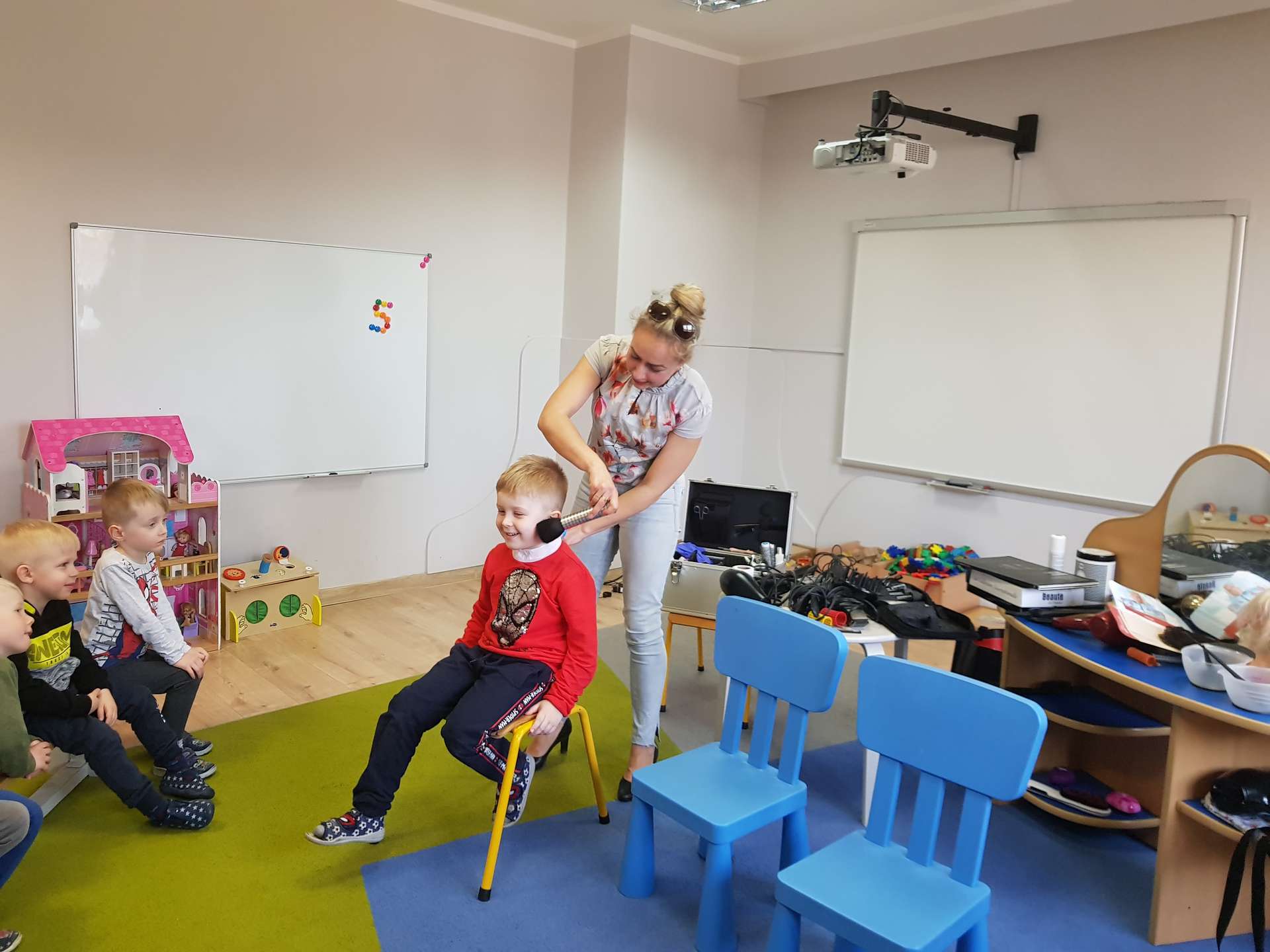 Pani Ania przedstawiła najważniejsze informacje dotyczące charakteru pracy fryzjerki. Dzieci dowiedziały się, jak należy dbać o włosy i skórę głowy.