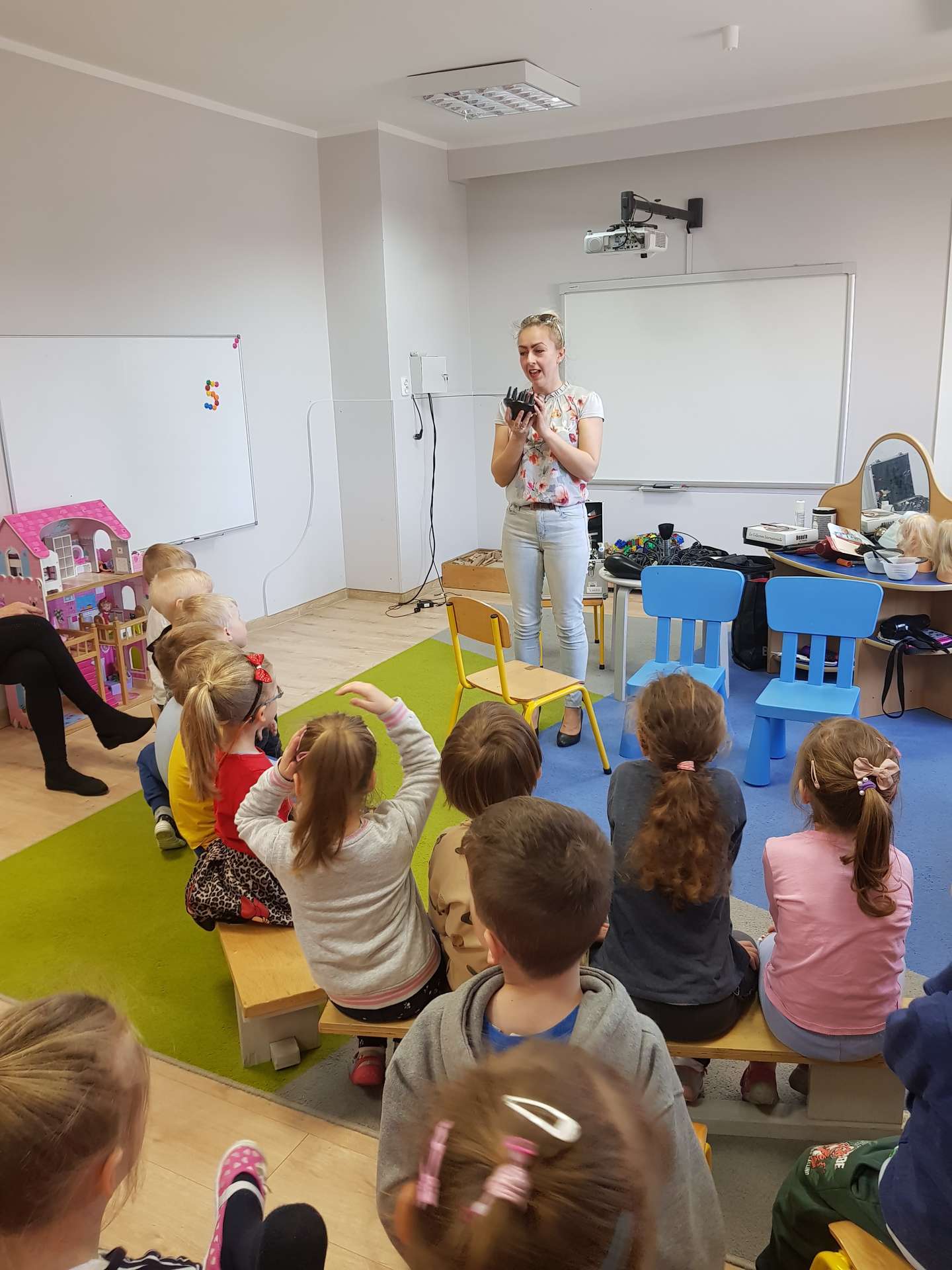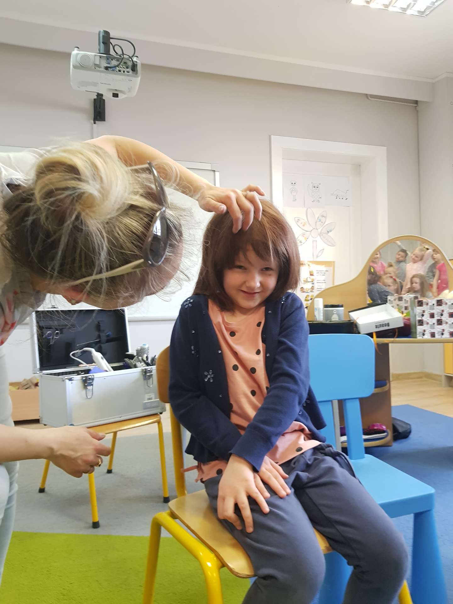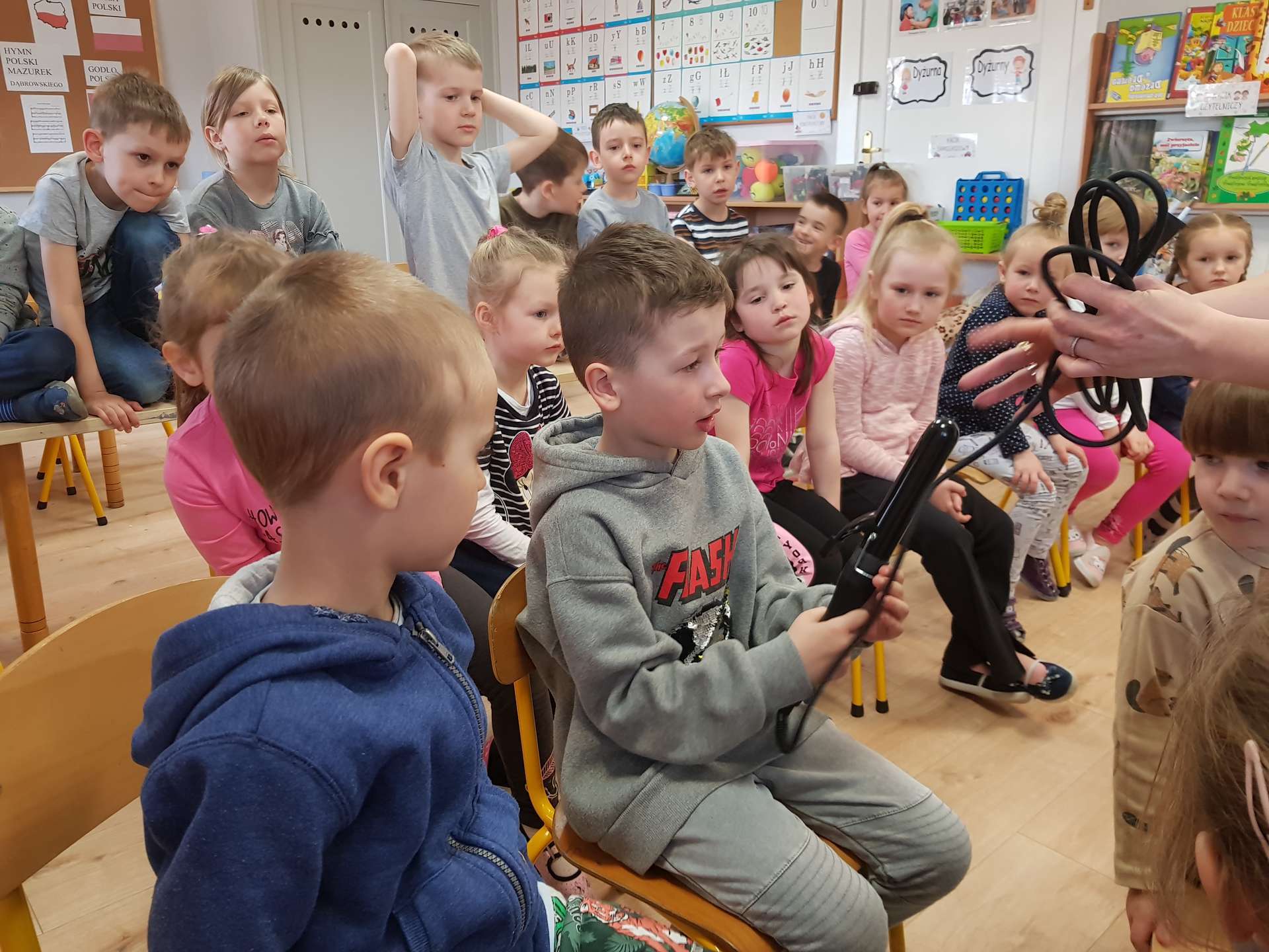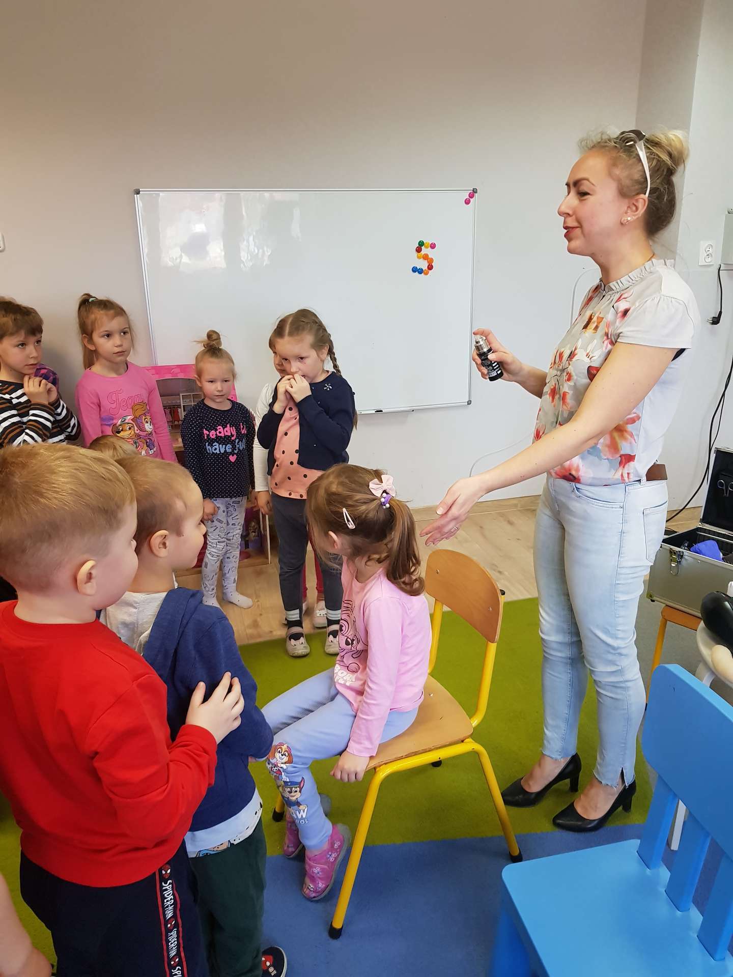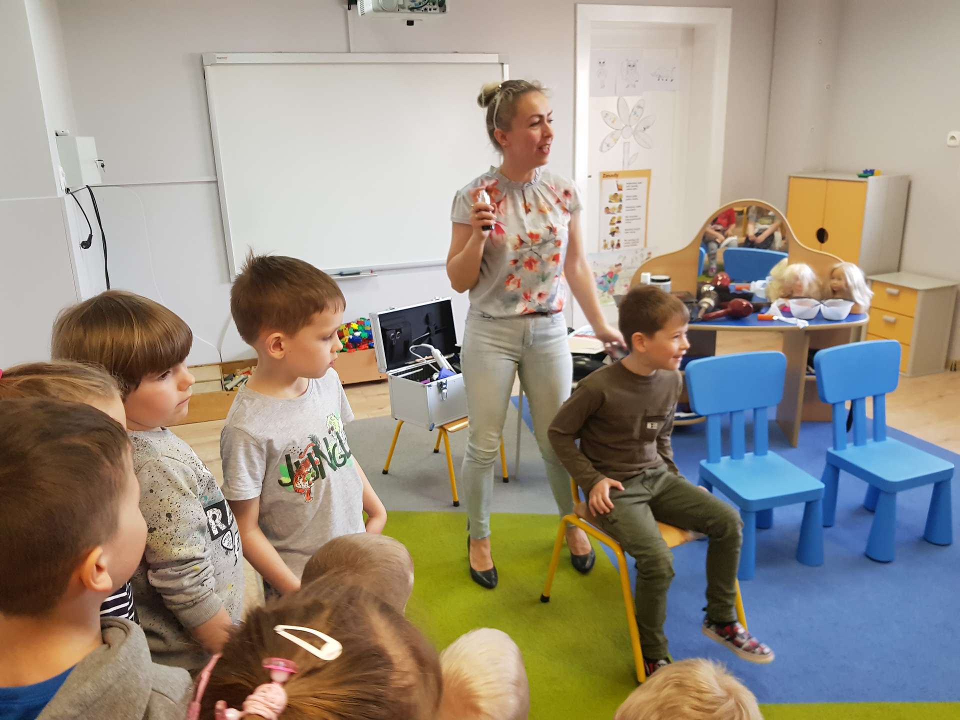 Pani Ania przedstawiła najważniejsze informacje dotyczące charakteru pracy fryzjerki. Dzieci dowiedziały się, jak należy dbać o włosy i skórę głowy.