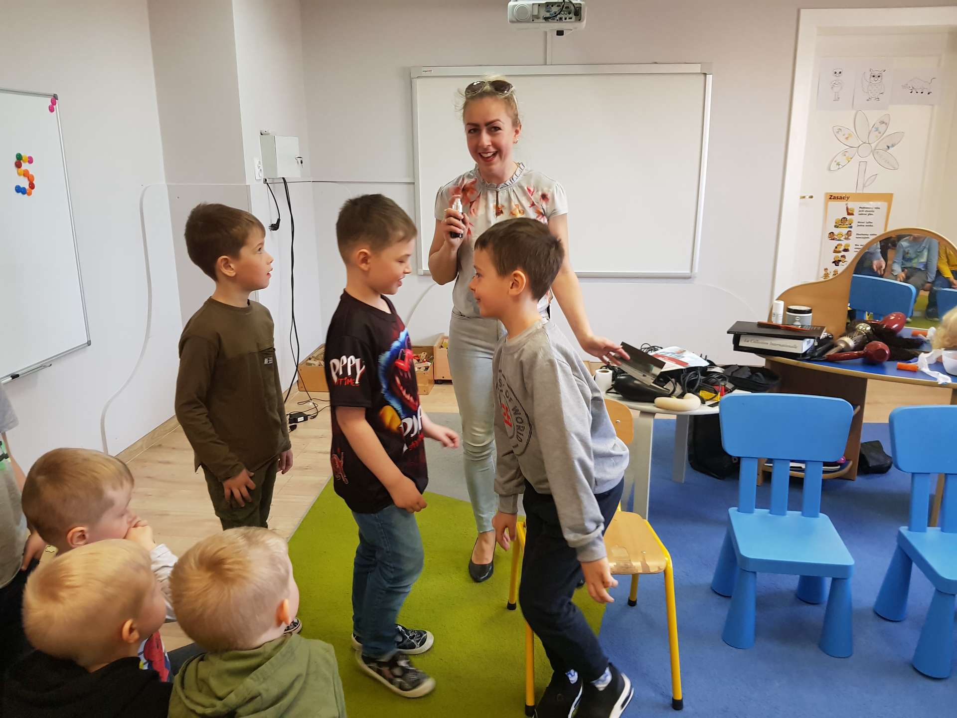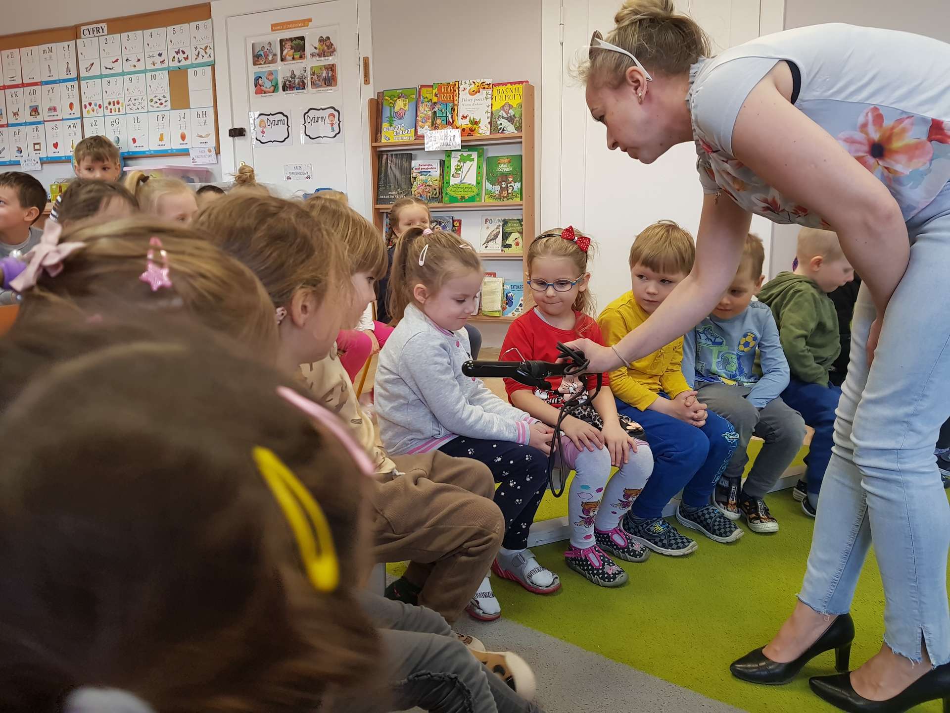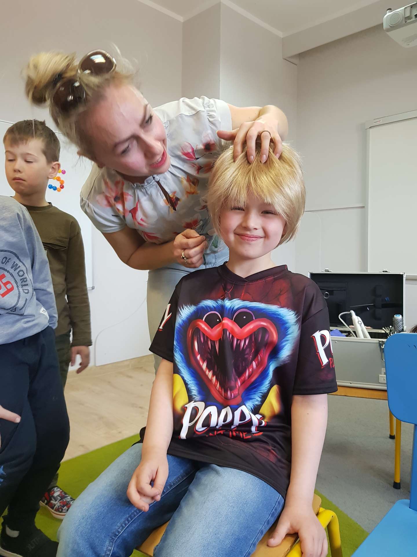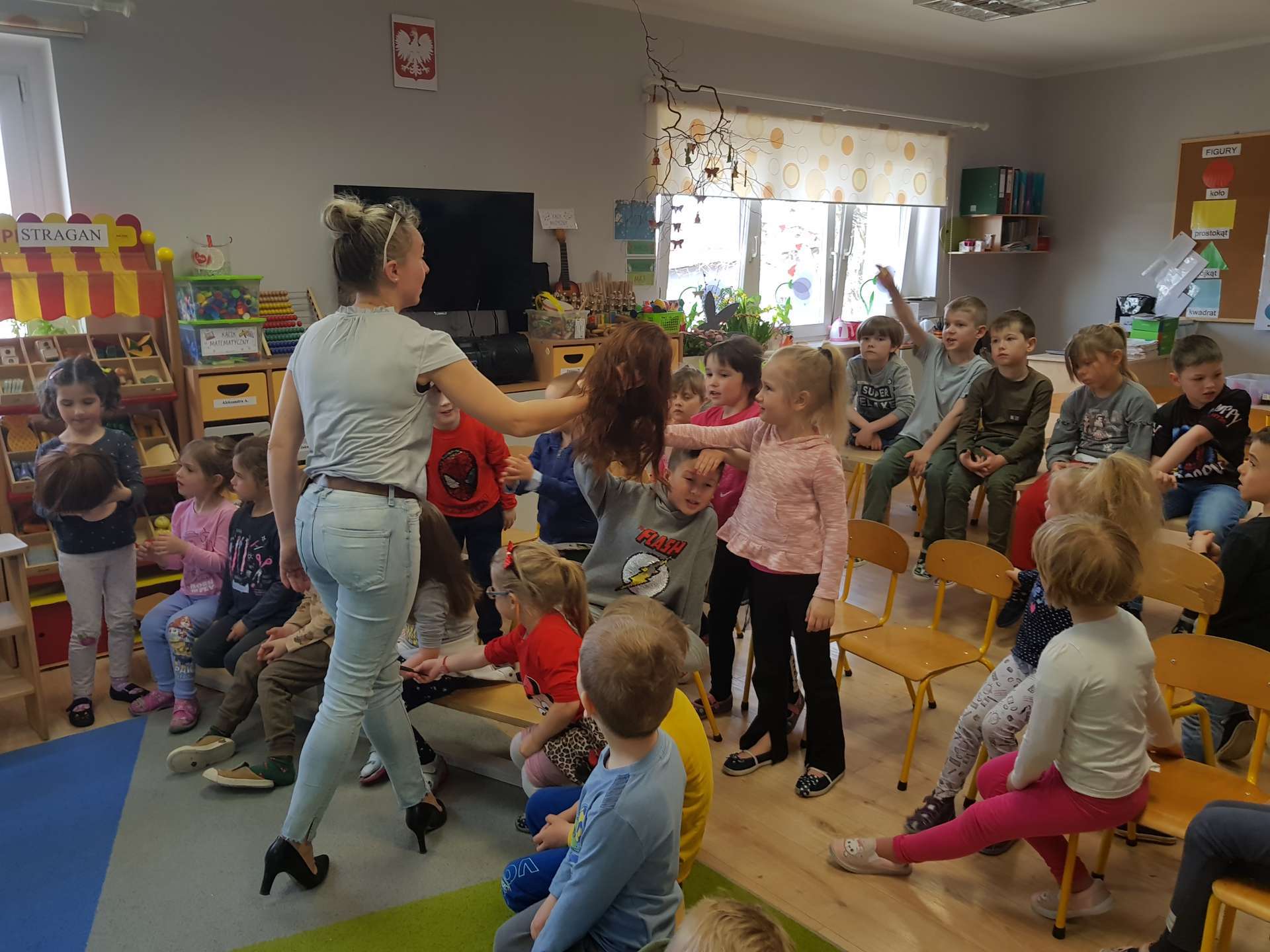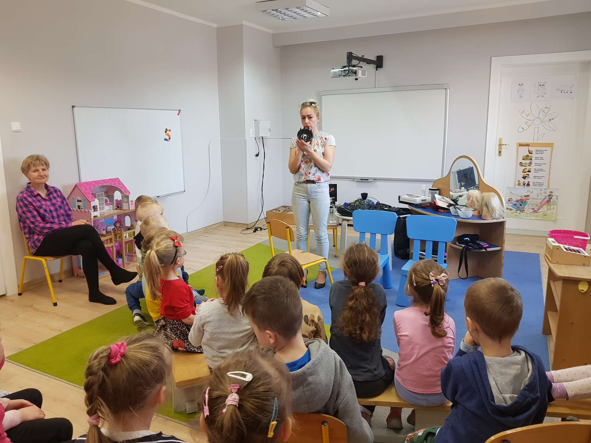 Pani Ania przedstawiła najważniejsze informacje dotyczące charakteru pracy fryzjerki. Dzieci dowiedziały się, jak należy dbać o włosy i skórę głowy.