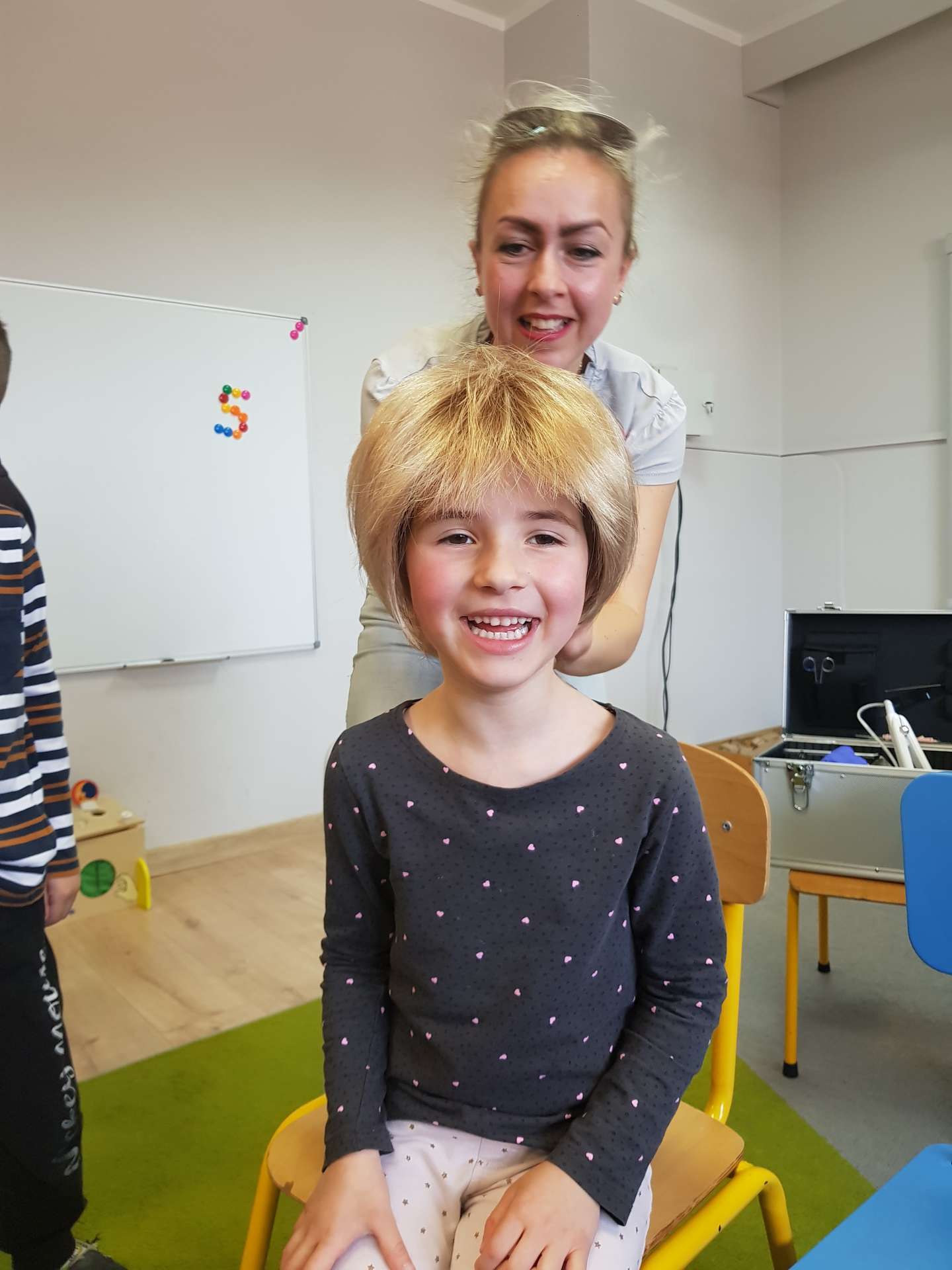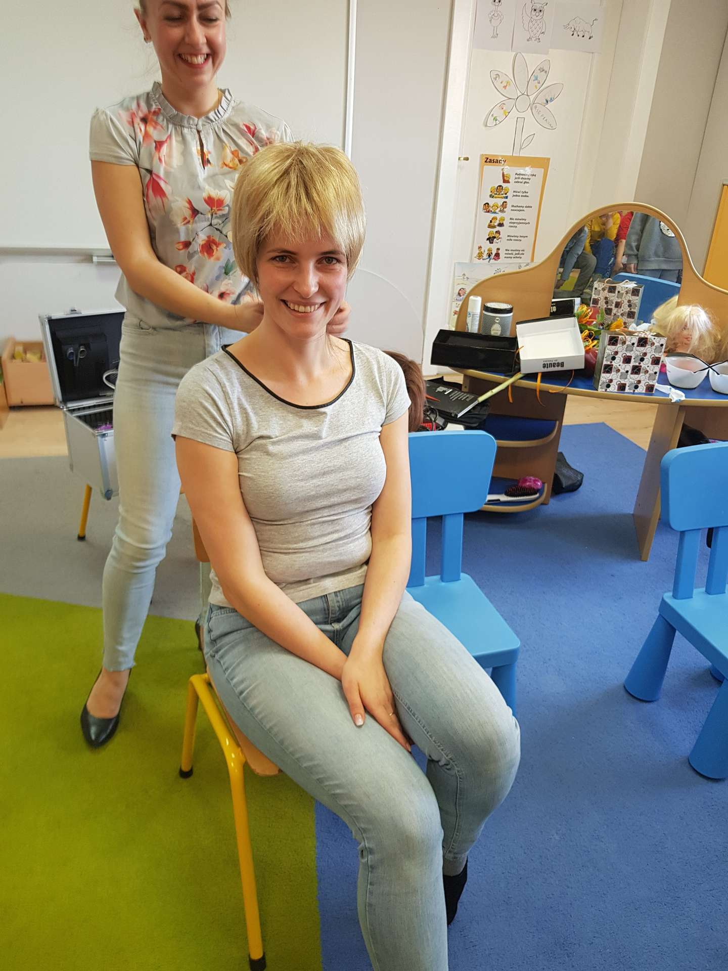 Poznały techniki strzyżenia i modelowania oraz przyrządy, które do tego służą. Dowiedziały się również, jakich kosmetyków używamy w fryzjerstwie oraz co trzeba zrobić, by zostać fryzjerem. Nie zabrakło również zabawy w postaci dopasowywania do twarzy nowych fryzur. To było bardzo ciekawe spotkanie.