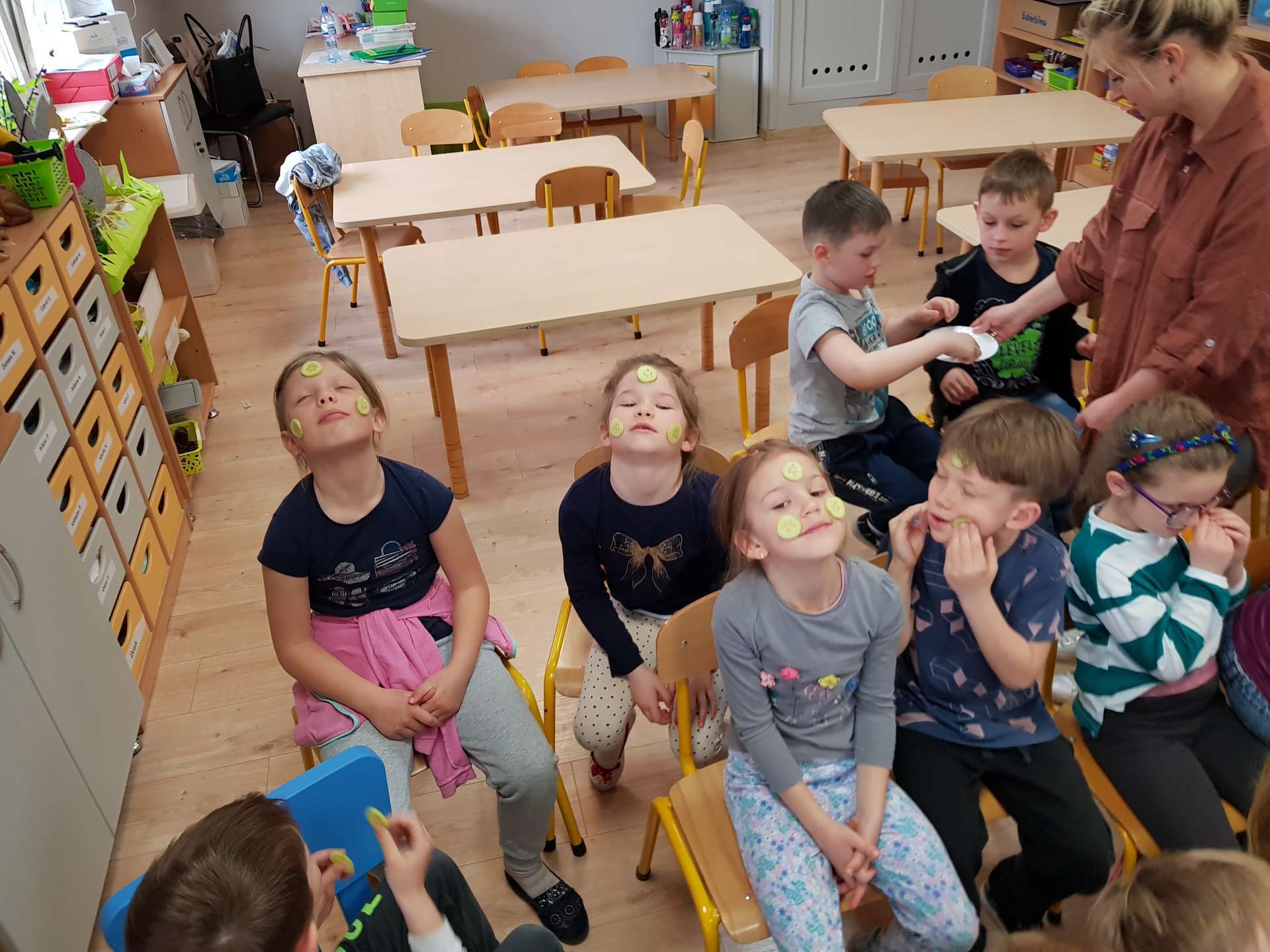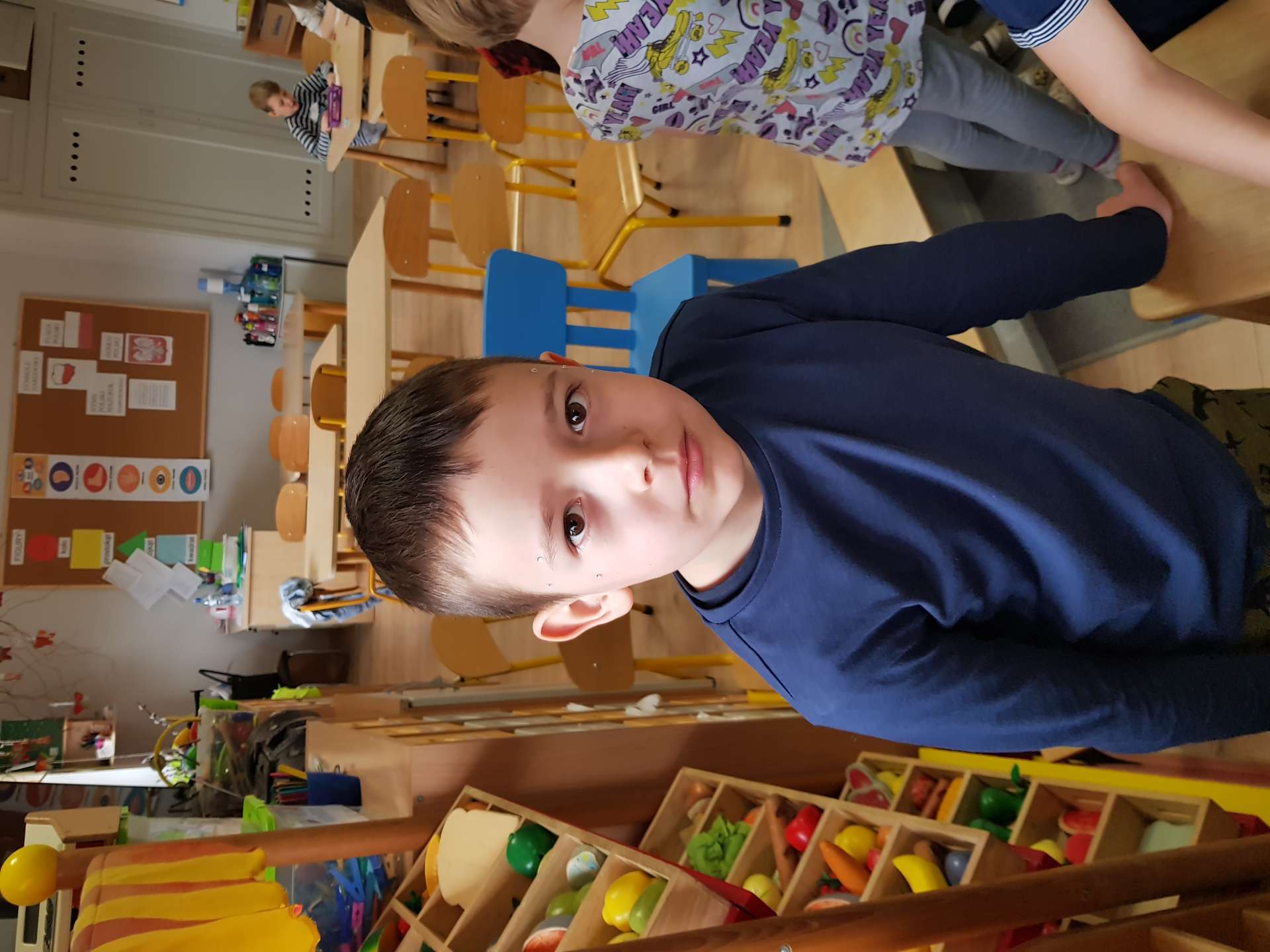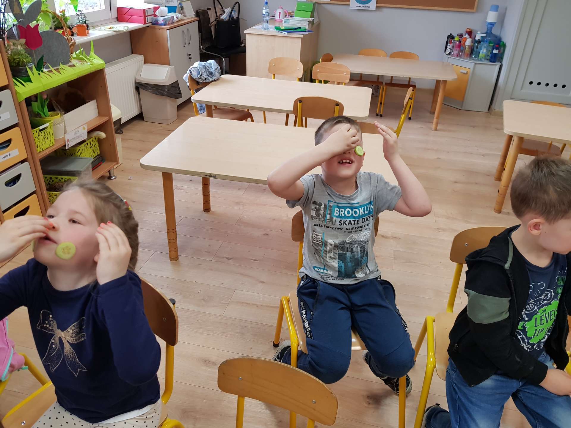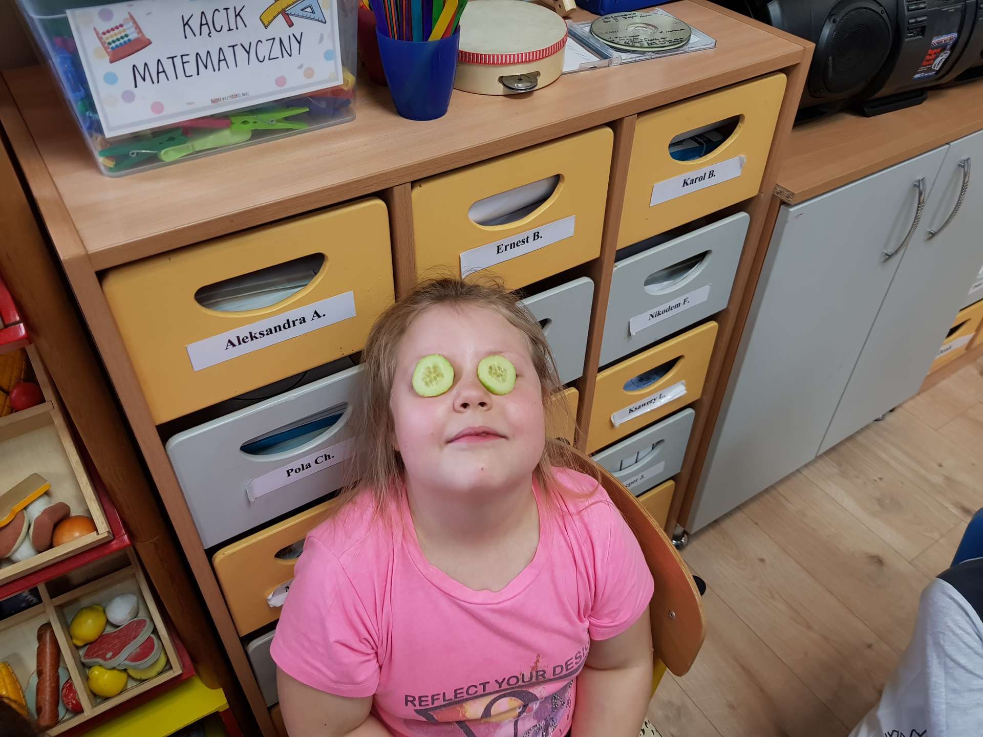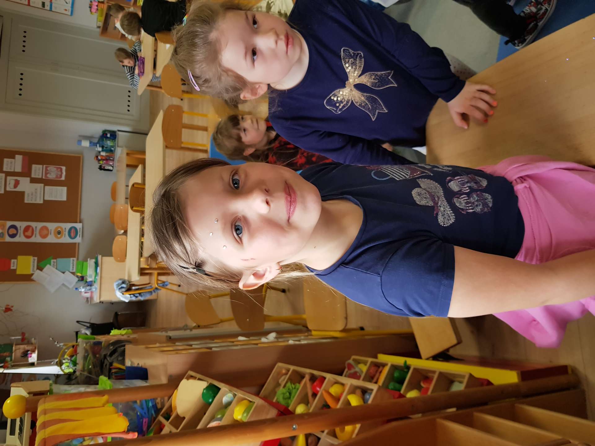 Dzisiaj gościliśmy p. Katarzynę Koszałkę - mamę Rysia z grupy III. Pani Kasia opowiedziała dzieciom o swoich dwóch zawodach - projektantki odzieży militarnej oraz makijażystki. Chłopcom bardzo podobały się opowieści o tym, jak powstają kamizelki, spodnie, hełmy i inne rzeczy, które są w wyposażeniu żołnierza. Okazuje się, że zaprojektowanie takiej odzieży to bardzo trudny i długi proces. Najpierw trzeba mieć pomysł na projekt, później go naszkicować, wybrać materiał z którego będzie wykonany i dopiero wtedy następuje produkcja. Wielką atrakcją było przymierzanie przez dzieci odzieży militarnej. Dziewczynki z kolei zachwycone były pokazem makijażu, przyborami, różnorodnością kolorów, techniką malowania. A malowanie swoich Pań okazało się "strzałem w dziesiątkę". To było niesamowite spotkanie !!!
