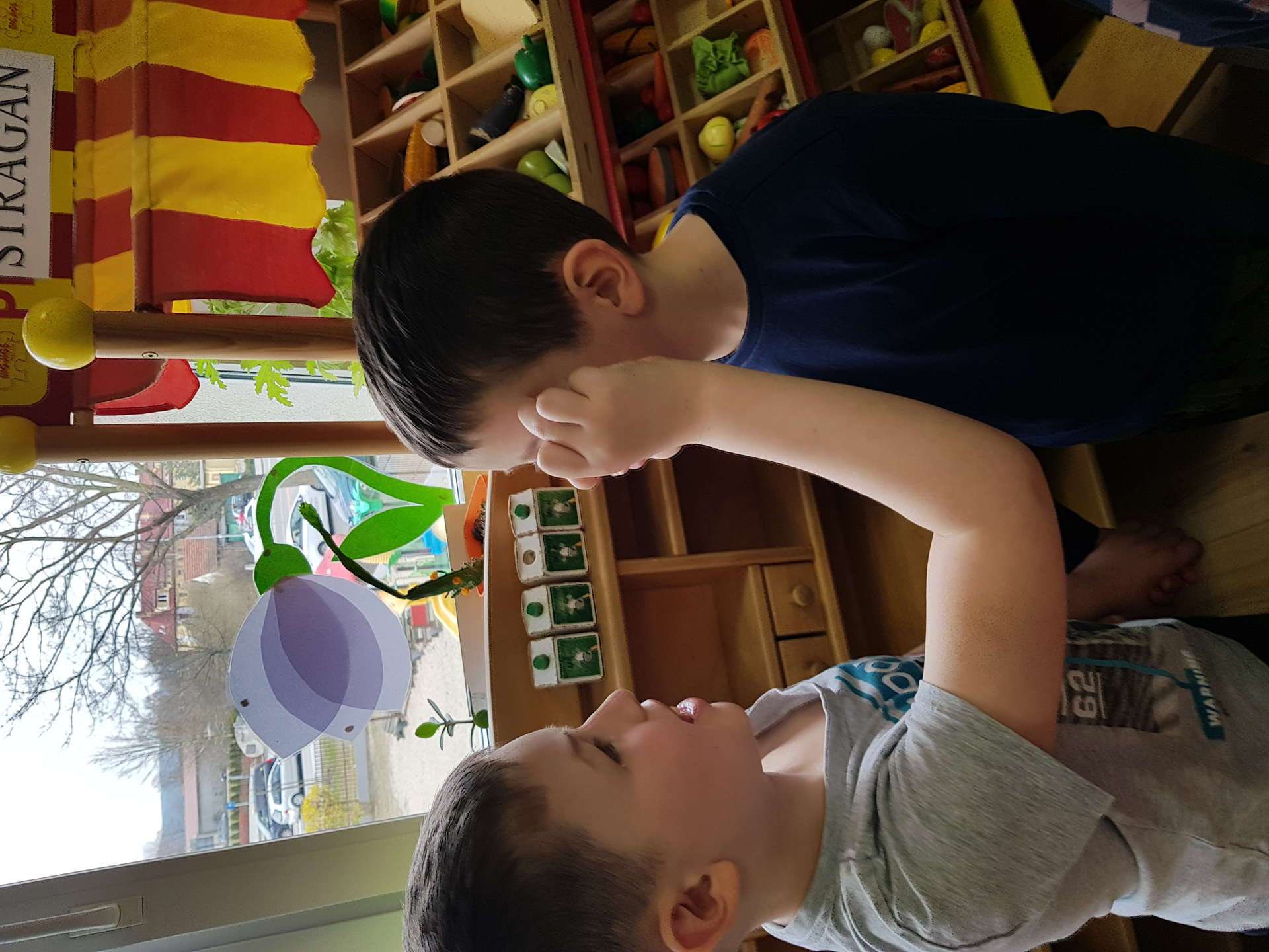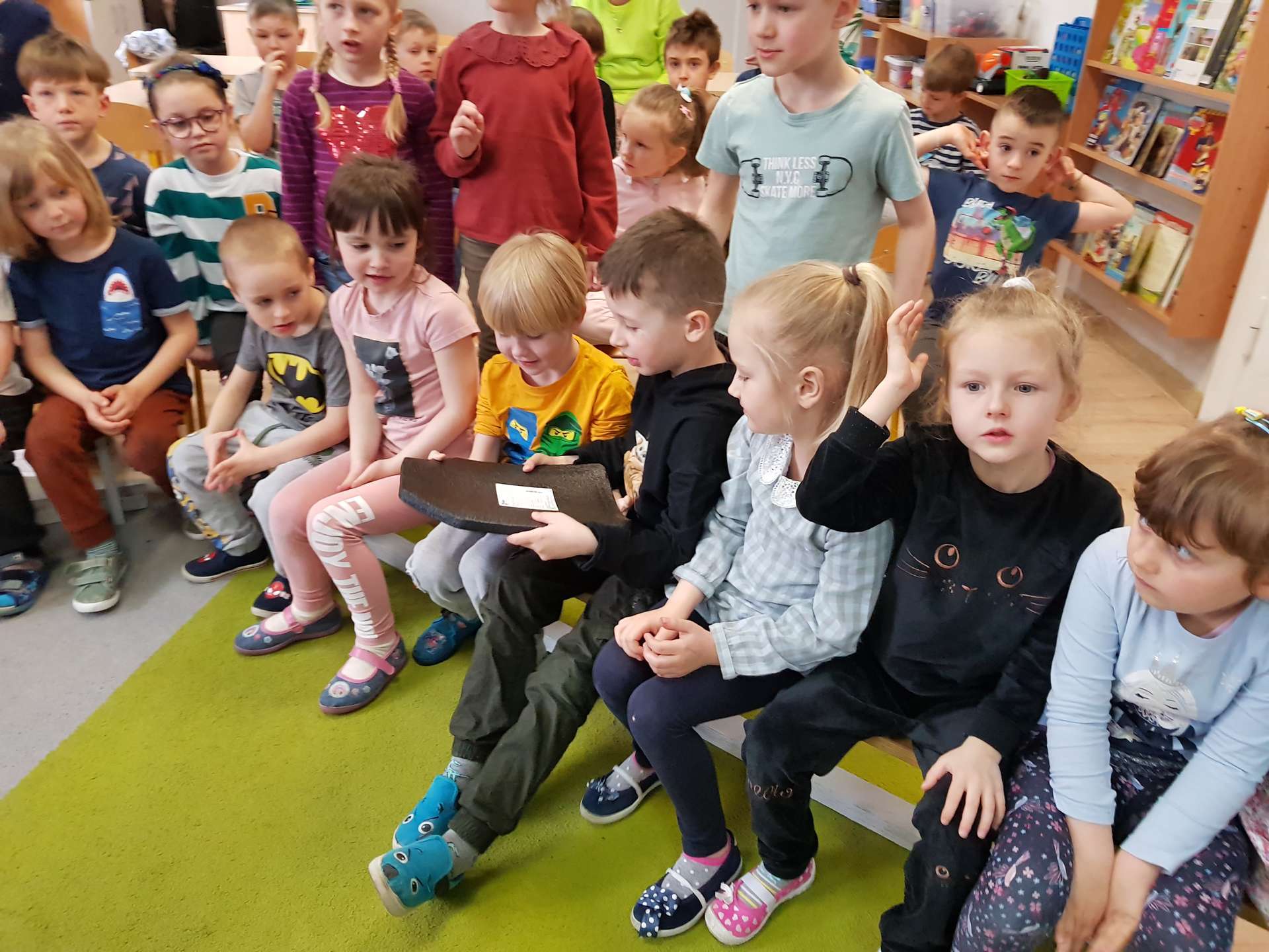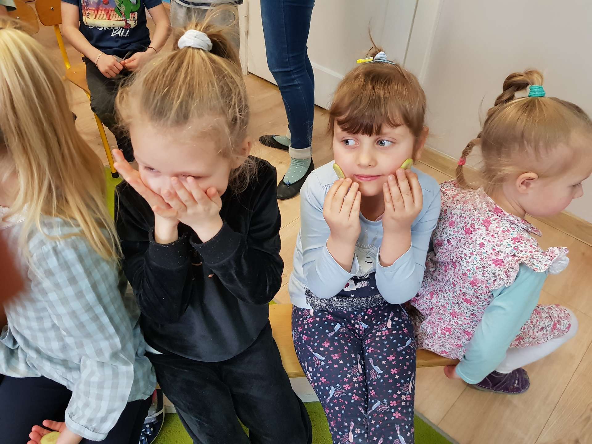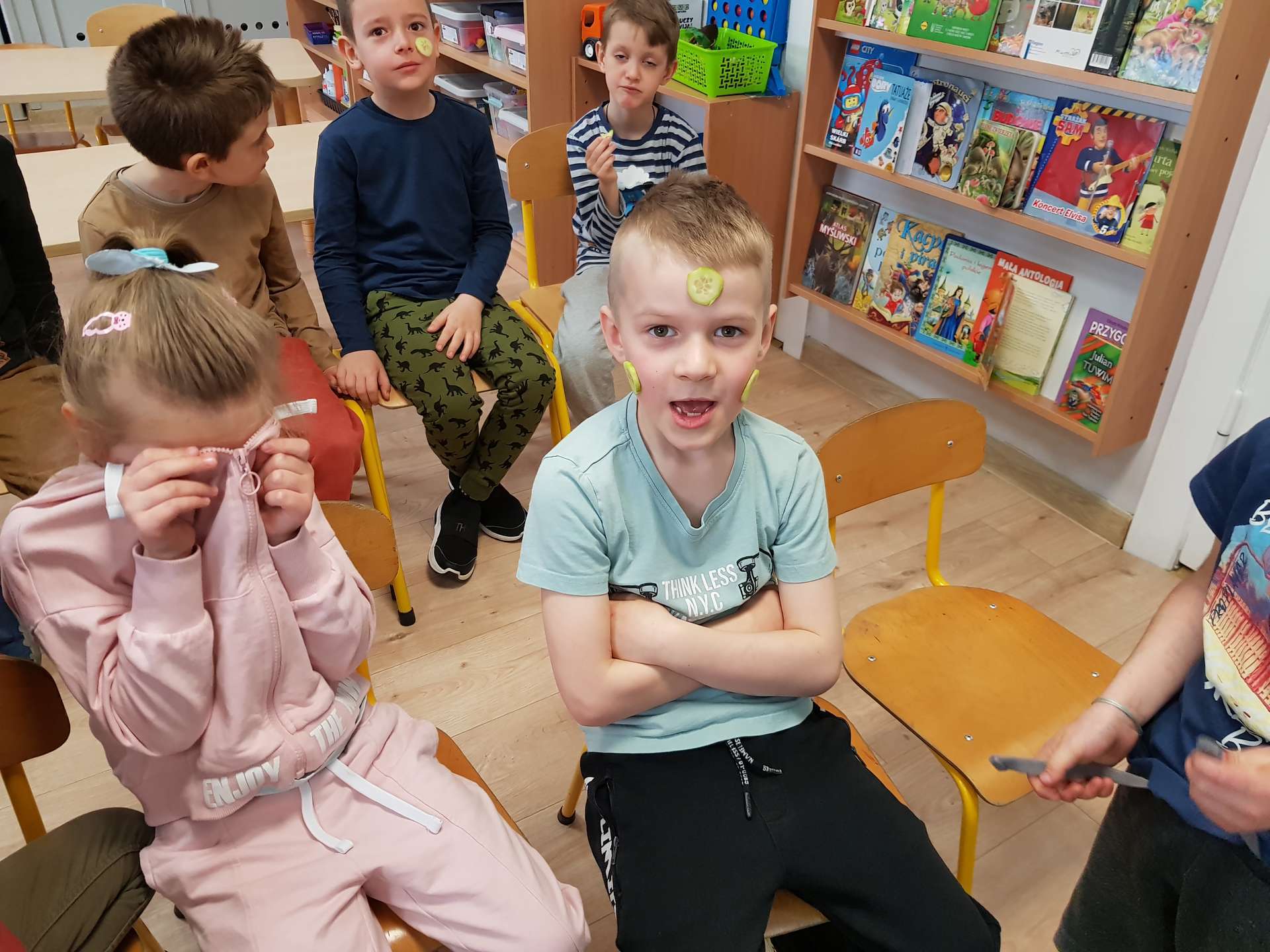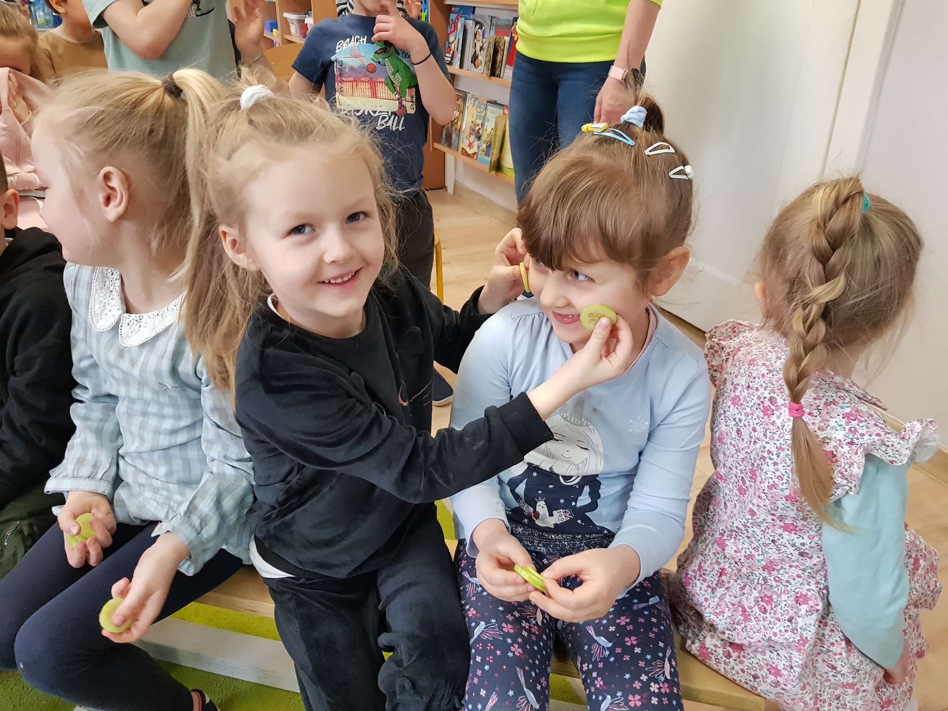 Dzisiaj gościliśmy p. Katarzynę Koszałkę - mamę Rysia z grupy III. Pani Kasia opowiedziała dzieciom o swoich dwóch zawodach - projektantki odzieży militarnej oraz makijażystki. Chłopcom bardzo podobały się opowieści o tym, jak powstają kamizelki, spodnie, hełmy i inne rzeczy, które są w wyposażeniu żołnierza. Okazuje się, że zaprojektowanie takiej odzieży to bardzo trudny i długi proces. Najpierw trzeba mieć pomysł na projekt, później go naszkicować, wybrać materiał z którego będzie wykonany i dopiero wtedy następuje produkcja. Wielką atrakcją było przymierzanie przez dzieci odzieży militarnej. Dziewczynki z kolei zachwycone były pokazem makijażu, przyborami, różnorodnością kolorów, techniką malowania. A malowanie swoich Pań okazało się "strzałem w dziesiątkę". To było niesamowite spotkanie !!!