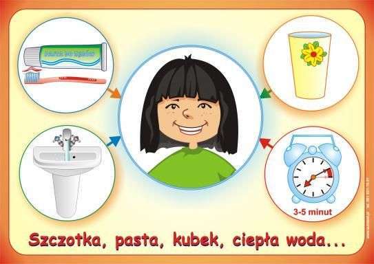 Potnijcie z dzieckiem rysunkową instrukcję mycia rąk na elementy. Pomieszaj elementy, a następnie poproś dziecko, by ułożyło je po kolei i przykleiło do kartki. Na koniec udajcie się z dzieckiem do łazienki i umyjcie dłonie zgodnie z omówioną instrukcją.