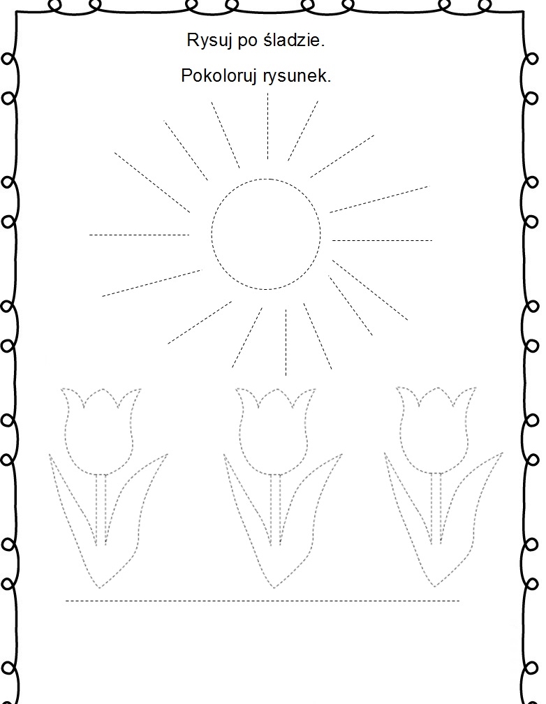 Zabawa 3. Pobierz i wydrukuj kartę pracy. Rysuj po śladzie i pokoloruj obrazek.