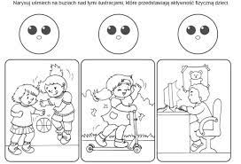 Rozmowa na temat aktywności ruchowej. Przybliżenie dziecku tematyki związanej z aktywnością ruchową, a w szczególności zwrócenie uwagi na korzyści płynące z jej uprawiania. Jak myślicie dlaczego należy ćwiczyć?