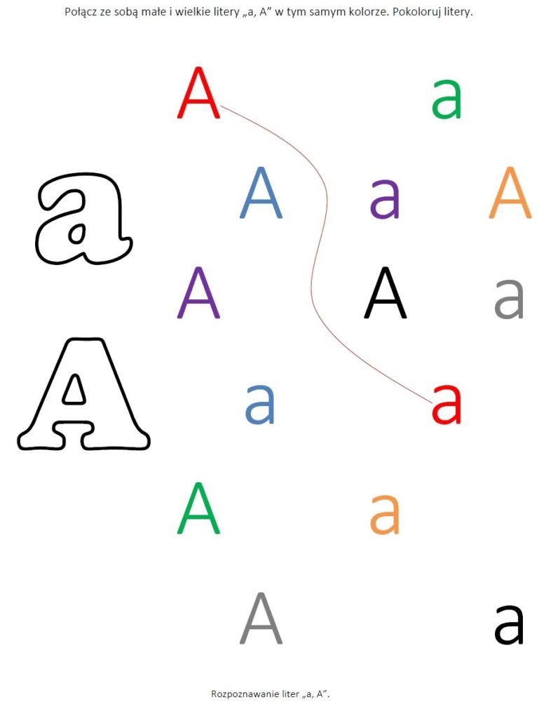Ozdób w dowolny sposób literę A, możesz ją pokolorować, ozdobić mazakami, coś przykleić lub zrobić z niej coś, co zaczyna się właśnie głoską „A”.
